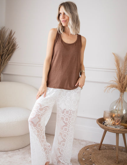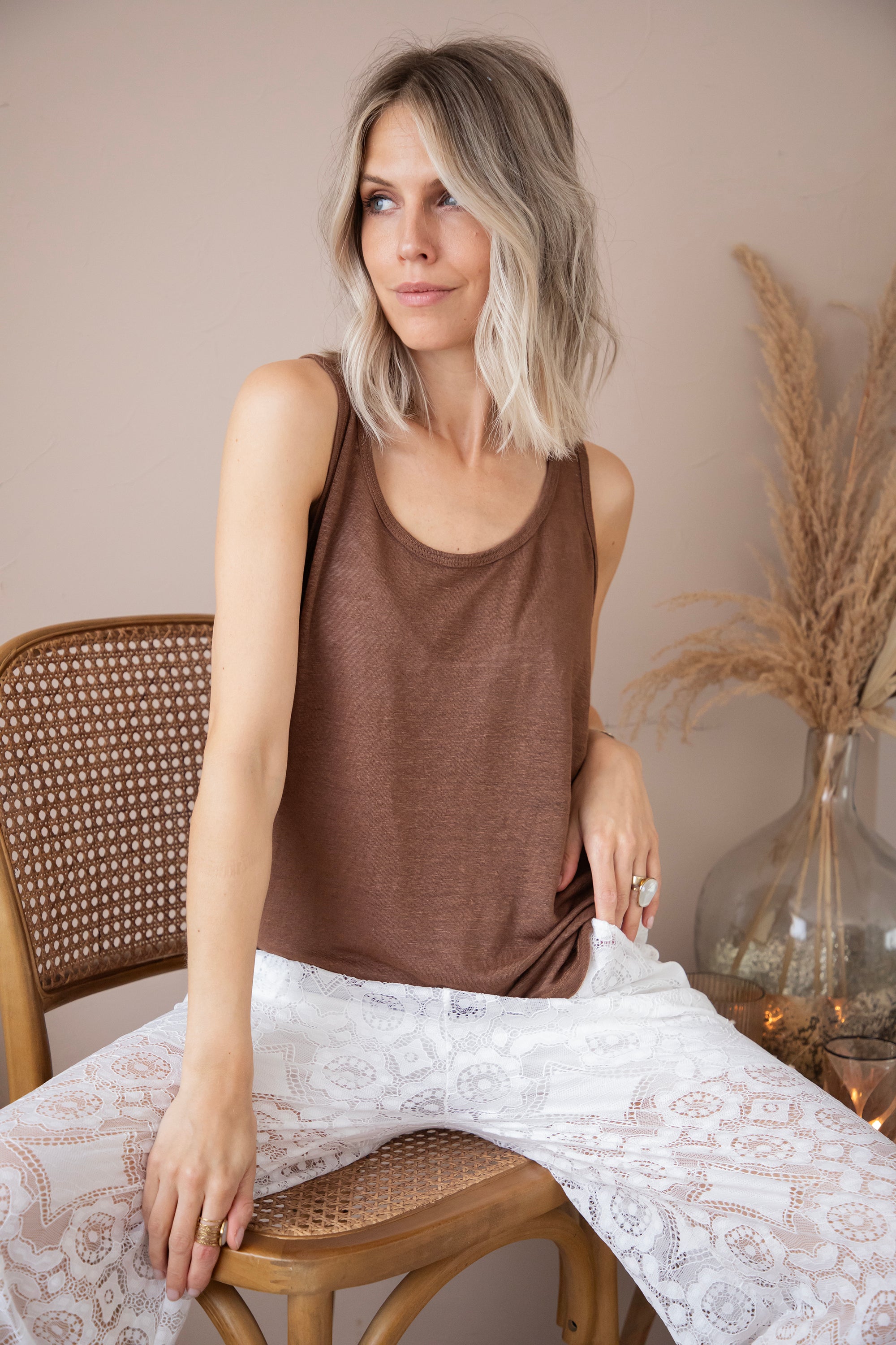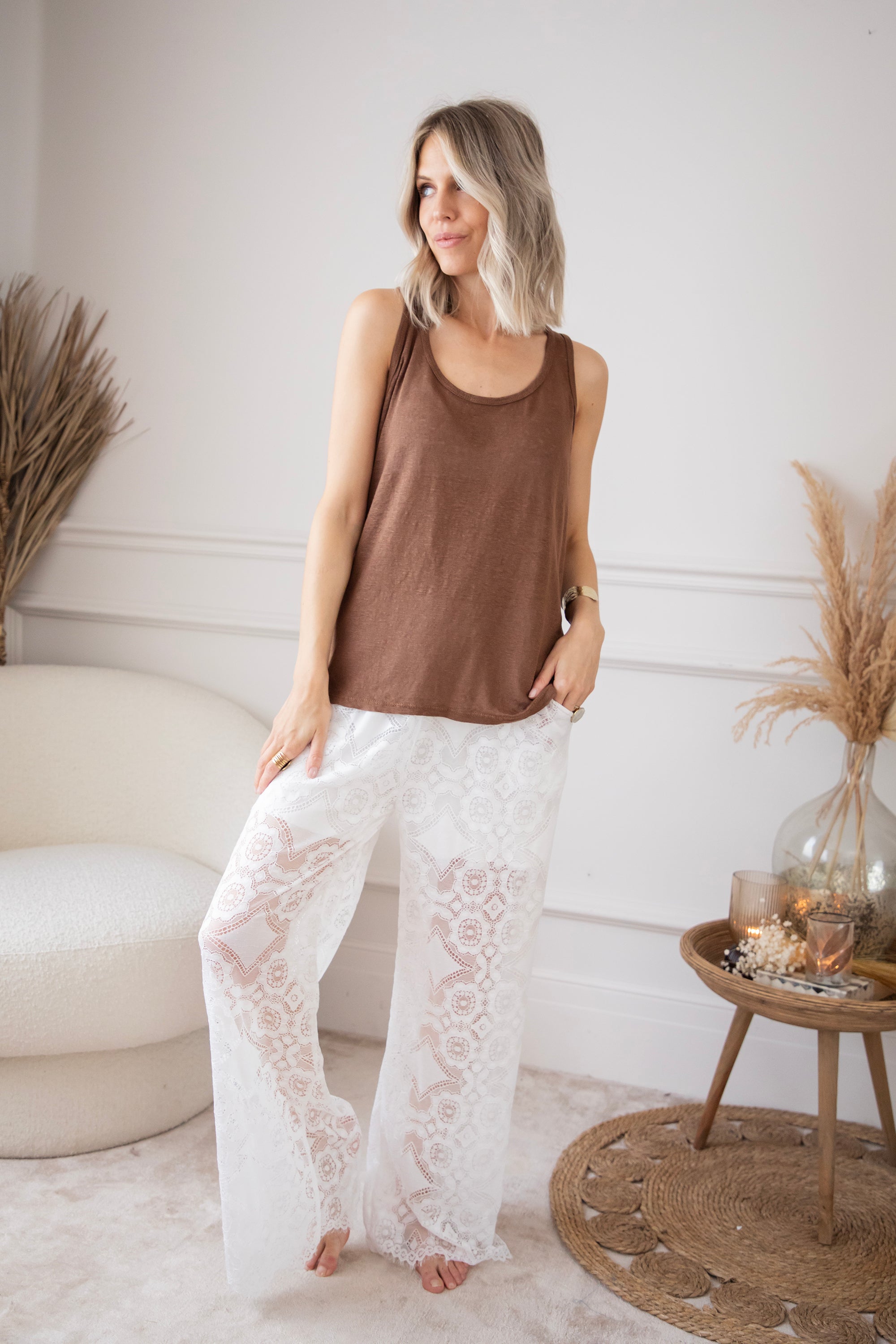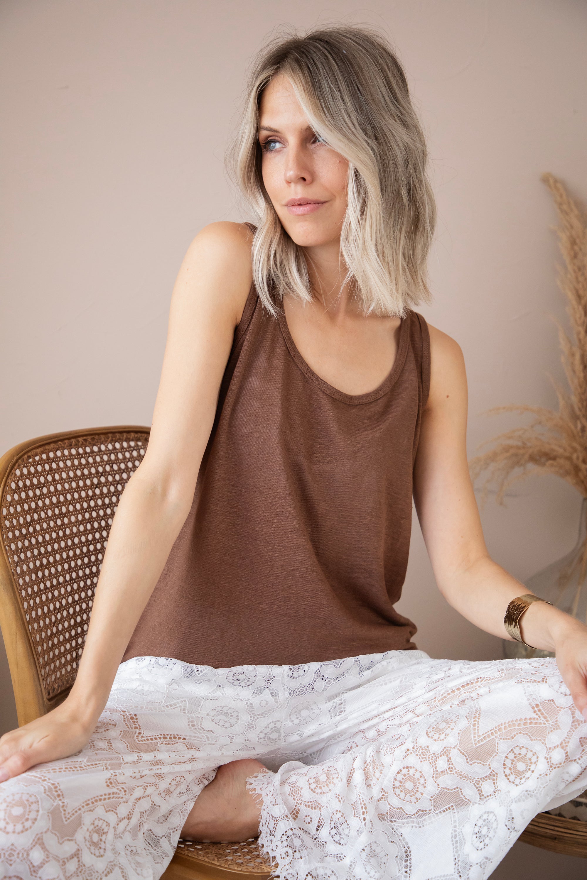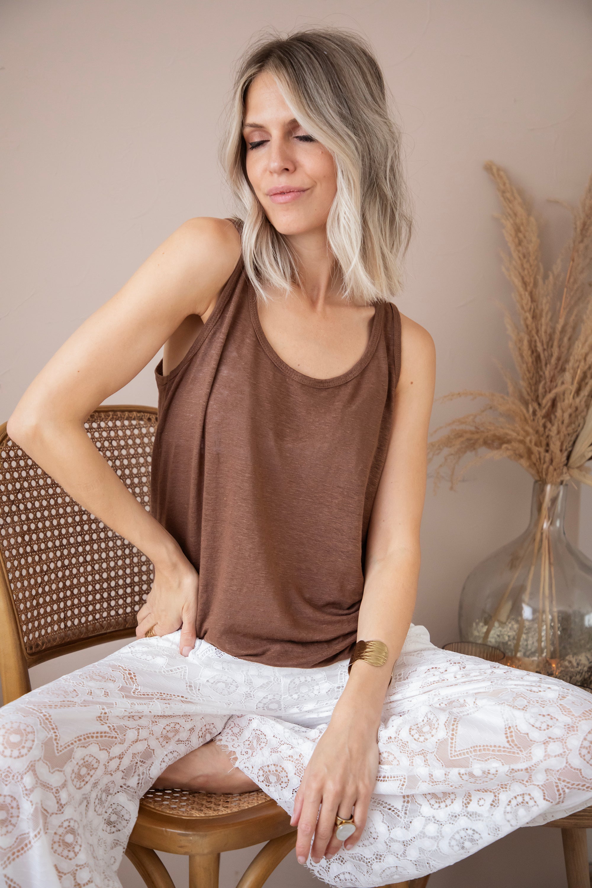 The Esmee top is one of those tops that you'll pull out of your closet summer after summer! It's made of 100% linen, and anyone who knows me a little knows that I'm a huge fan of linen in the summer. The light fabric breathes so well in warm weather 🌞 and feels wonderfully fresh and airy on your skin. The top has a nice loose fit and the solid color makes it easy to mix and match. Seriously, this is a 100% essential that you can style endlessly! I love to wear it with the white Aline pants or the Soft Flower Breeze pants and finish it off with the Bellina heels for that extra touch of chic 😍