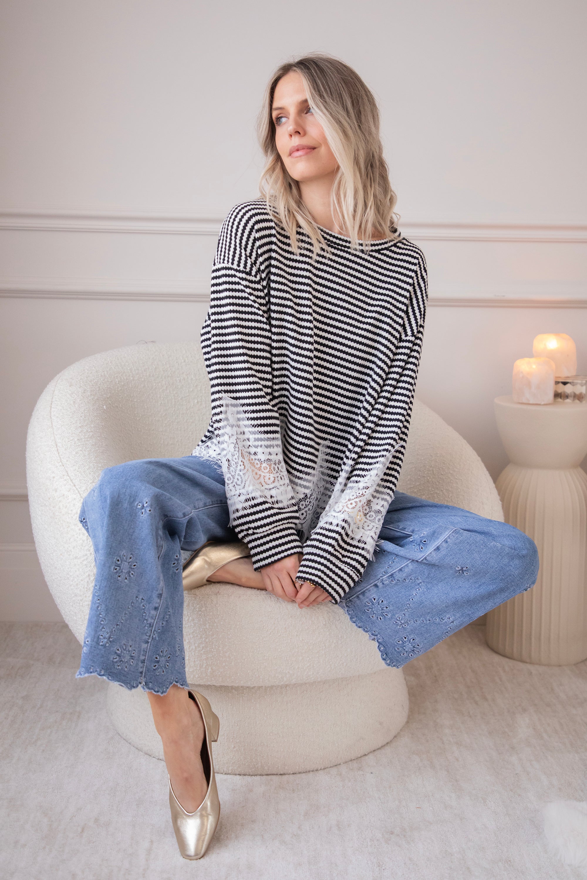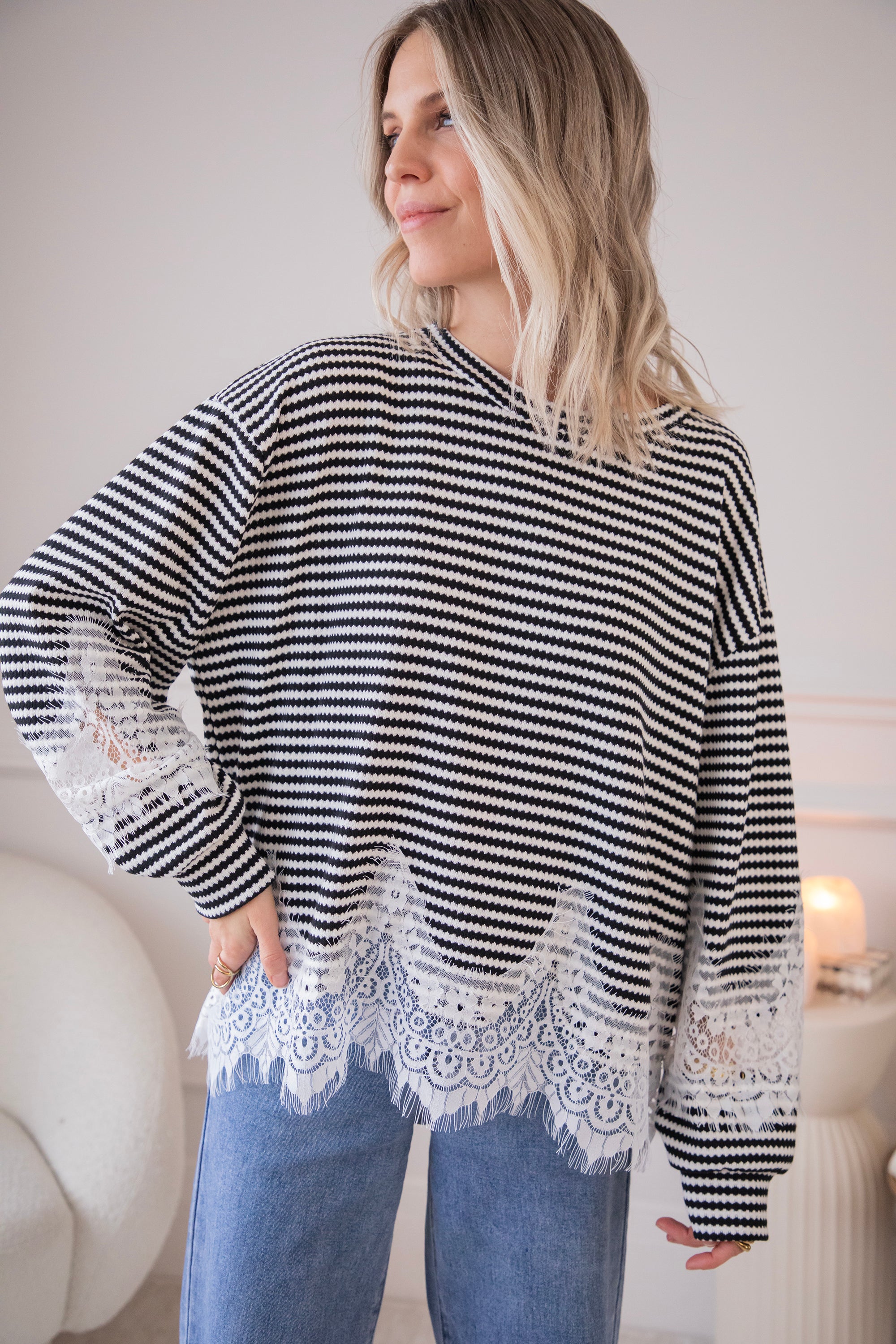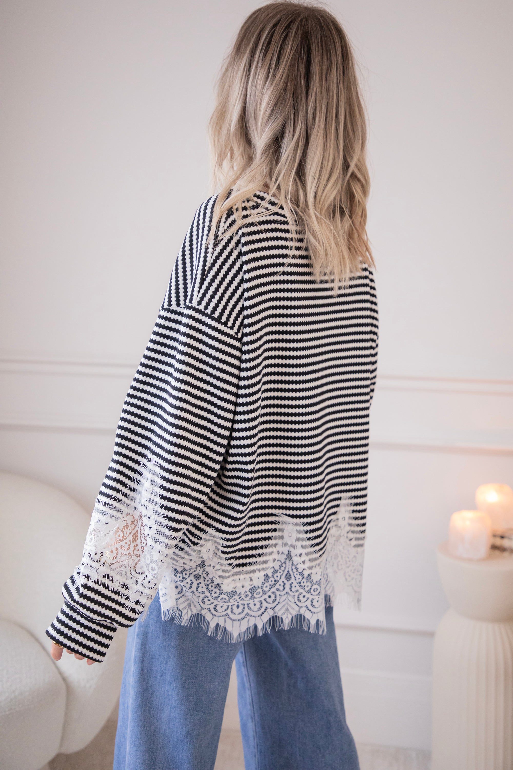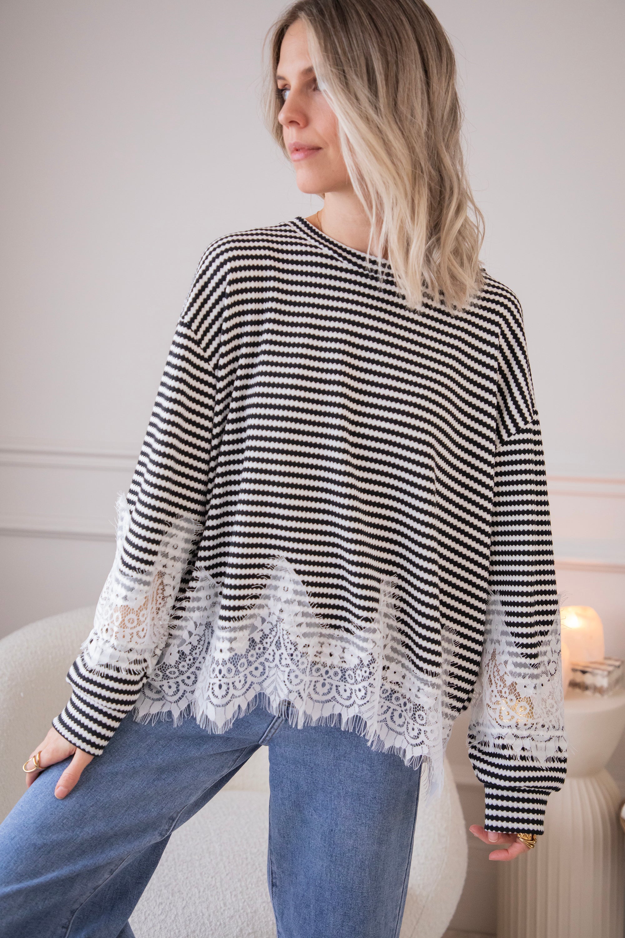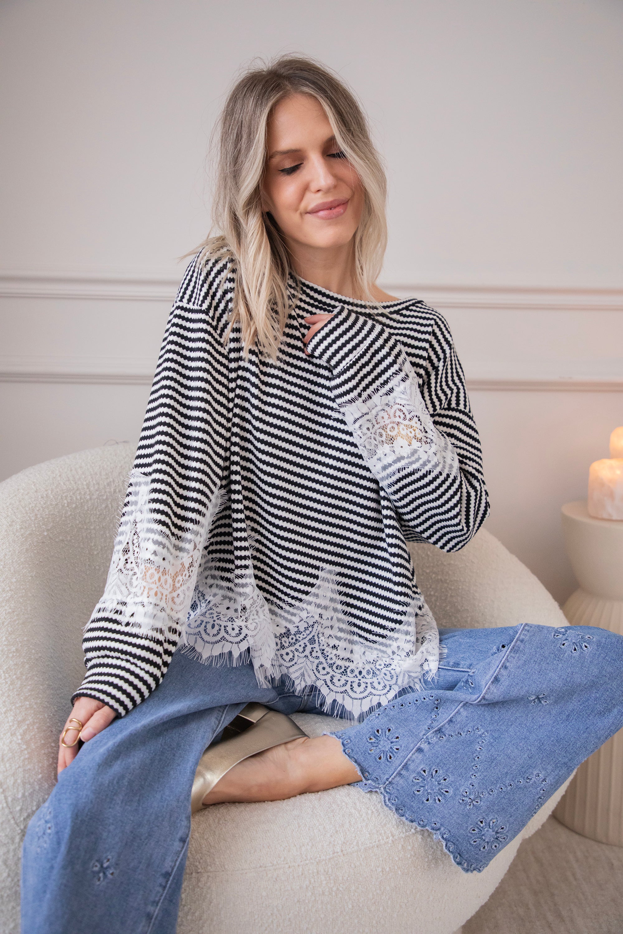 Lace and stripes is a combo we're loving this season! On the one hand, you have the playful, slightly more striking look of the stripes and, on the other, the feminine and soft touch of the lace, which makes it sooo fun and interesting 🖤