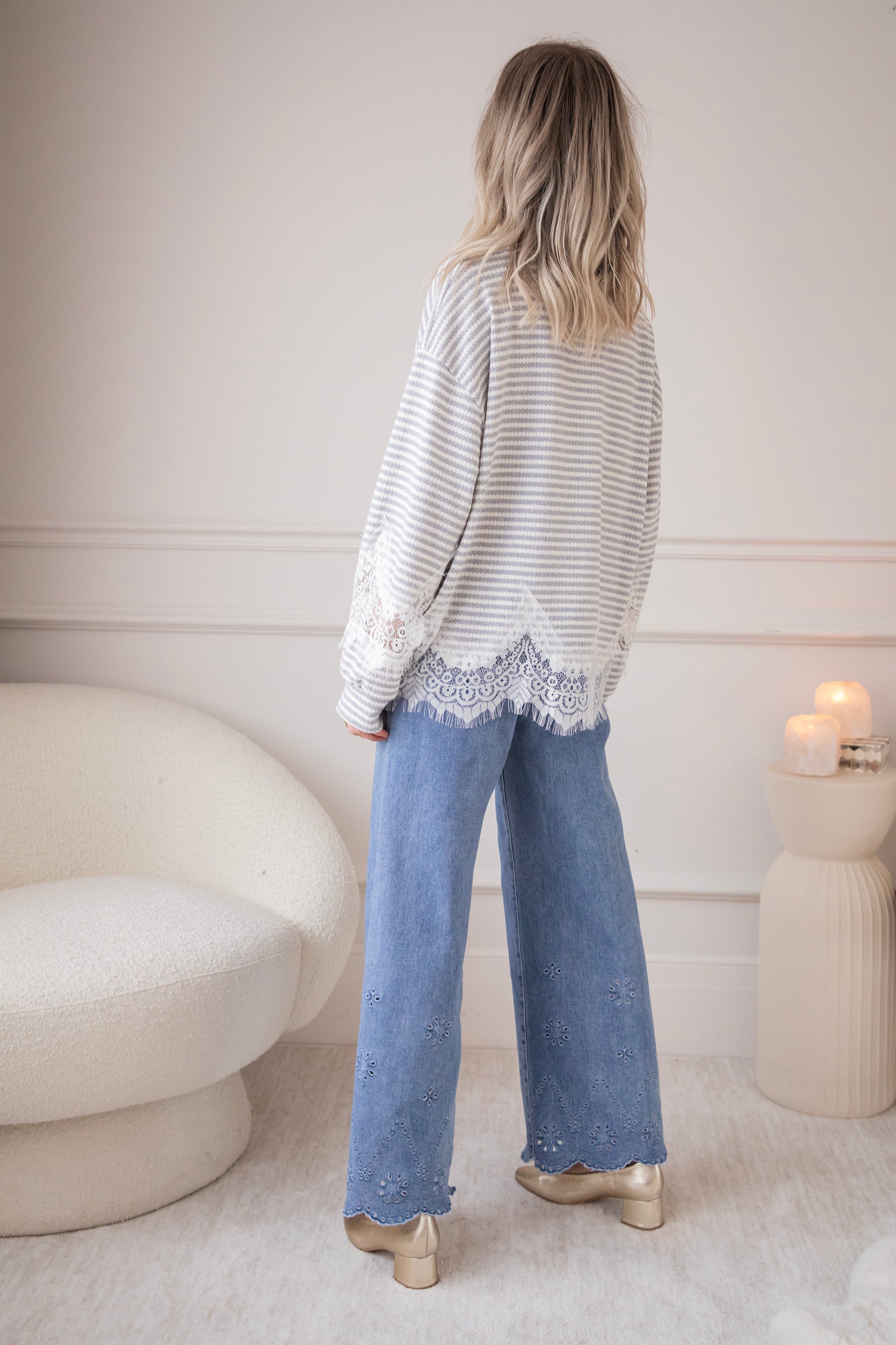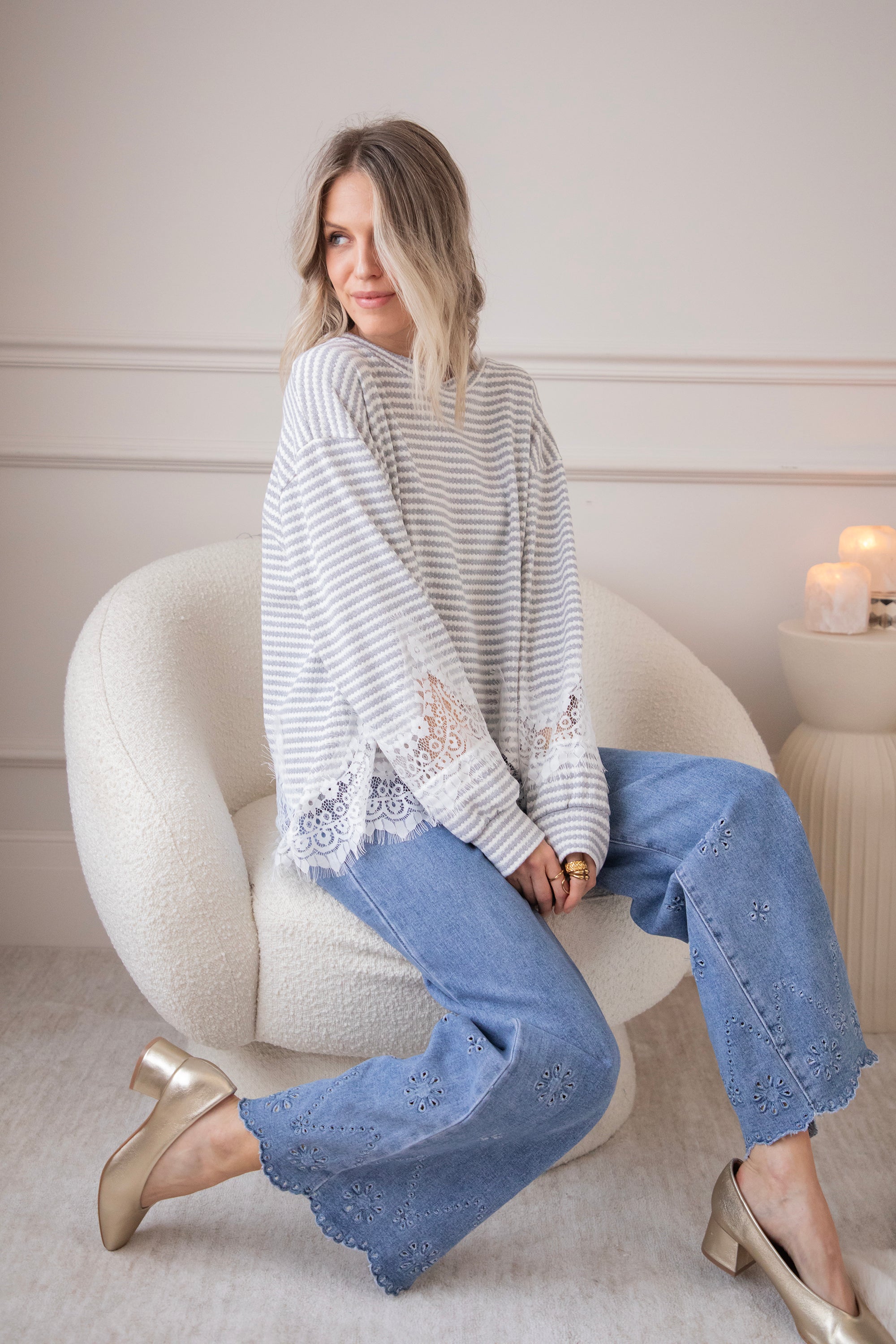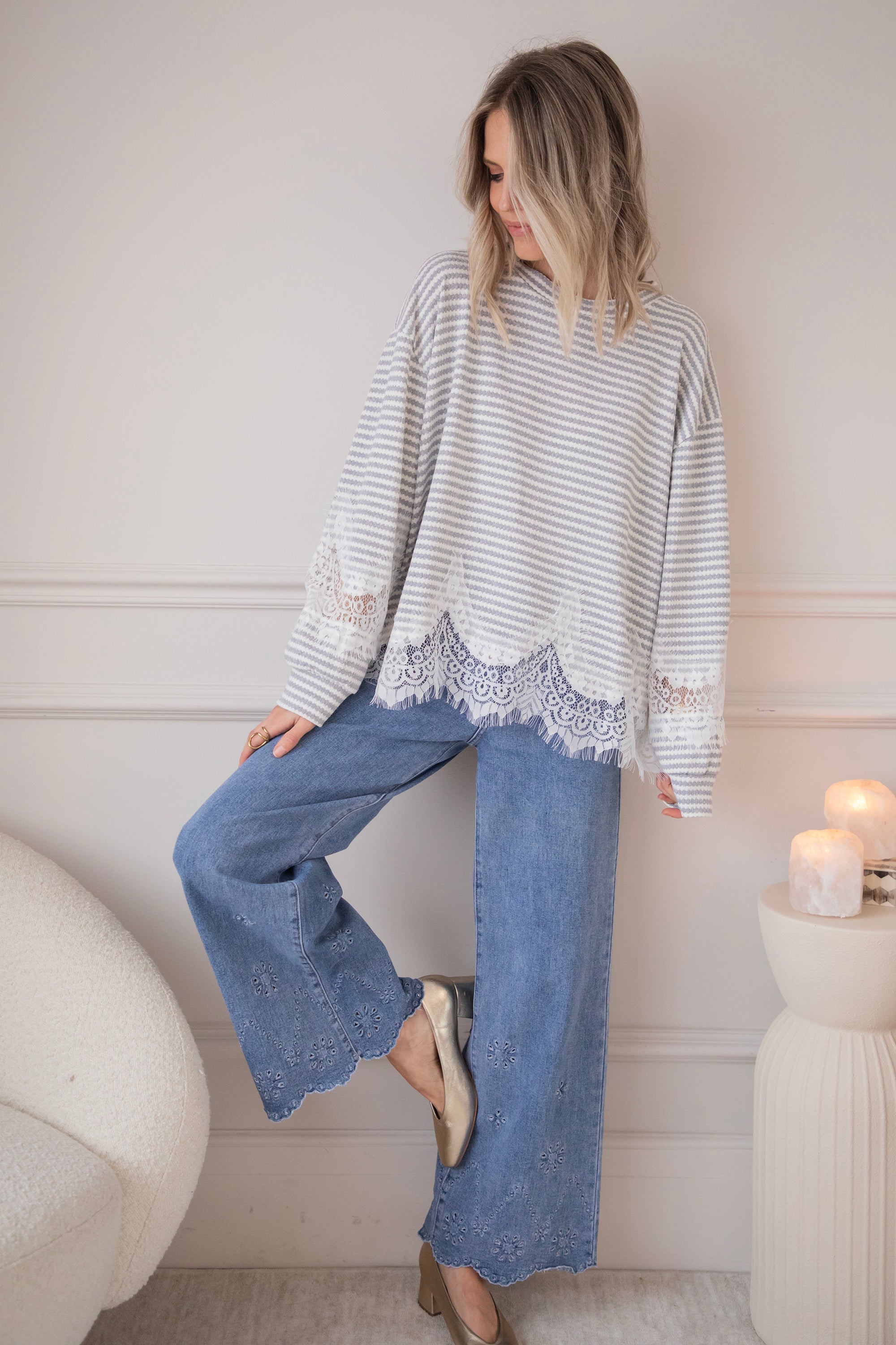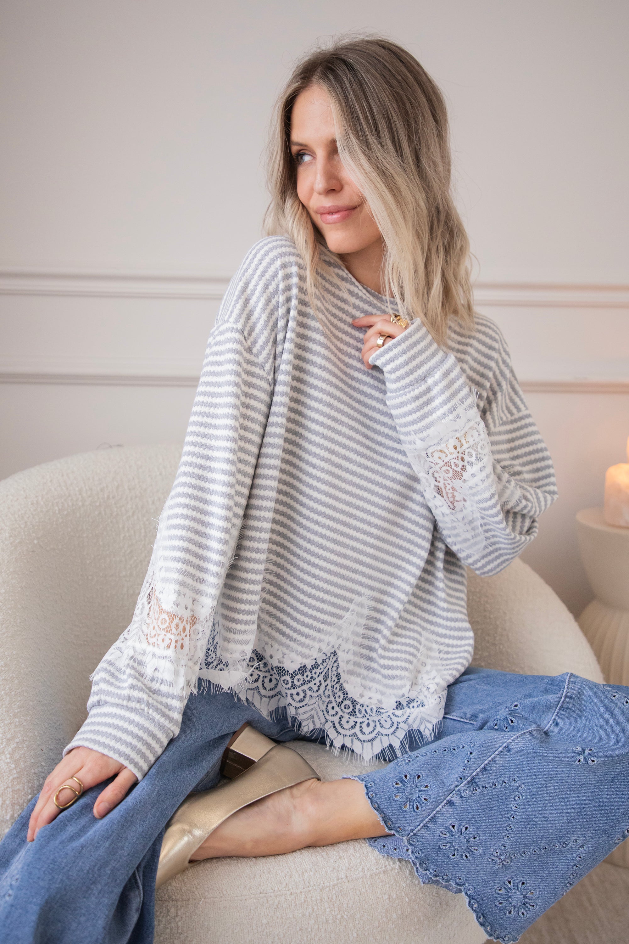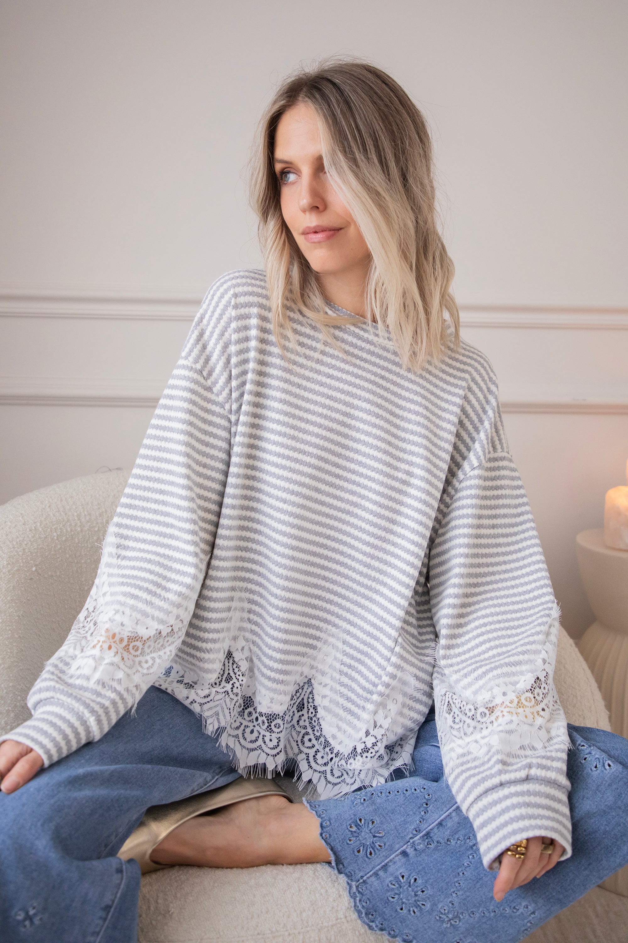 Lace and stripes is a combo we're loving this season! On the one hand, you have the playful, slightly more striking look of the stripes and, on the other, the feminine and soft touch of the lace, which makes it sooo fun and interesting 🩶