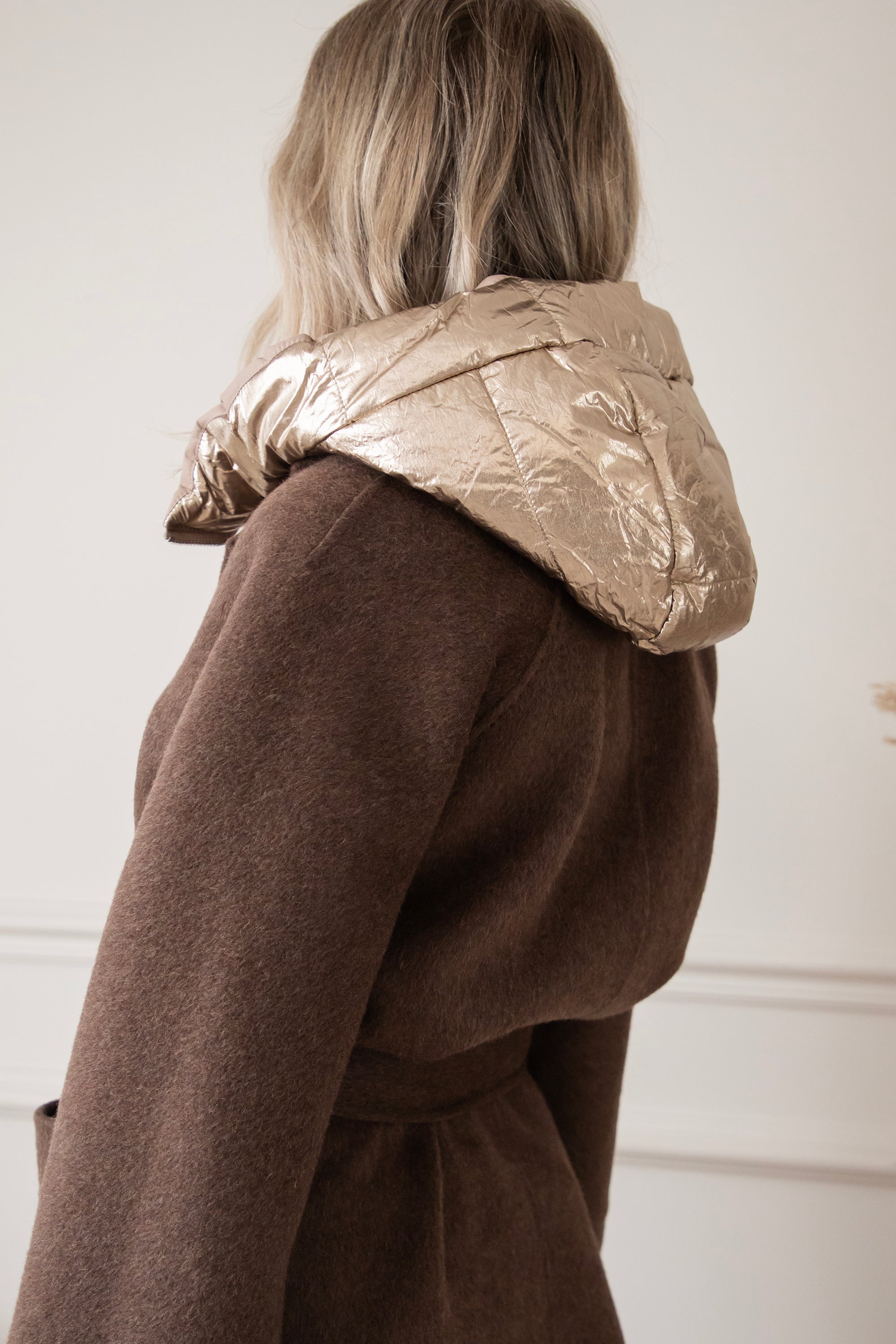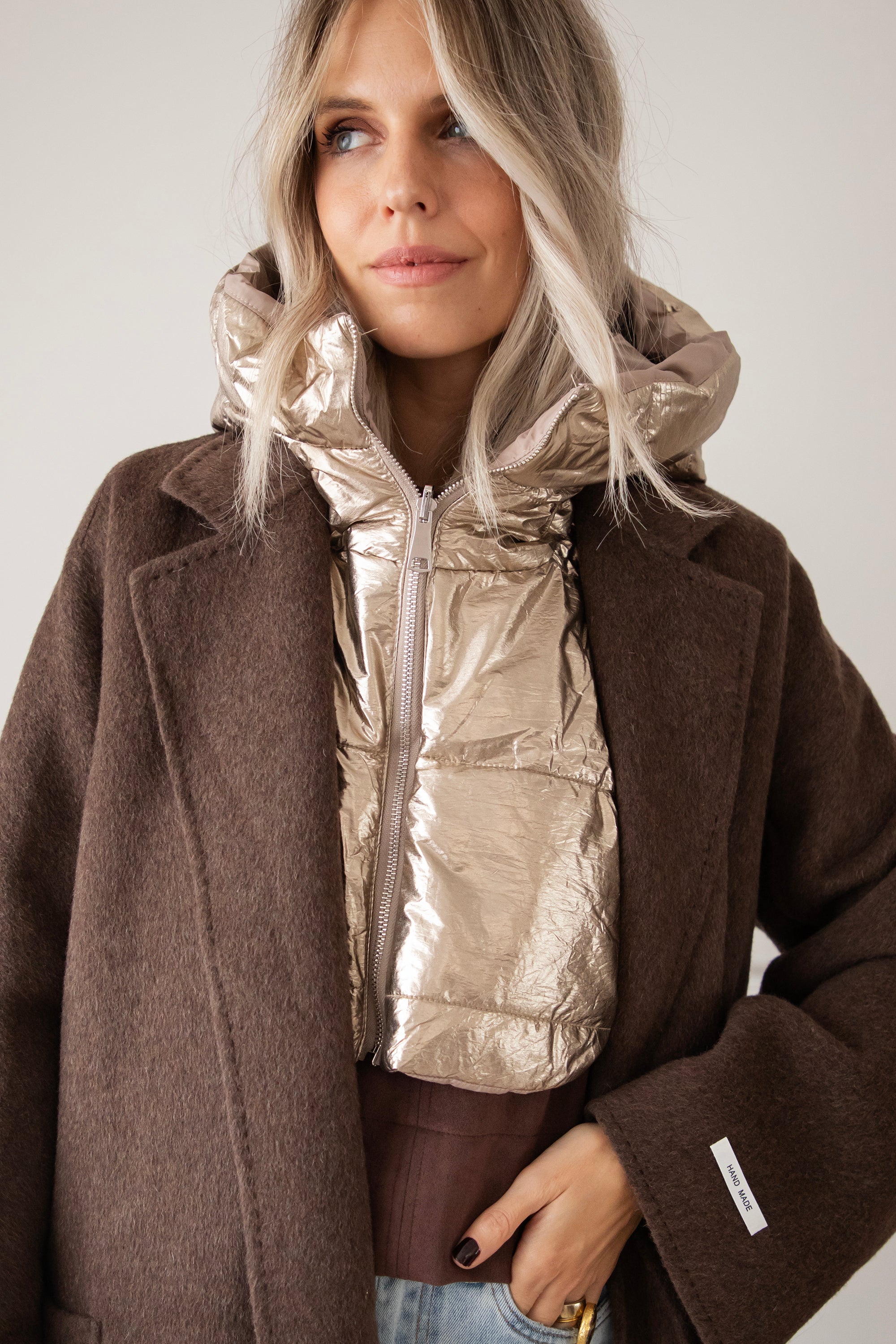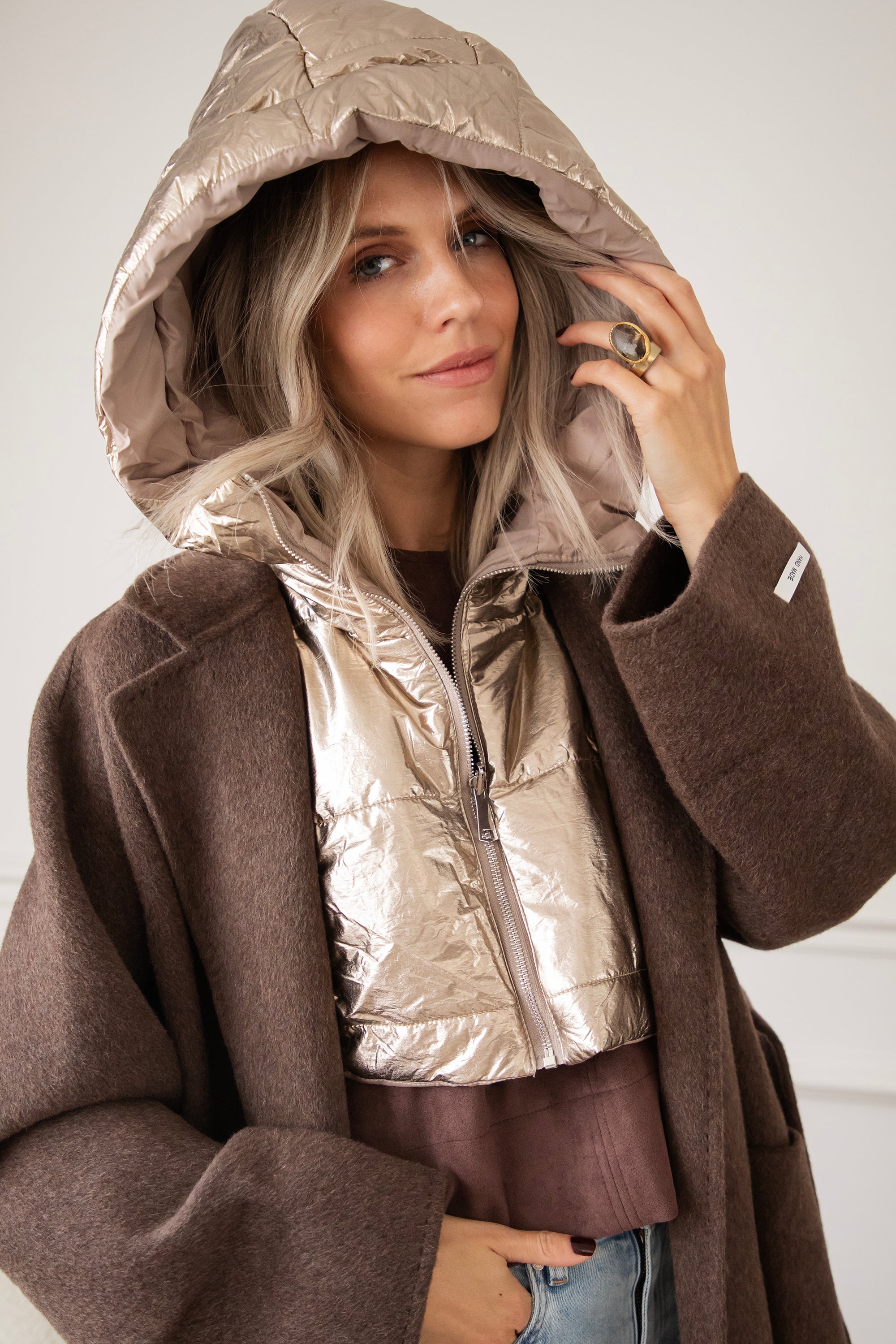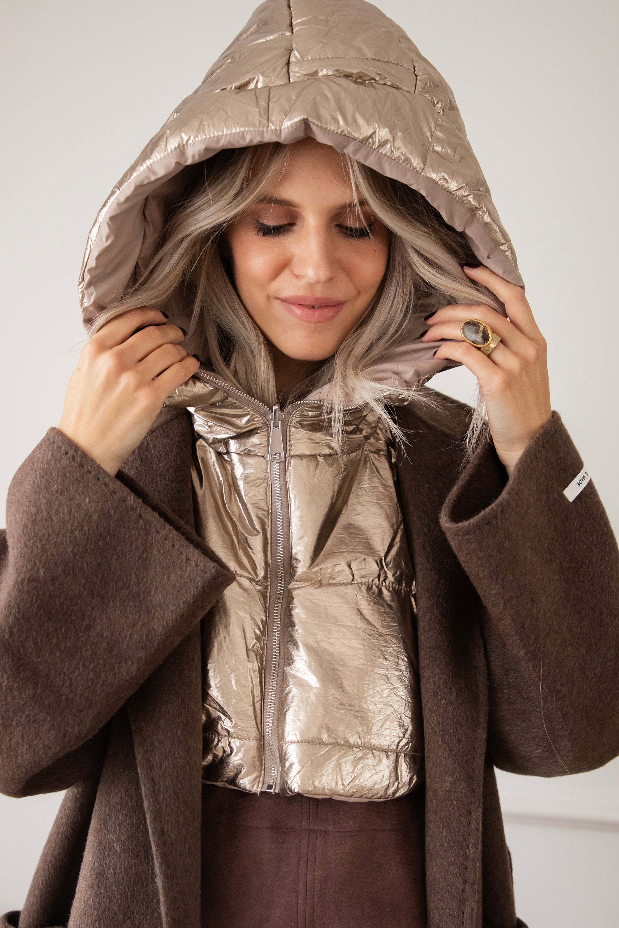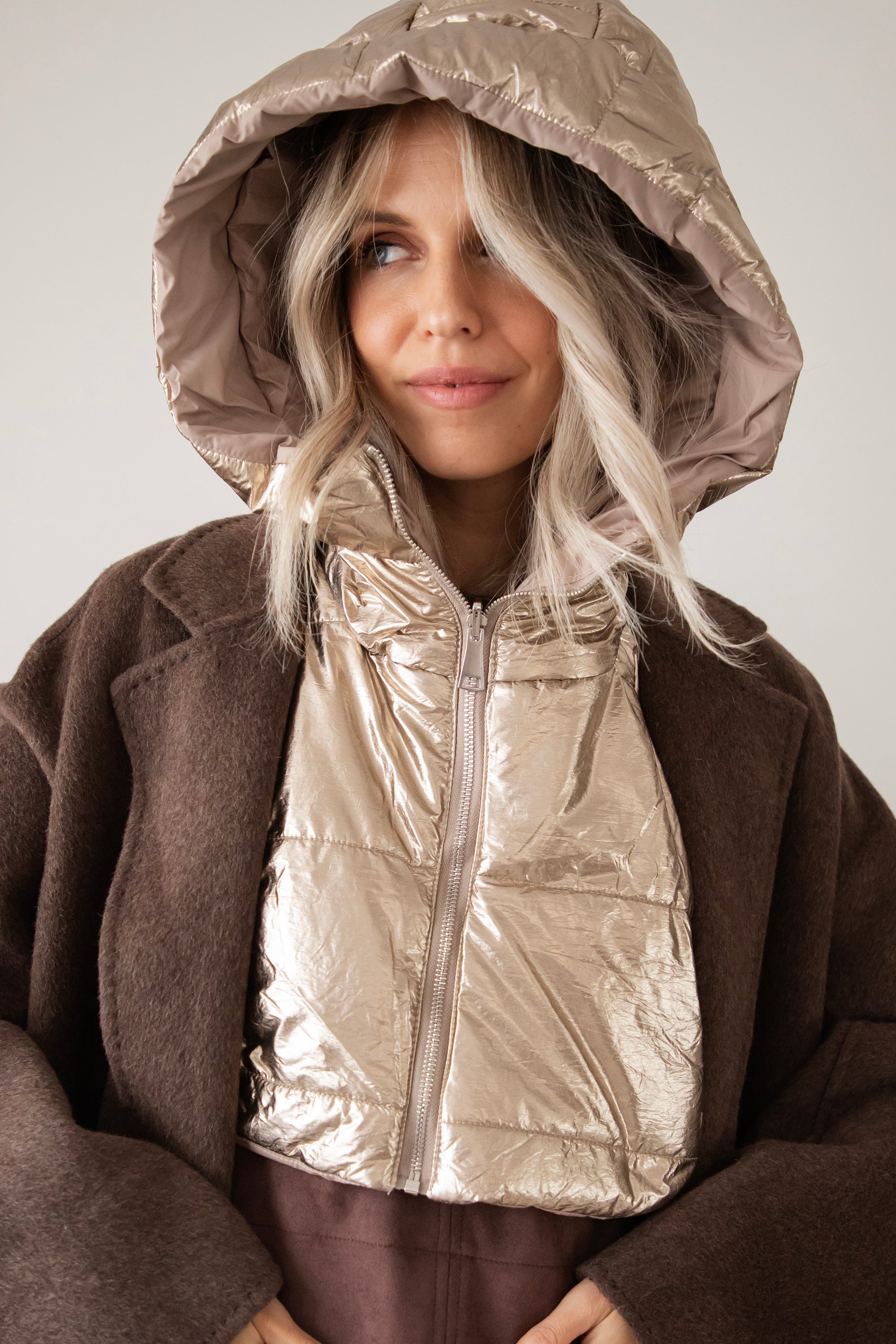 Thanks to its layered down look, it looks super cozy and instantly adds a cool street style accent to your outfit ✨ This shiny gold adds an extra fabulous factor! It's definitely my personal favorite 🤩 The puffer really keeps the cold out, which is nice around your neck!