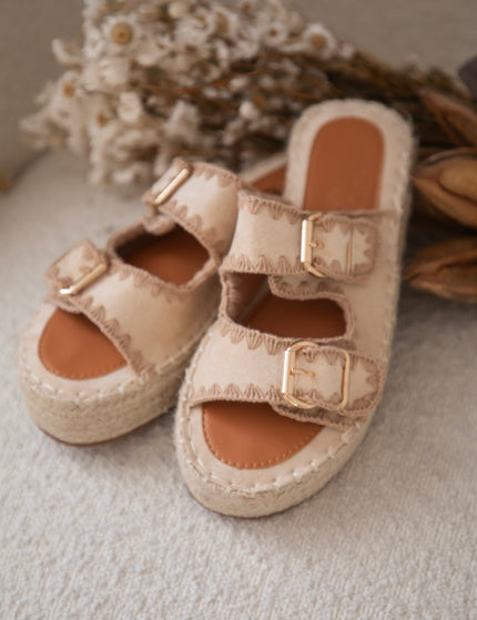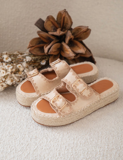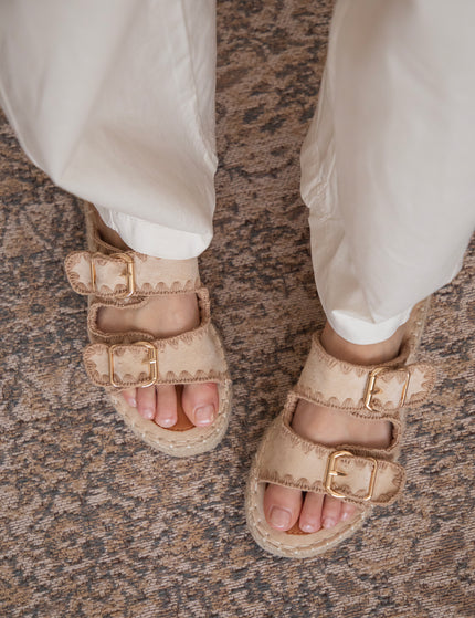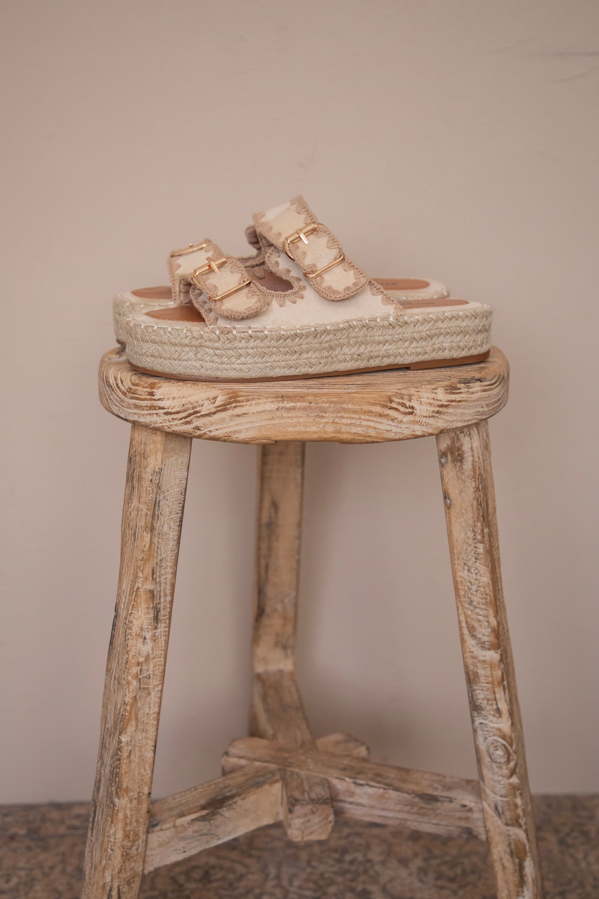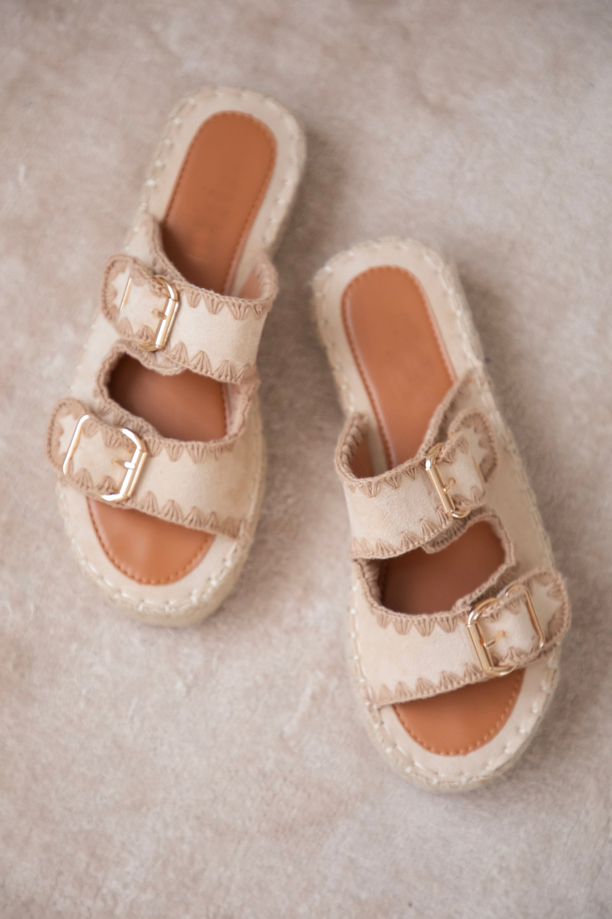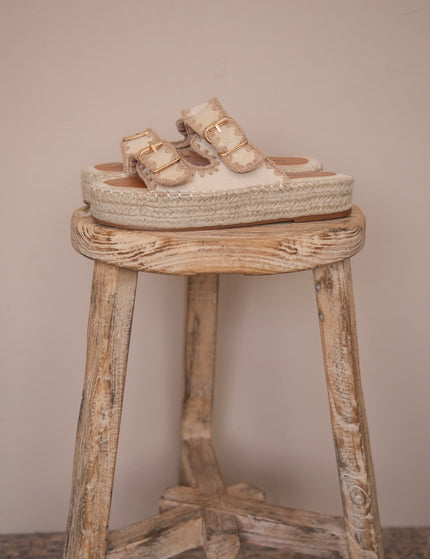They totally exude that bohemian look and feel we love so much! Perfect for all your casual summer days. They are really comfortable thanks to the sturdy platform sole of about 4 cm. And that sole? It is finished with a beautiful beige rattan material that immediately gives it a natural, summery vibe 🌞 The upper sole is made of PU leather 🤎