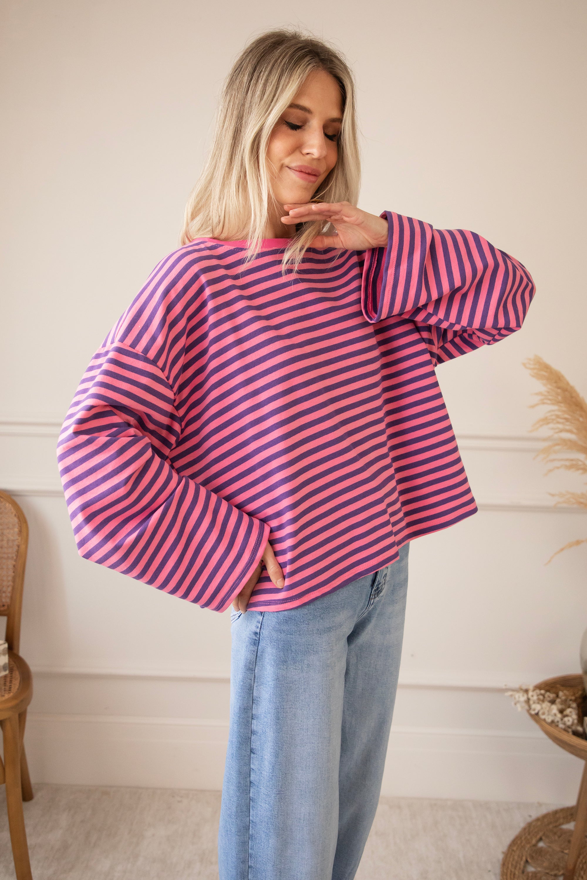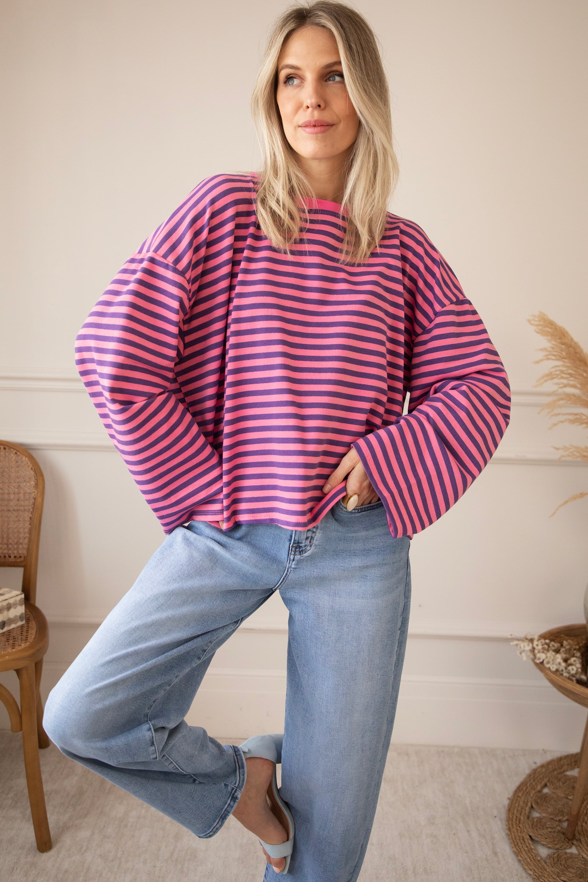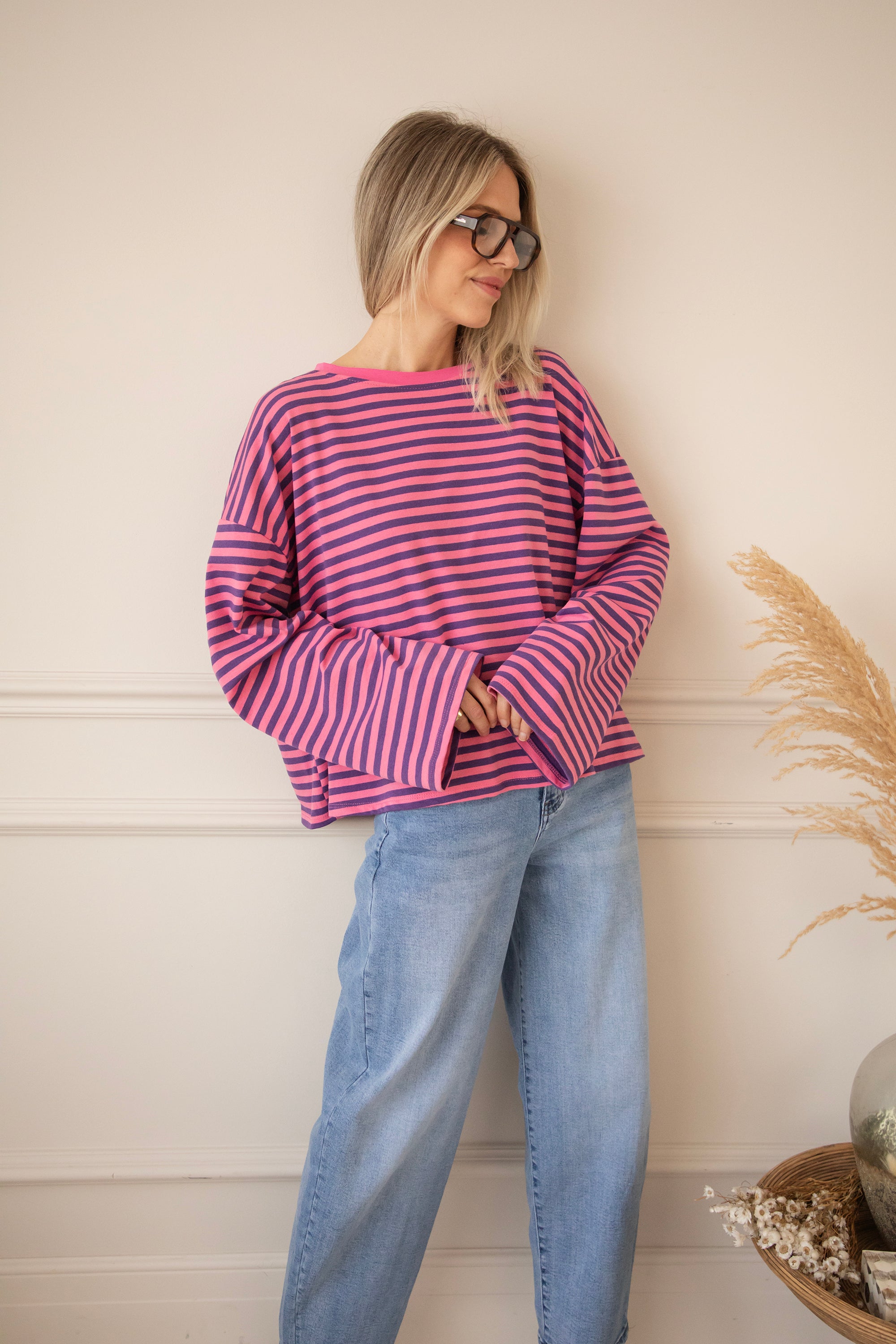 Sadie Stripe Amour Pink/Dark Blue - Longsleeve