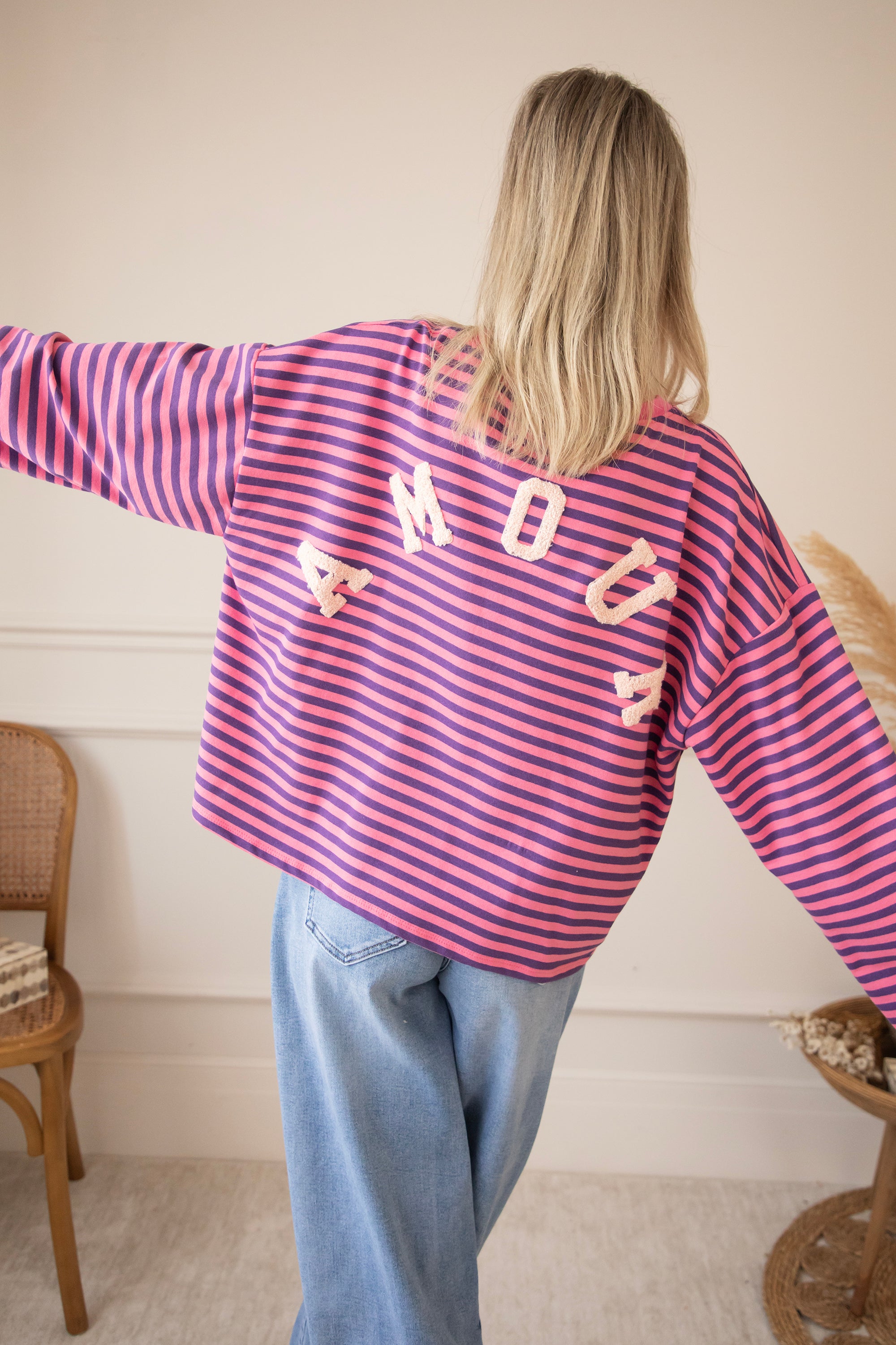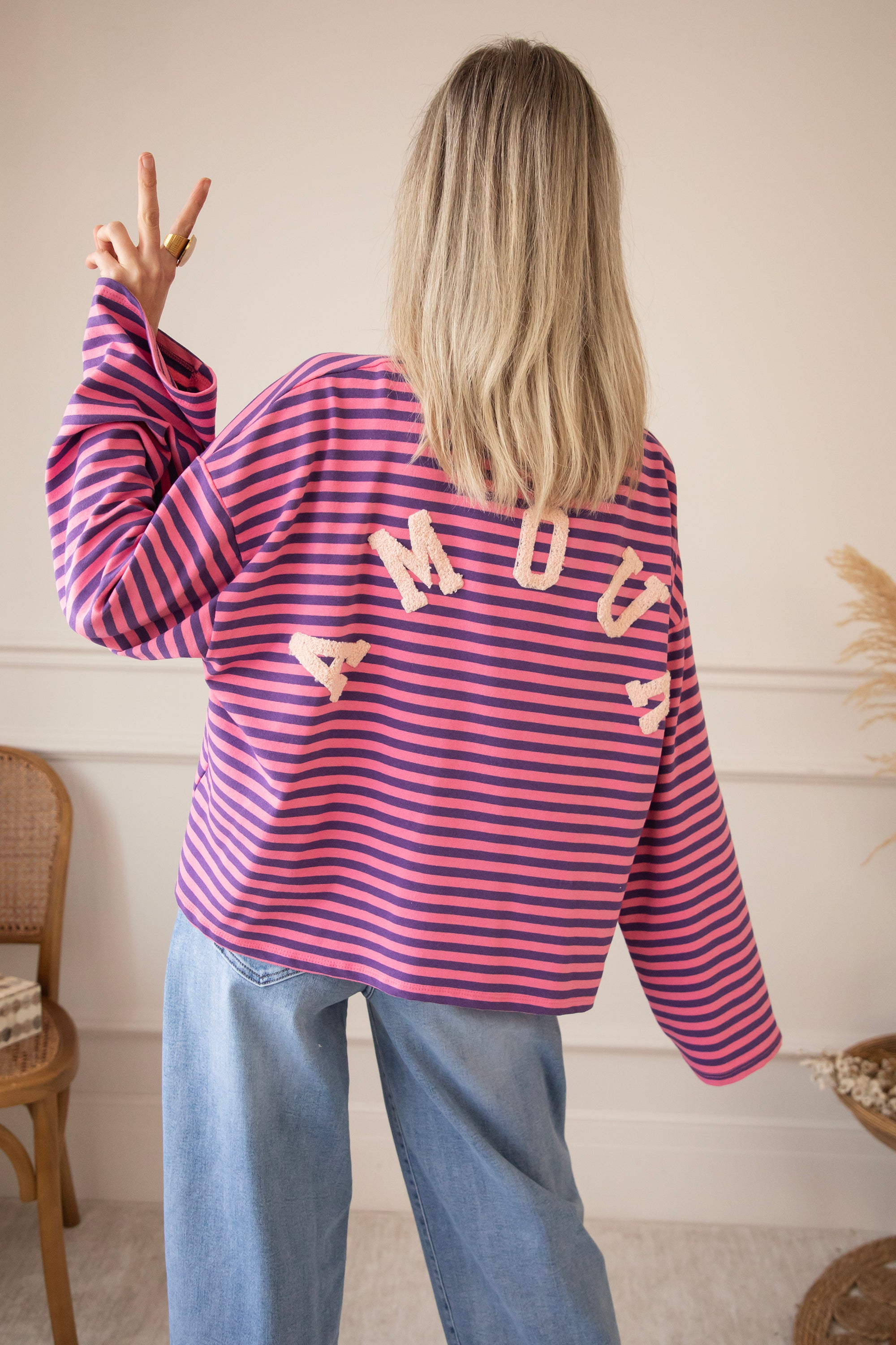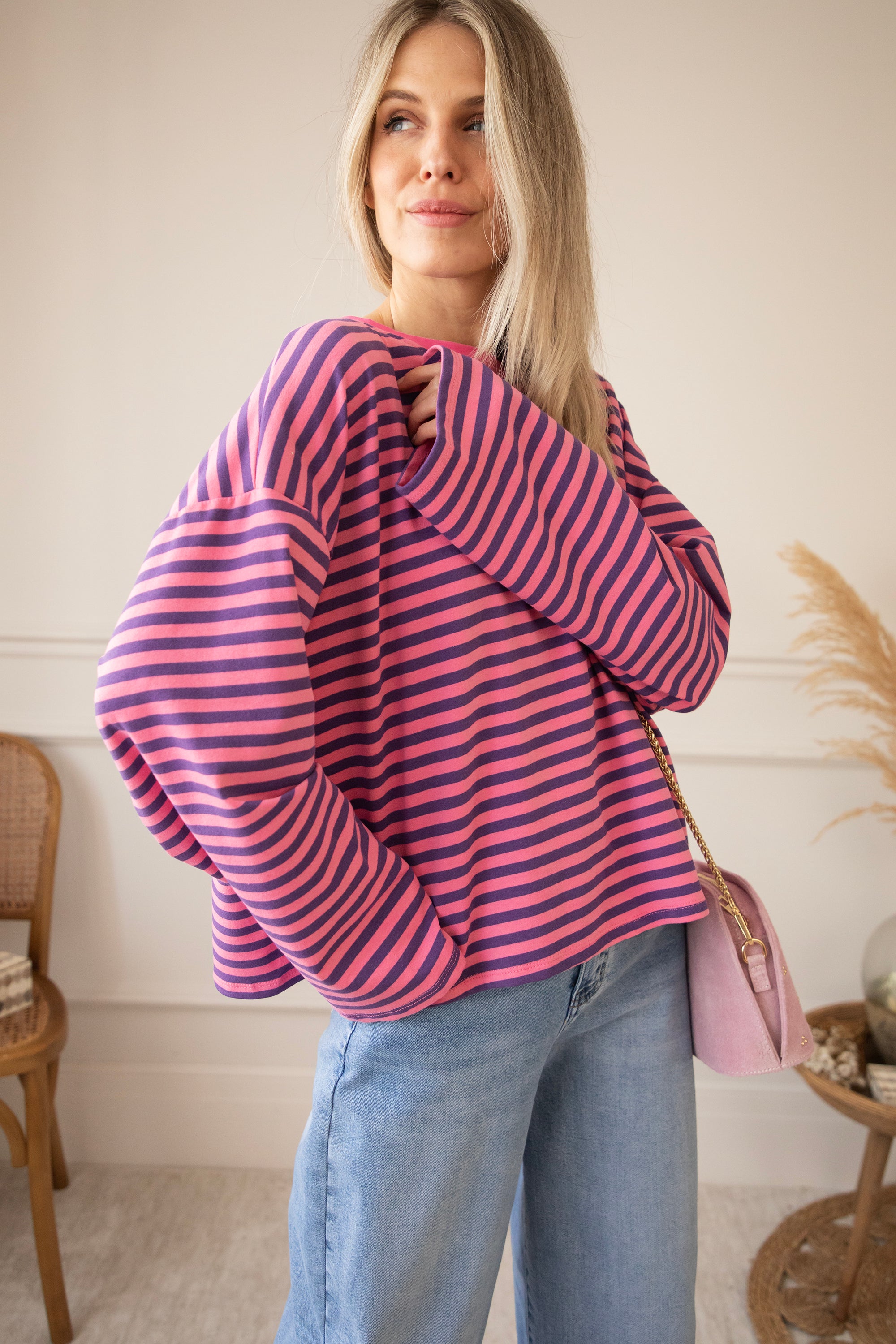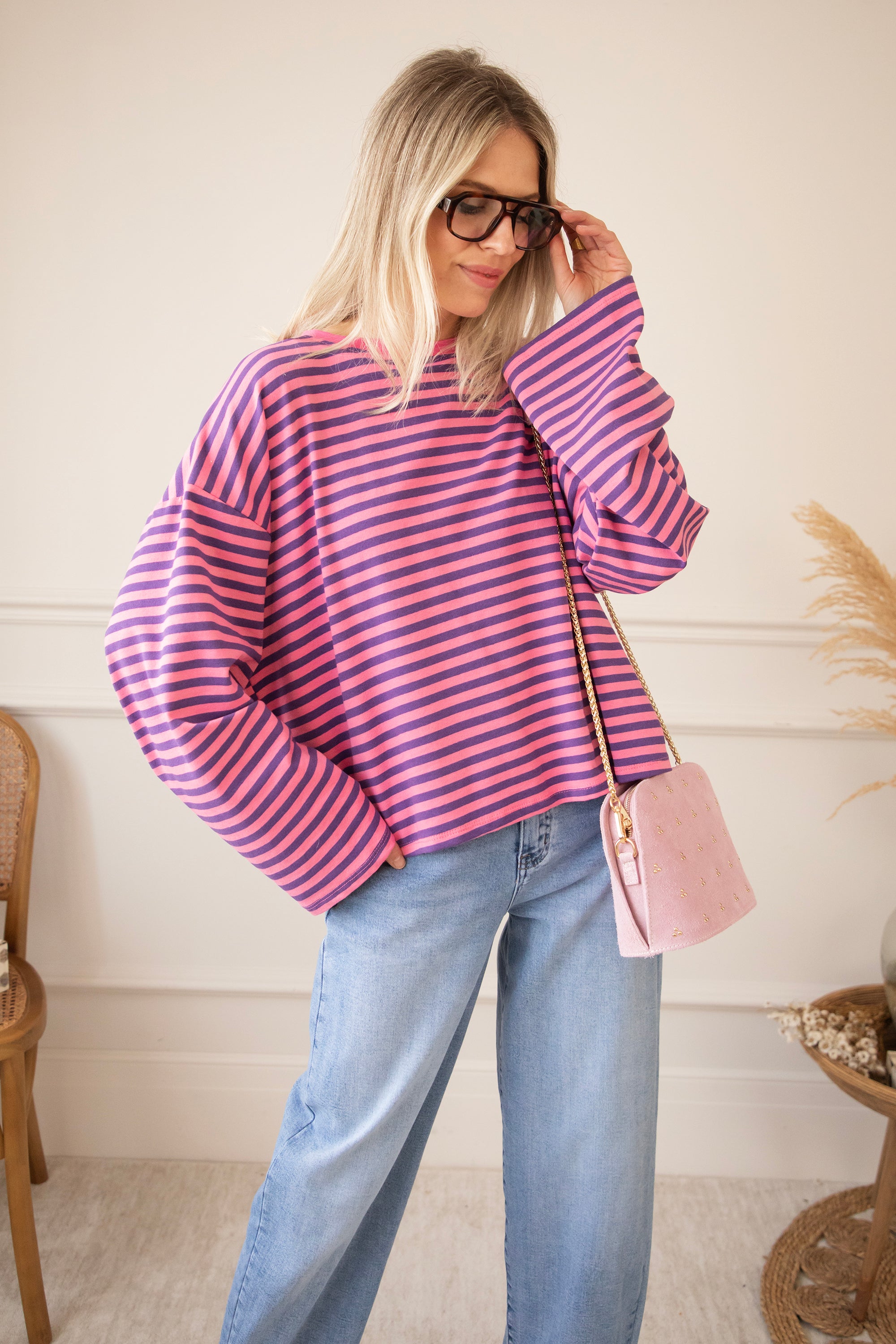 Sadie Stripe Amour Pink/Dark Blue - Longsleeve
