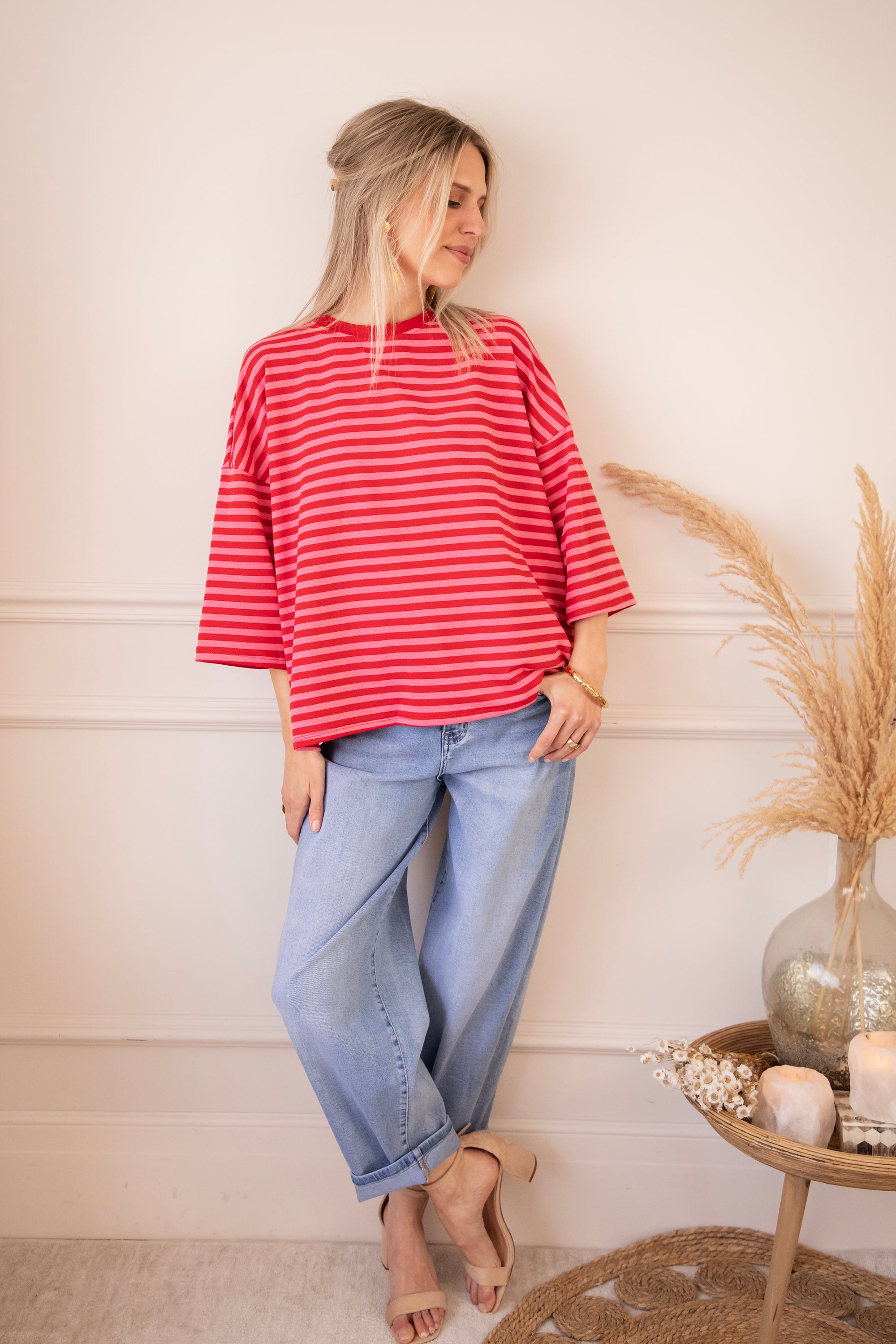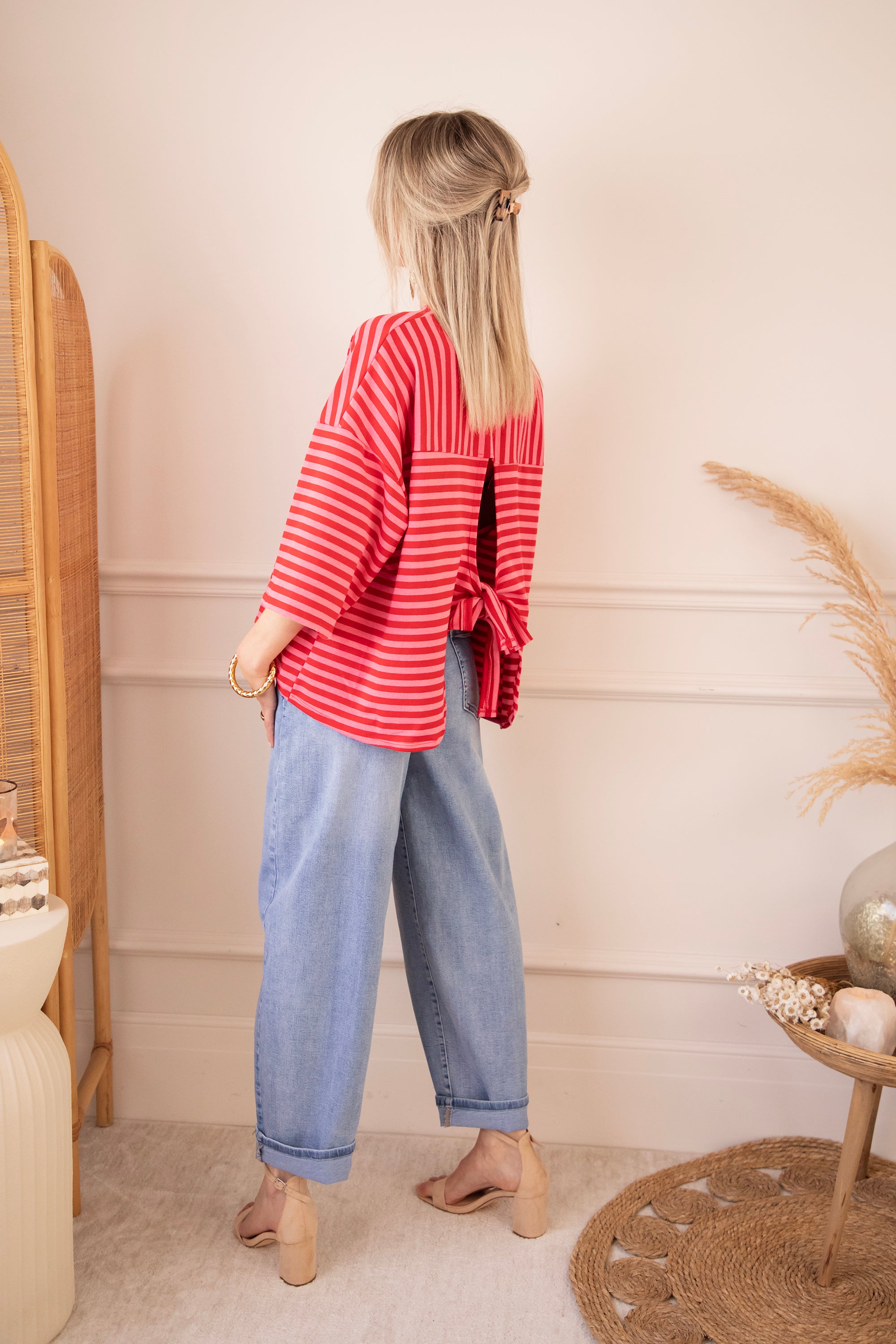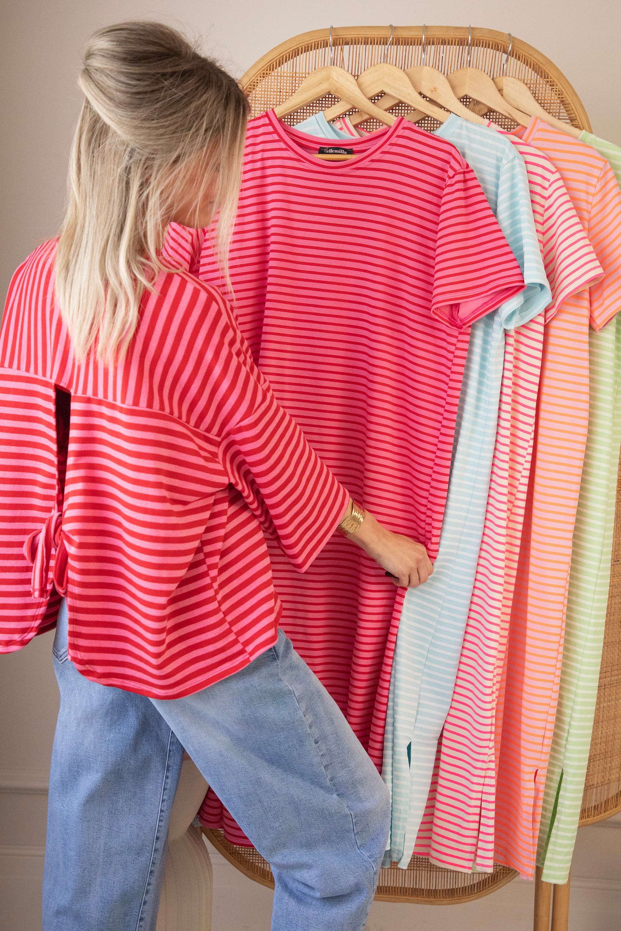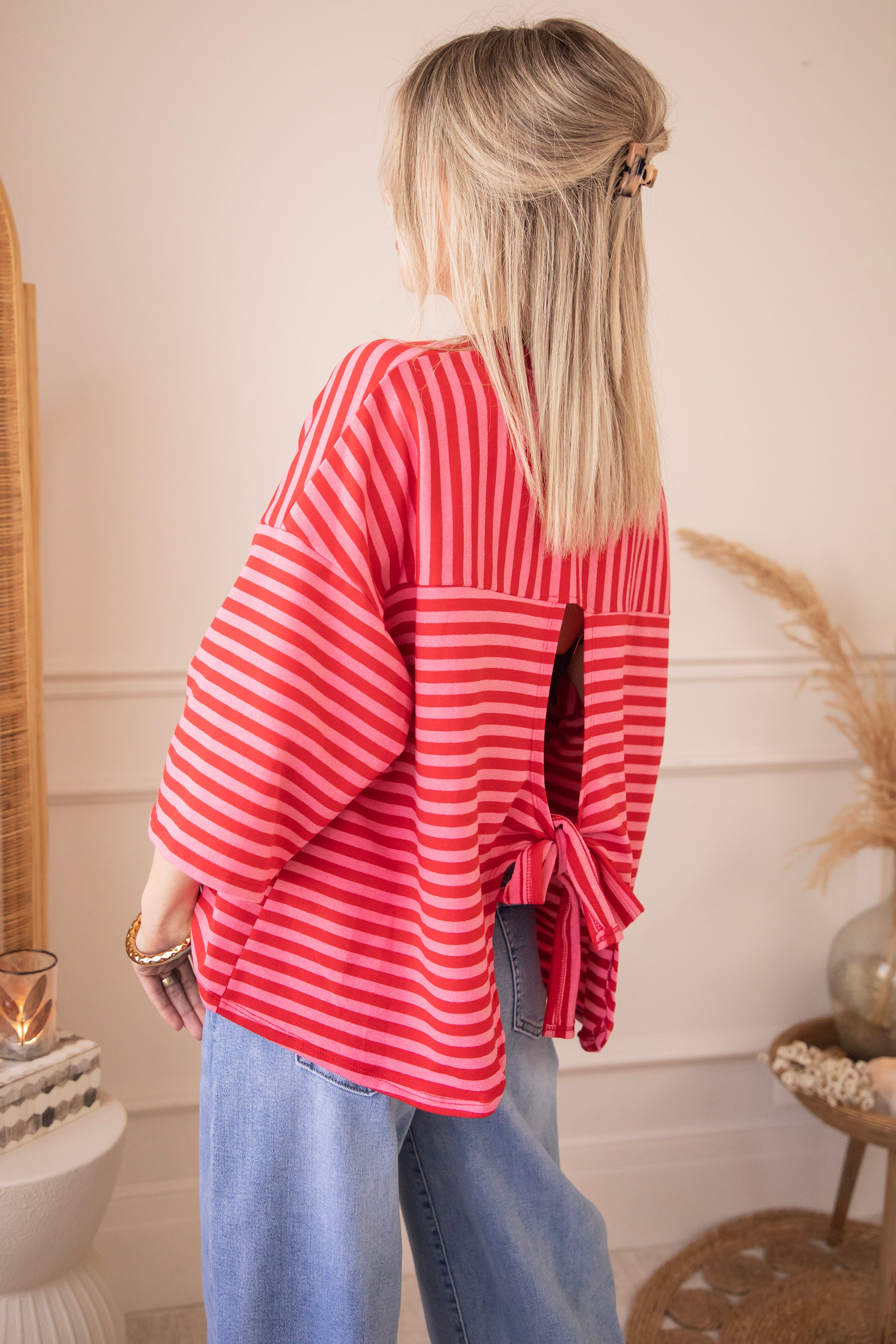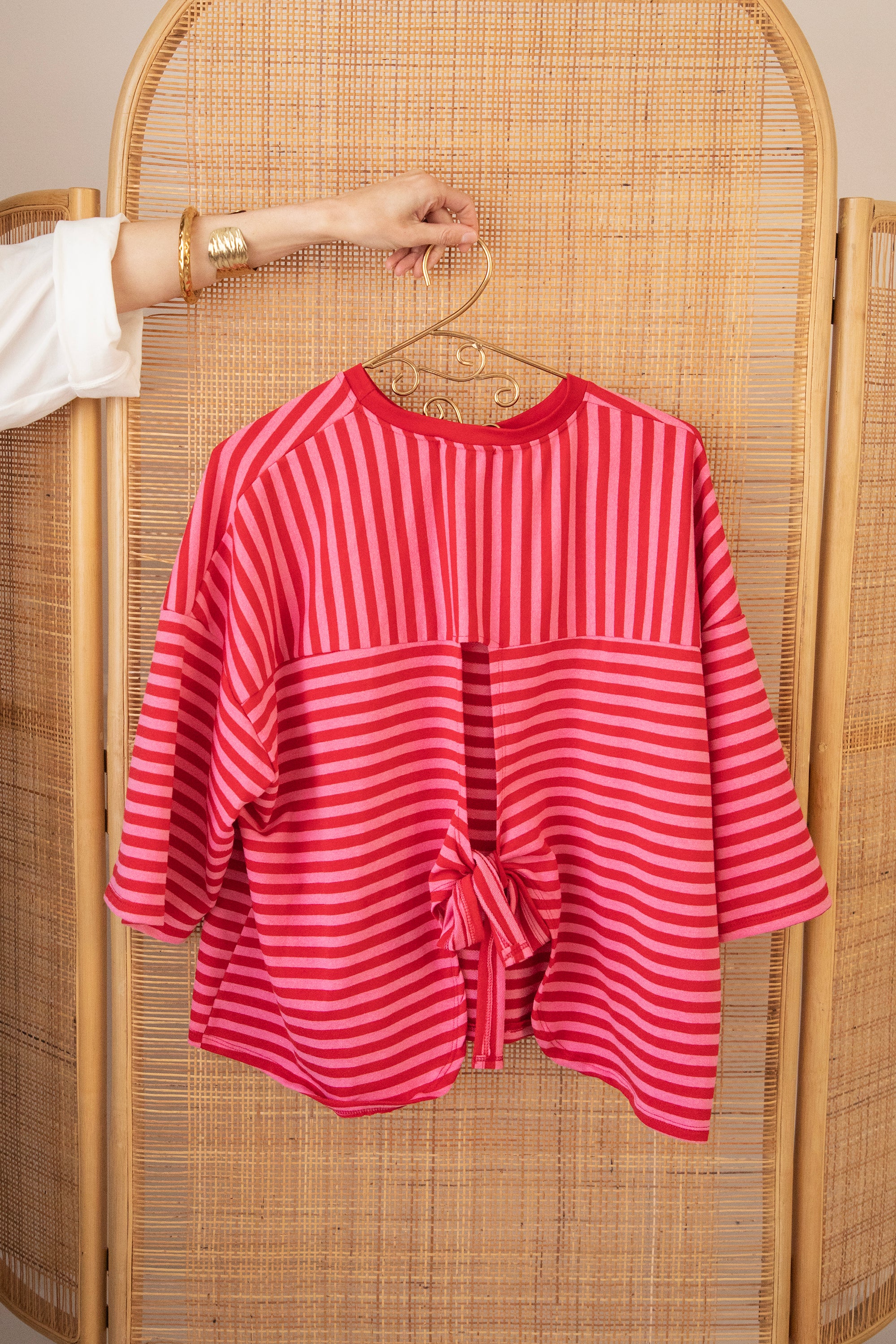 Sadie Stripe Bow Pink/Red - T-Shirt