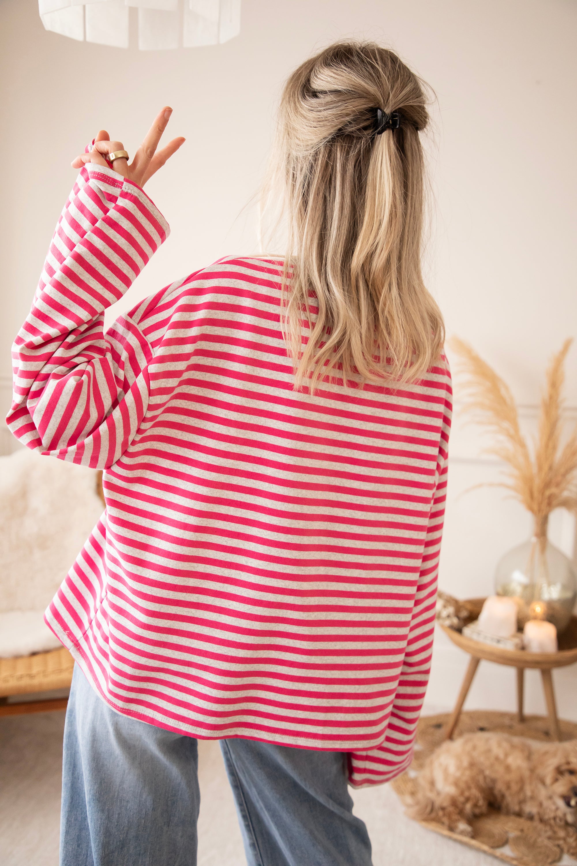 Oehhh the Sadie Stripe is still one of my absolute faves from the collection! 🥰 This version with light grey stripes and bold fuchsia stripes creates such a stunning contrast. Soft and neutral with just that spicy pop of color in between, love it! Totally that combo that catches the eye but stays super wearable 💗
