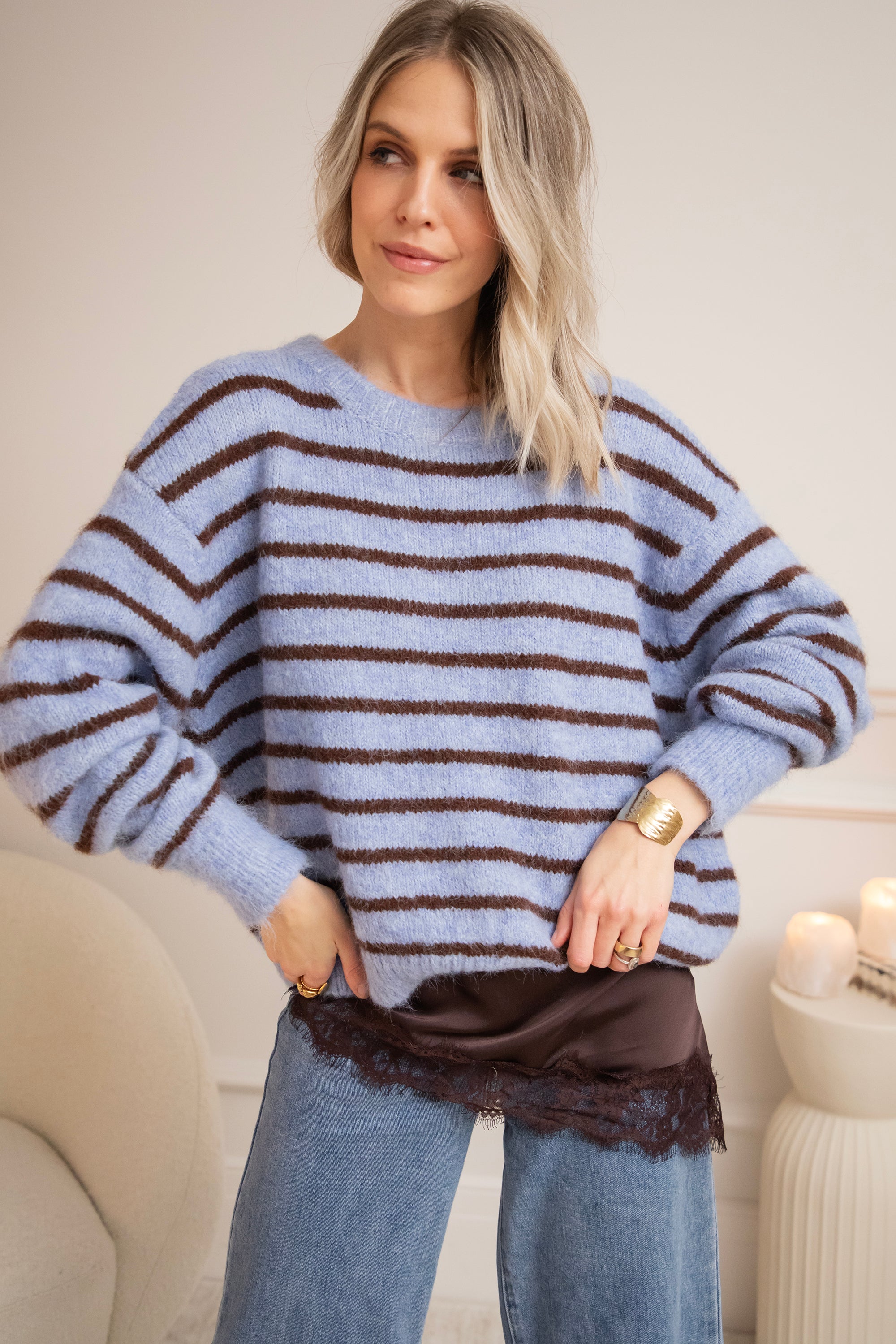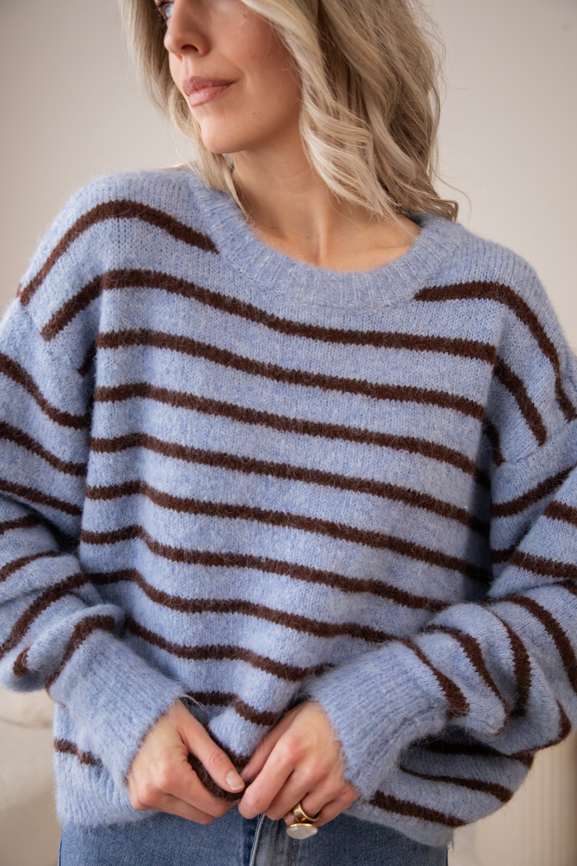 Samantha Stripe is pure happiness in knit form! Stripes are always a good idea, but in fall colors they're even more fun! Samantha Stripe is the kind of sweater you'll want to cuddle up in forever π€ With its soft knit and baggy fit, it's the ultimate fall essential. The fresh blue and warm brown are a beautiful combination that I don't have in my closet yet, sooo you're mine, hihi!