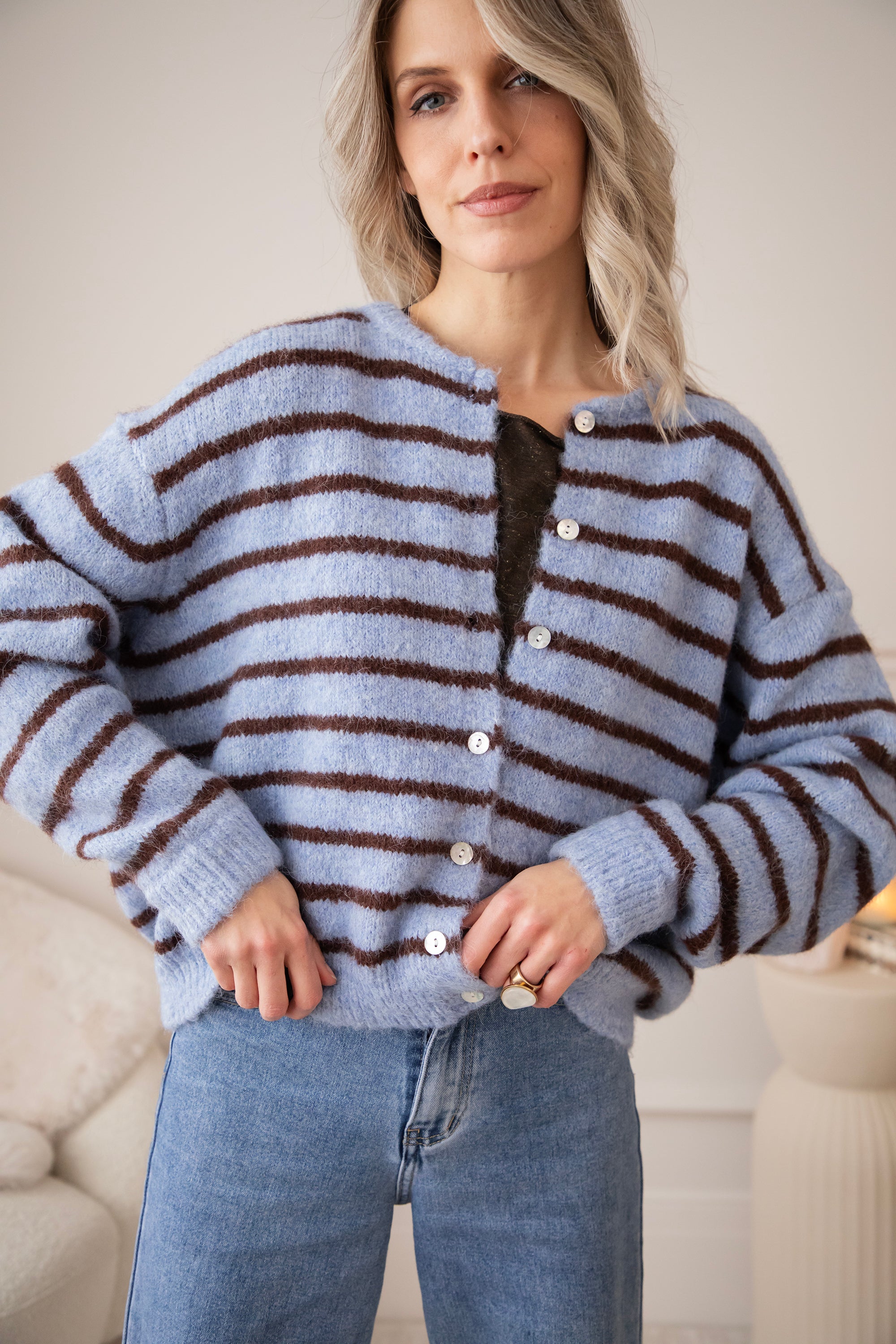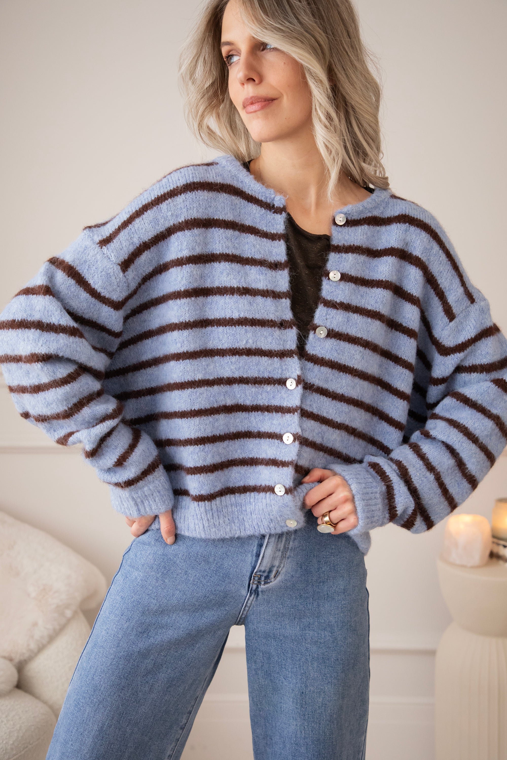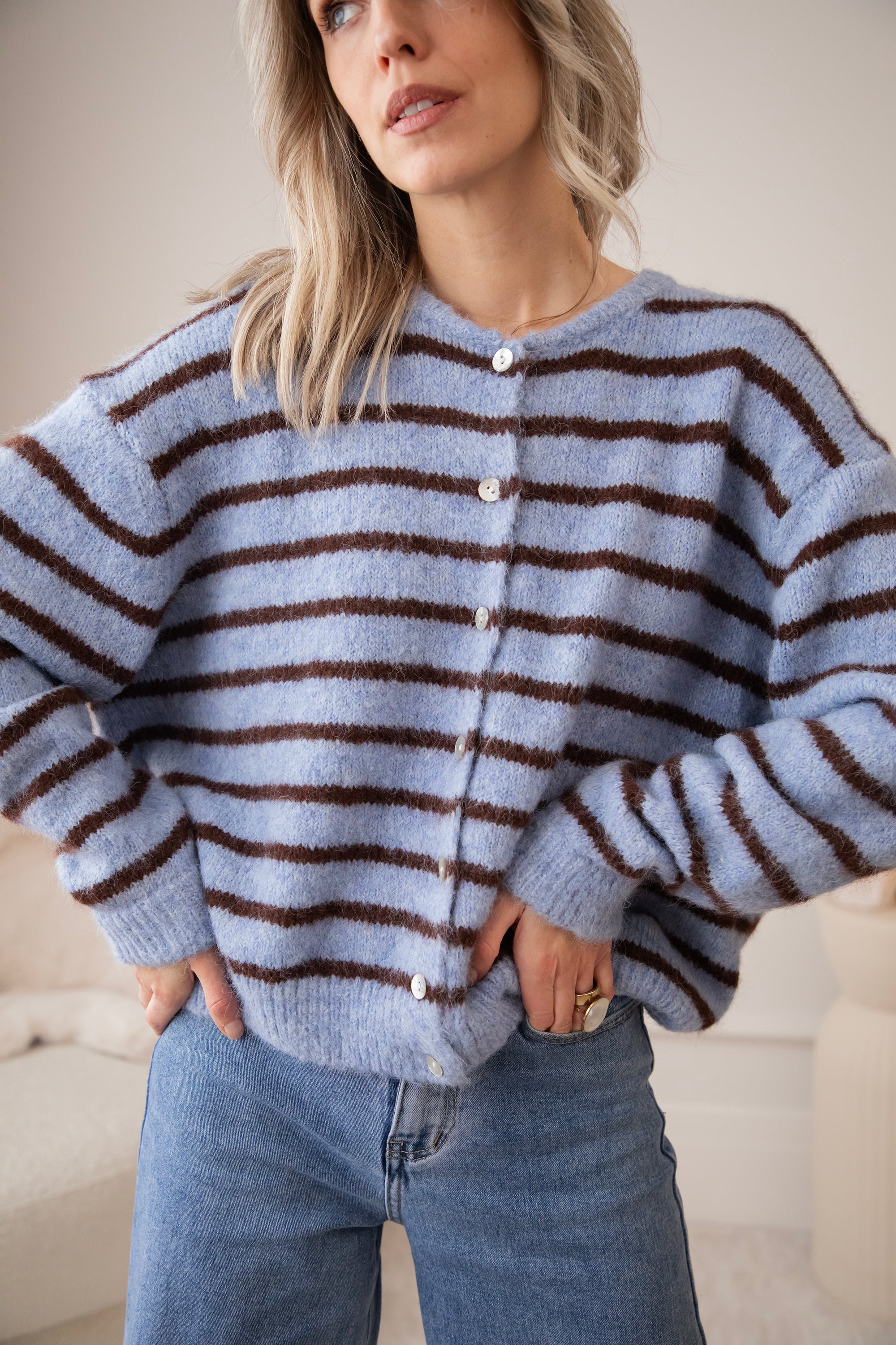 Samantha Stripe Blue/Brown - Cardigan