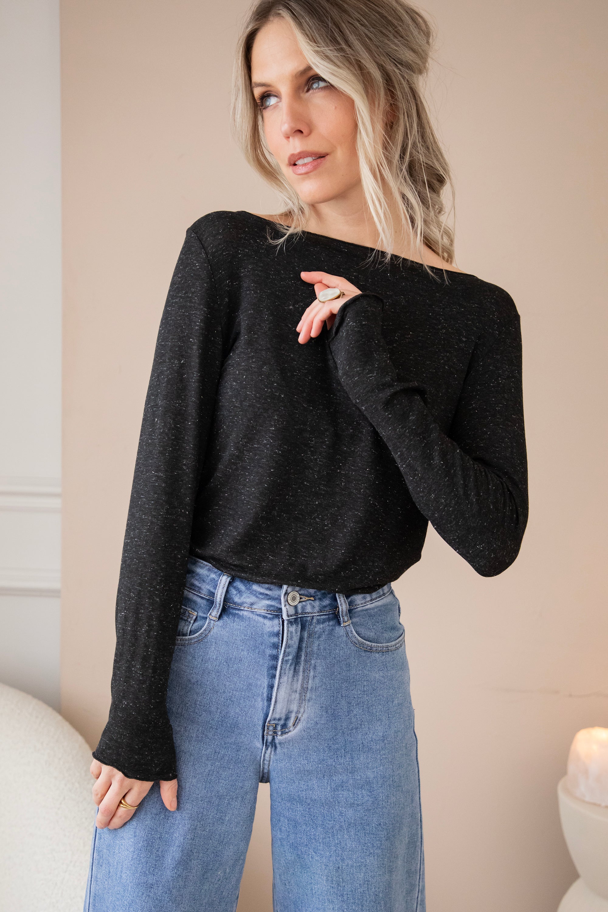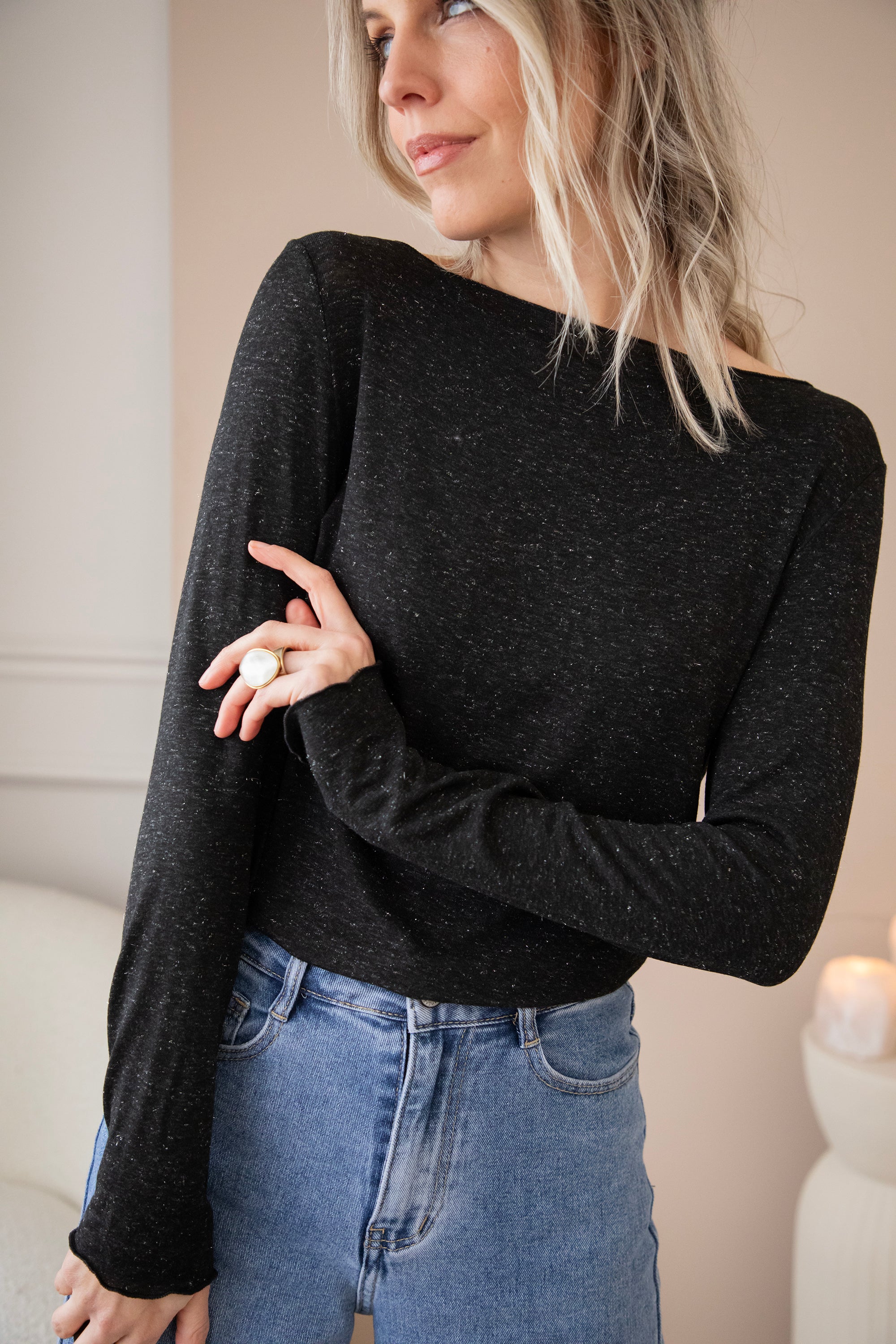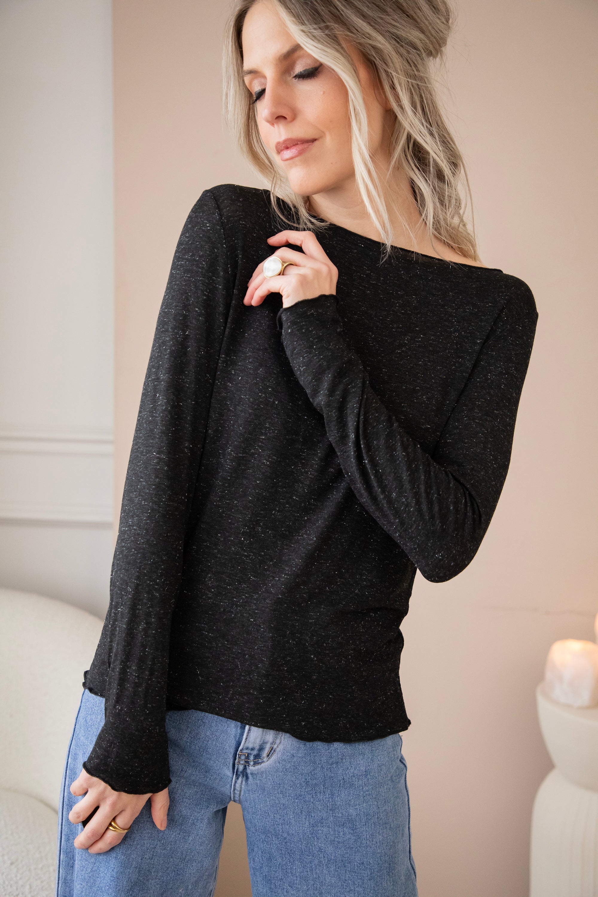 I can never have enough plain long-sleeved tops in my wardrobe; they are so easy to combine and great for layering π₯° Smooth Sprinkles is a thin top, subtly embellished with silver sprinkles in the fabric β¨ It is made from one of the most delightful fabric blends: viscose, nylon, elastane, and cashmere. All soft and smooth materials. A piece like Smooth Sprinkles can be worn all year round π