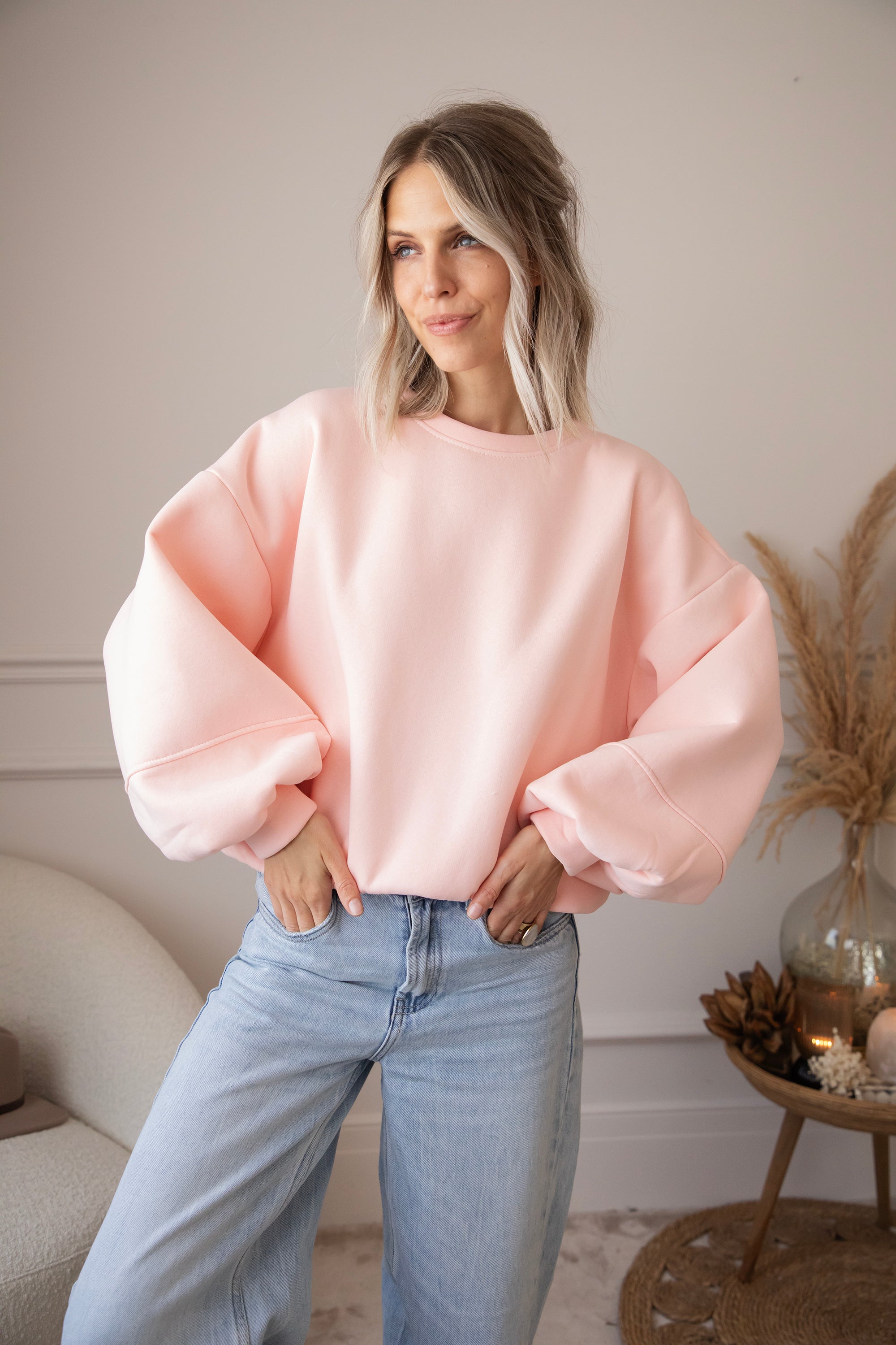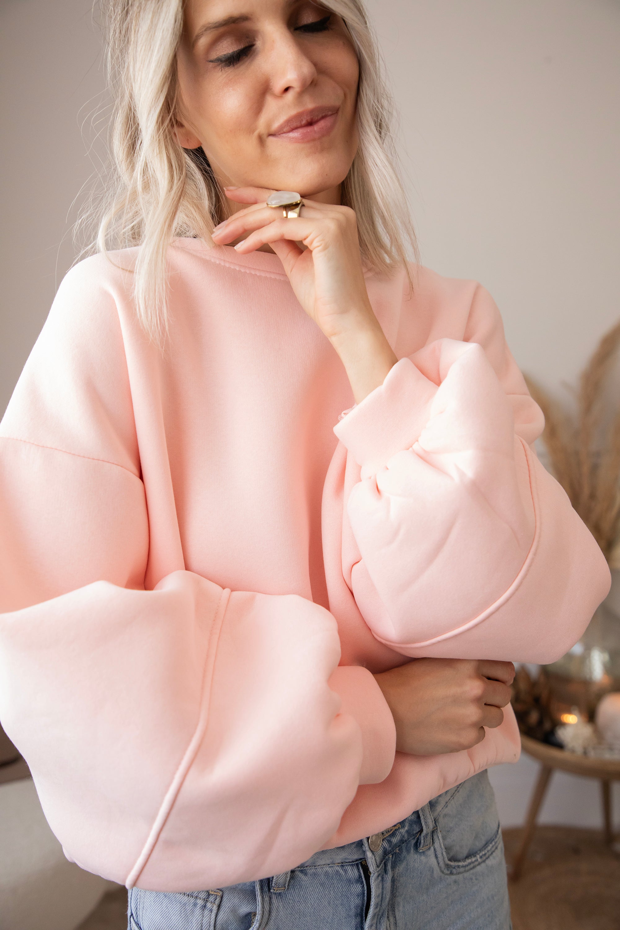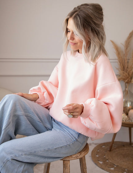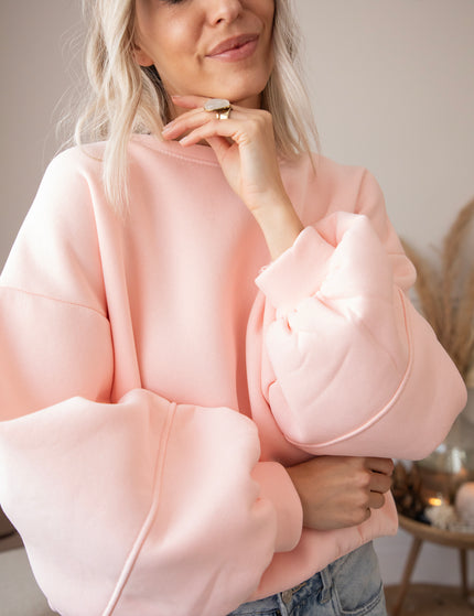 What makes this sweater so special is the wonderfully warm fleece layer on the inside 🎀 The baggy fit and low shoulder seams create a casual, cozy look. And those balloon sleeves? So deliciously oversized!