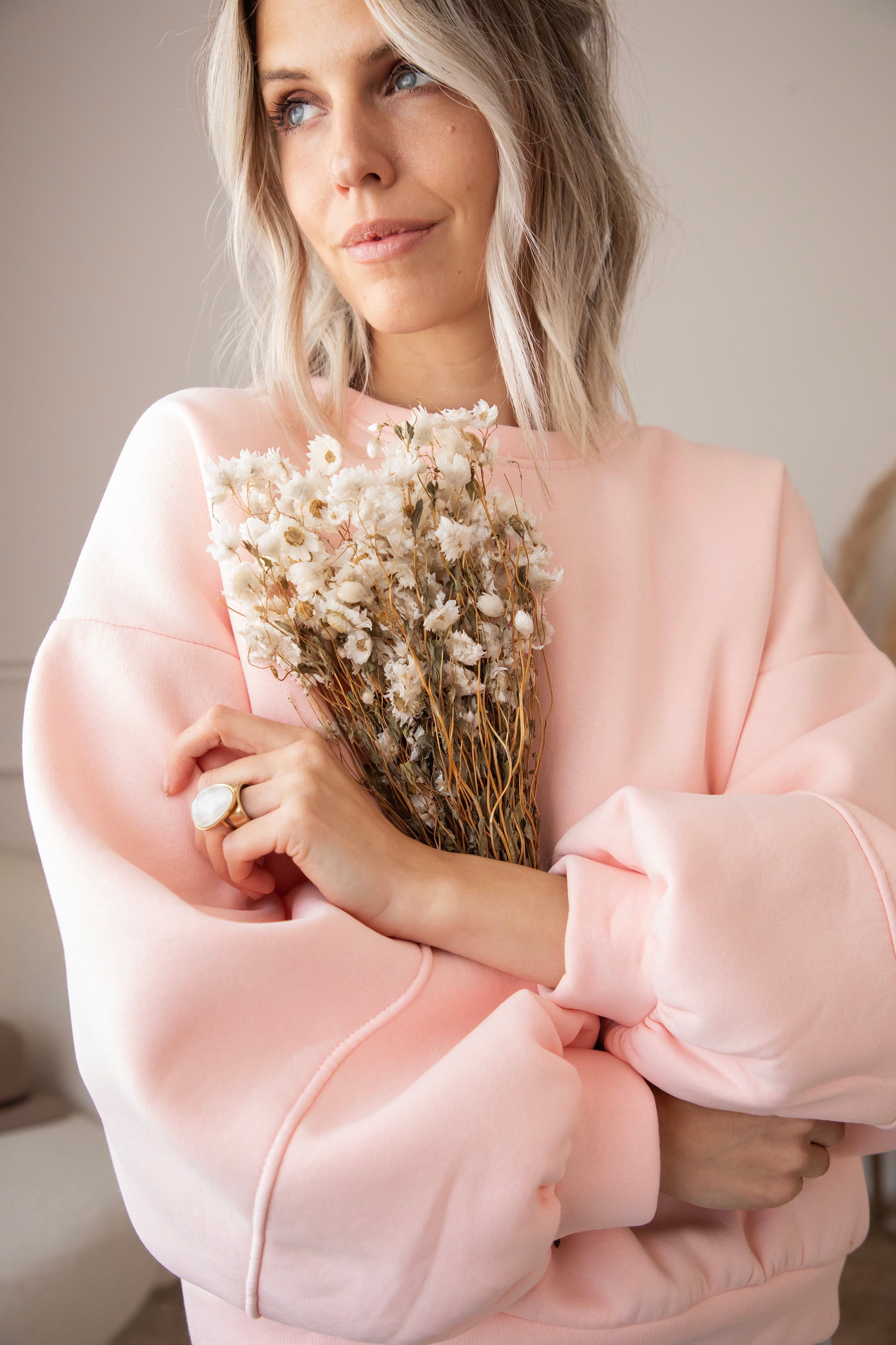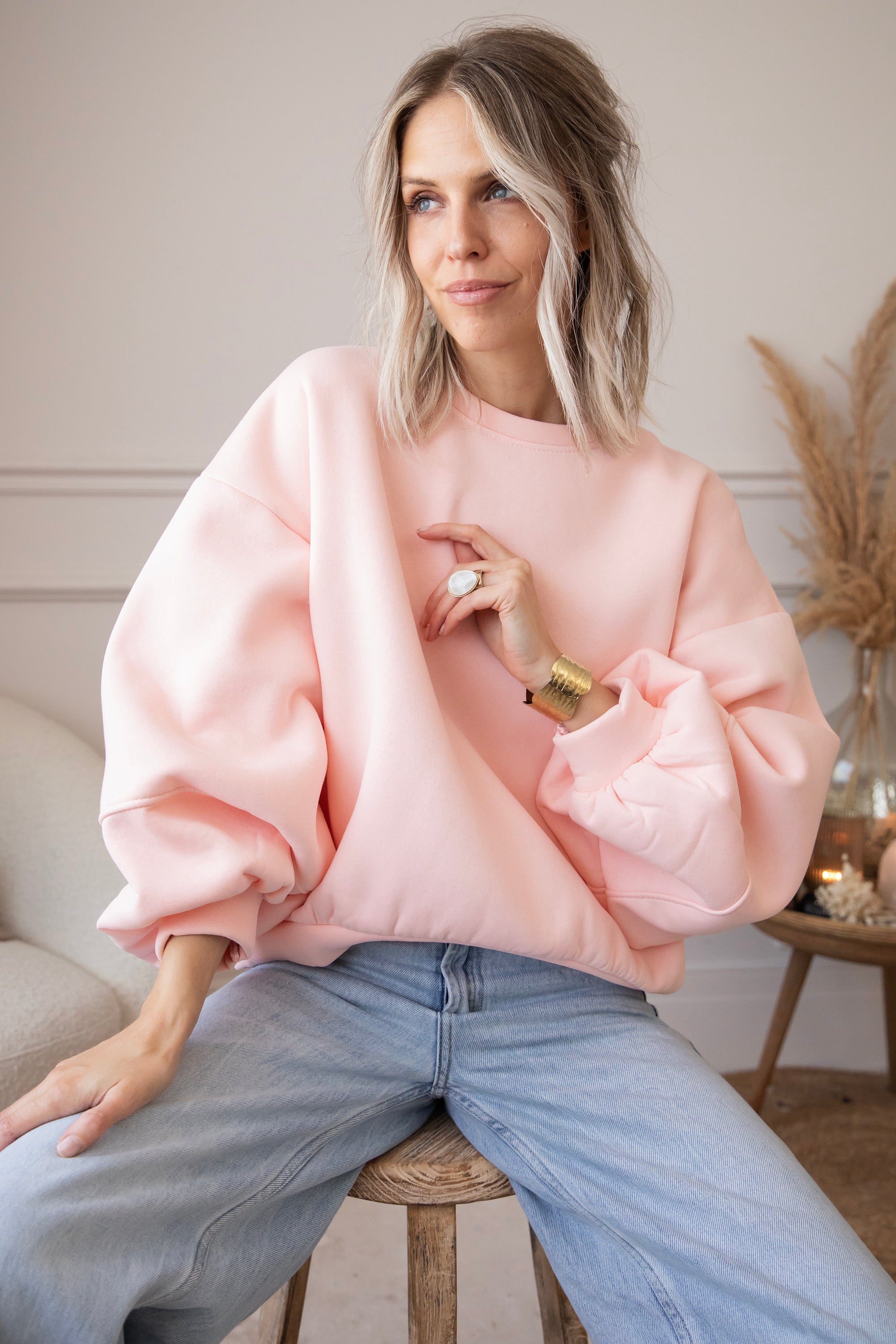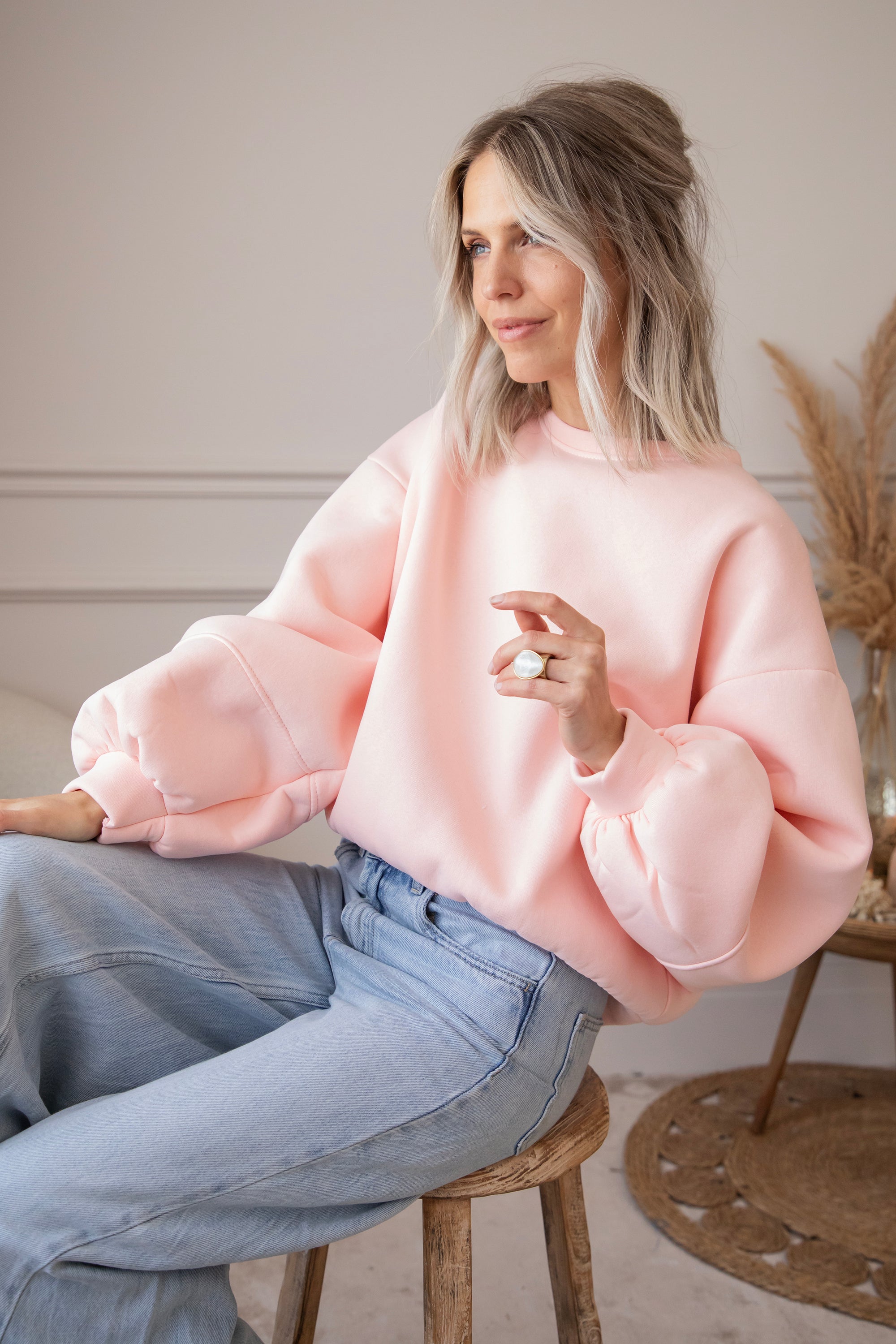 What makes this sweater so special is the wonderfully warm fleece layer on the inside 🎀 The baggy fit and low shoulder seams create a casual, cozy look. And those balloon sleeves? So deliciously oversized!