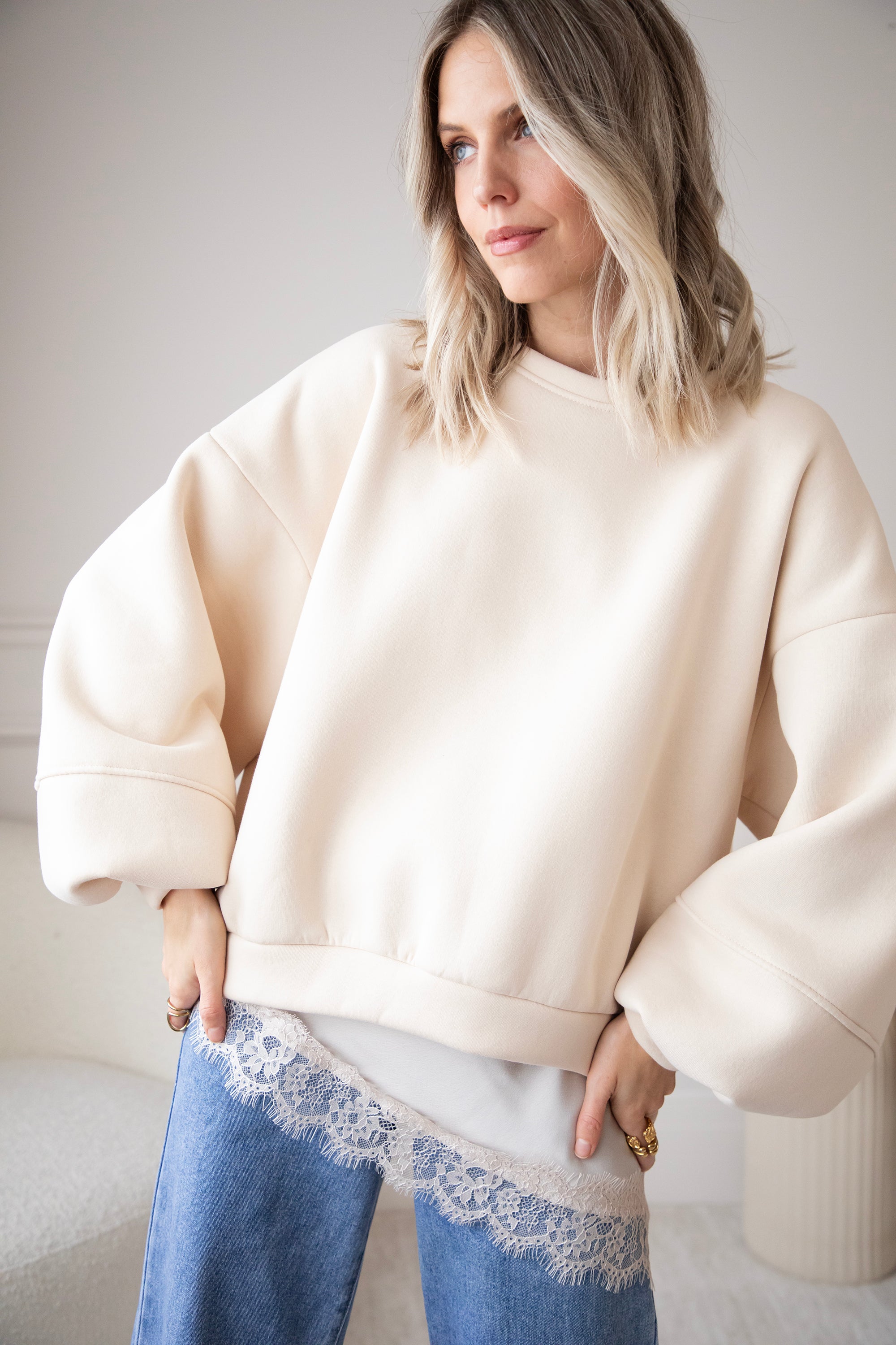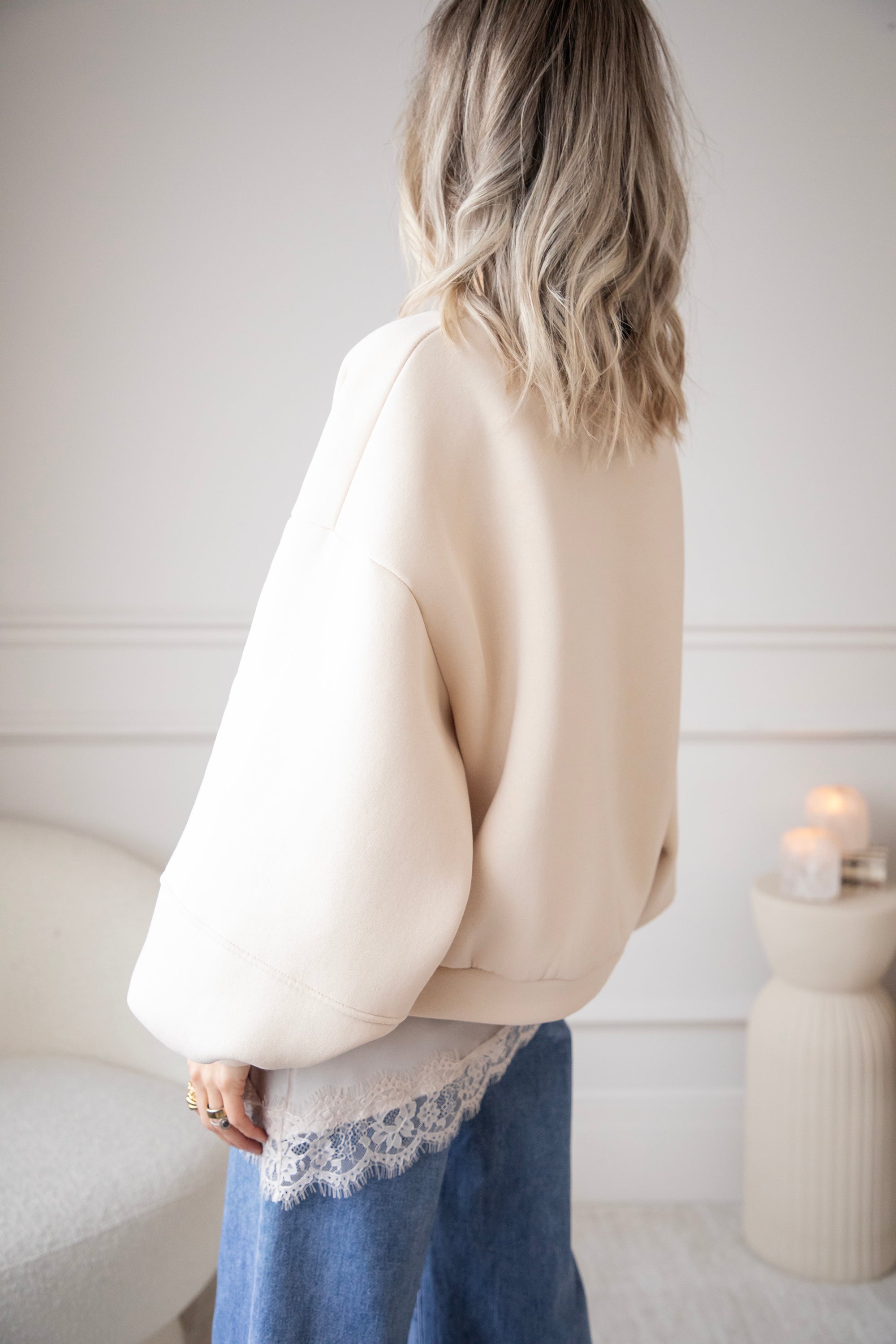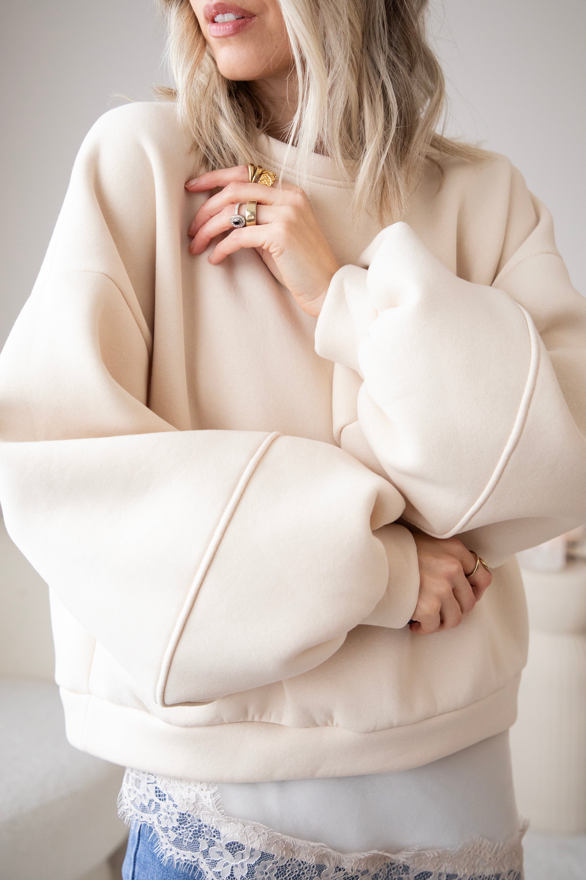 This must-have charms with its wonderfully warm fleece layer on the inside 🎀 The baggy fit and low shoulder seams create a casual, cozy look. And those balloon sleeves? So nice and oversized!