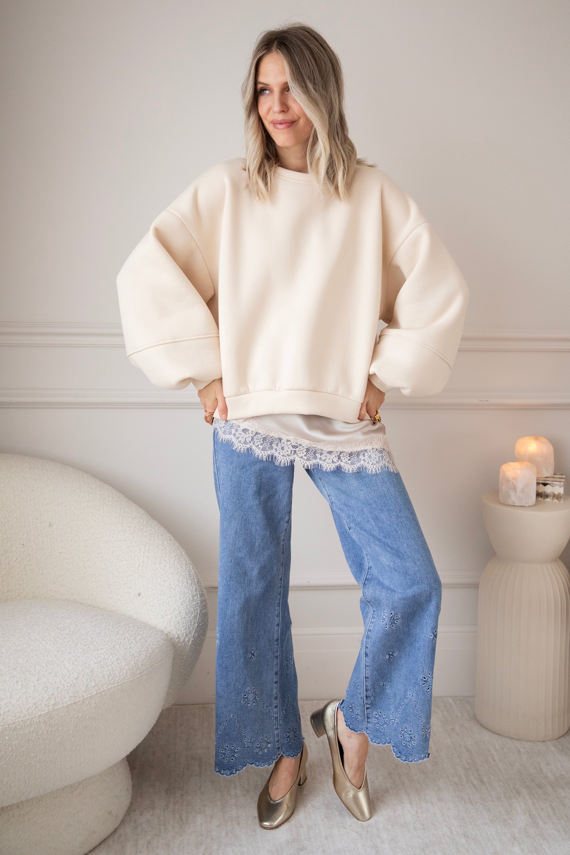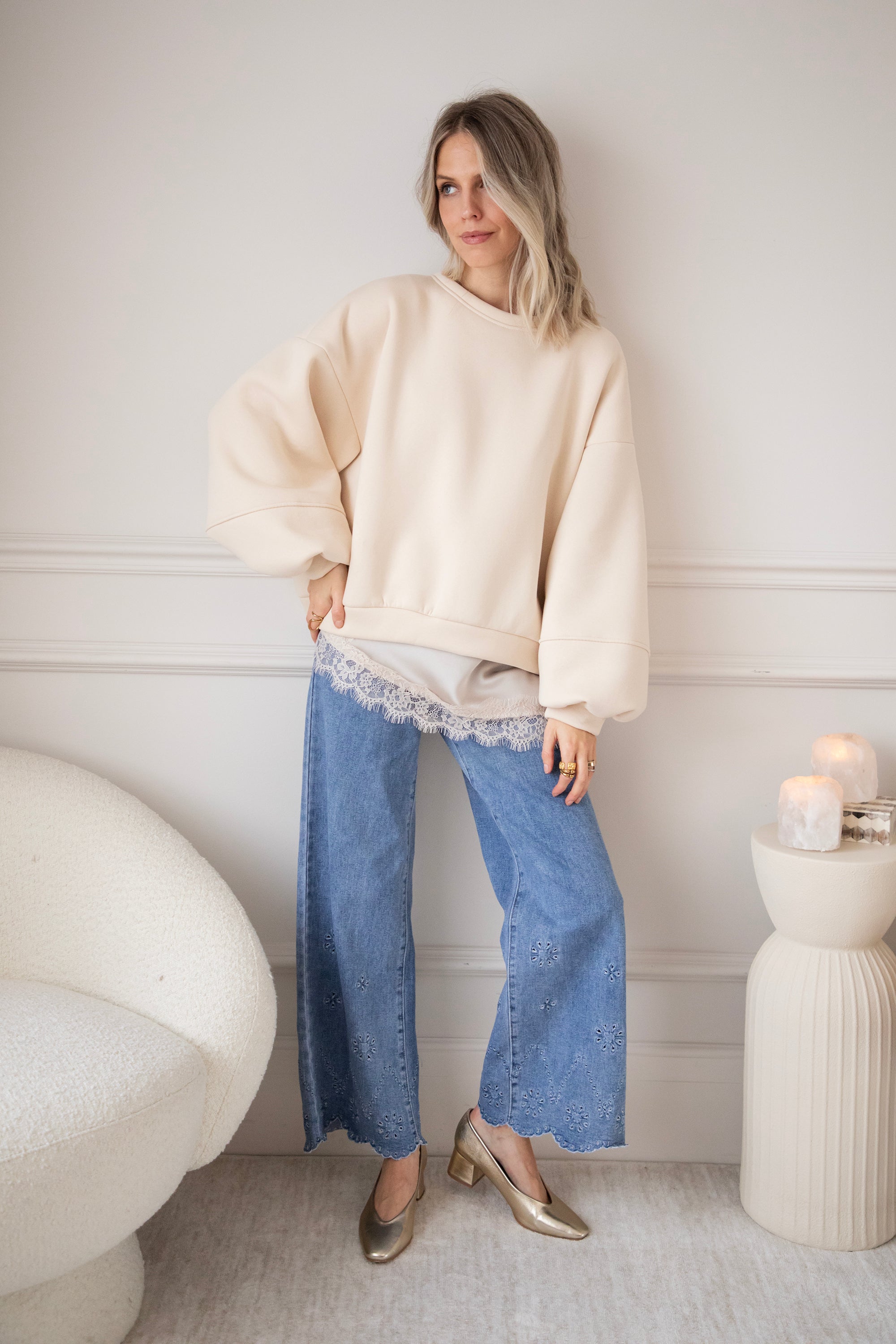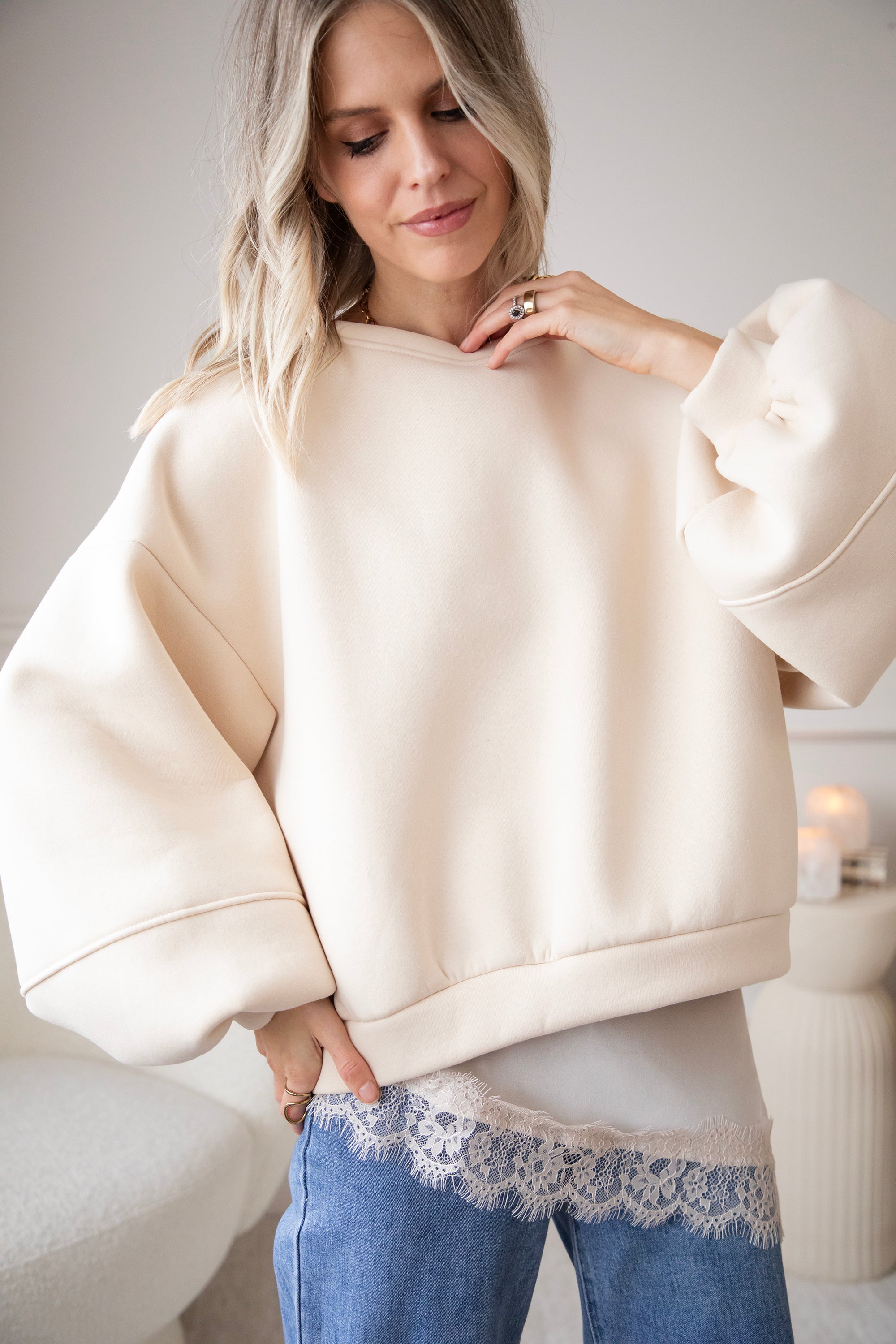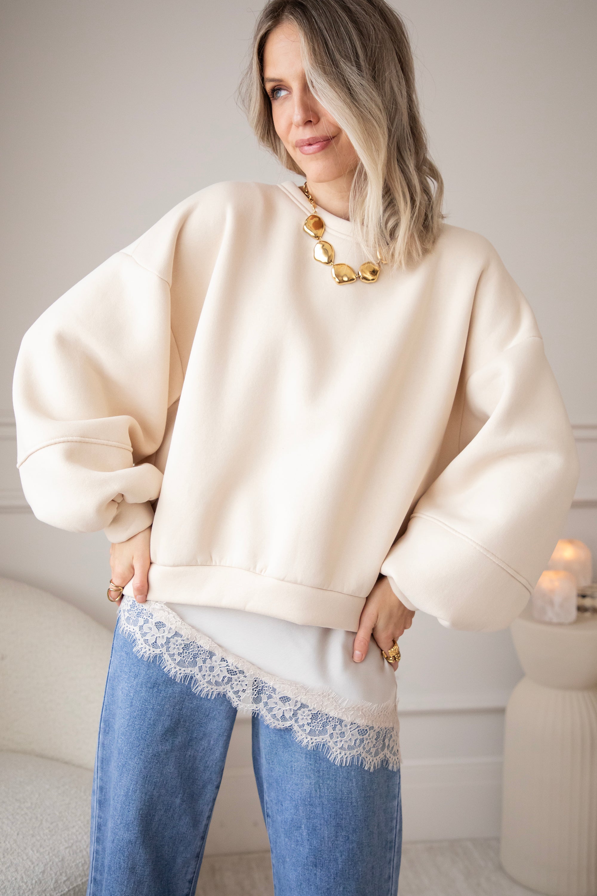 This must-have charms with its wonderfully warm fleece layer on the inside 🎀 The baggy fit and low shoulder seams create a casual, cozy look. And those balloon sleeves? So nice and oversized!