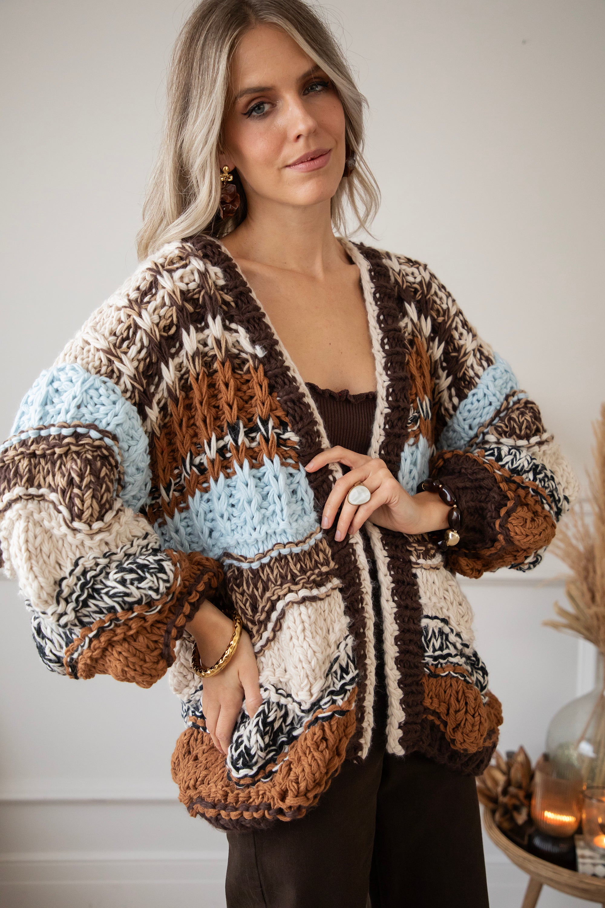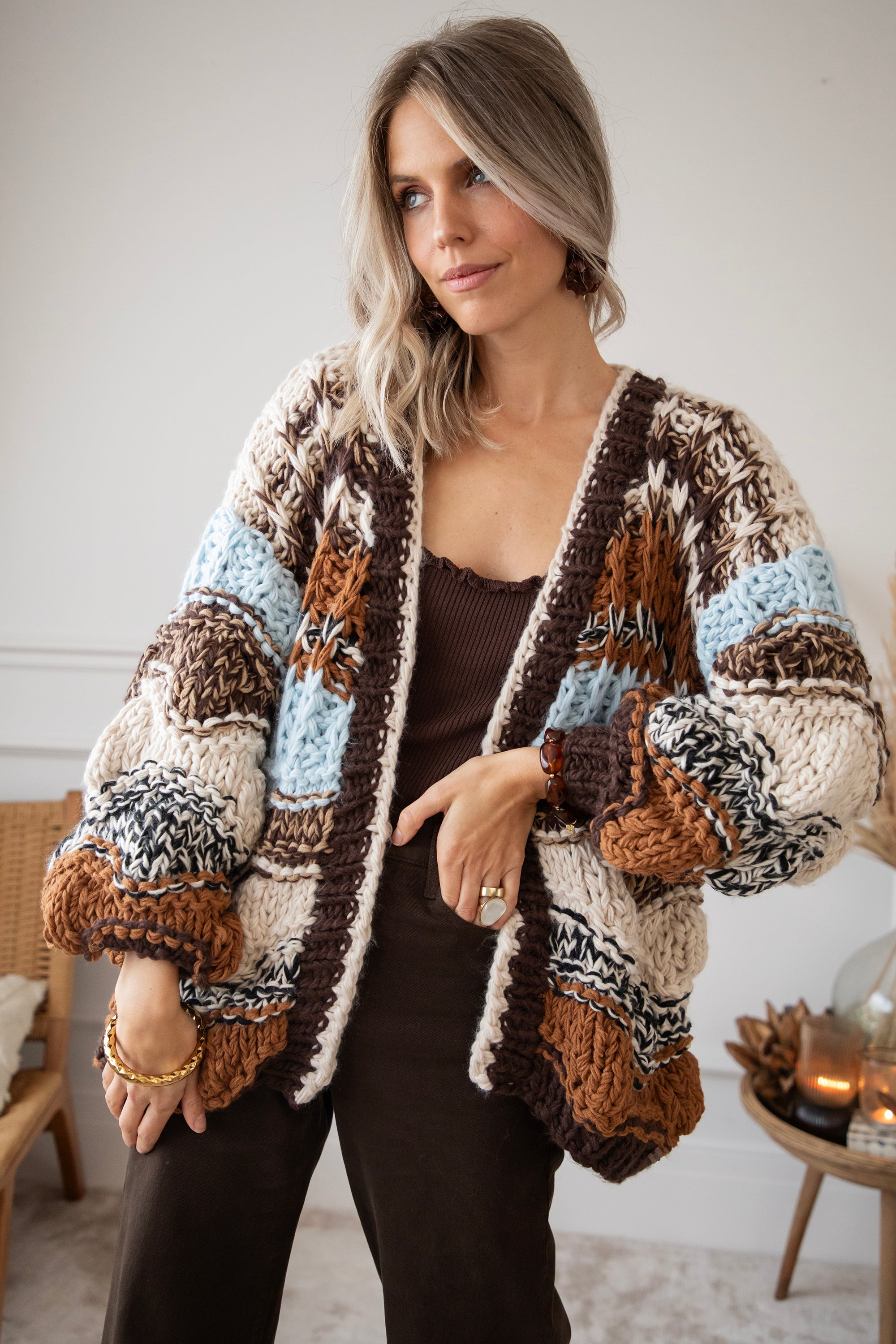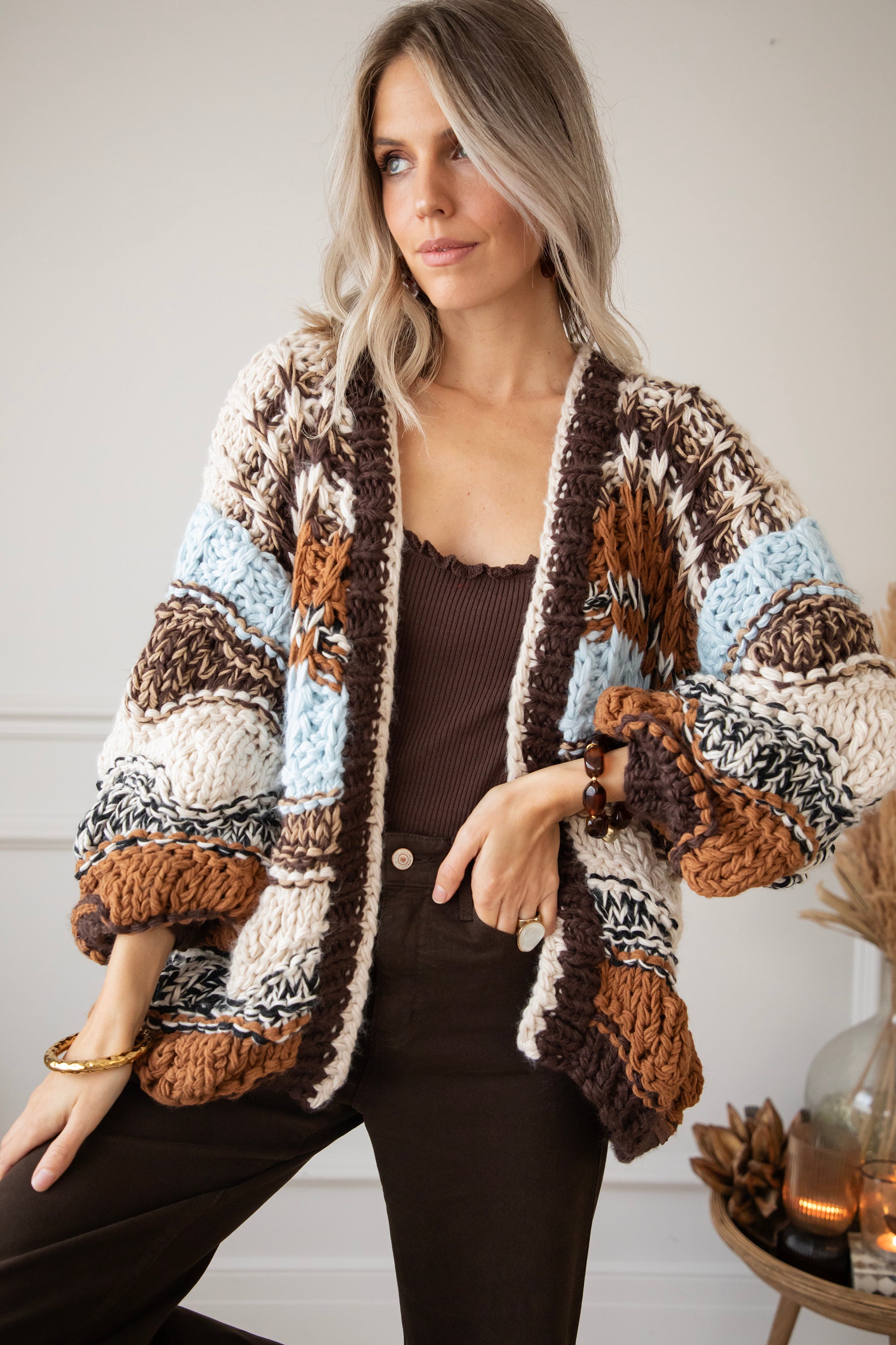 Chunky Shades Brown/Beige - Cardigan