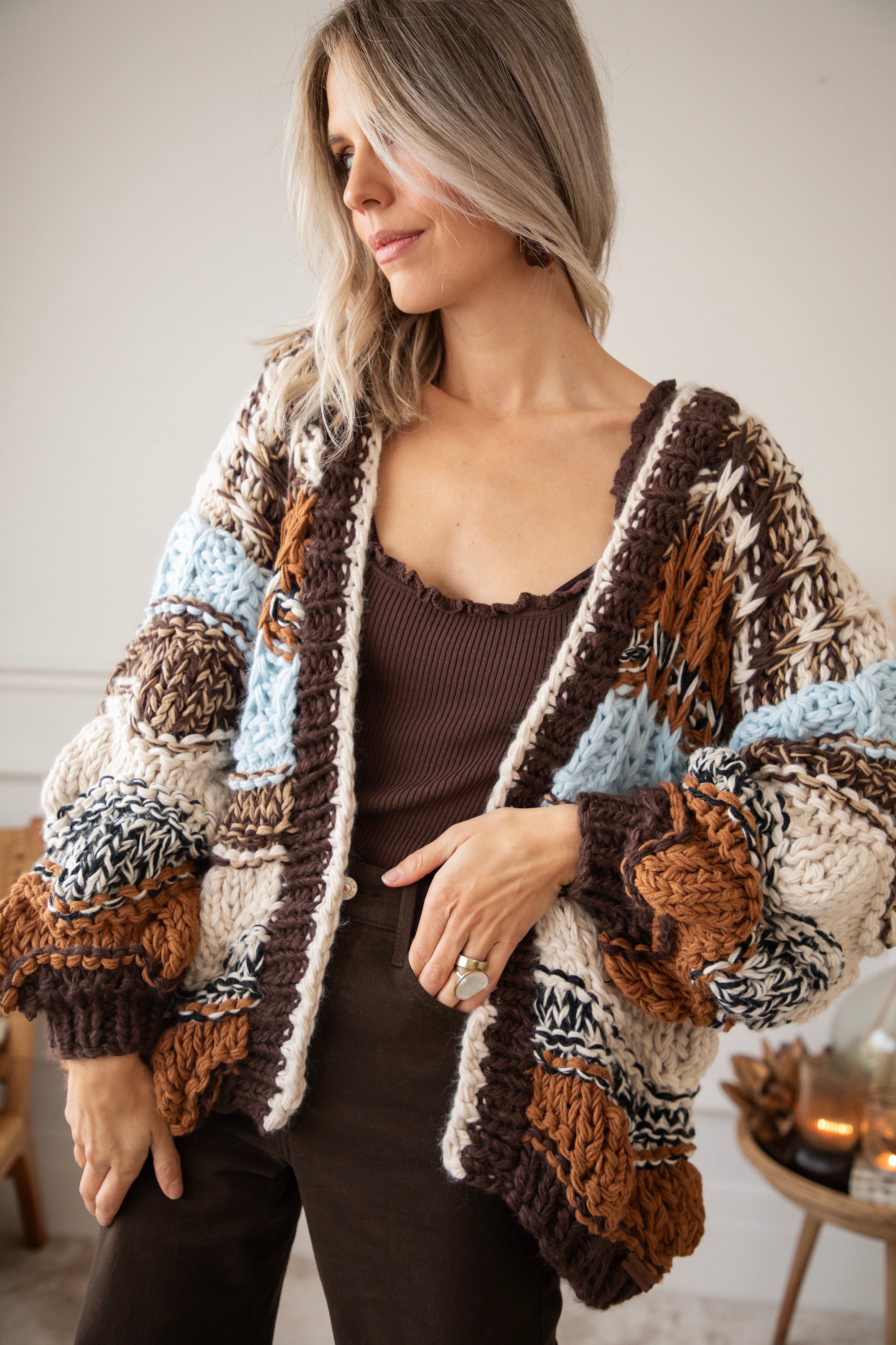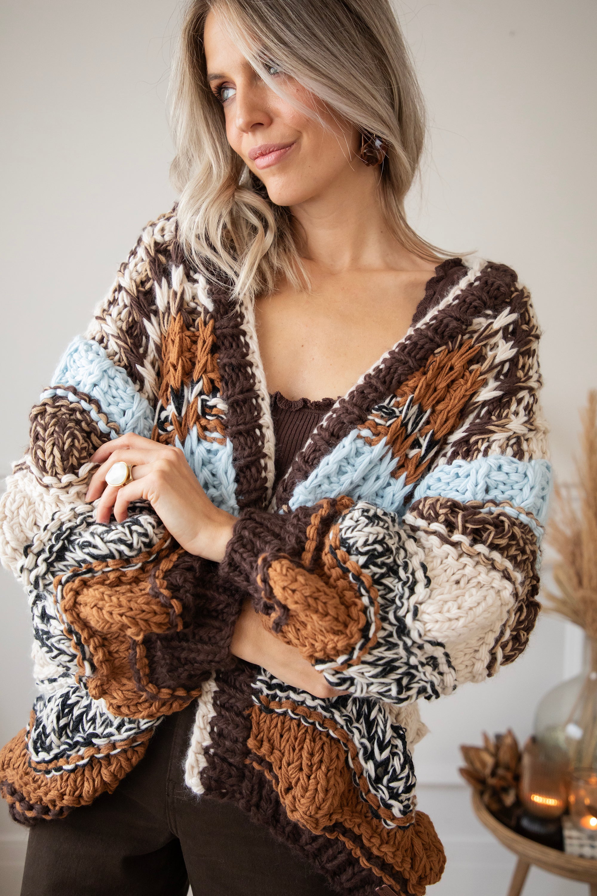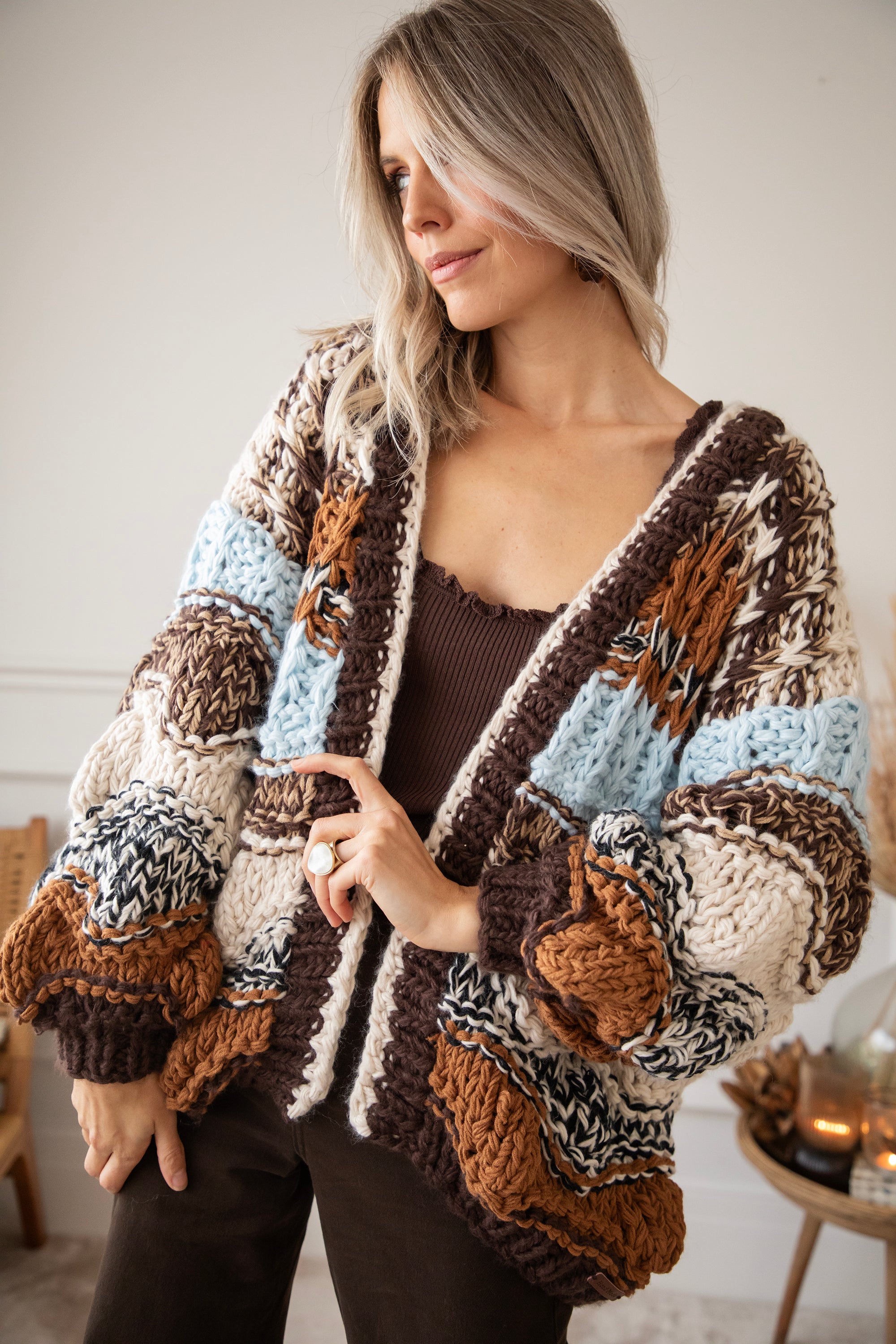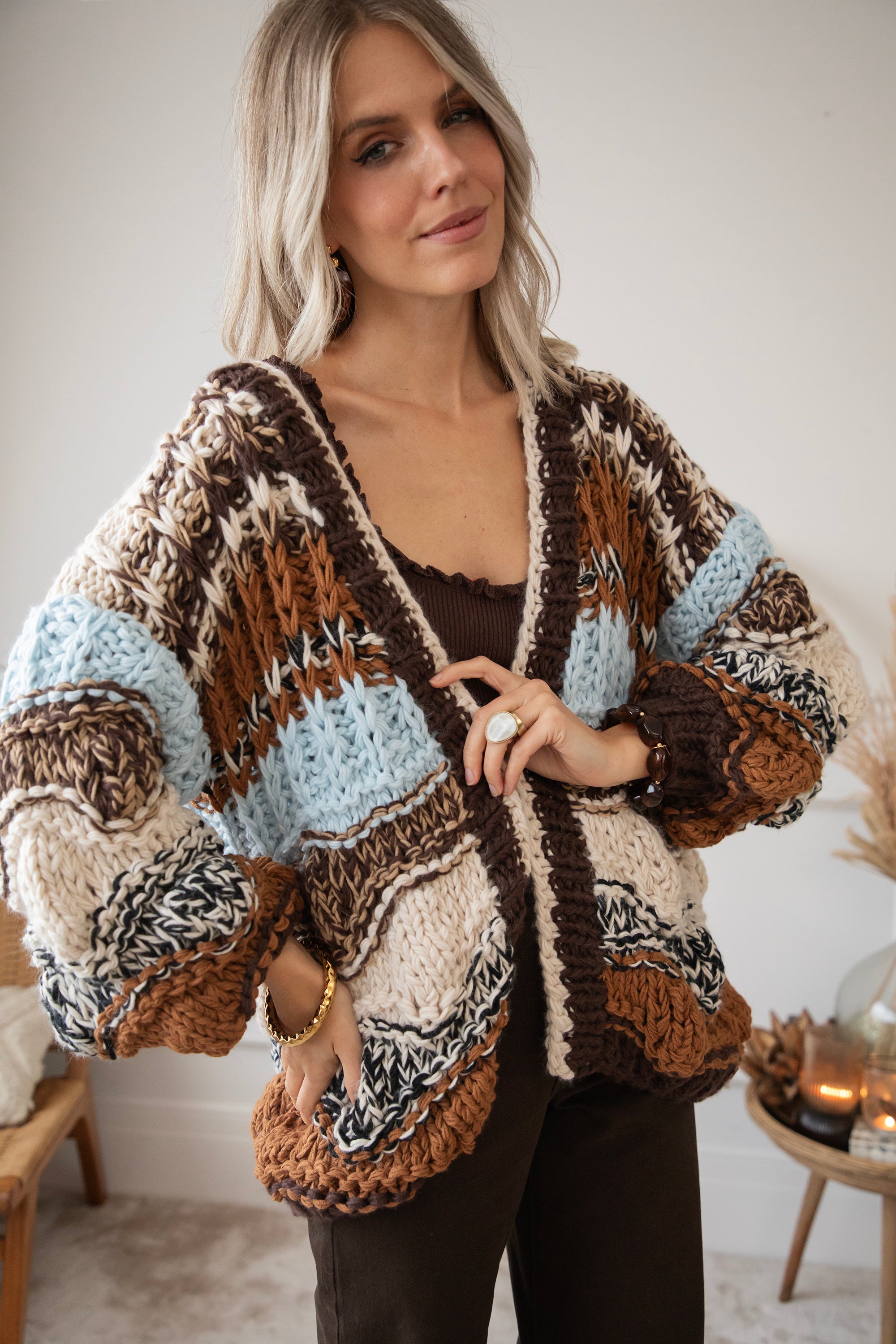Chunky Shades Brown/Beige - Cardigan