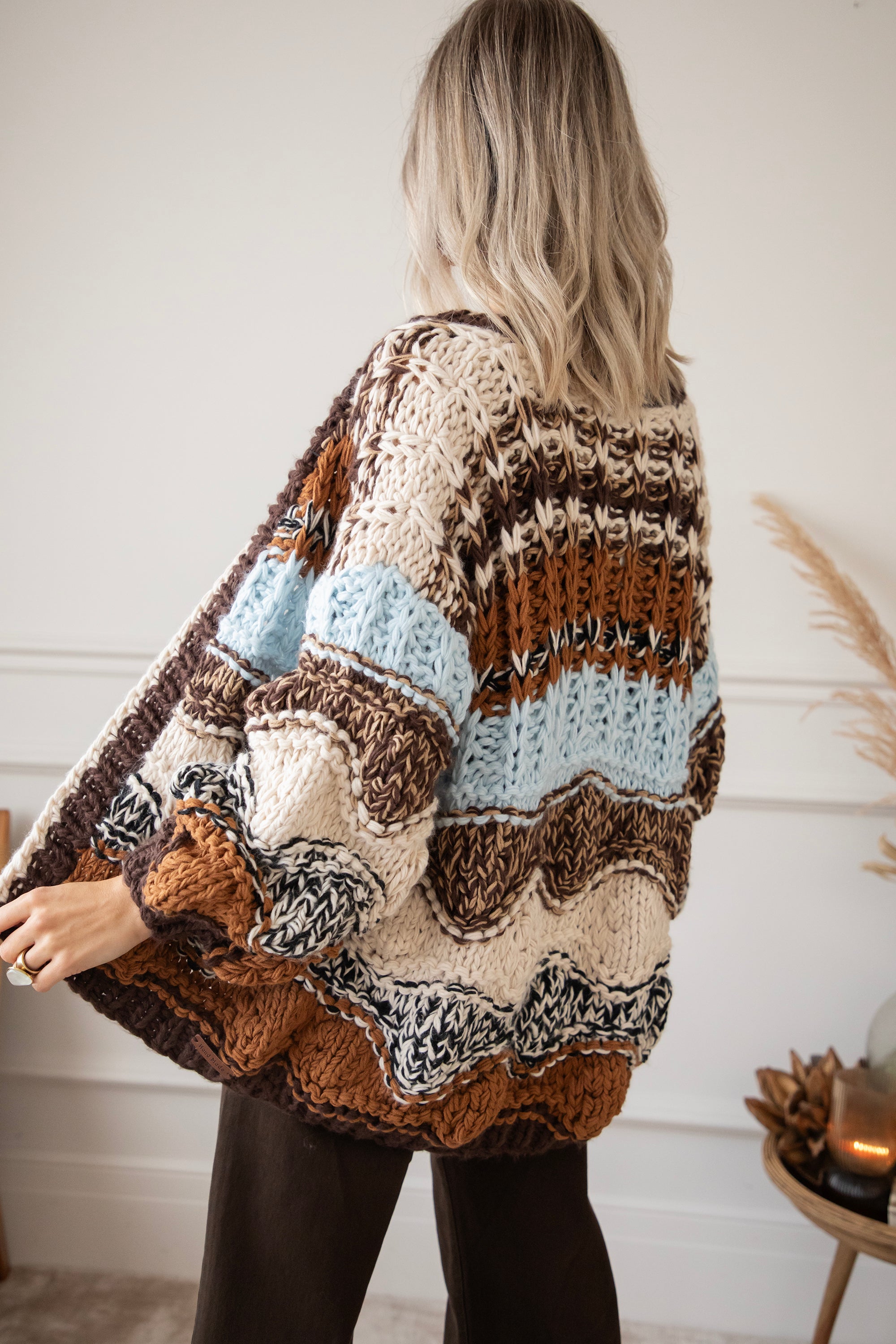 Add volume and a touch of color to your fall outfits in one go 🍂🩵 With Chunky Shades, you're all set! This chunky knit not only feels cozy, but also instantly adds atmosphere to your look 😍 The combination of blue, camel, beige, and brown creates that typical “chunky shades” effect! The balloon sleeves and oversized fit make it wonderfully casual, yet super feminine 💫