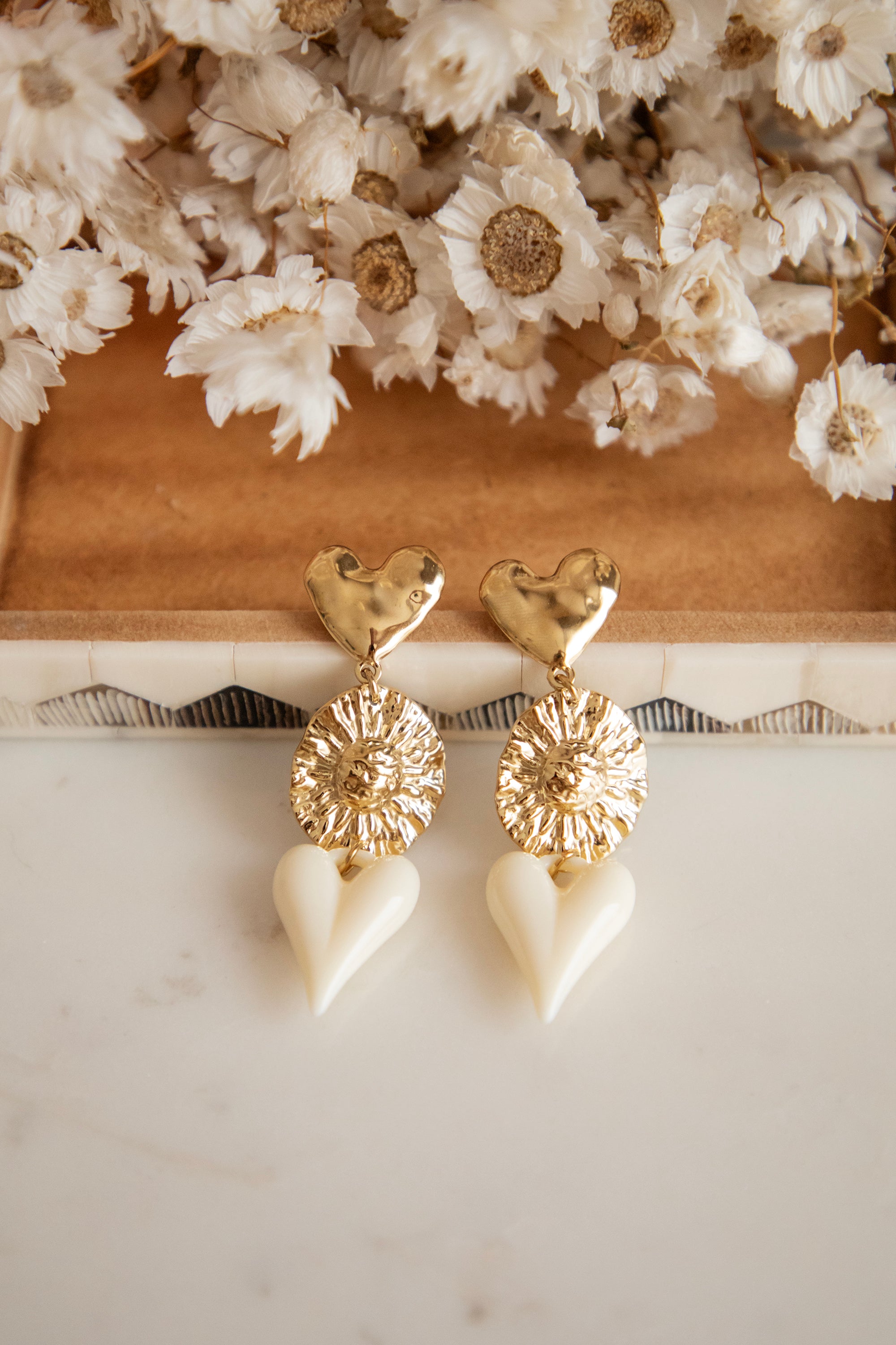 Cosmic Love is pure joie de vivre in earring form for me. The gold-colored heart, the embossed sun, and the beige heart that gently swings along... everything is just right. They radiate warmth, fun, and confidence and effortlessly elevate your look. LOVE OVERLOAD, but stylish and full of character 🌞