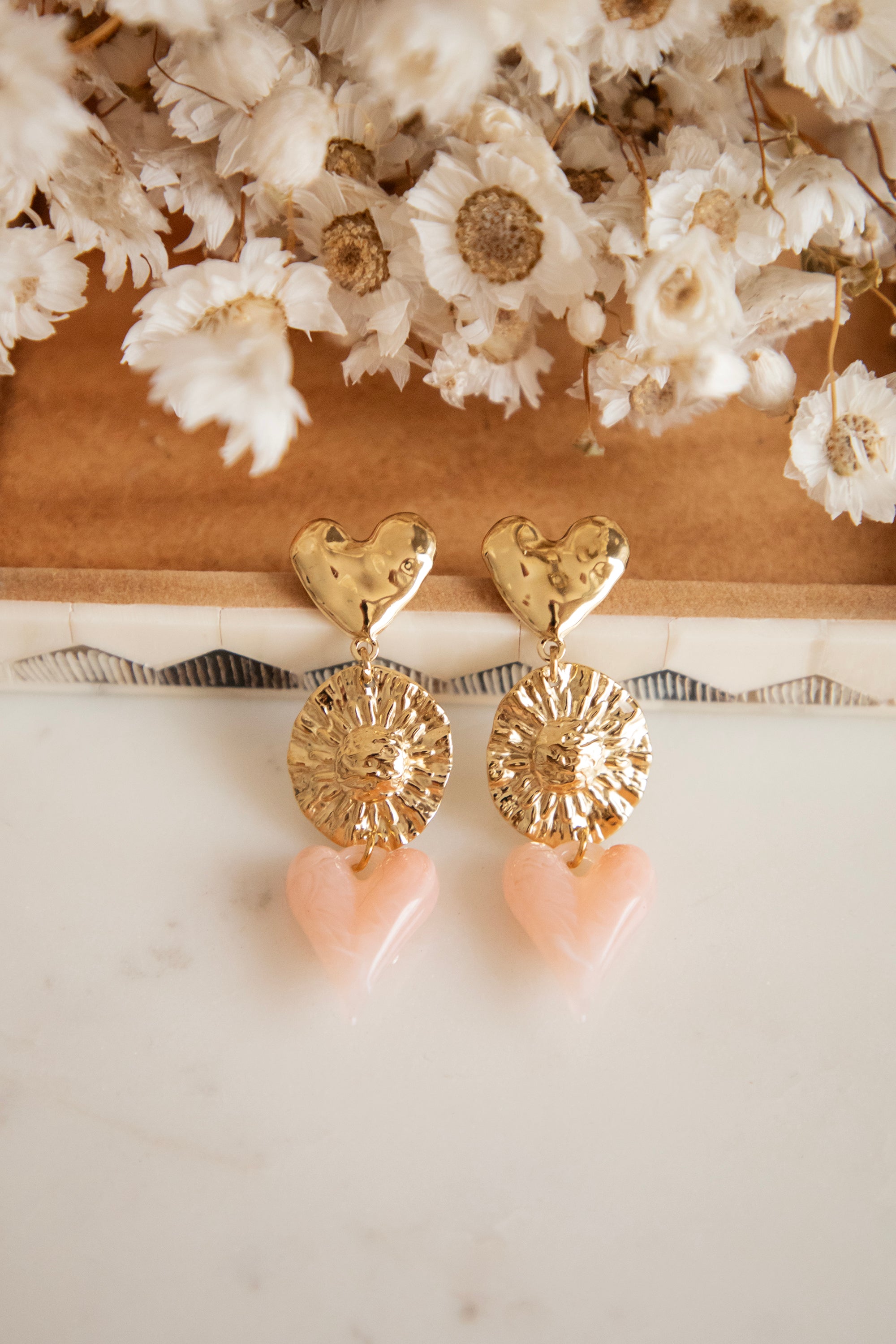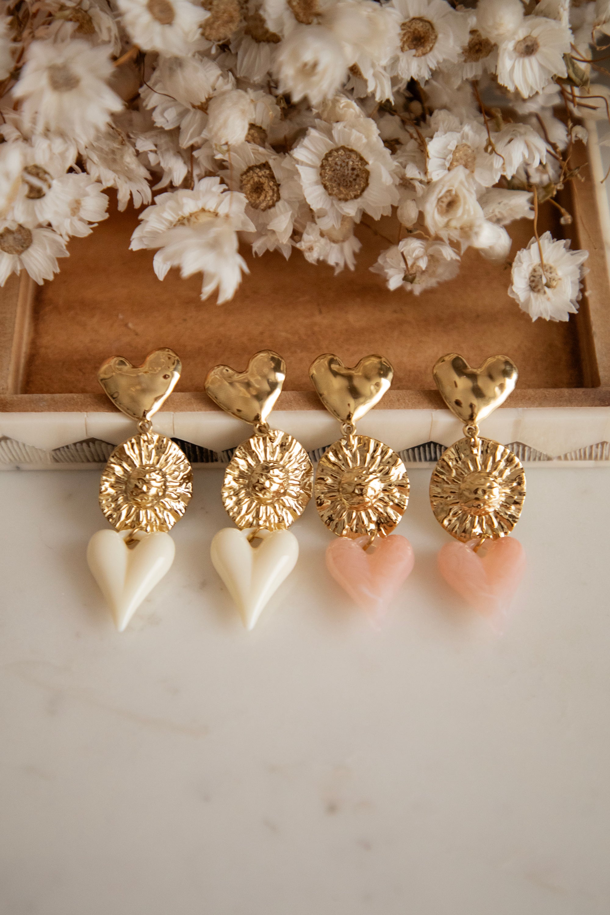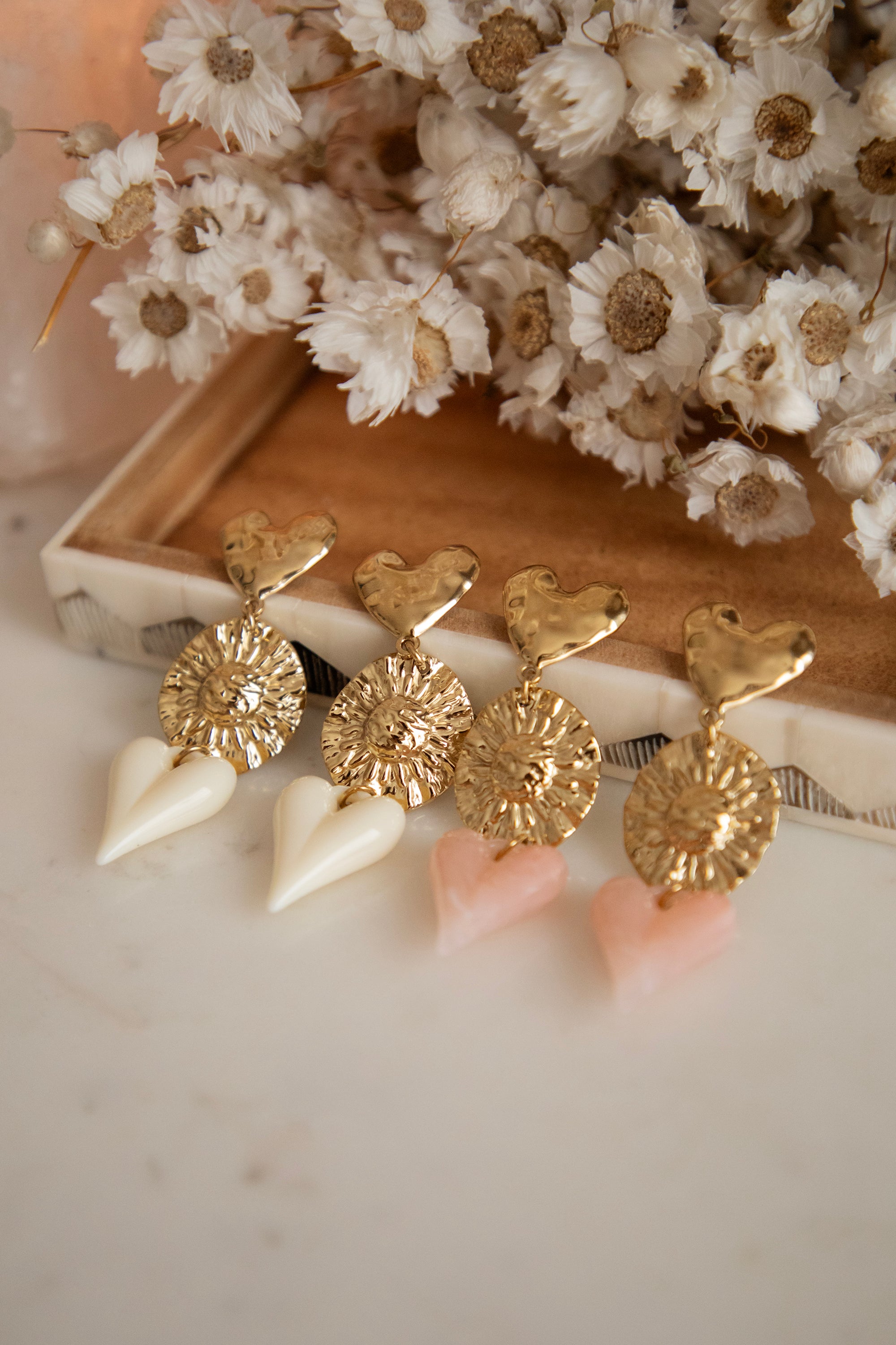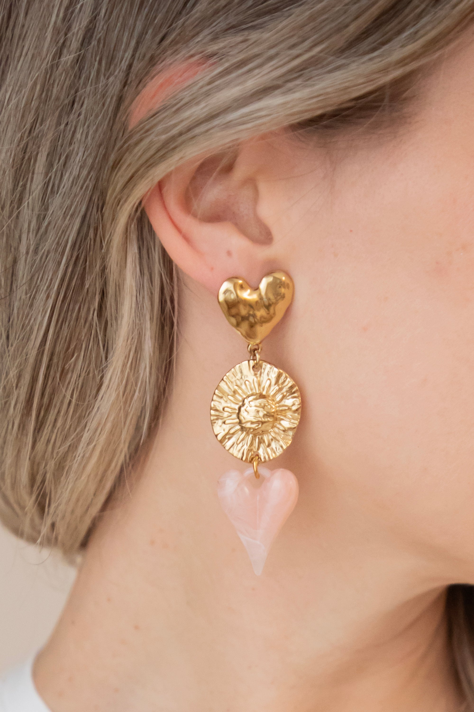 Cosmic Love is pure joie de vivre in earring form for me. The gold-colored heart, the embossed sun, and the pink heart that gently swings along... everything is just right. They radiate warmth, fun, and confidence and effortlessly elevate your look. LOVE OVERLOAD, but stylish and full of character 🌞 The pink heart also adds a subtle and soft color accent.