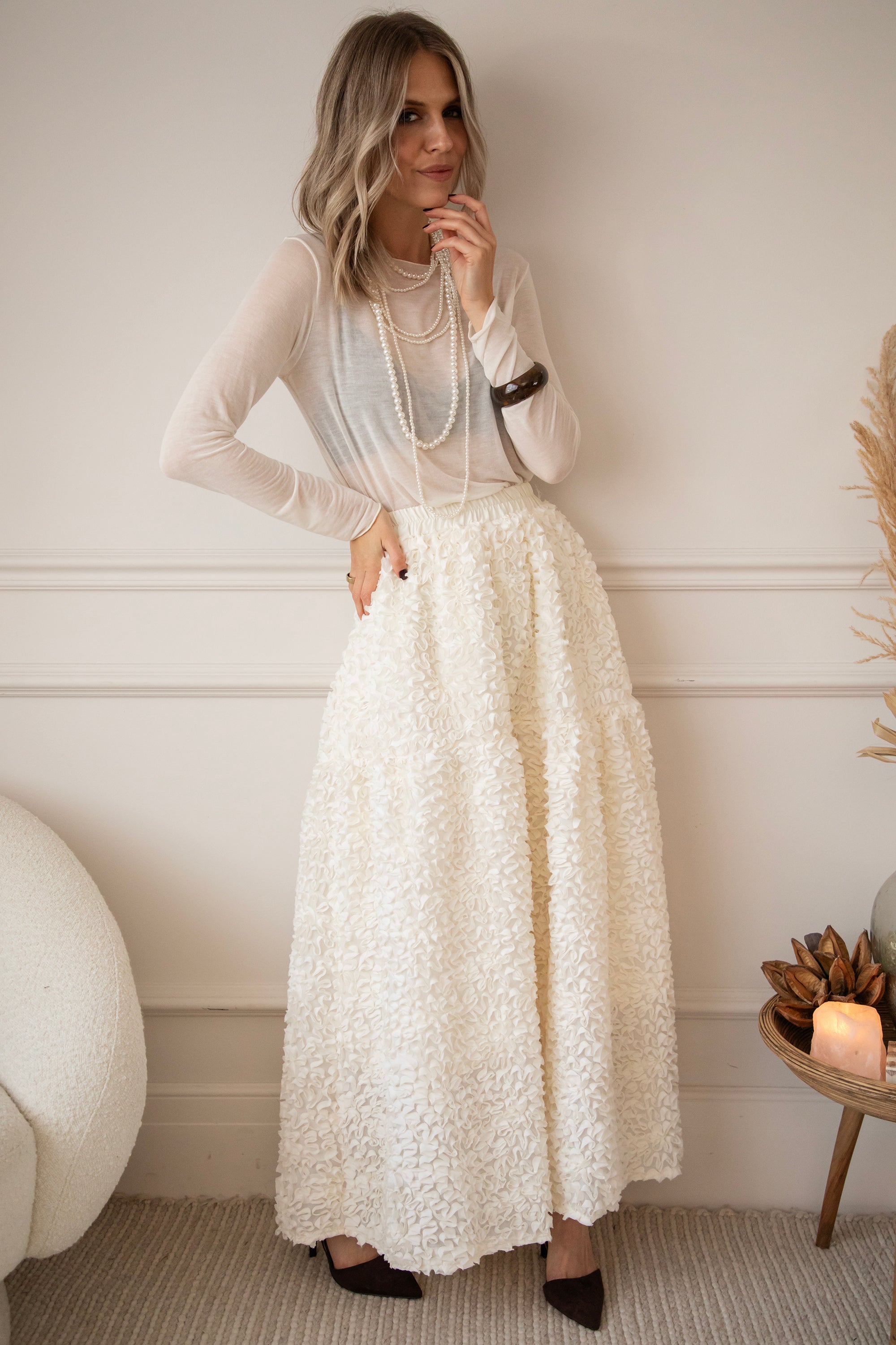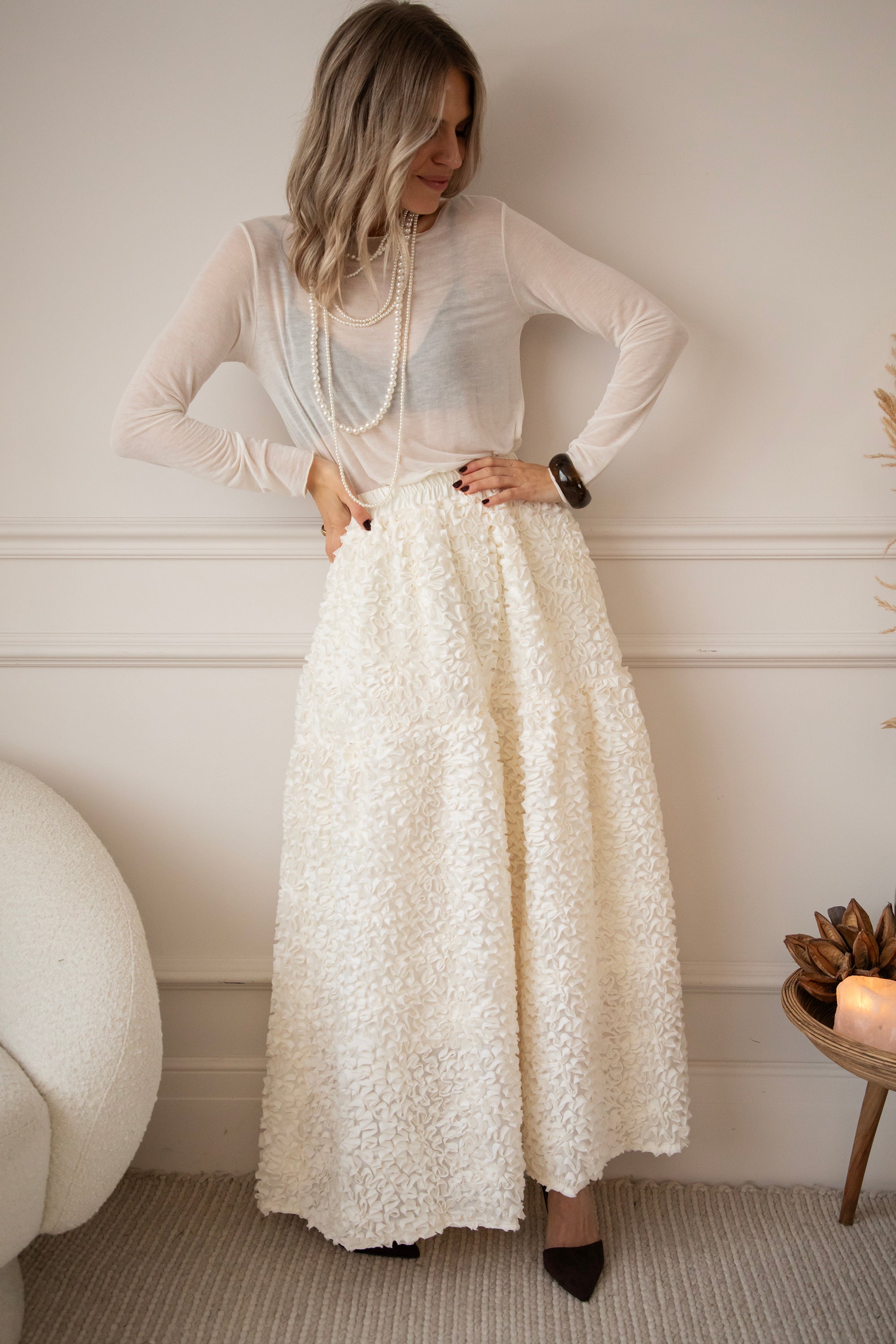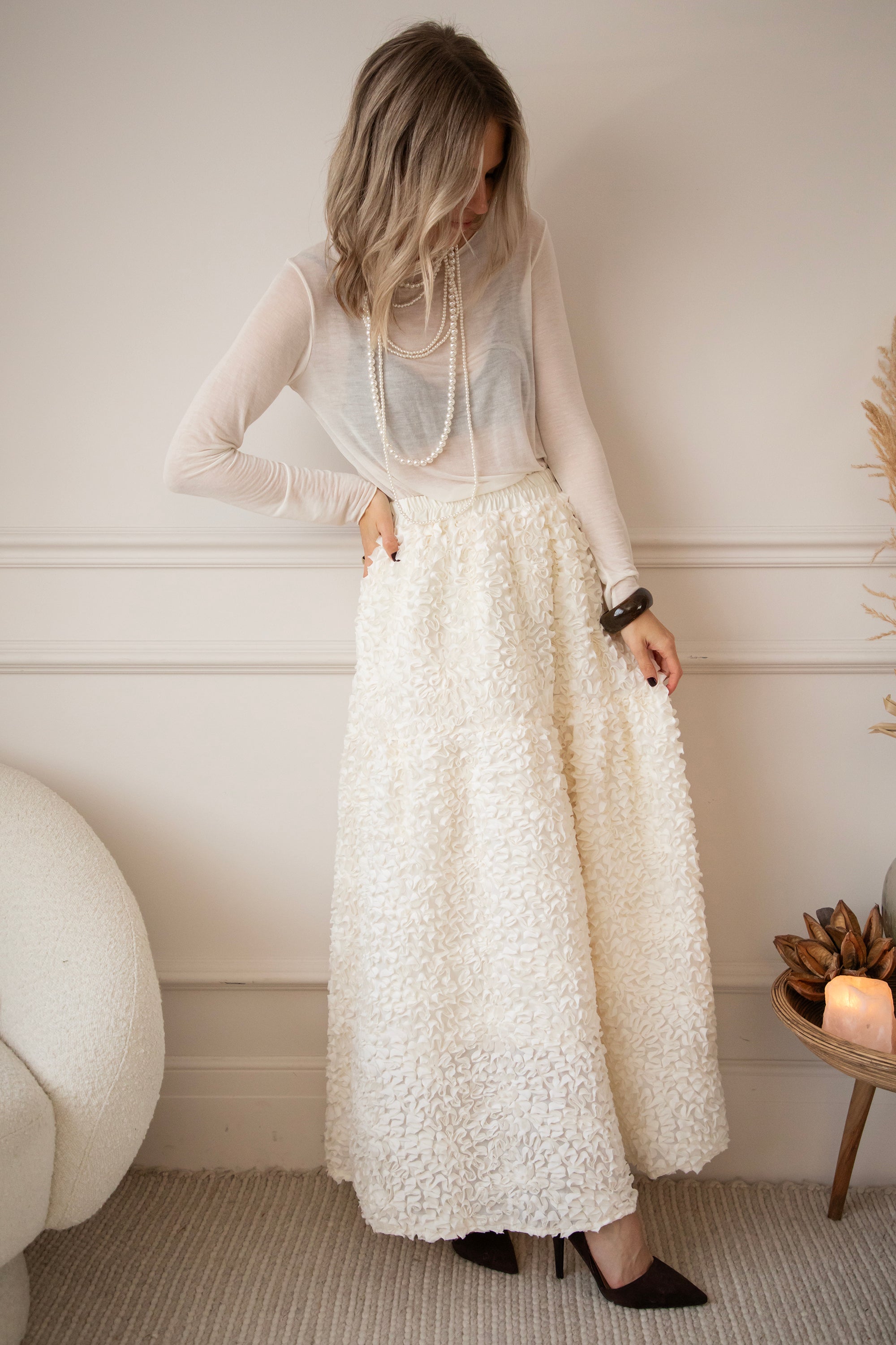 Dolly charm is a real eye-catcher! 🤎 She's so special 🥹 The maxi skirt is fully pleated, giving you a beautiful texture that you can feel and see. The flared shape creates an elegant flow and the stretchy waistband hugs your waist perfectly ✨