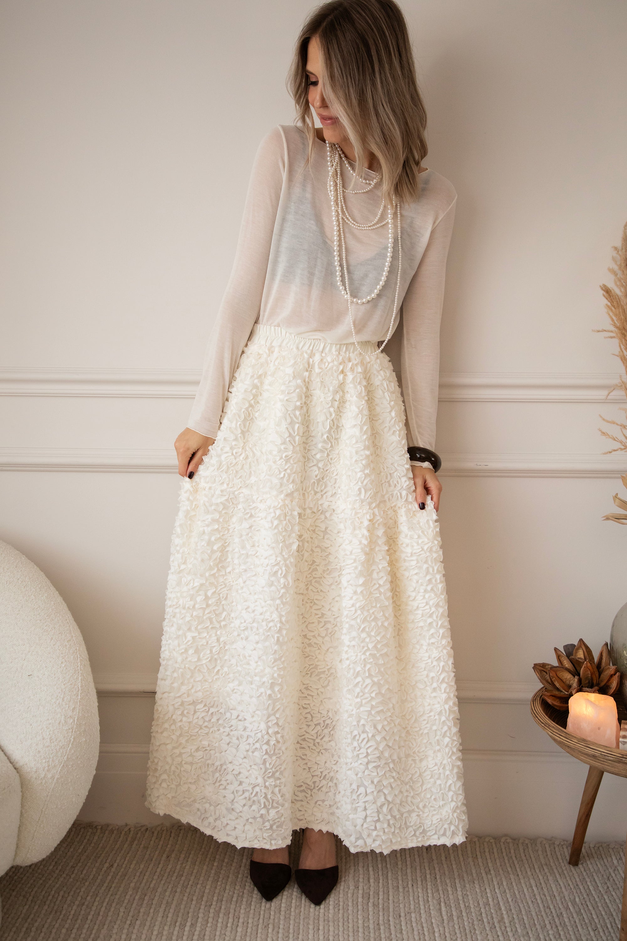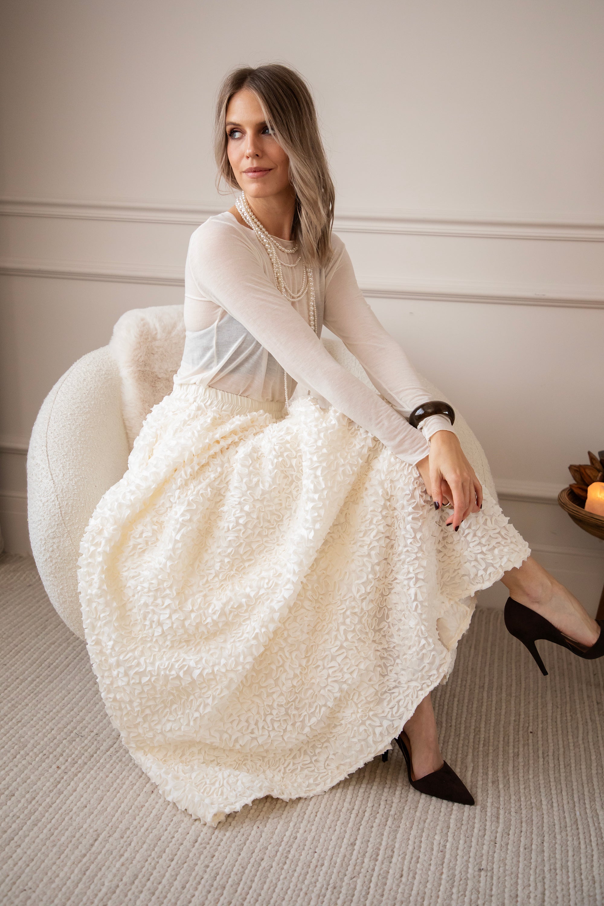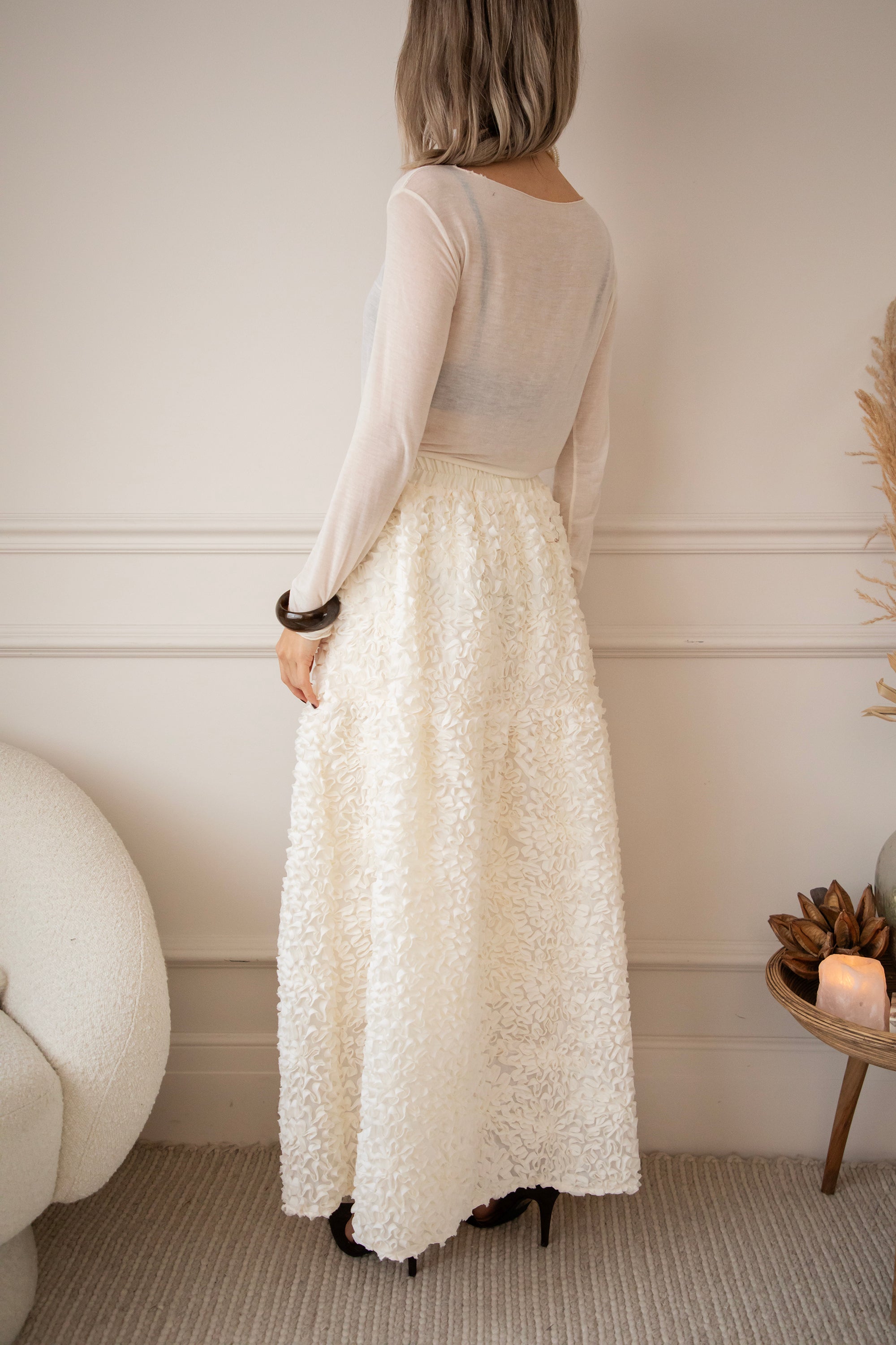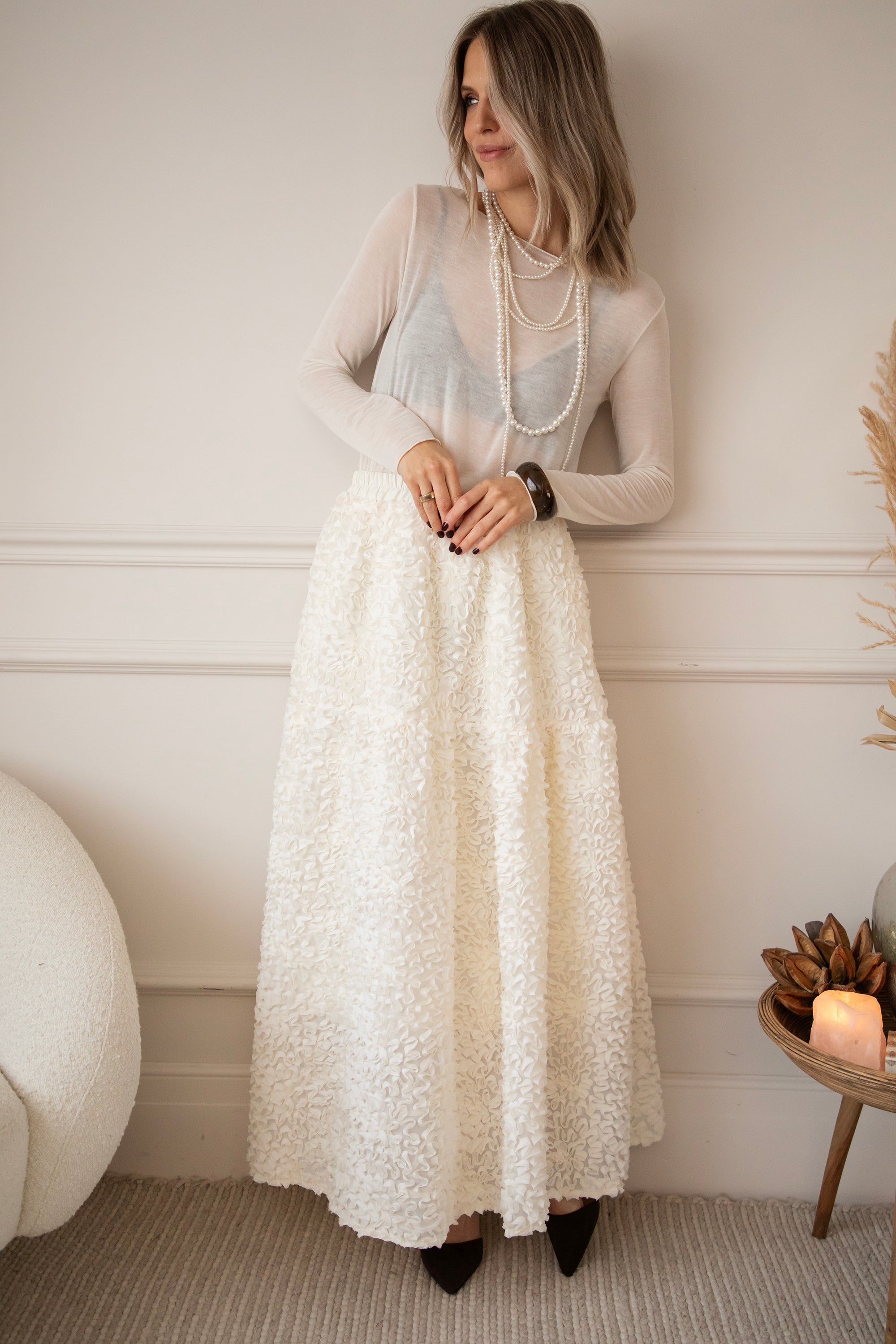 Dolly charm is a real eye-catcher! 🤎 She's so special 🥹 The maxi skirt is fully pleated, giving you a beautiful texture that you can feel and see. The flared shape creates an elegant flow and the stretchy waistband hugs your waist perfectly ✨