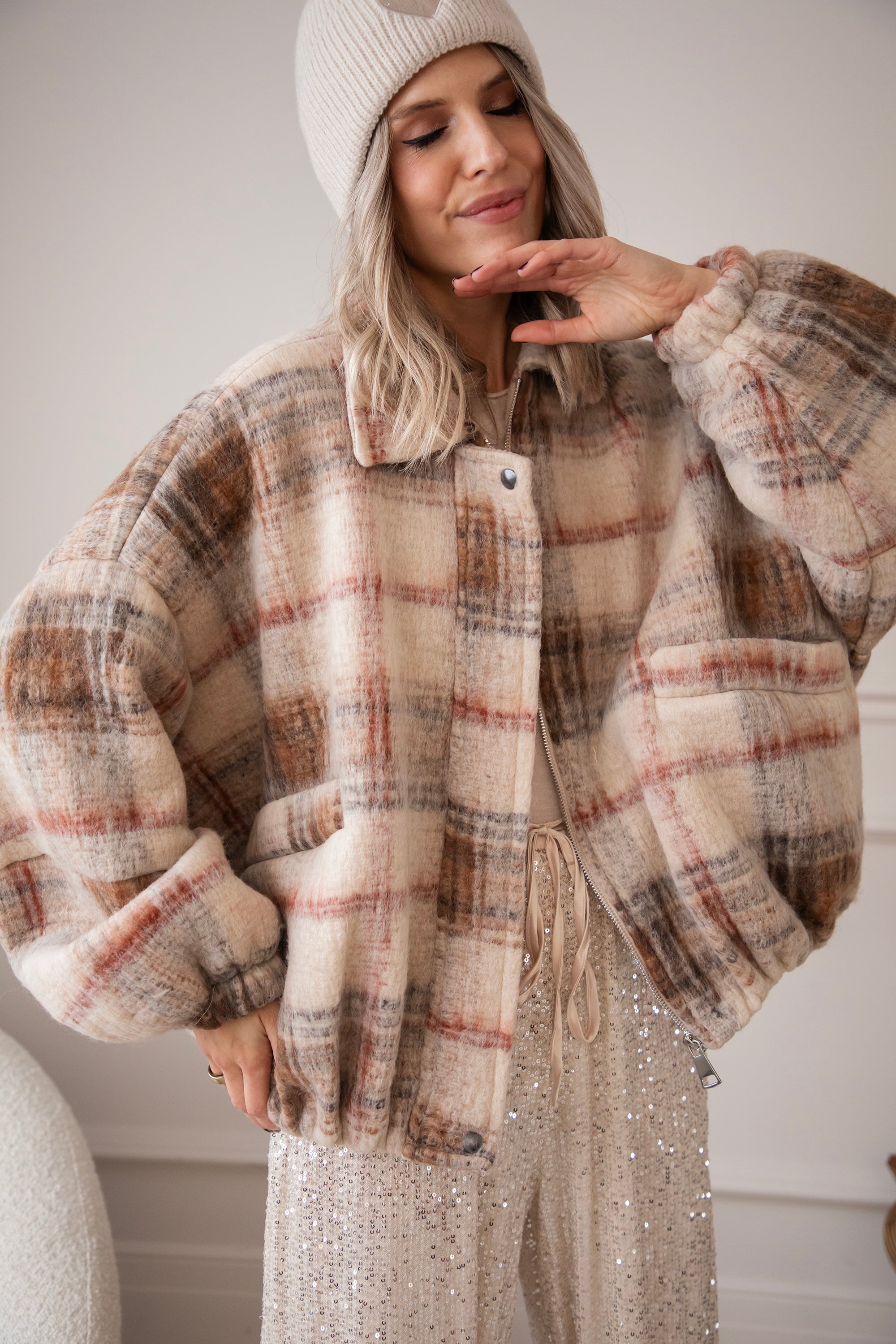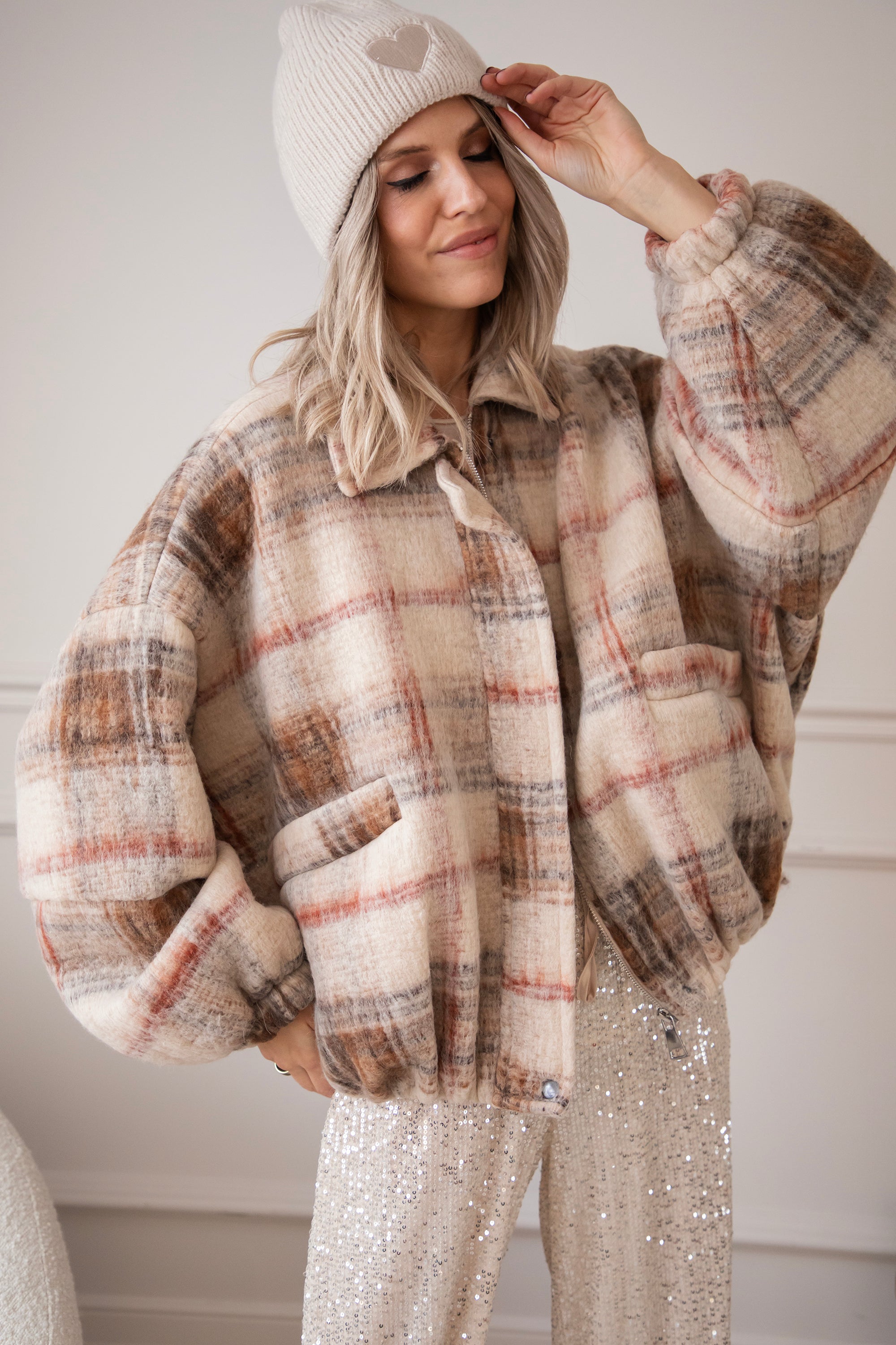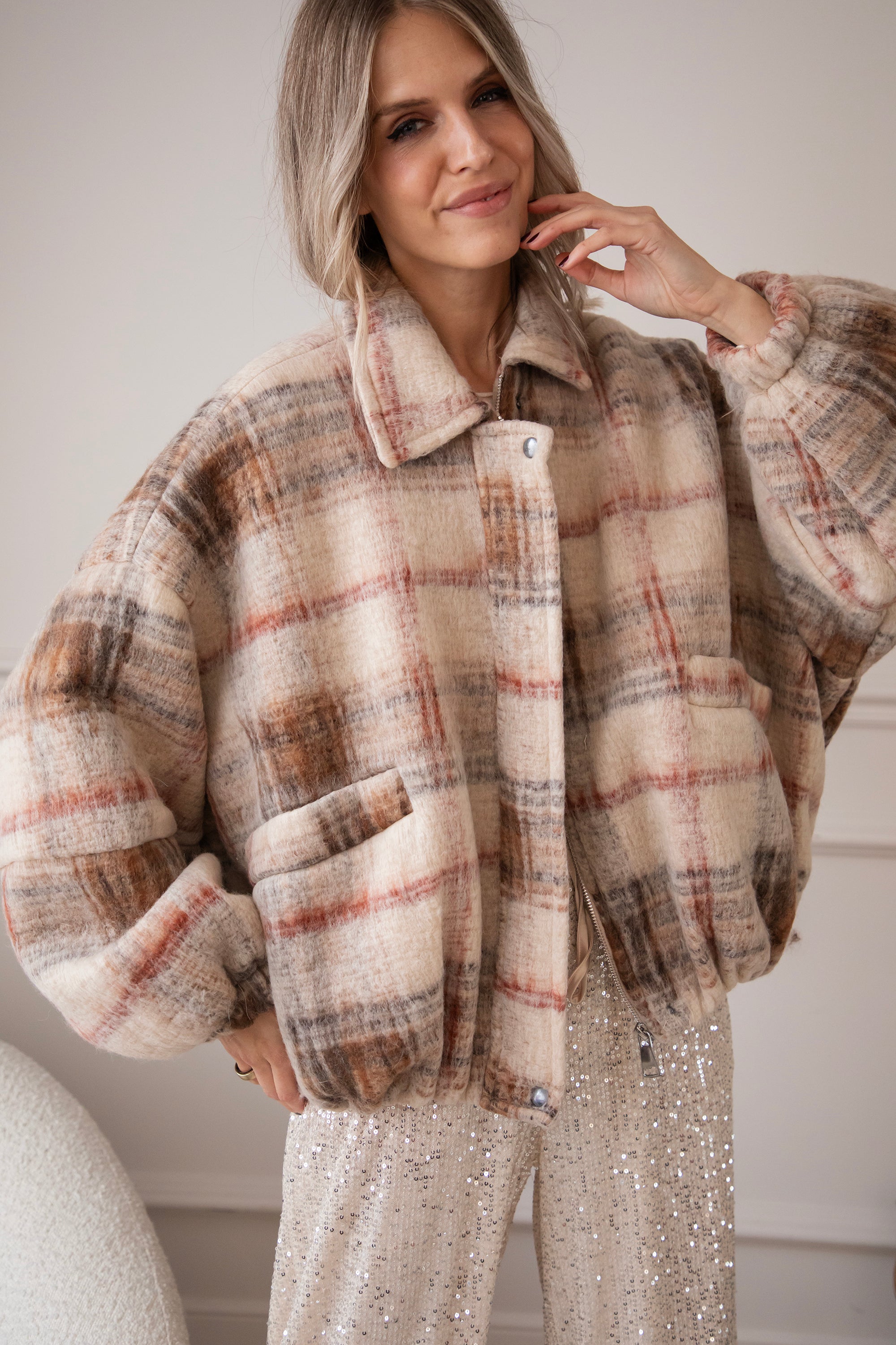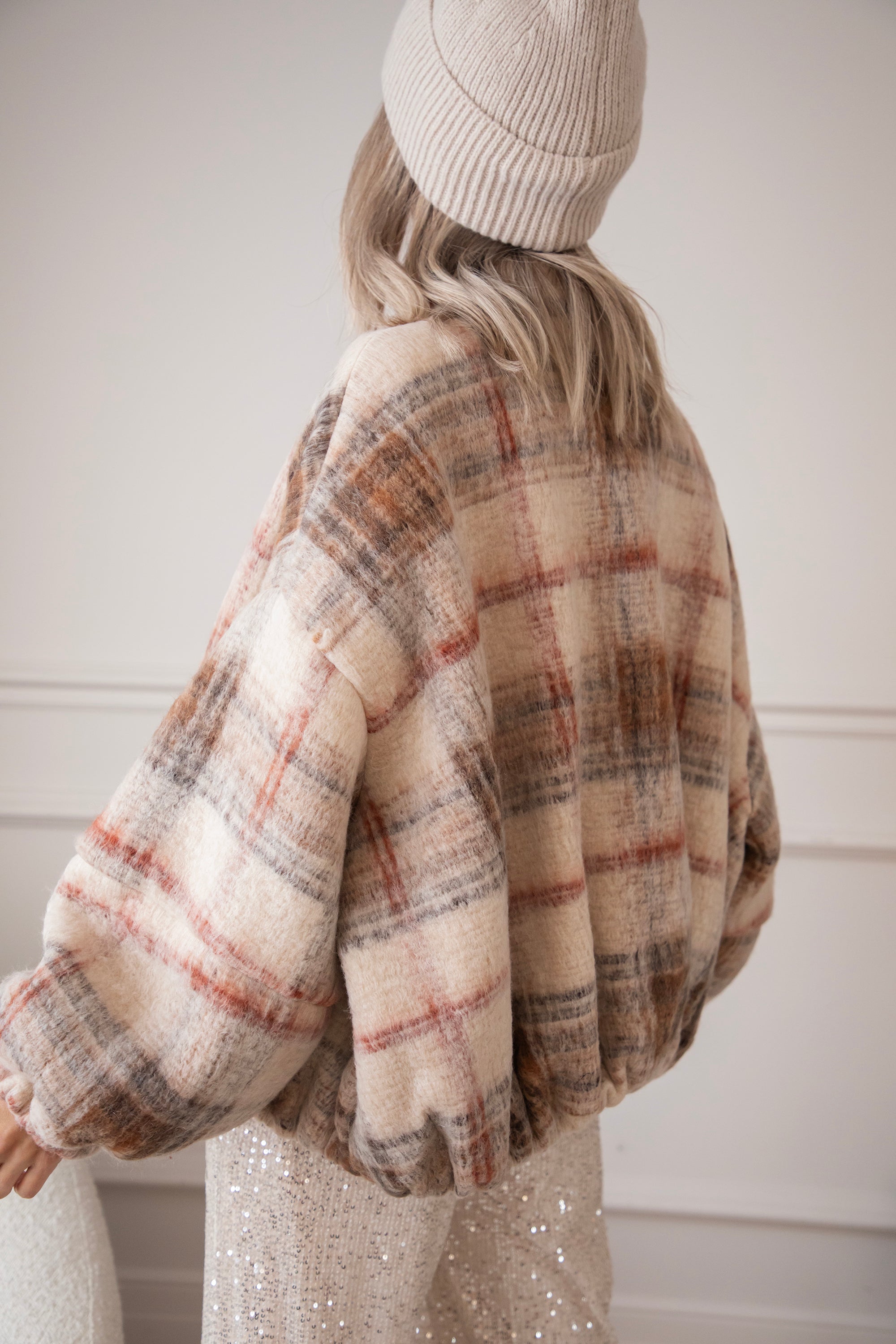 This wool bomber jacket has a classic grid print in beige, black, and red and is made from no less than 50% wool 🥹 So much warmth and style in one! You're officially grid to go! The print instantly gives your look that extra punch ✨ Together with the oversized fit, you really get a gorgeous jacket!