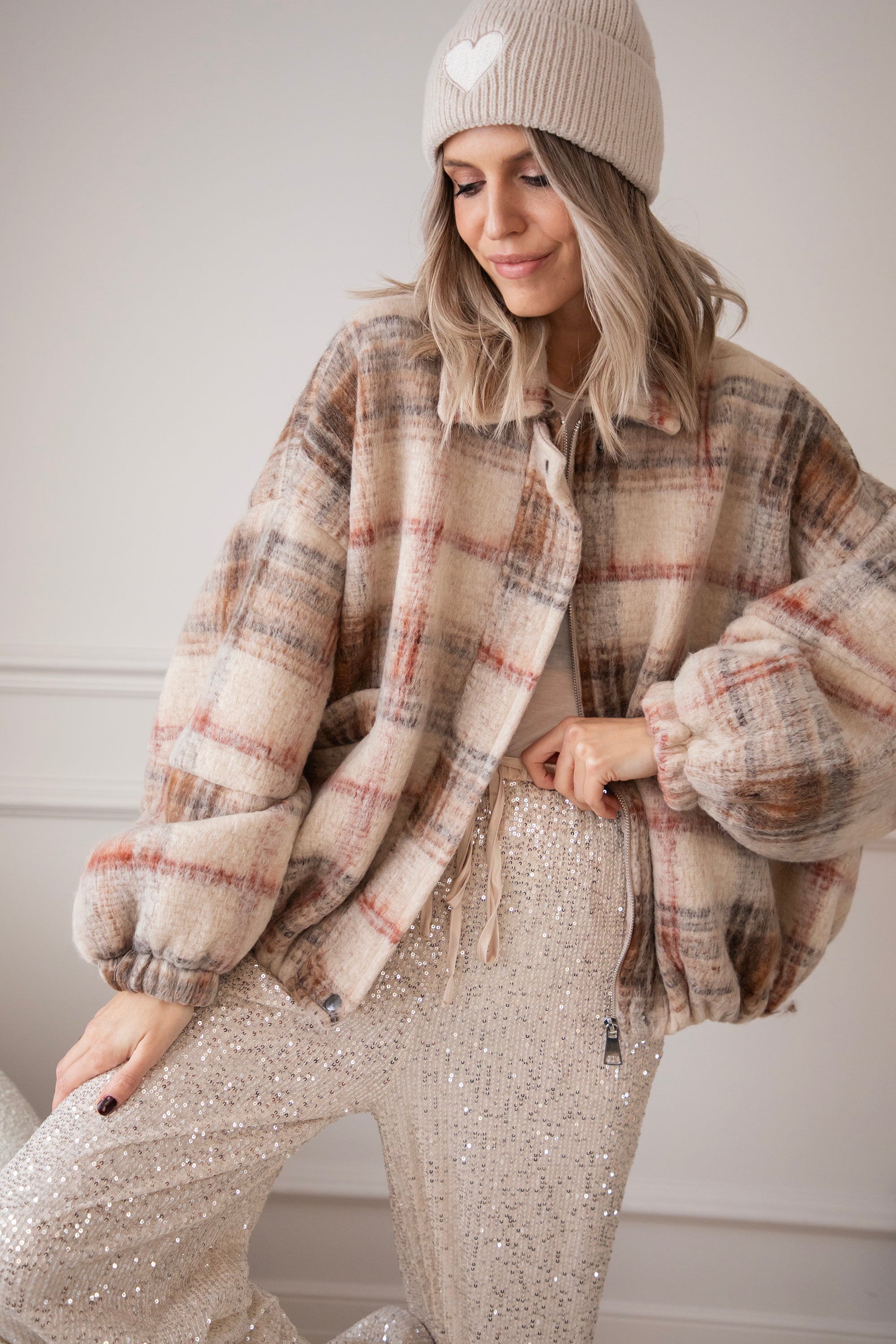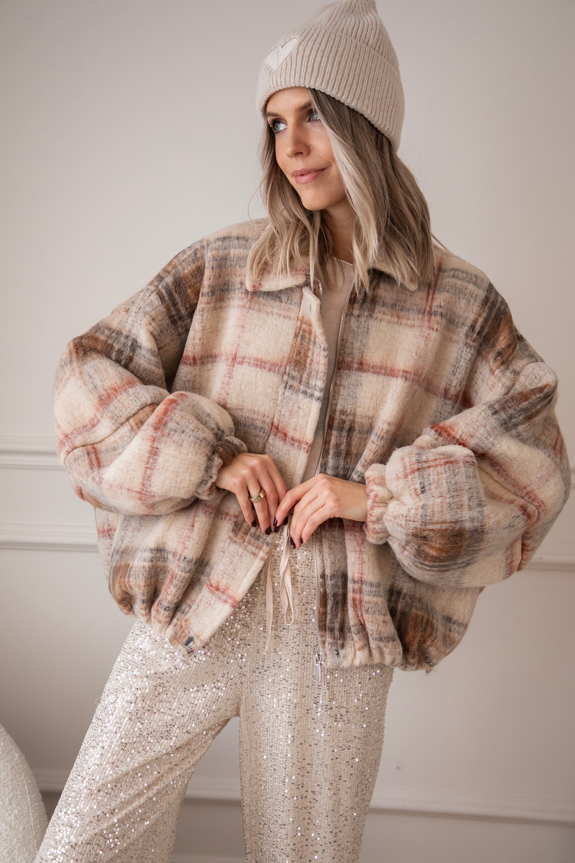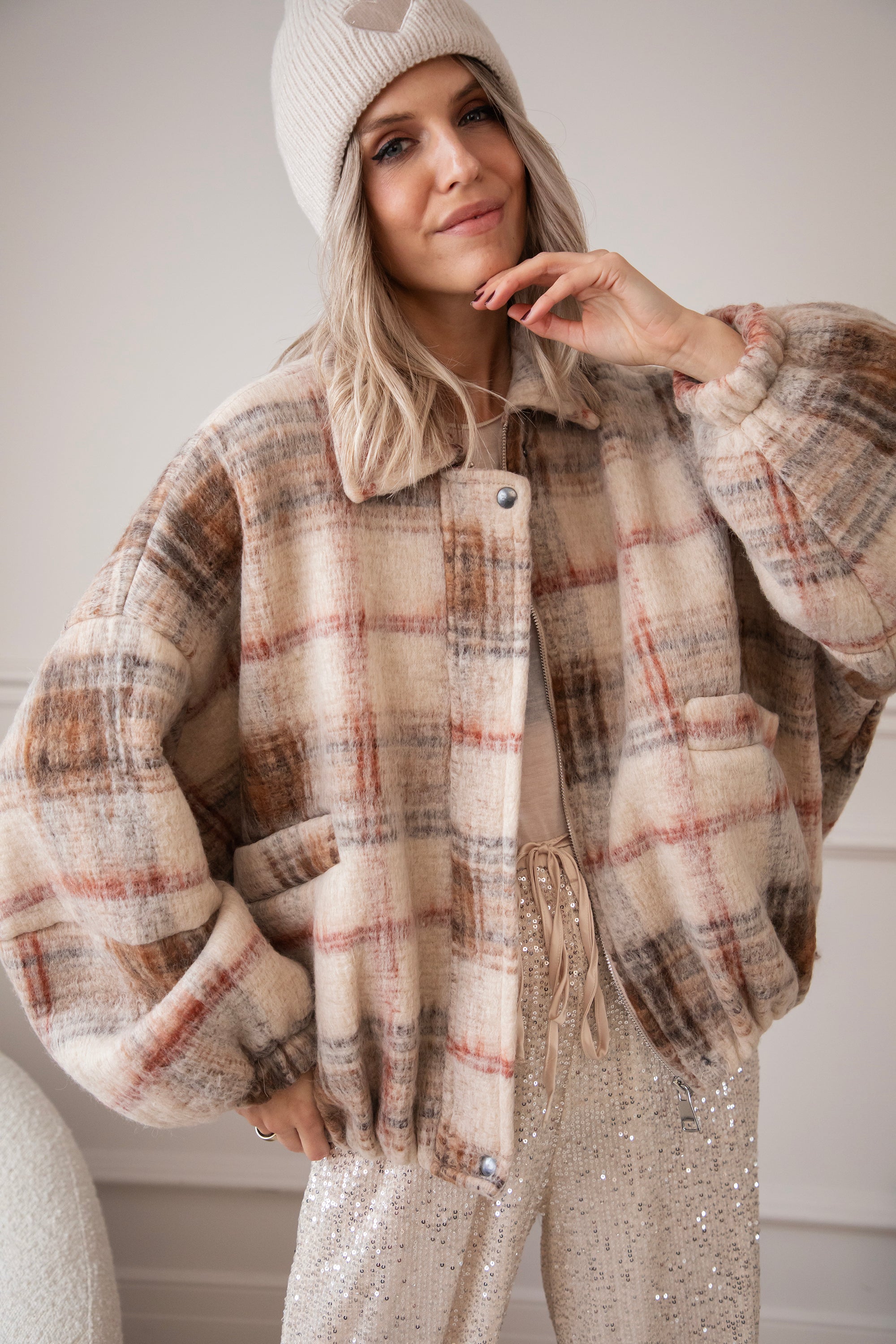 This wool bomber jacket has a classic grid print in beige, black, and red and is made from no less than 50% wool 🥹 So much warmth and style in one! You're officially grid to go! The print instantly gives your look that extra punch ✨ Together with the oversized fit, you really get a gorgeous jacket!