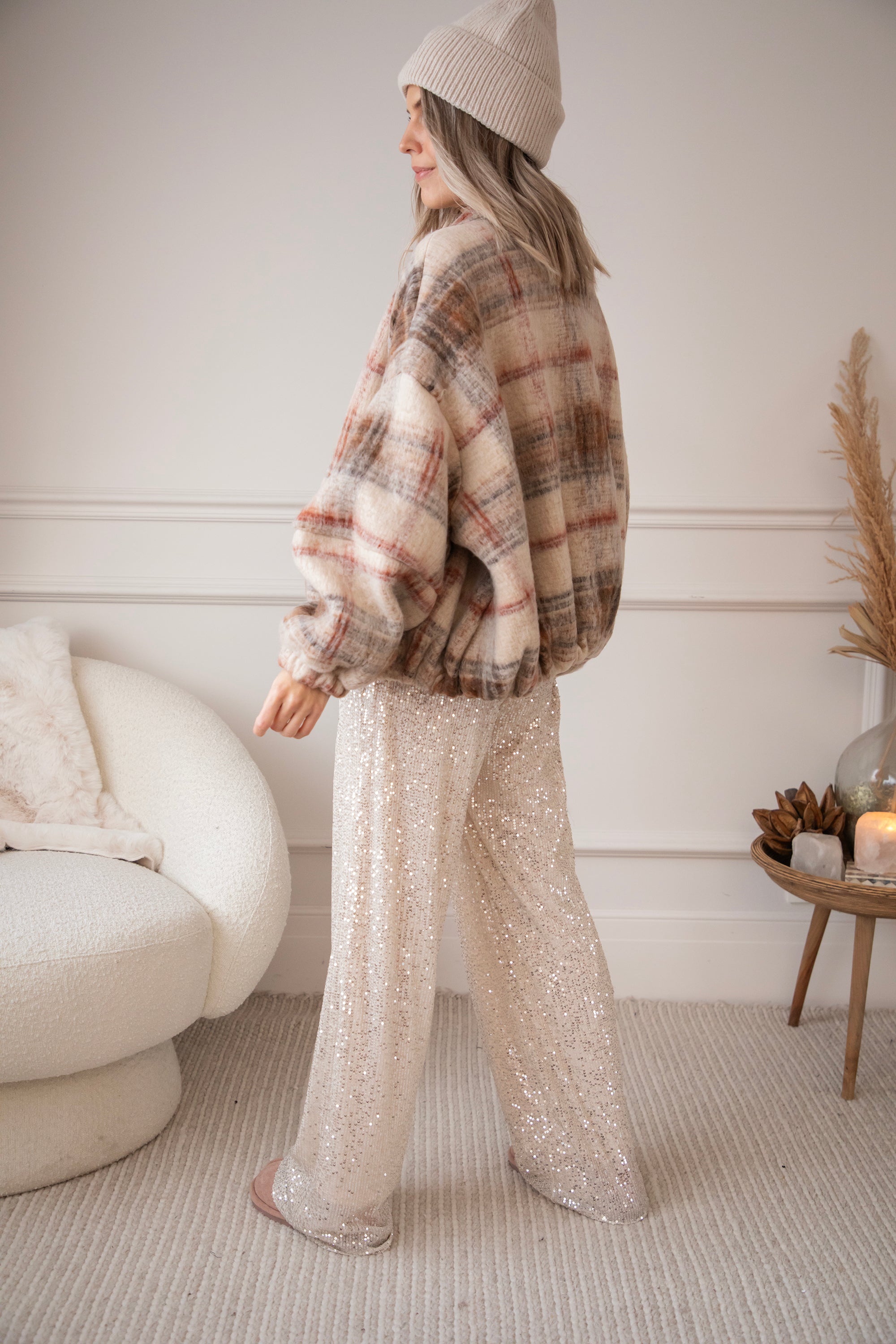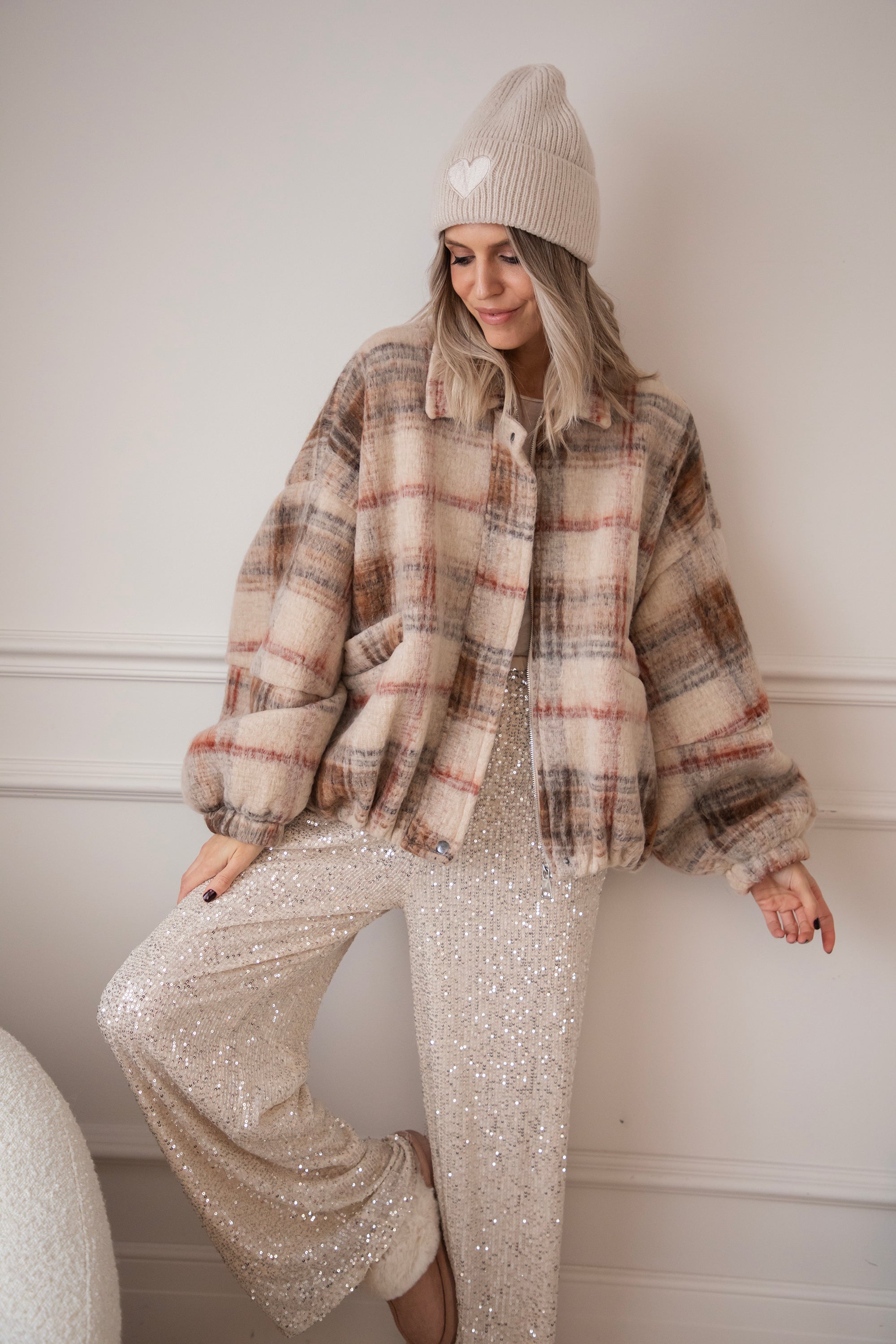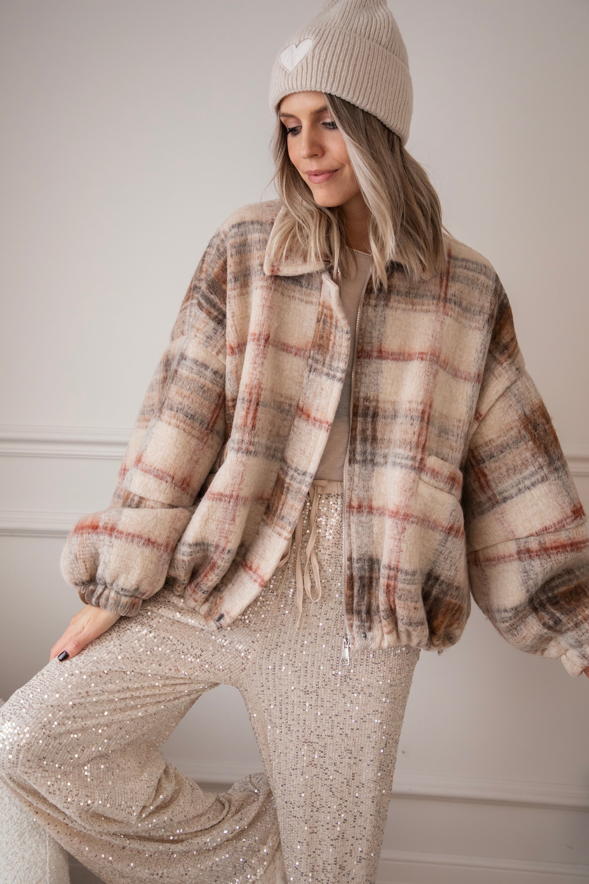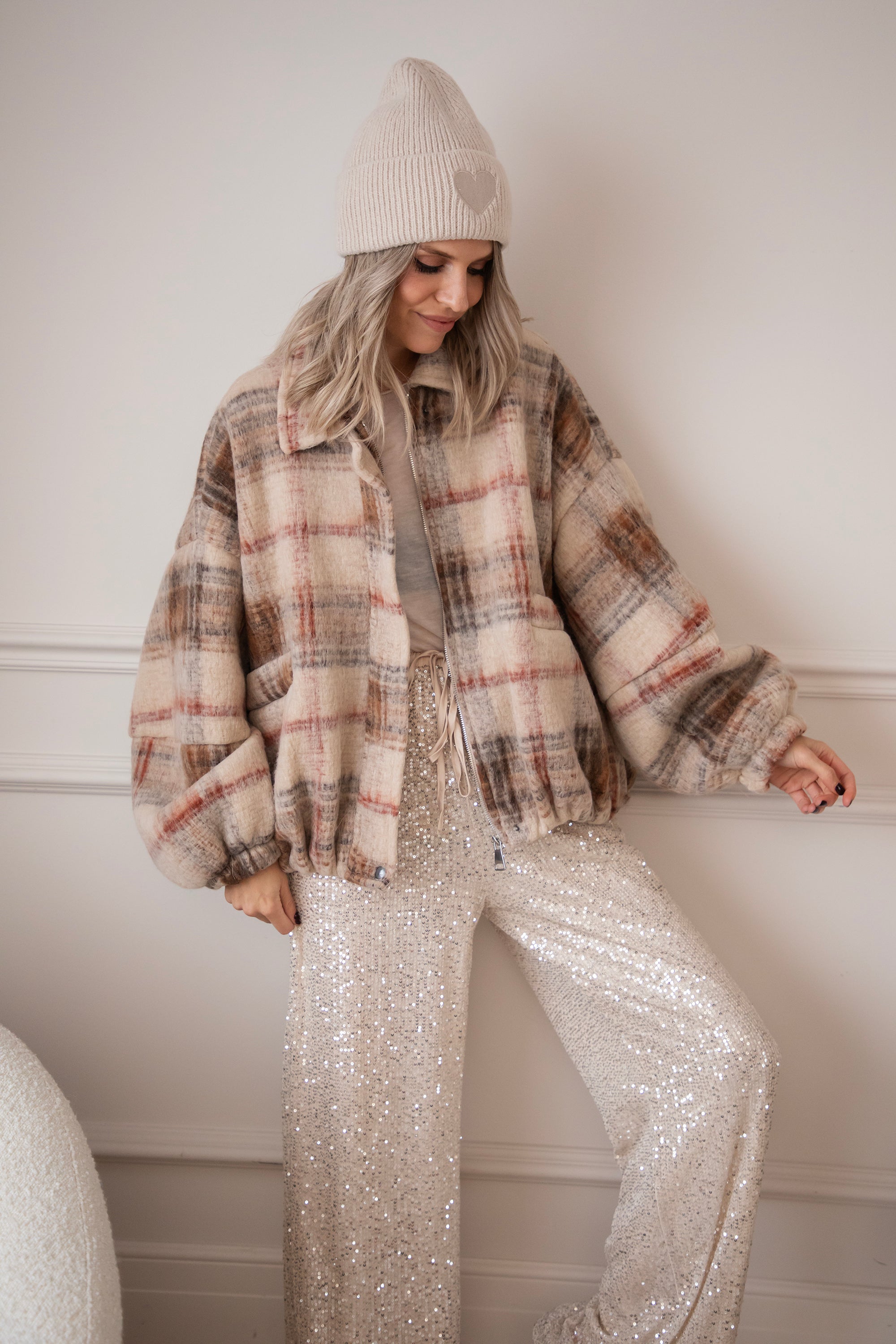 This wool bomber jacket has a classic grid print in beige, black, and red and is made from no less than 50% wool 🥹 So much warmth and style in one! You're officially grid to go! The print instantly gives your look that extra punch ✨ Together with the oversized fit, you really get a gorgeous jacket!