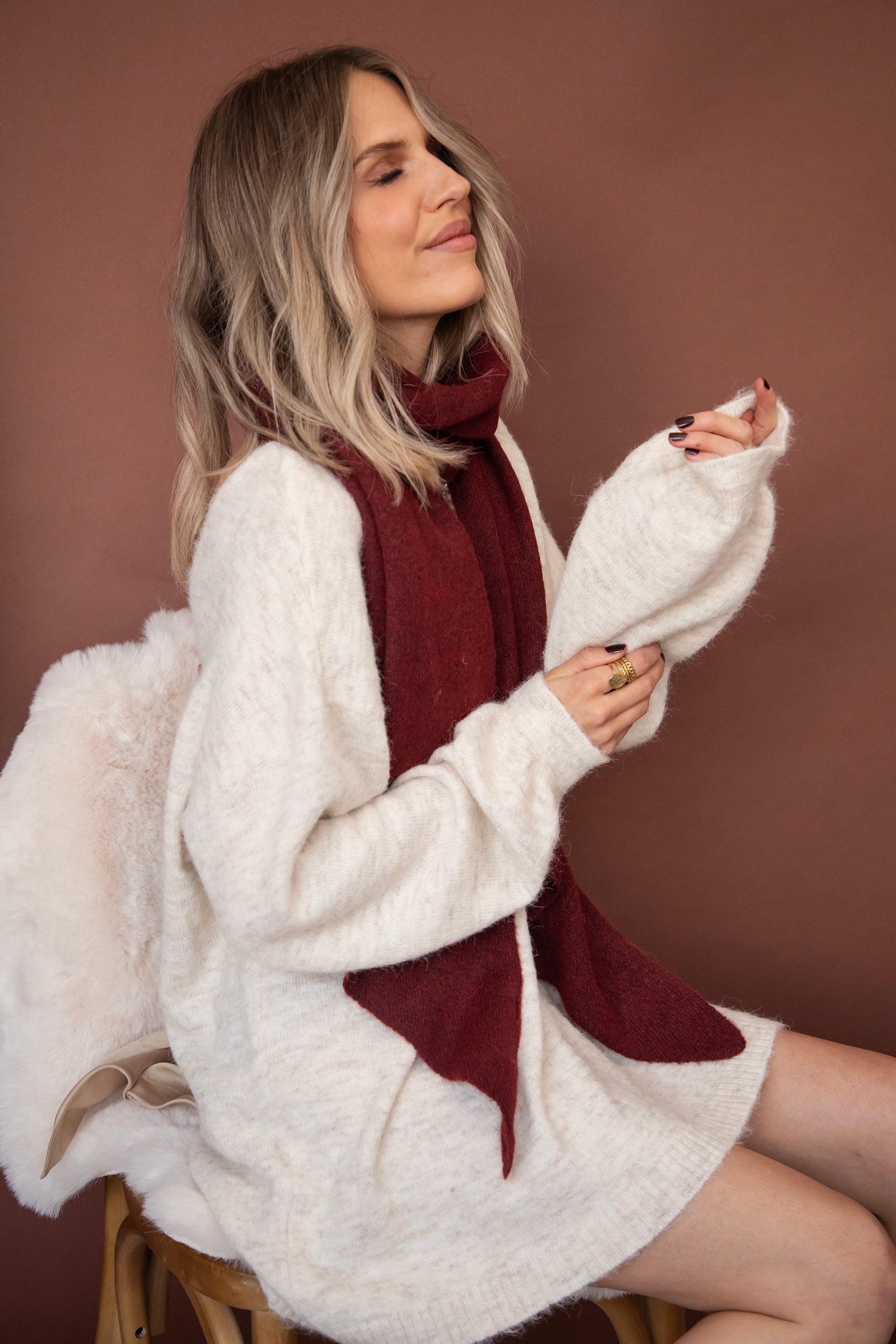We didn't have a burgundy scarf in our collection yet, and since we've added lots of burgundy clothing and jewelry, we needed a matching scarf β€οΈπ Hold Me Close is a basic scarf that you can wrap around yourself! It's not very wide, but it is long, so it's ideal π