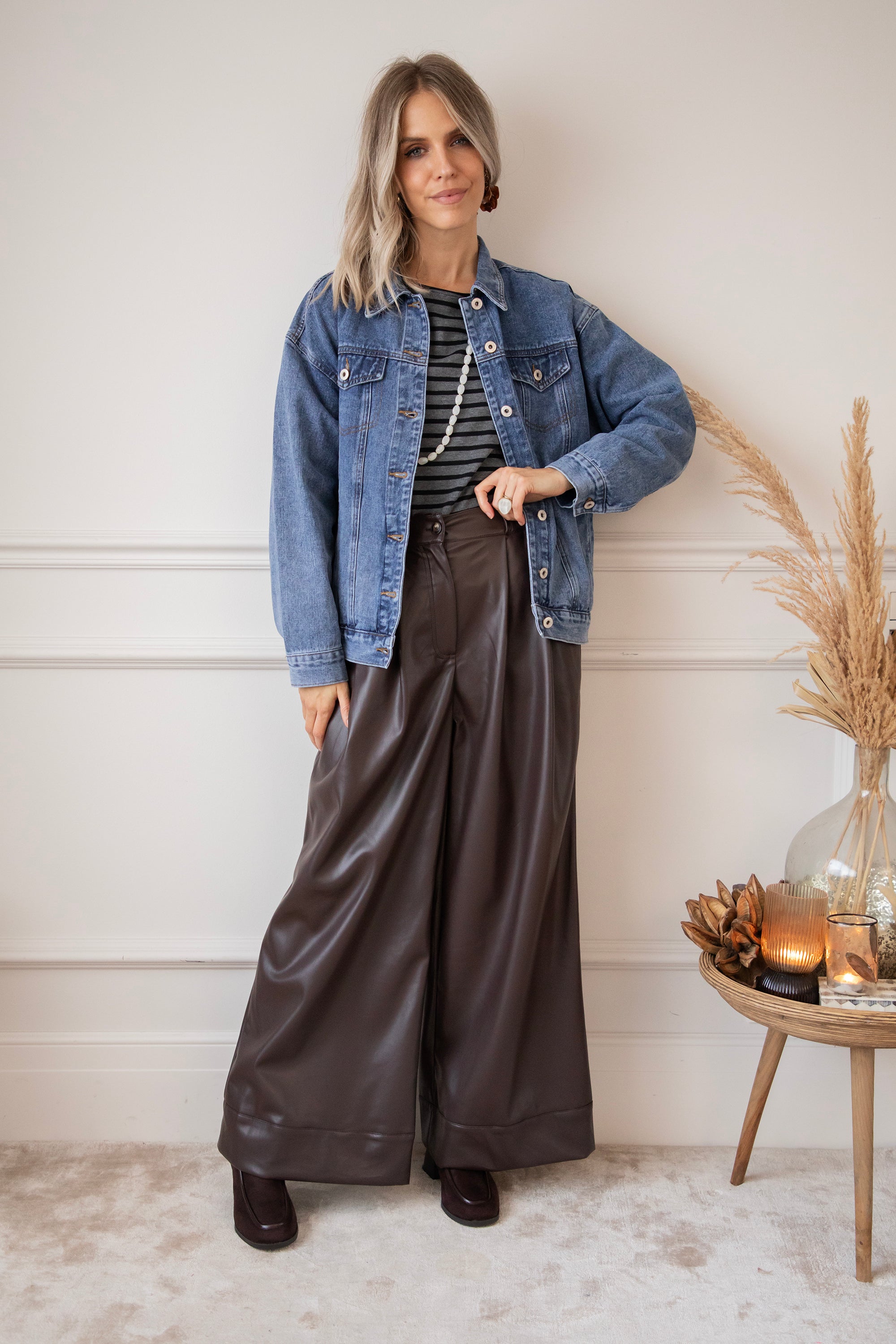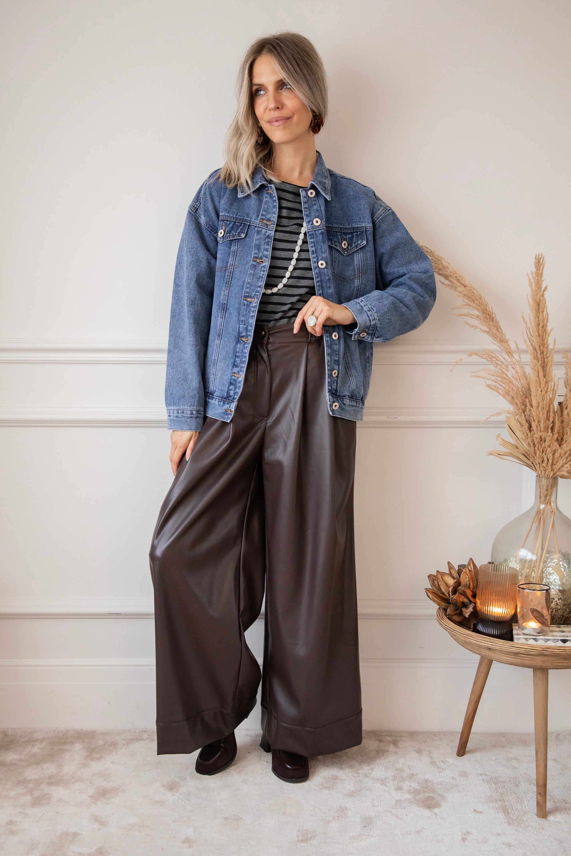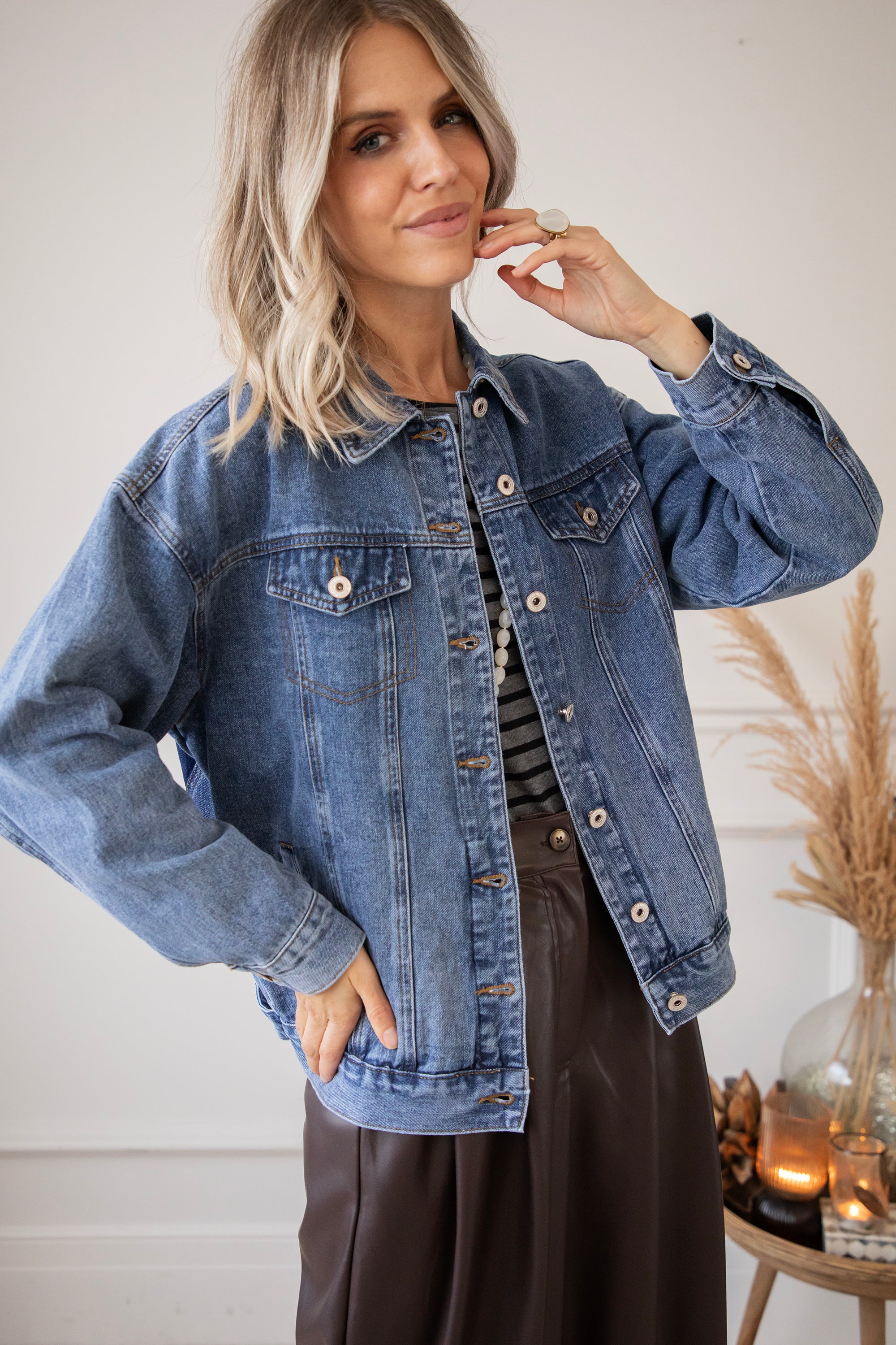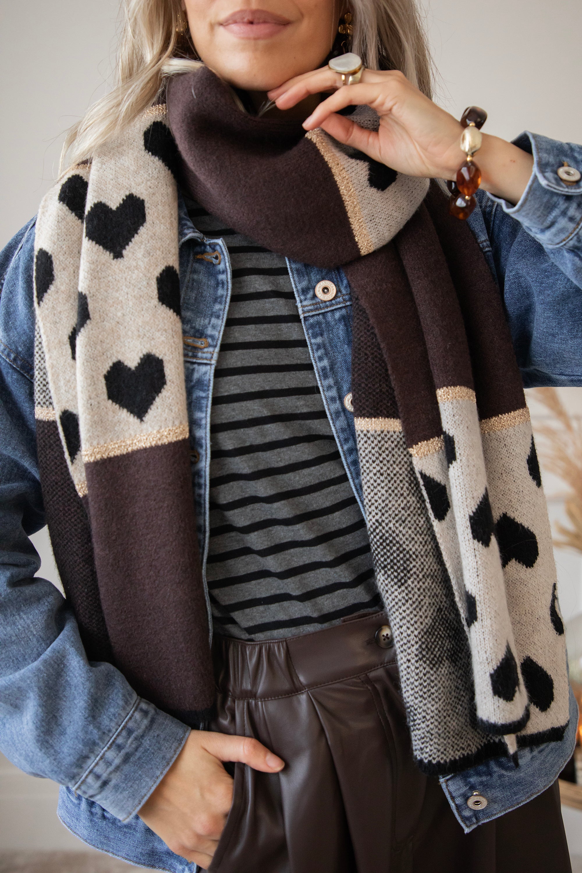 You can wear a denim jacket all year round, right? In the fall with a thick sweater and cozy scarf 🧣The Falling In Love scarf adds extra love, hehe 🥰 By the way, I'm a big fan of that blue & brown combo! 🤎