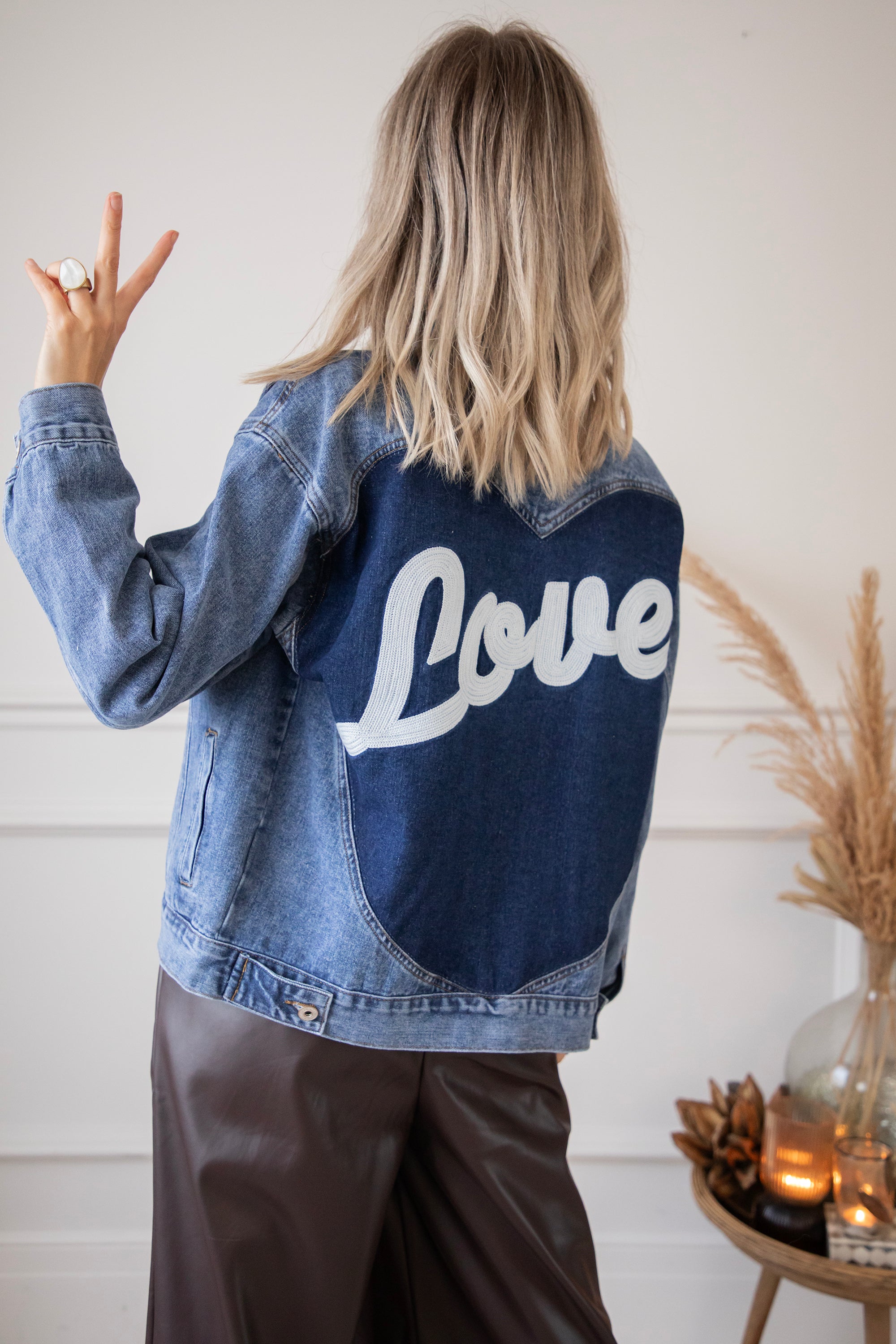Girls... this jacket is just too cute to handle! 😍 Our Love Jean Jacket is a classic with a twist. Timeless at the front, but the back? Pure love! 💌 Here, the large dark blue heart is the eye-catcher with “LOVE” in white graffiti font 🫶