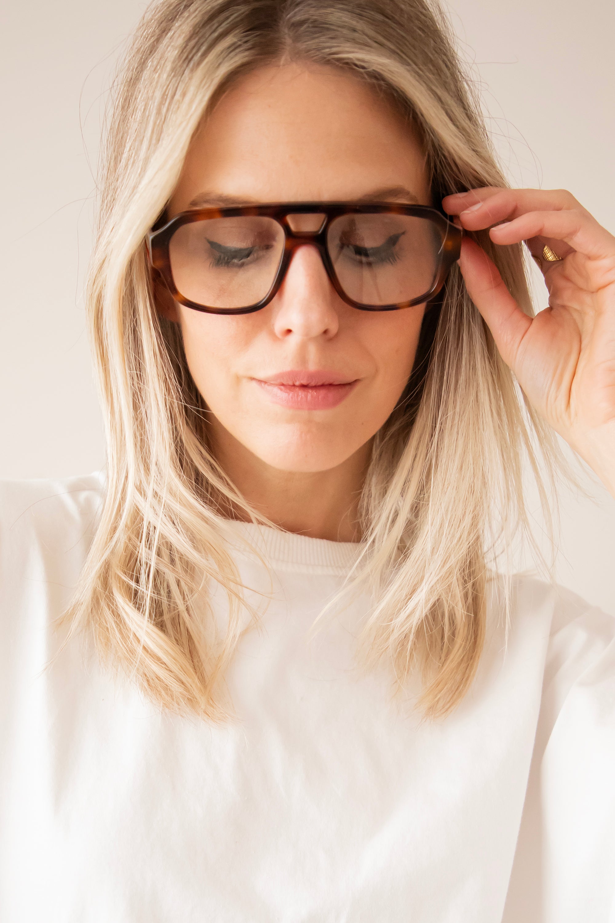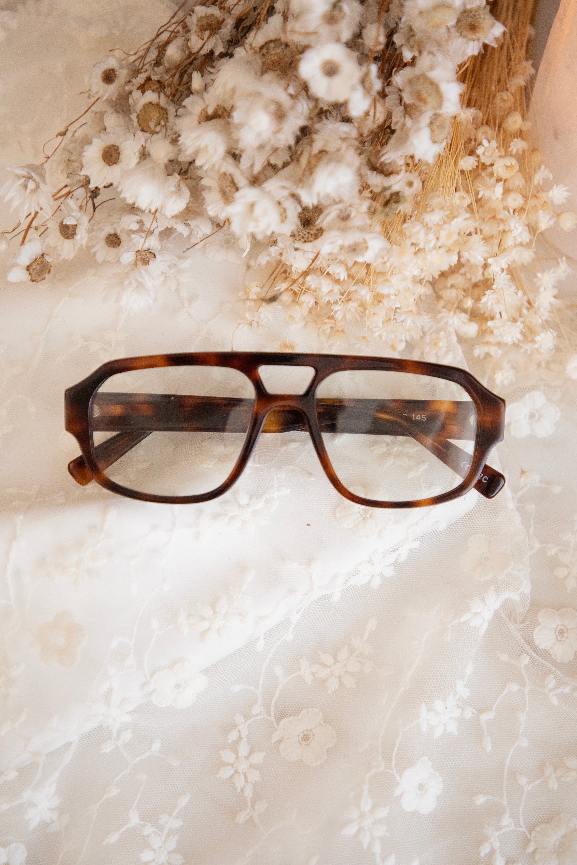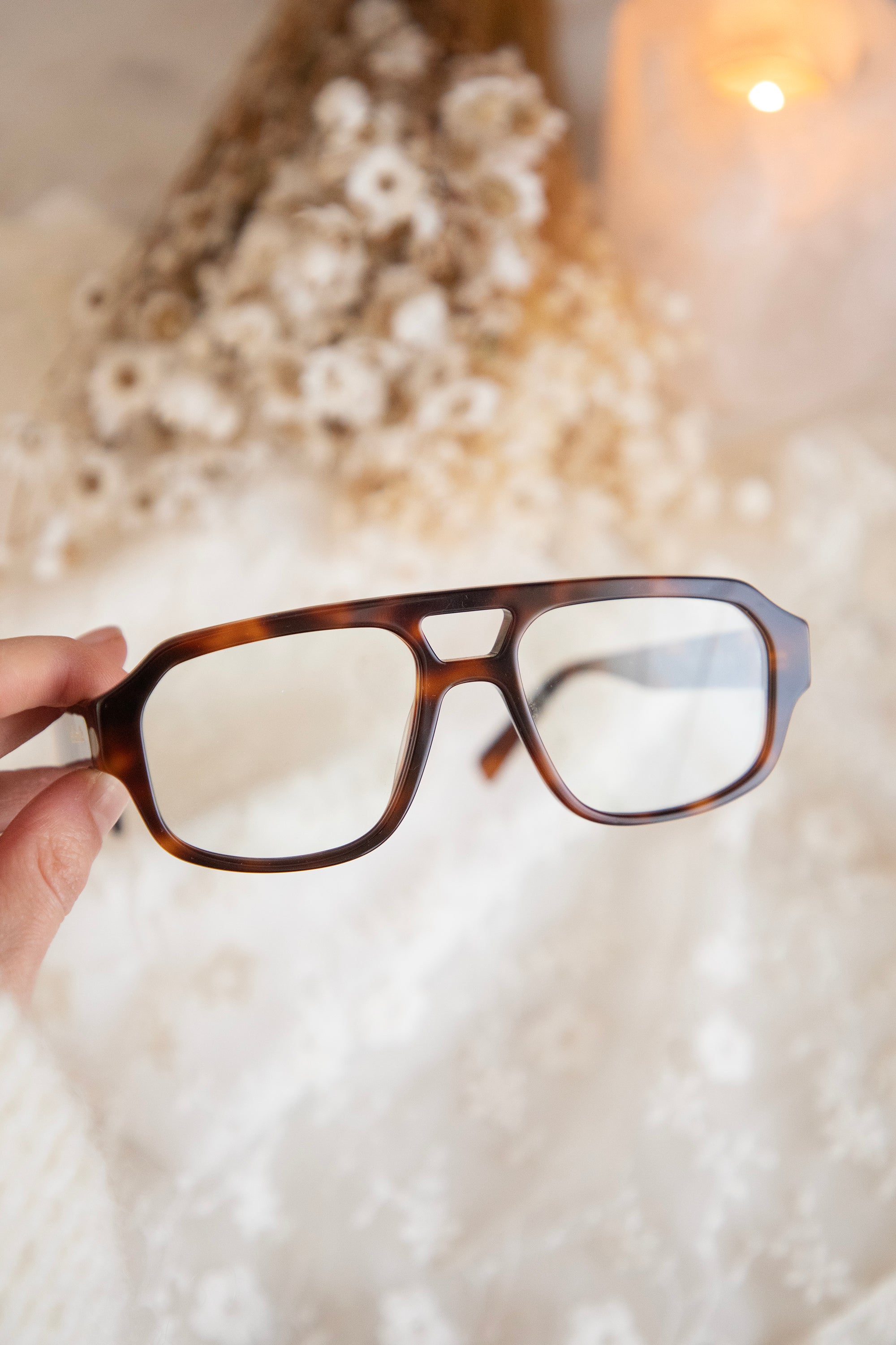 Rae has that same pilot frame with wider lenses, but now in a chocolate-colored leopard look 🐆 How gorgeous is that! Soft, warm, and a little playful, truly a print that matches everything and gives your look that extra ✨