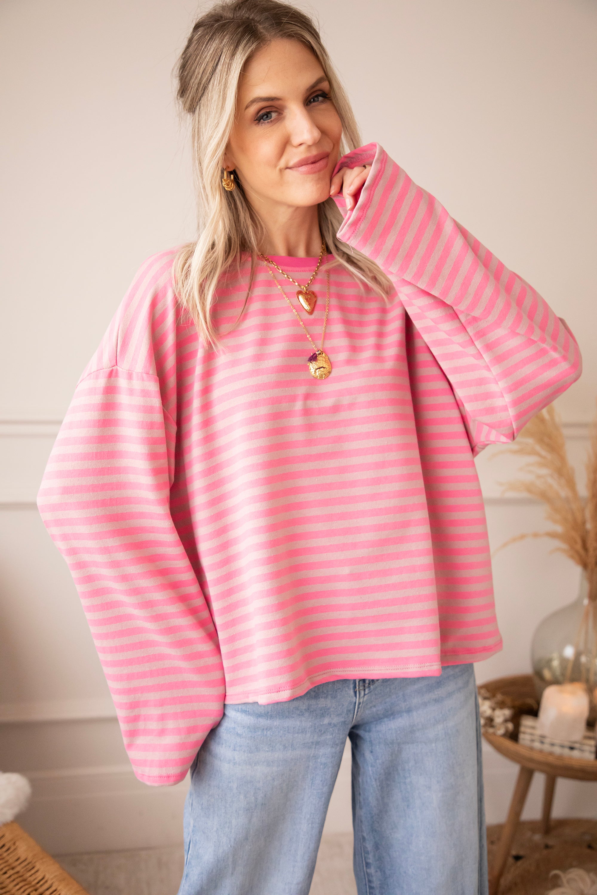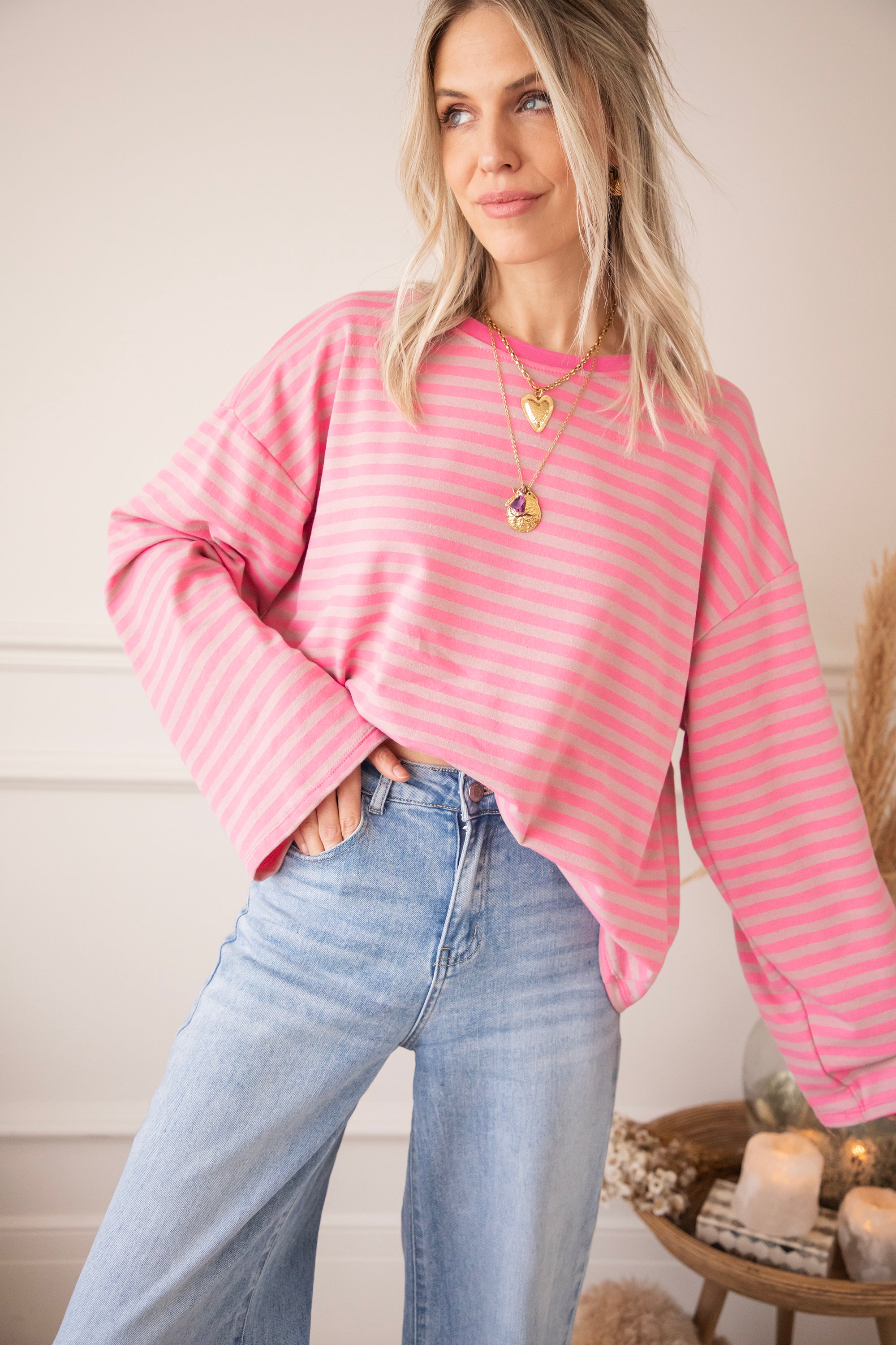 Sadie Stripe Pink/Taupe - Longsleeve