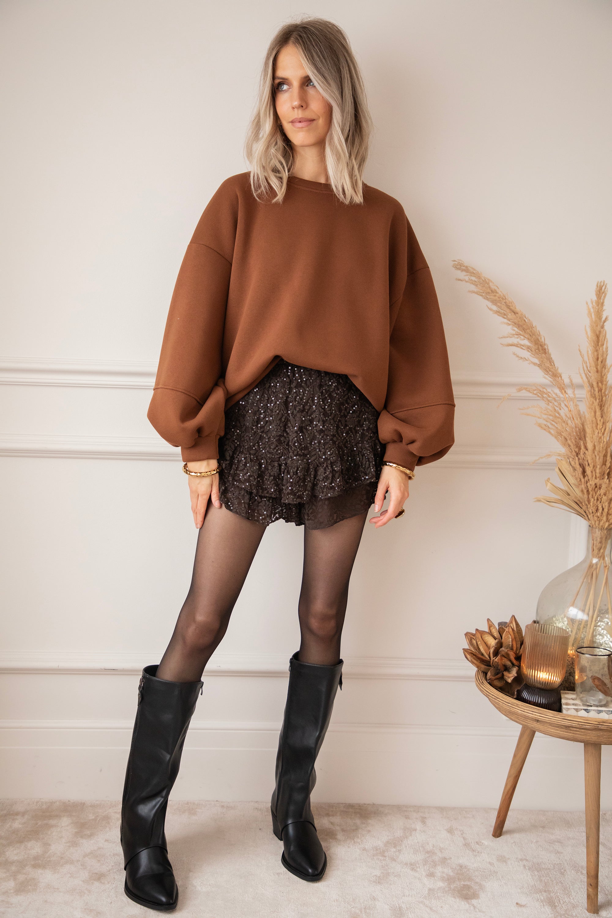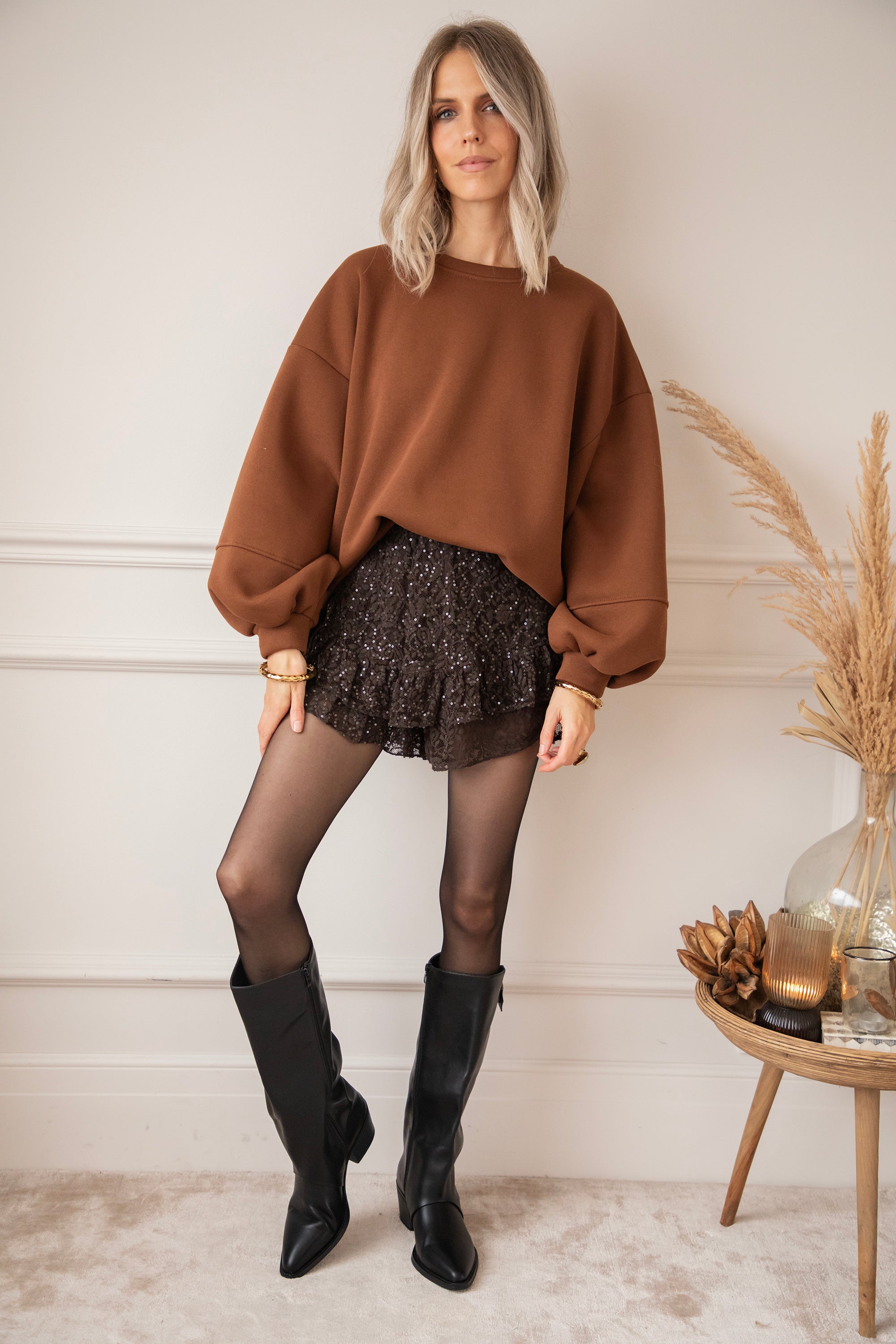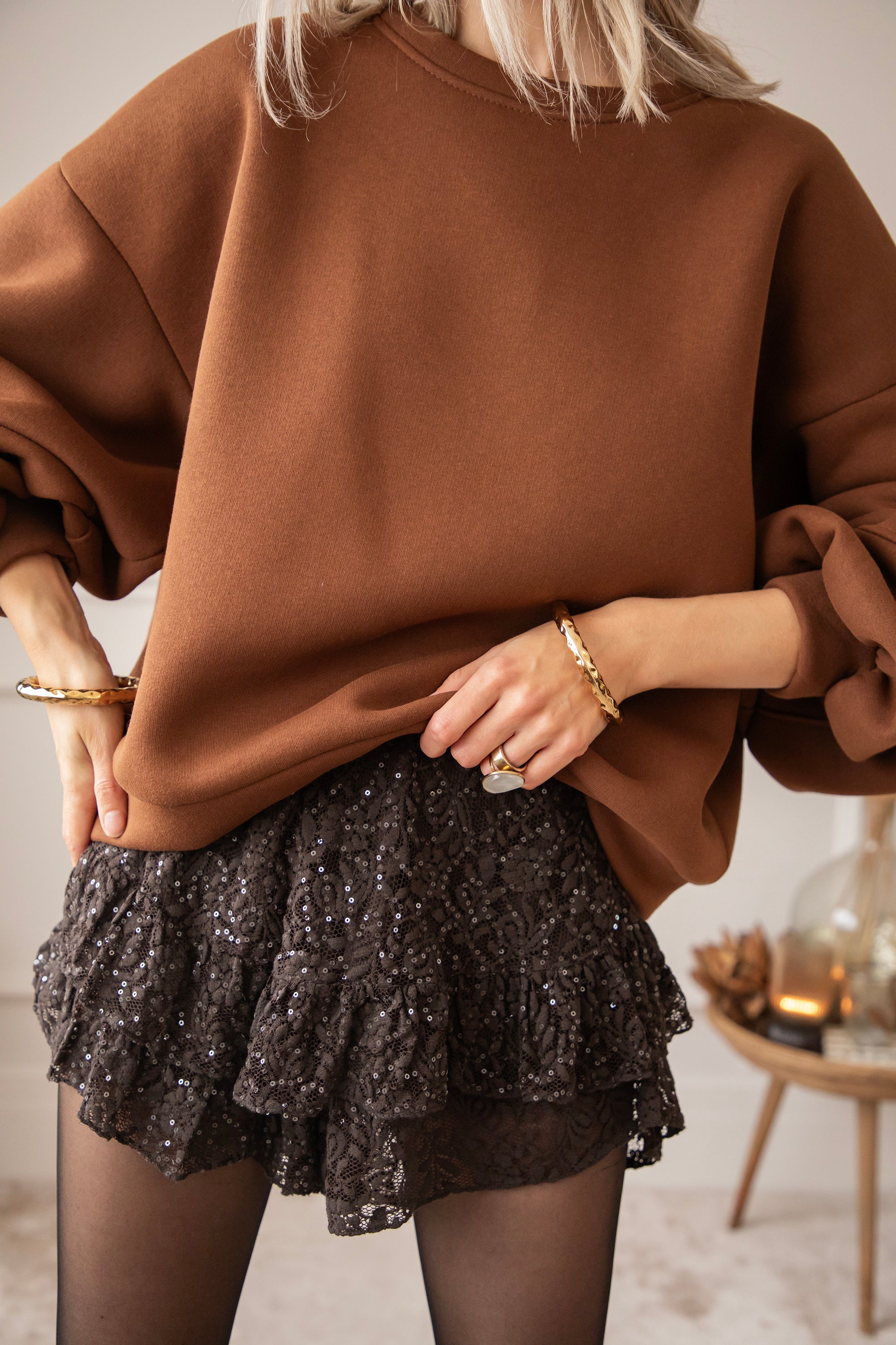 The Shimmer In Lace skort is such a cutie. It is made entirely of lace with delicate floral patterns and subtly finished with shiny sequins. This gives you that soft sparkle that adds just that little bit extra to your outfit. The layers create a playful effect. And the best part? The waistband stretches nicely, so comfort is totally on point 🤎