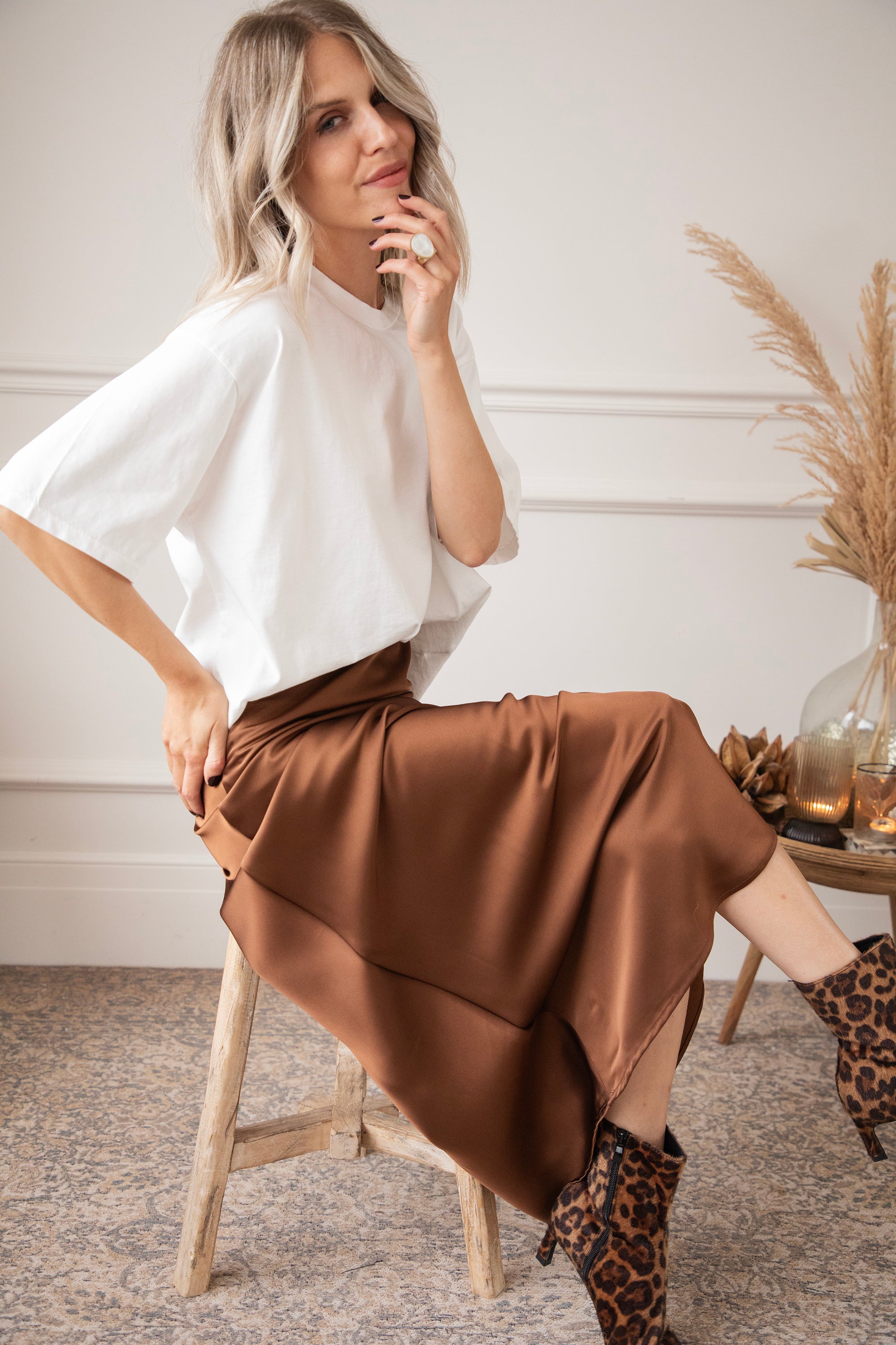 The satin Silkylicious skirt is a real staple in the ellemilla fall collection! It's a timeless, elegant piece that instantly gives your outfit a feminine upgrade 🎀 The silky touch, the soft sheen, and the flowy fit... everything is just right! Whether you're going for a casual day look or a glam night out, Silkylicious adapts to any occasion.