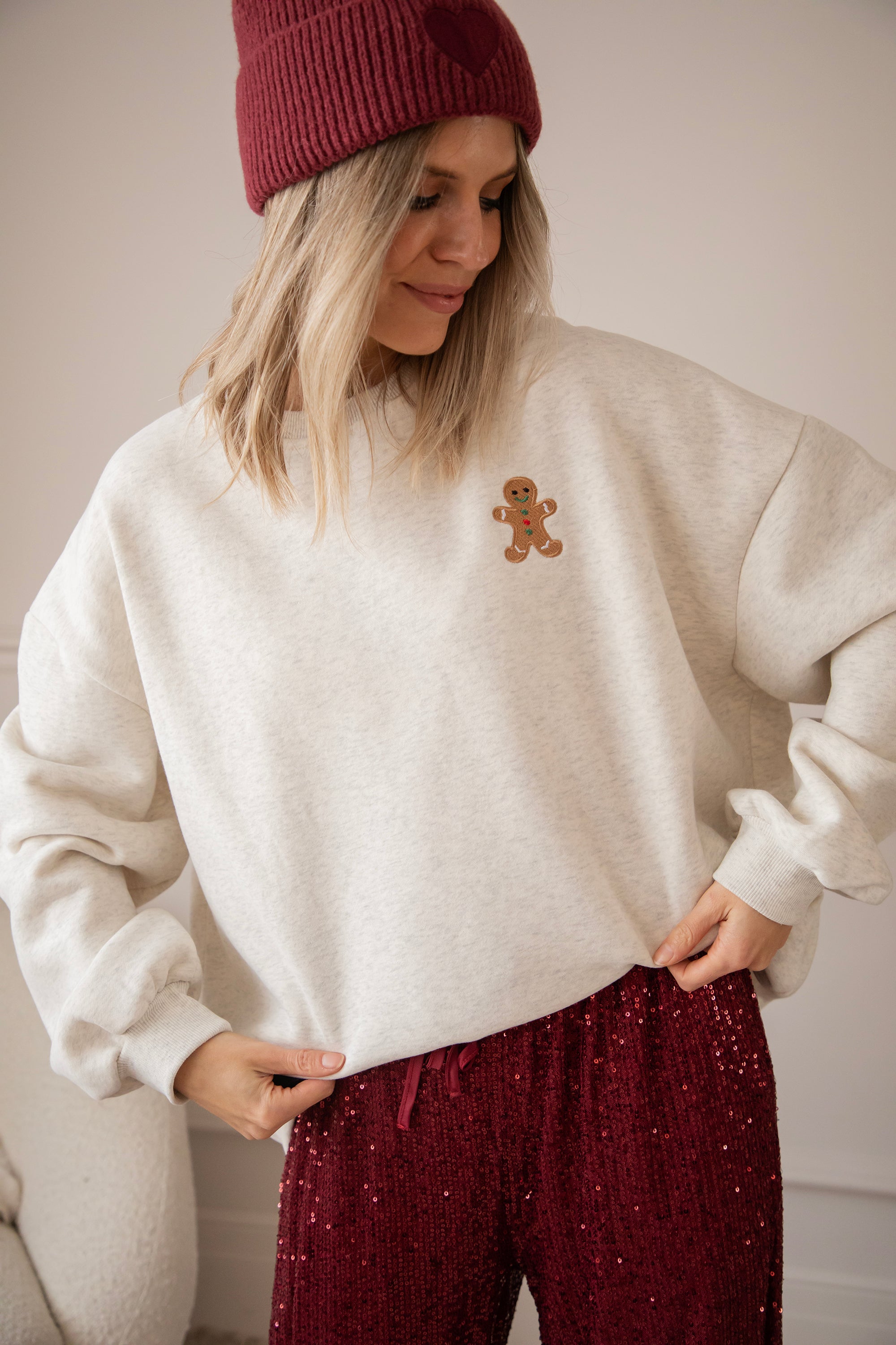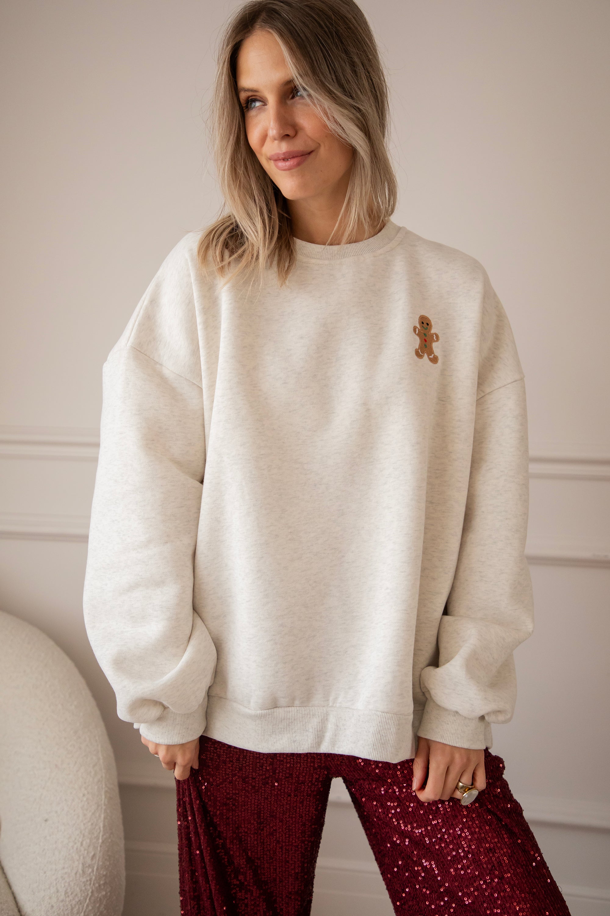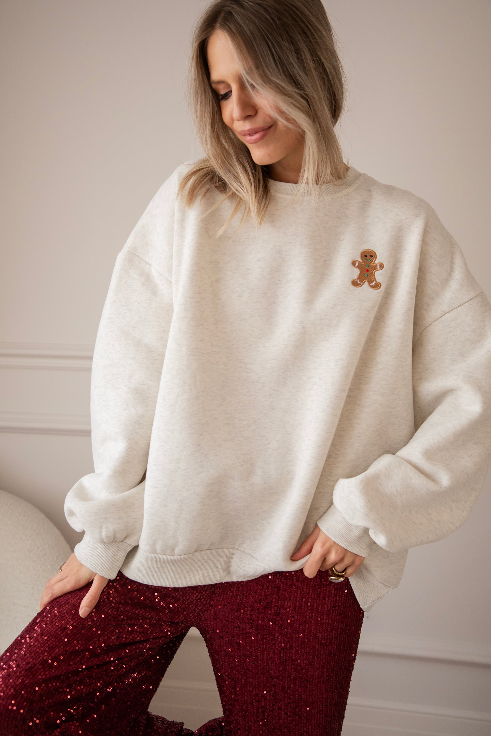 Our new Soft Grey Simplicity sweater has a gingerbread man on the chest and omg... he is SO cute! With his little smile, his red and green accents, hehe 💚 This is pure winter happiness in one sweater! A design straight from my warm winter heart, especially for you! ✨🎄🍪