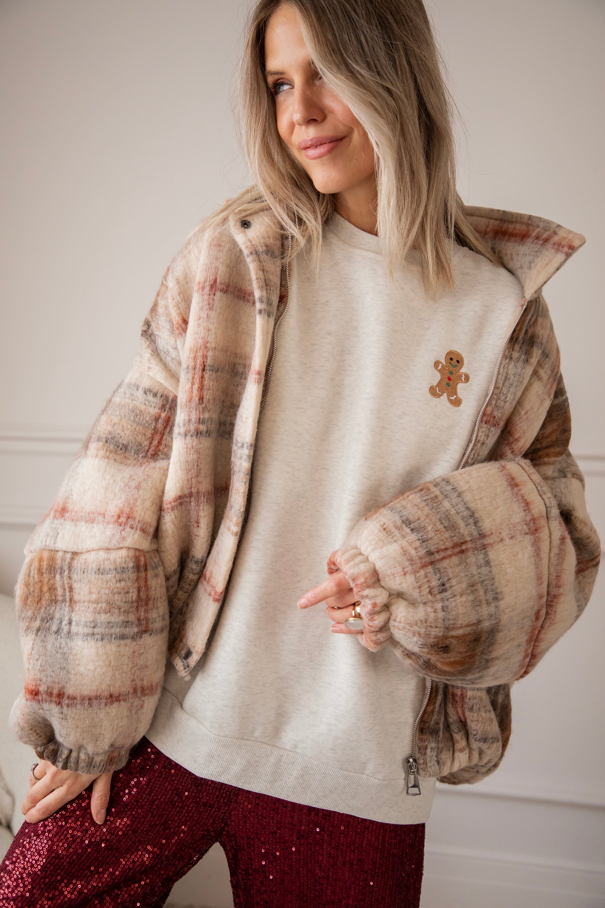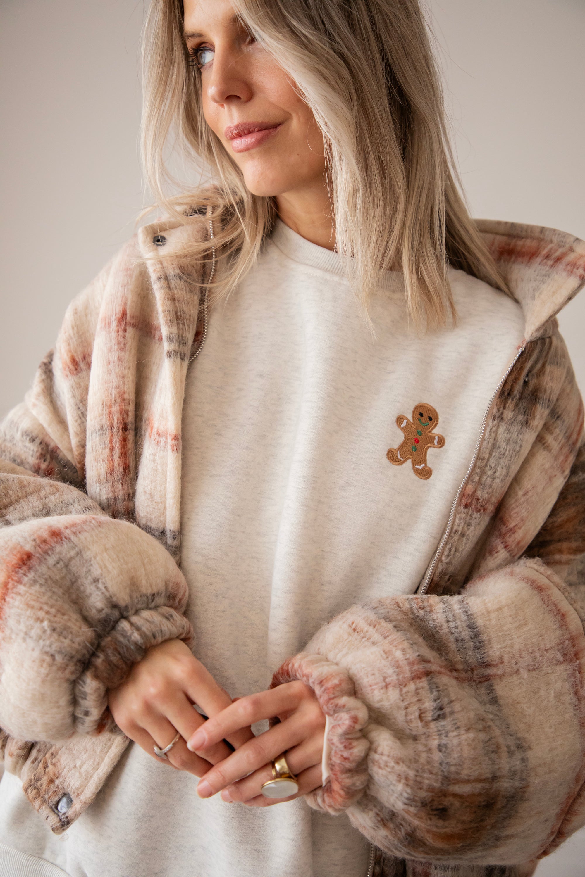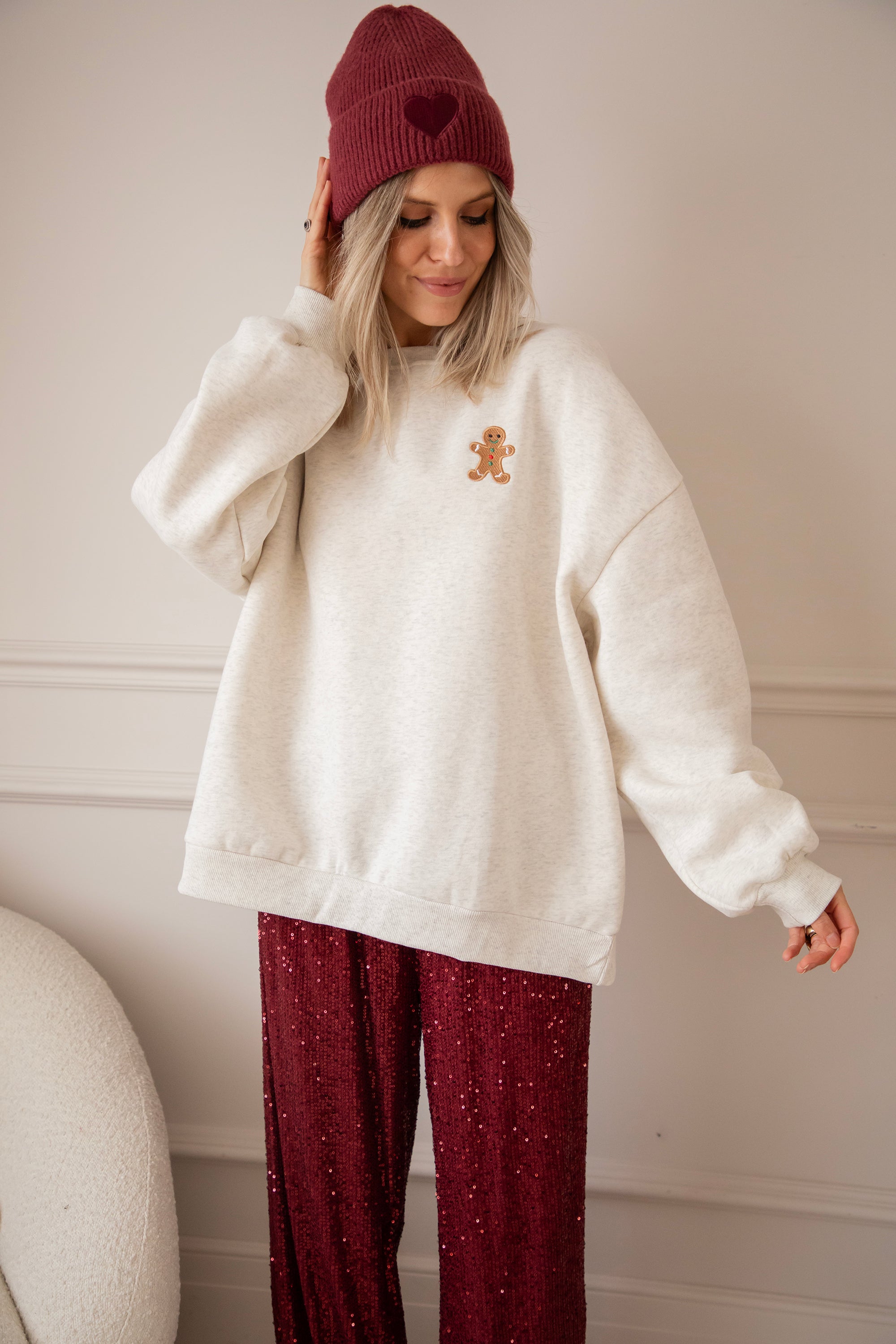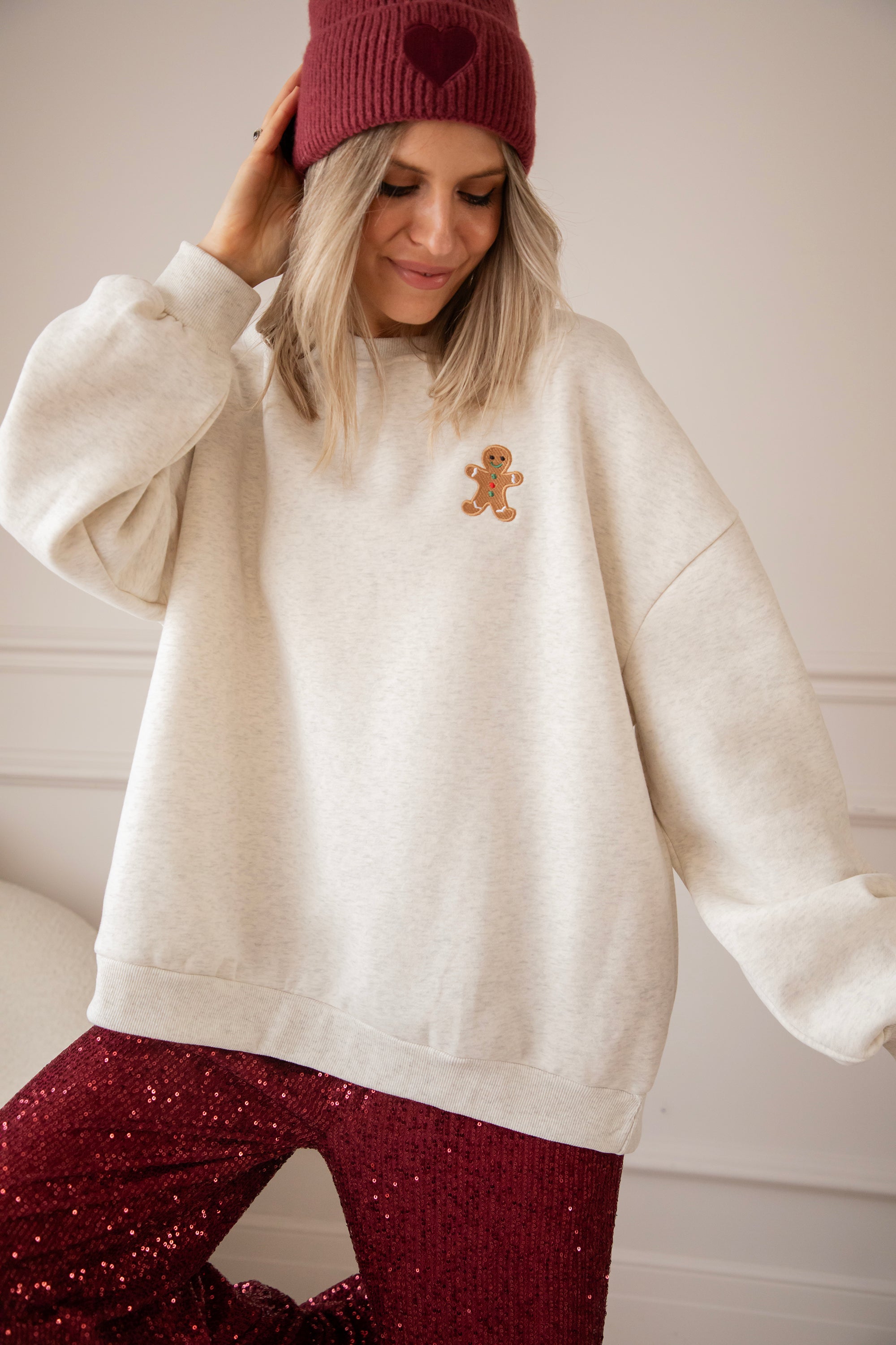 Our new Soft Grey Simplicity sweater has a gingerbread man on the chest and omg... he is SO cute! With his little smile, his red and green accents, hehe 💚 This is pure winter happiness in one sweater! A design straight from my warm winter heart, especially for you! ✨🎄🍪
