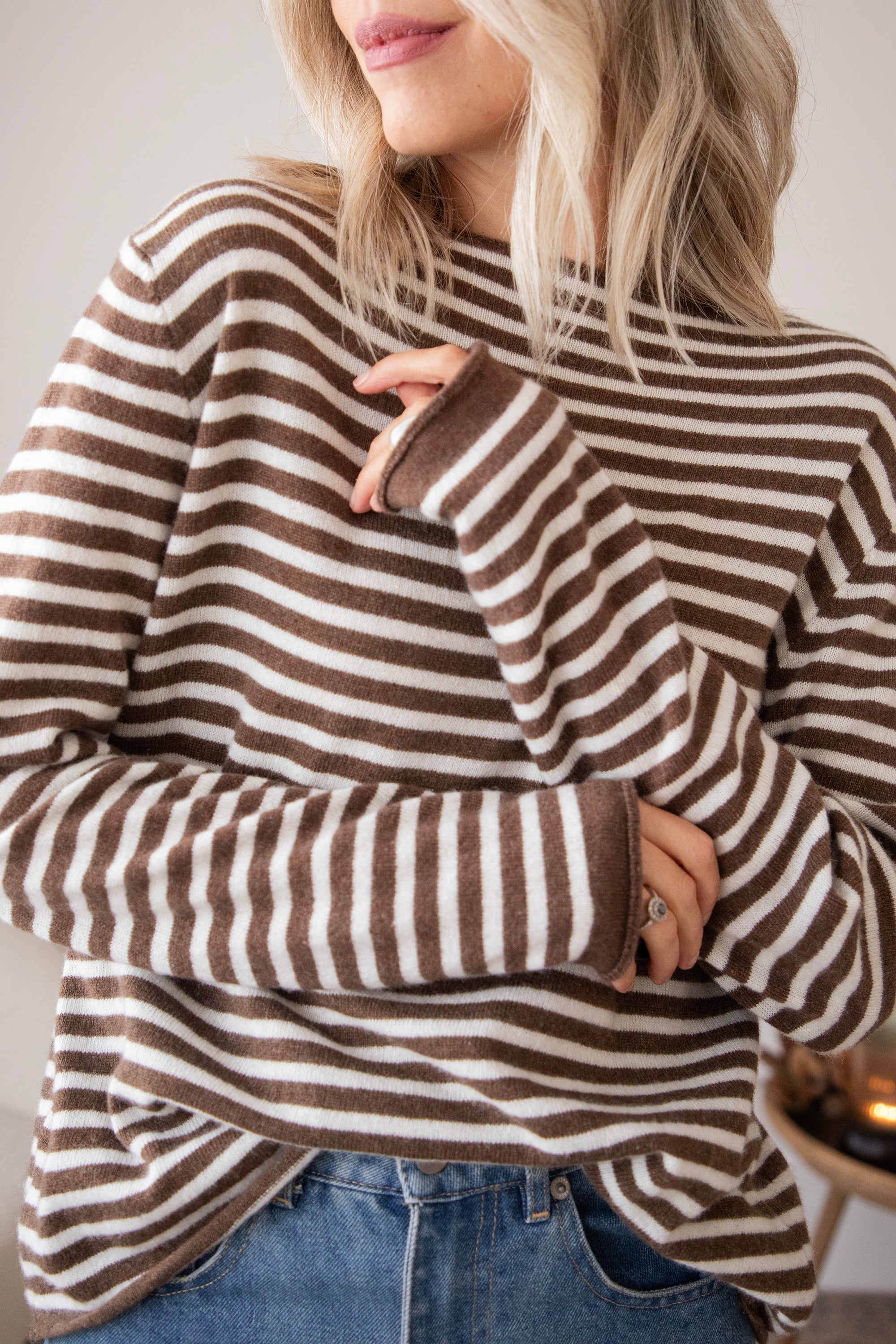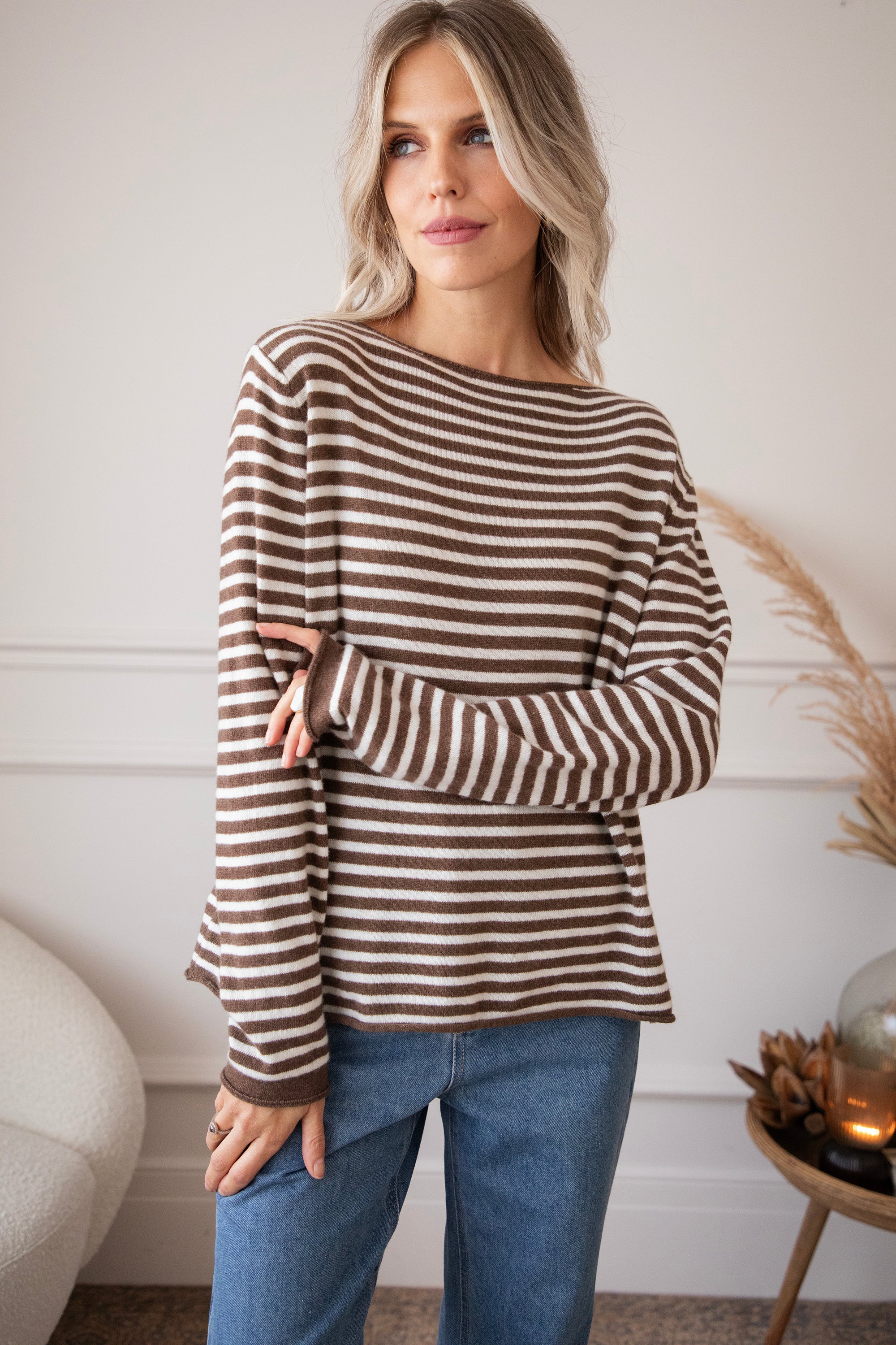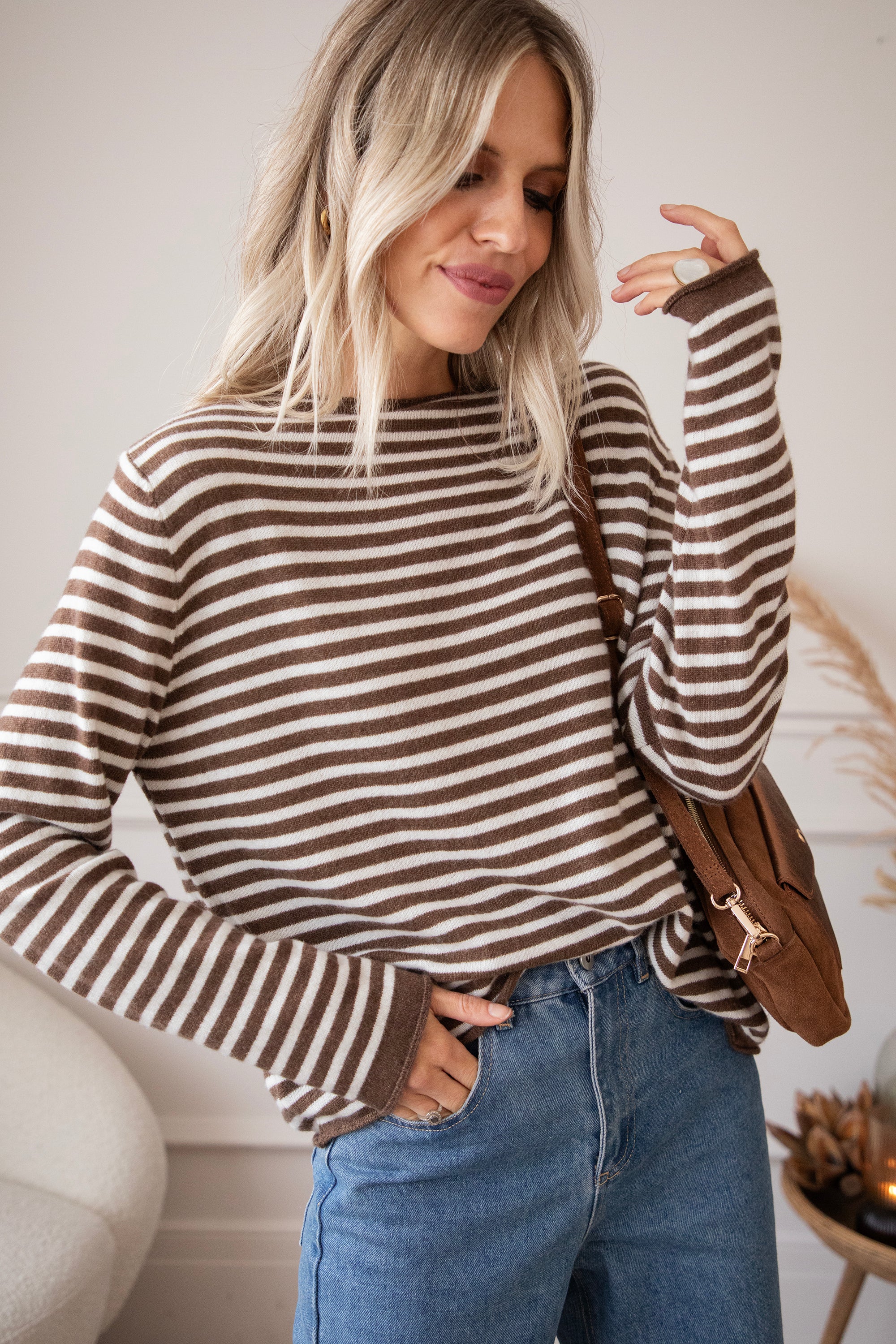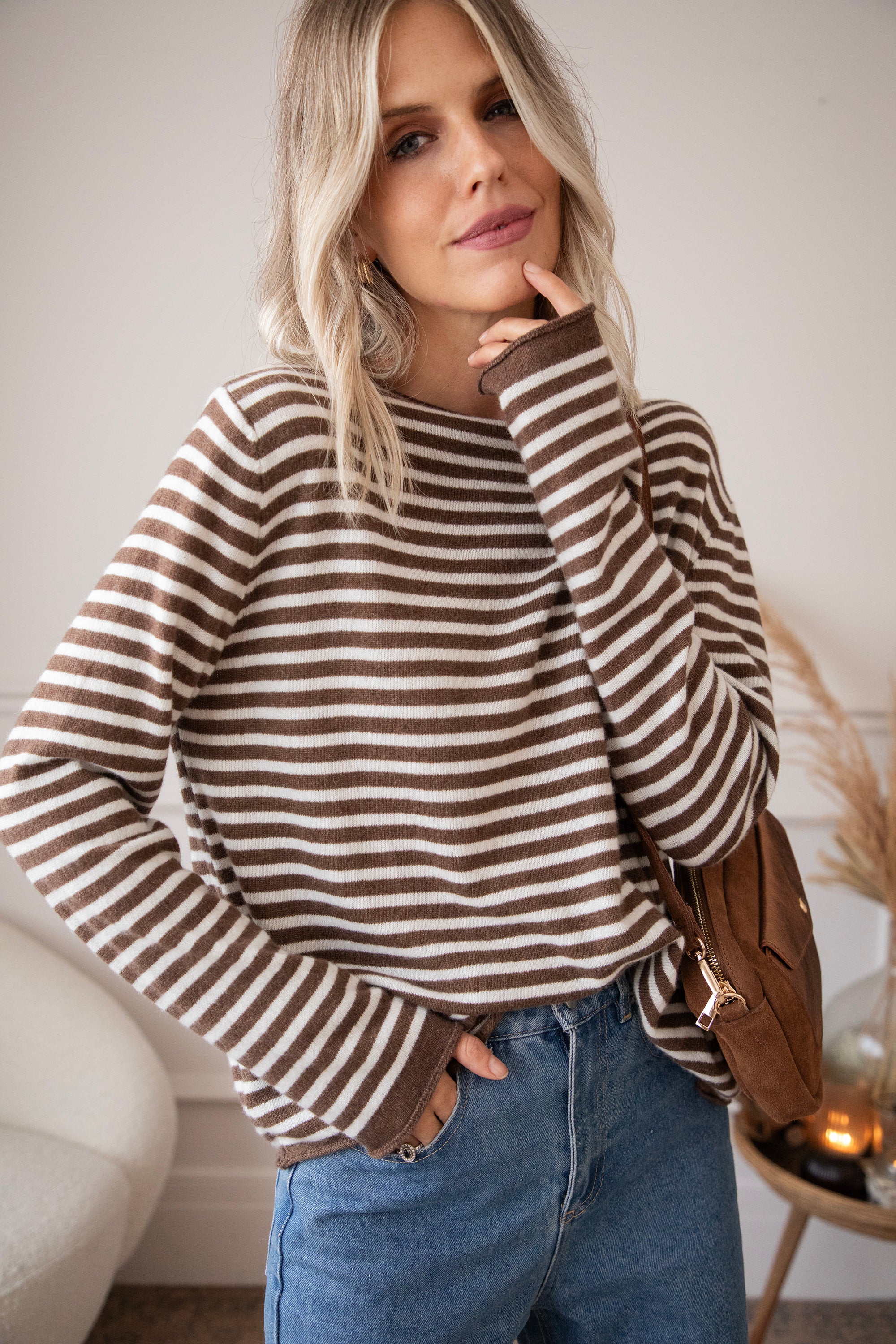 More stripes in our closet, girls! Softly Striped is such an asset... you're going to love them too 😍 A flexible sweater that falls loosely around your body and feels sooo soft and warm! Thanks to 45% wool and a touch of cashmere—yes, girls—cashmere 🥹