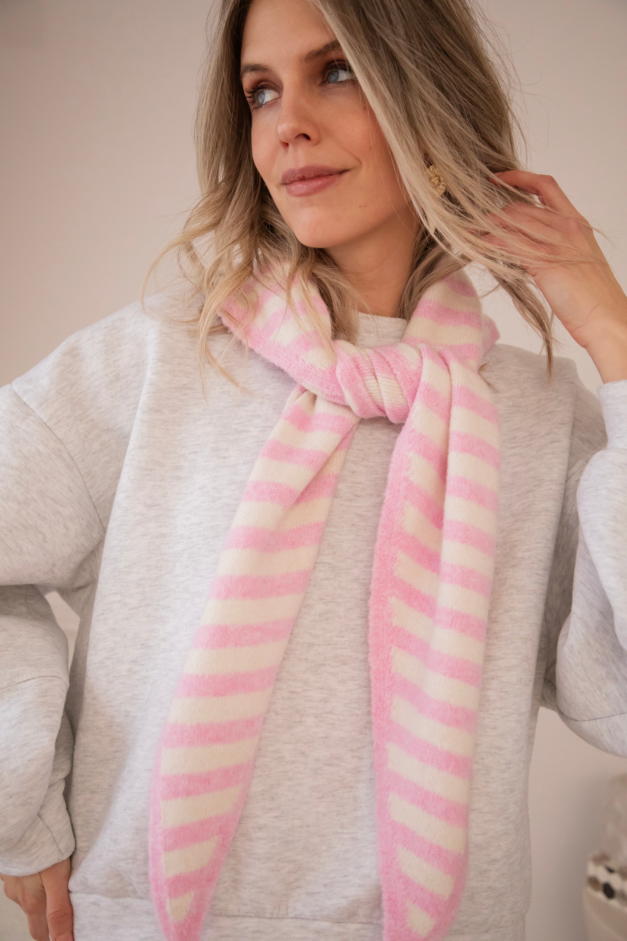 And that striped pattern... love! 🫶 That pink stripe instantly adds a cute & girly color accent to your outfit. Oh so sweet! I also wear this scarf indoors all day long; it's really a decorative scarf and an outdoor scarf at the same time 🙌