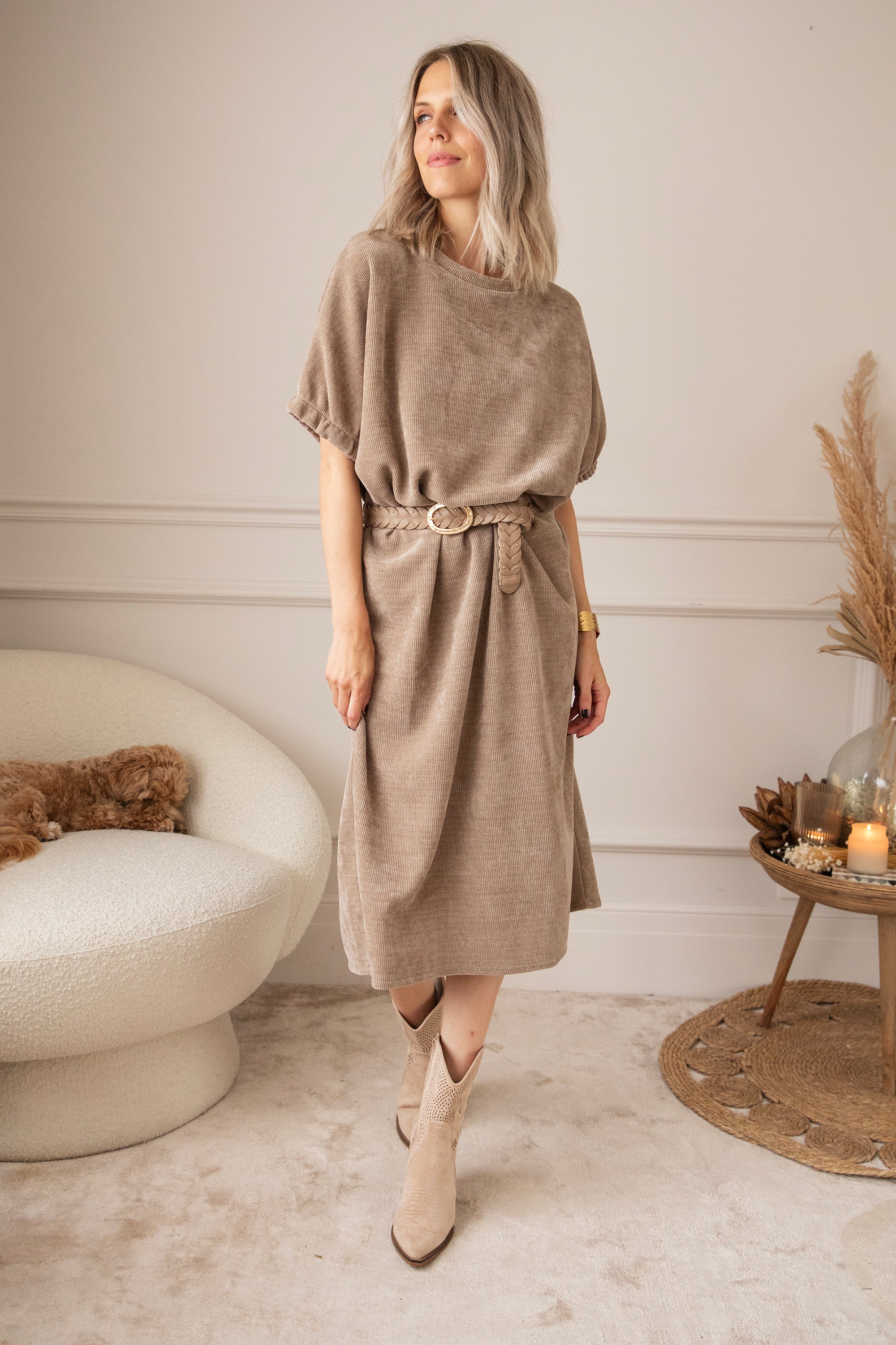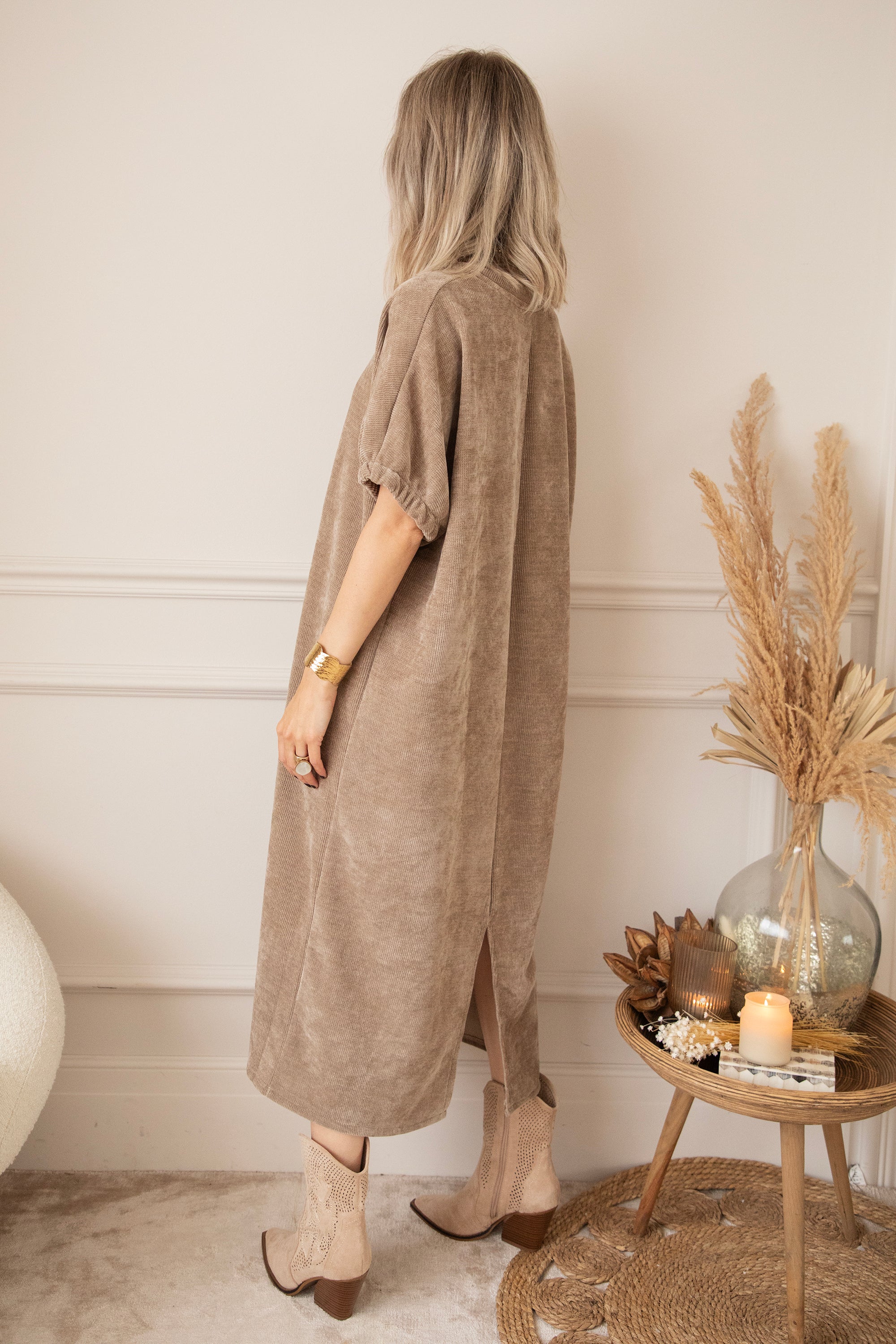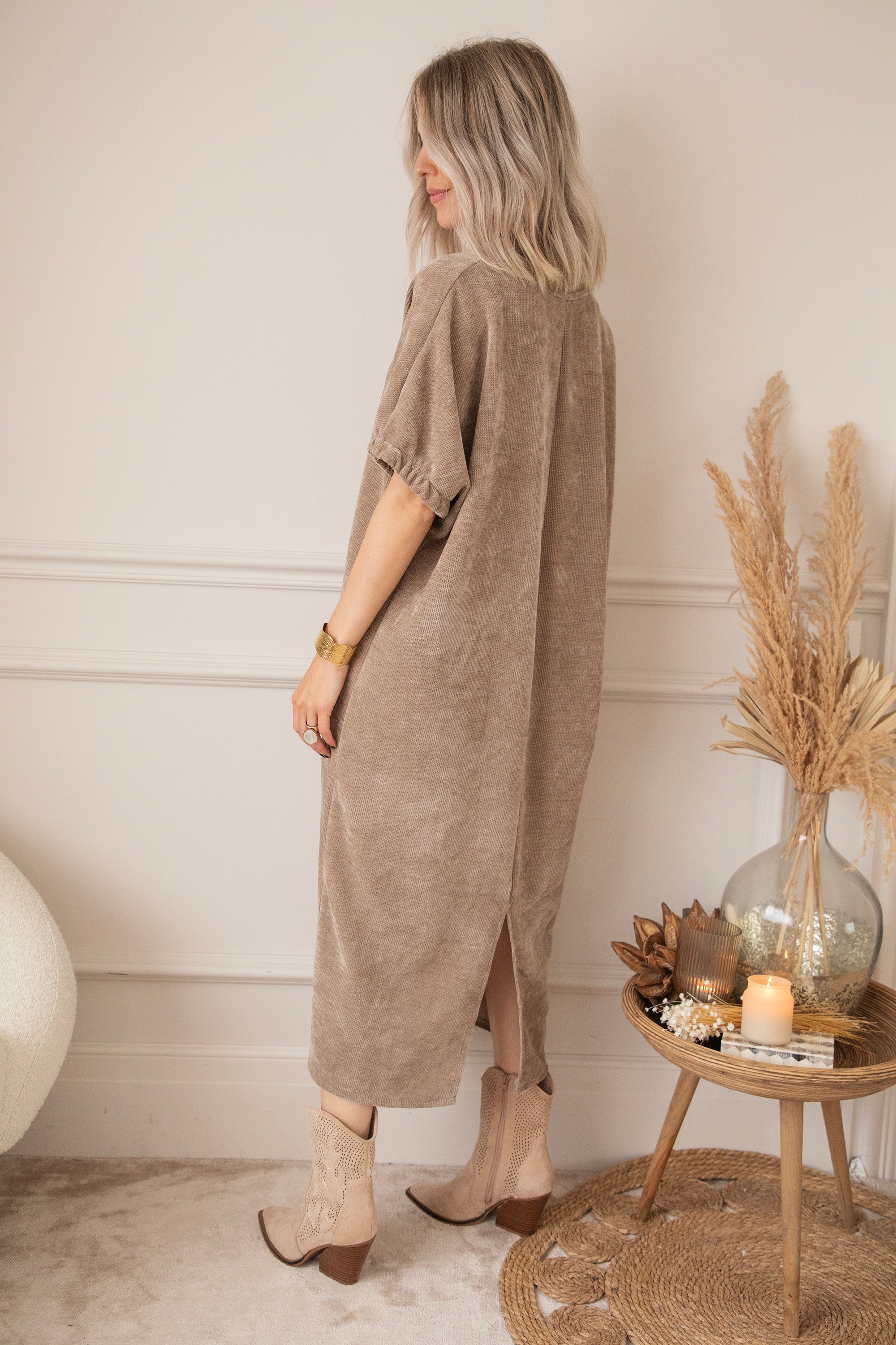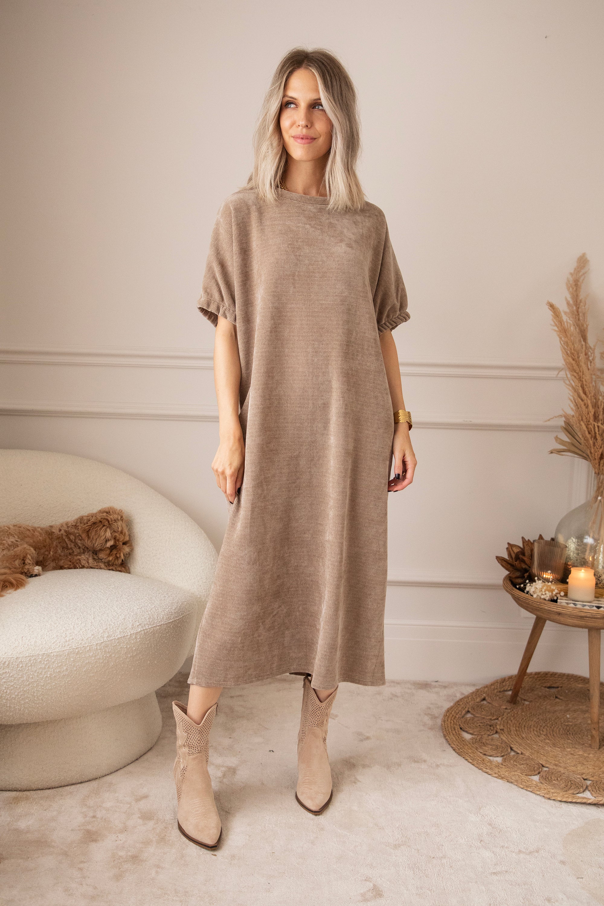 Our velvet dresses deserve a comeback in the new season! New colors, but the same comfort! The Valery Velvet dress is the sister of our Viva Velvet dress, just as comfortable and soft but with different sleeve details. These stretch nicely thanks to elastic. Makes this model a little more special 🎀 No split on the side, but on the back!