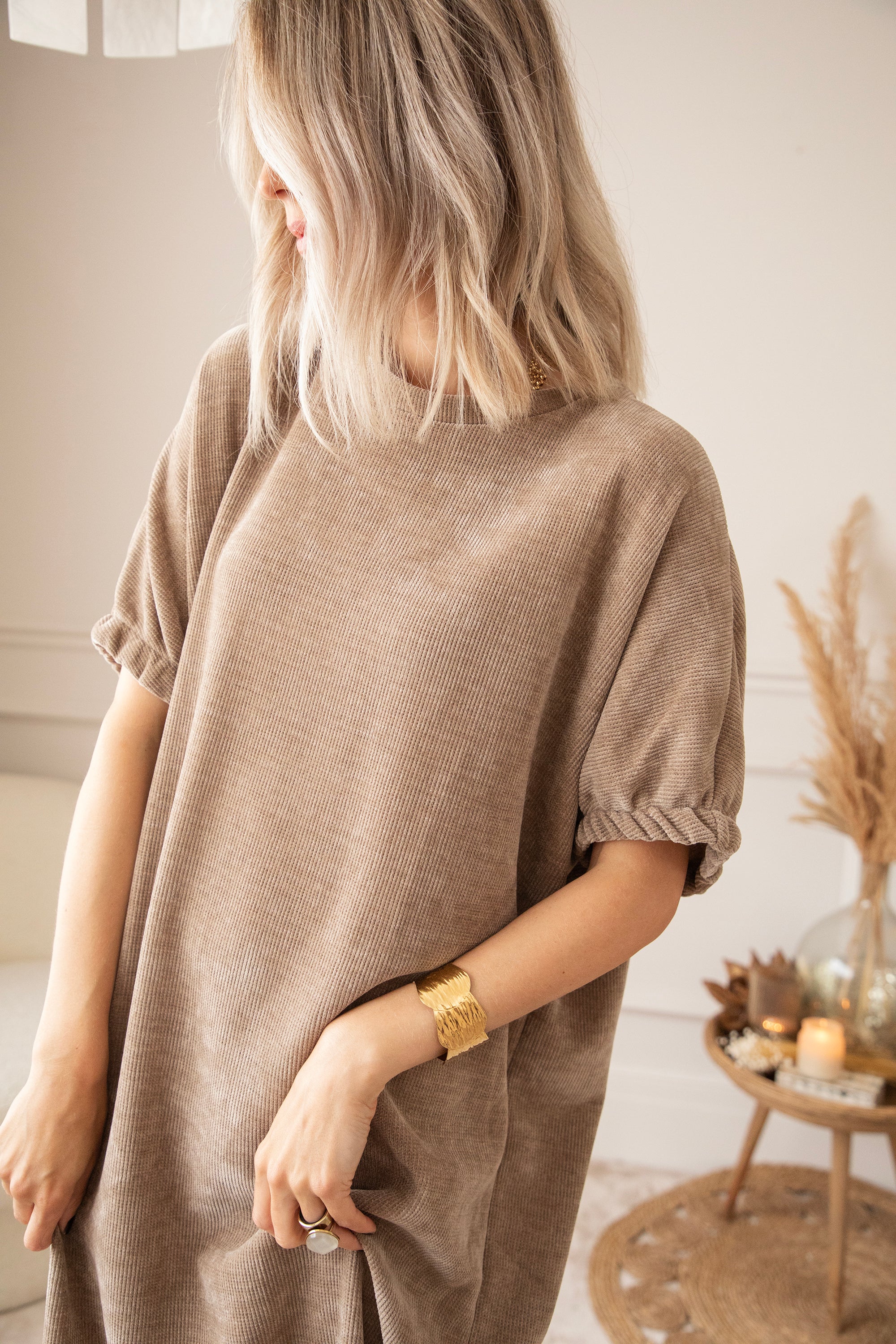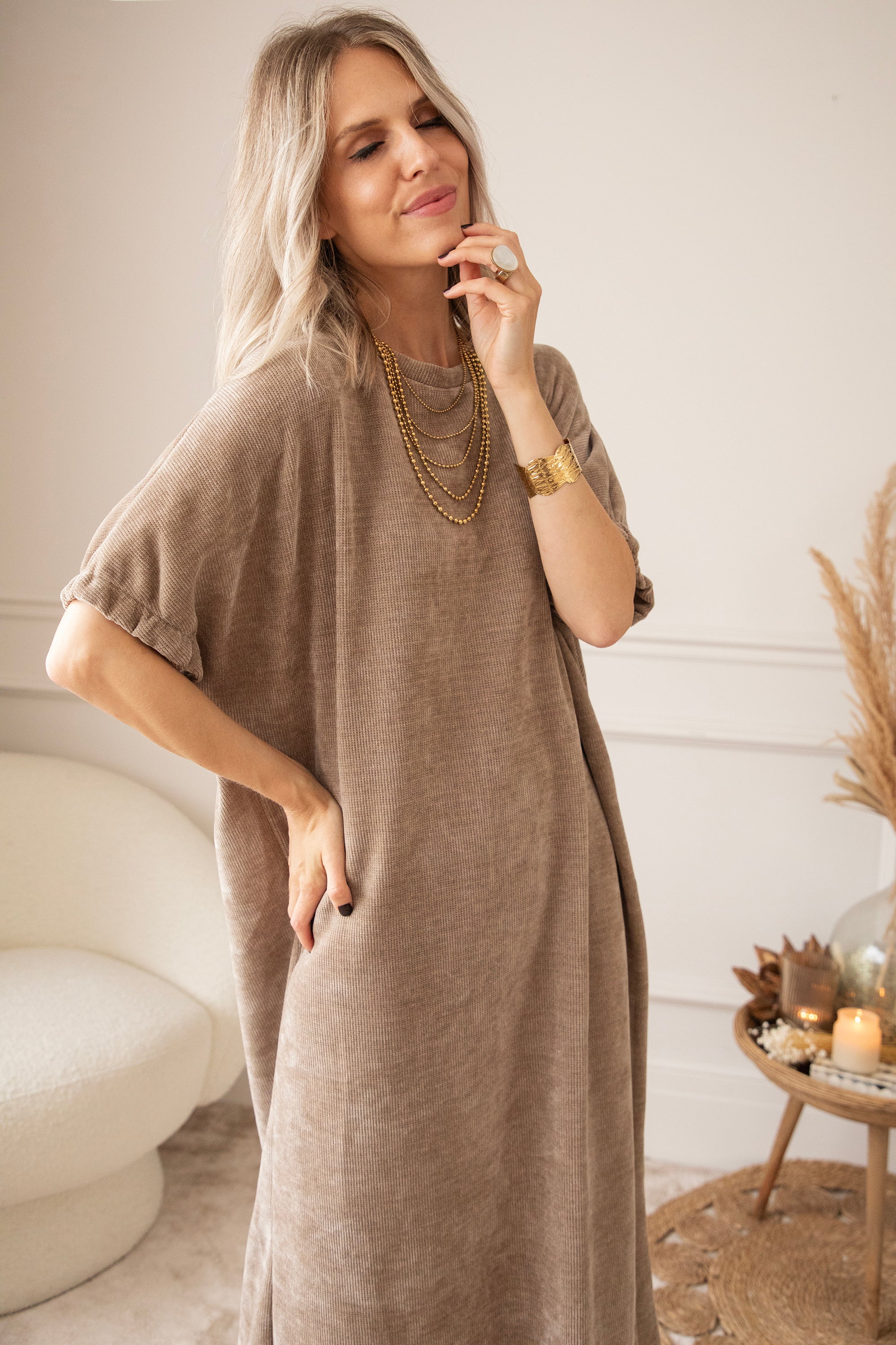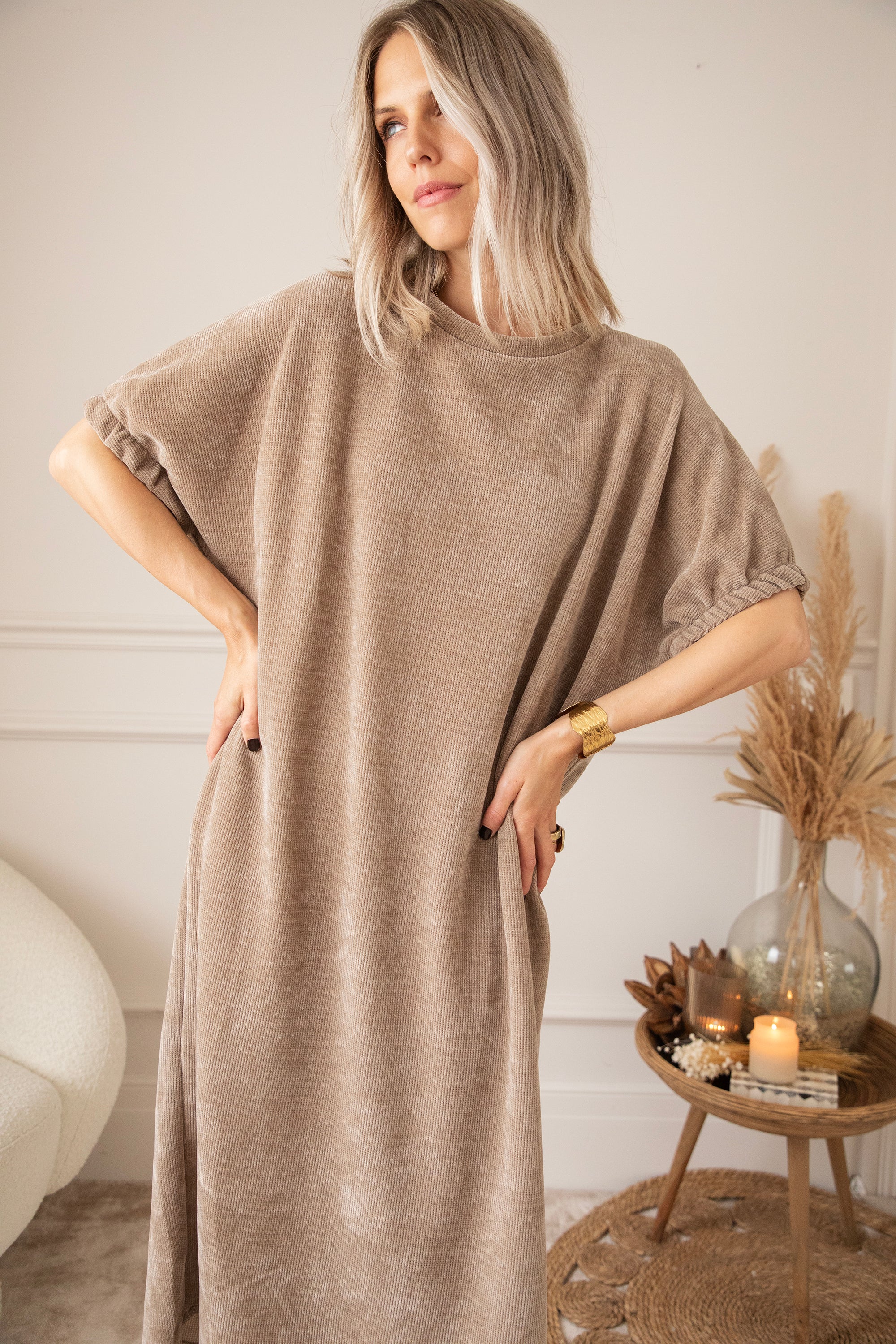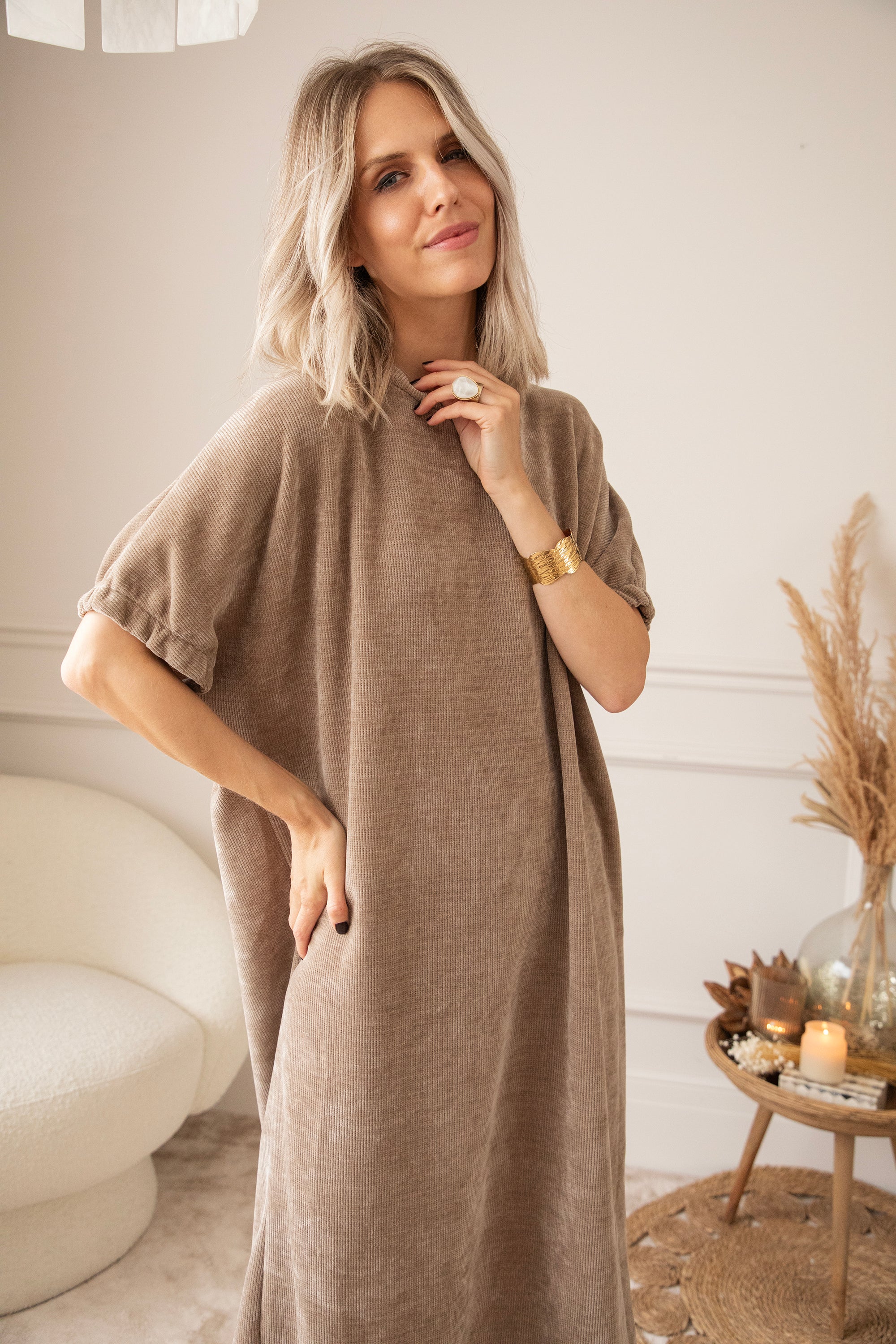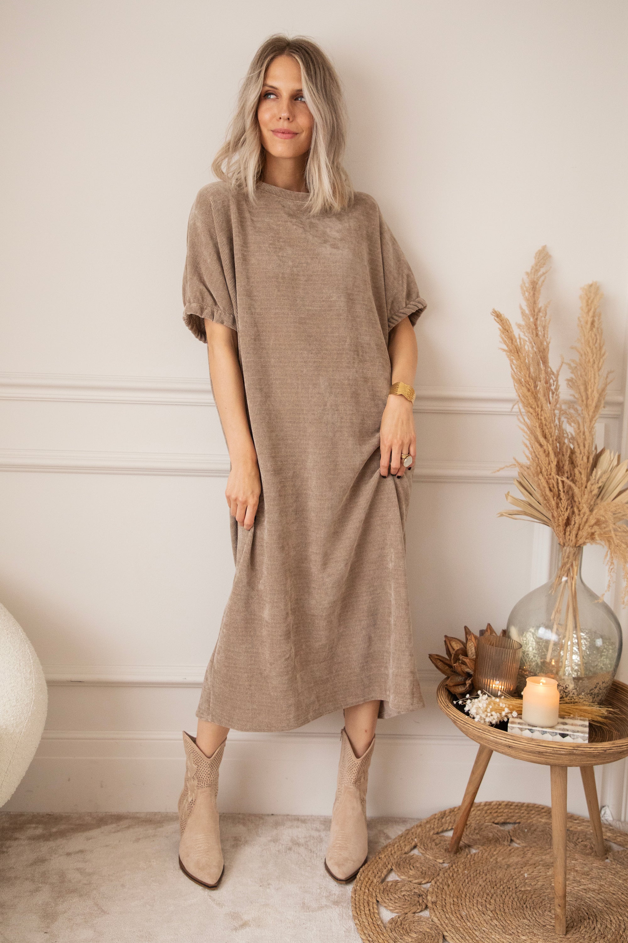 Our velvet dresses deserve a comeback in the new season! New colors, but the same comfort! The Valery Velvet dress is the sister of our Viva Velvet dress, just as comfortable and soft but with different sleeve details. These stretch nicely thanks to elastic. Makes this model a little more special 🎀 No split on the side, but on the back!