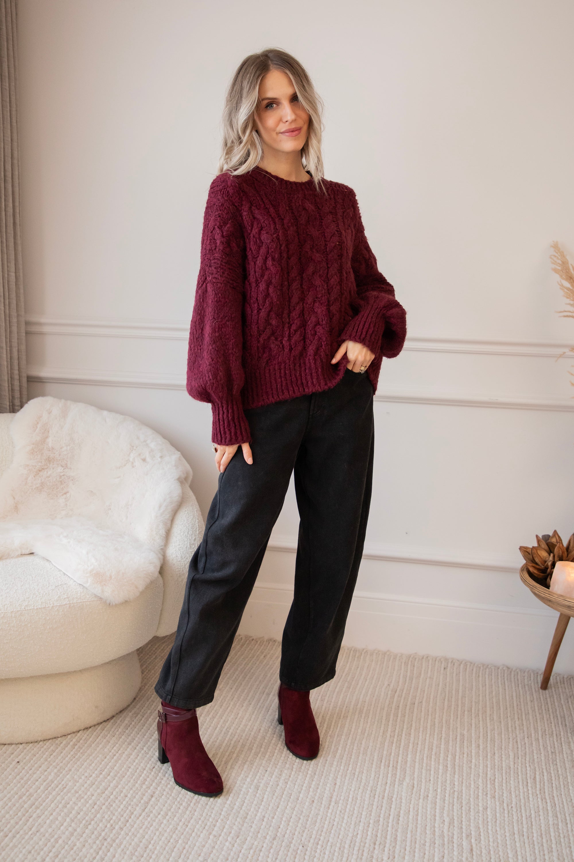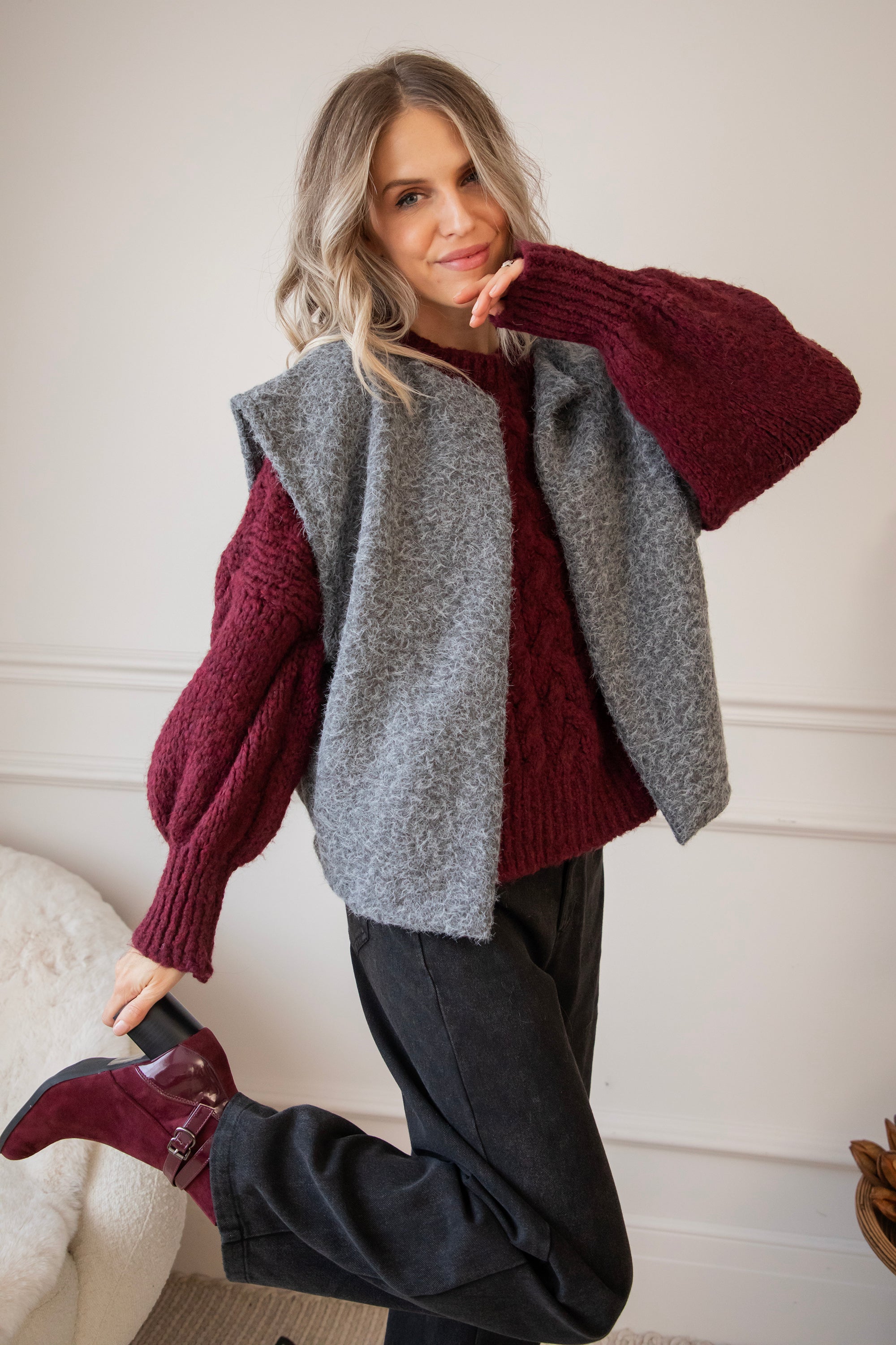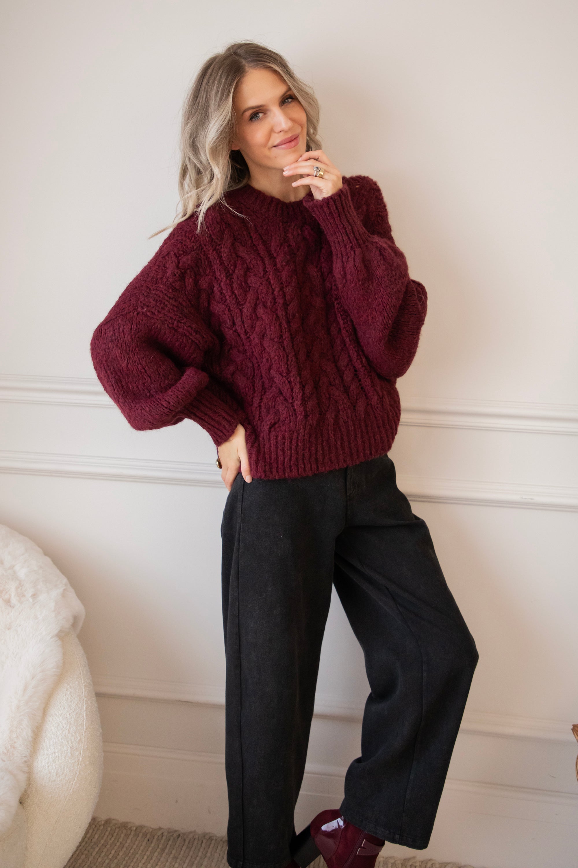 Ja echt, het kabelpatroon charmeert mij elke keer weer! 🥹 Het straalt gewoon zoveel gezelligheid uit en… deze trui is mijn nieuwe winterfavoriet! Het baggy modelletje met die schattige pofmouwtjes en natuurlijk die warme bordeaux kleur… ahhh, ik smelt gewoon ❤️