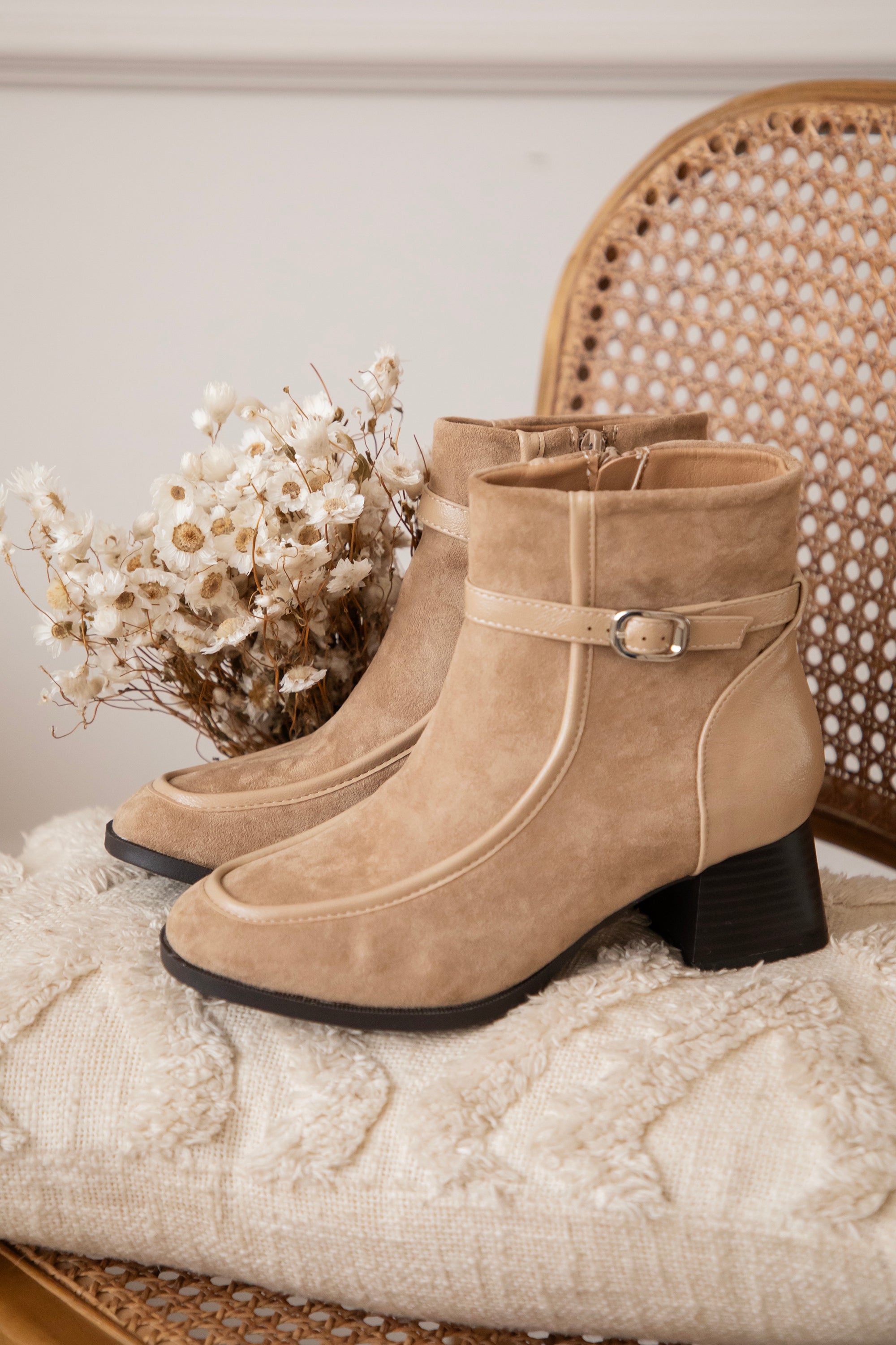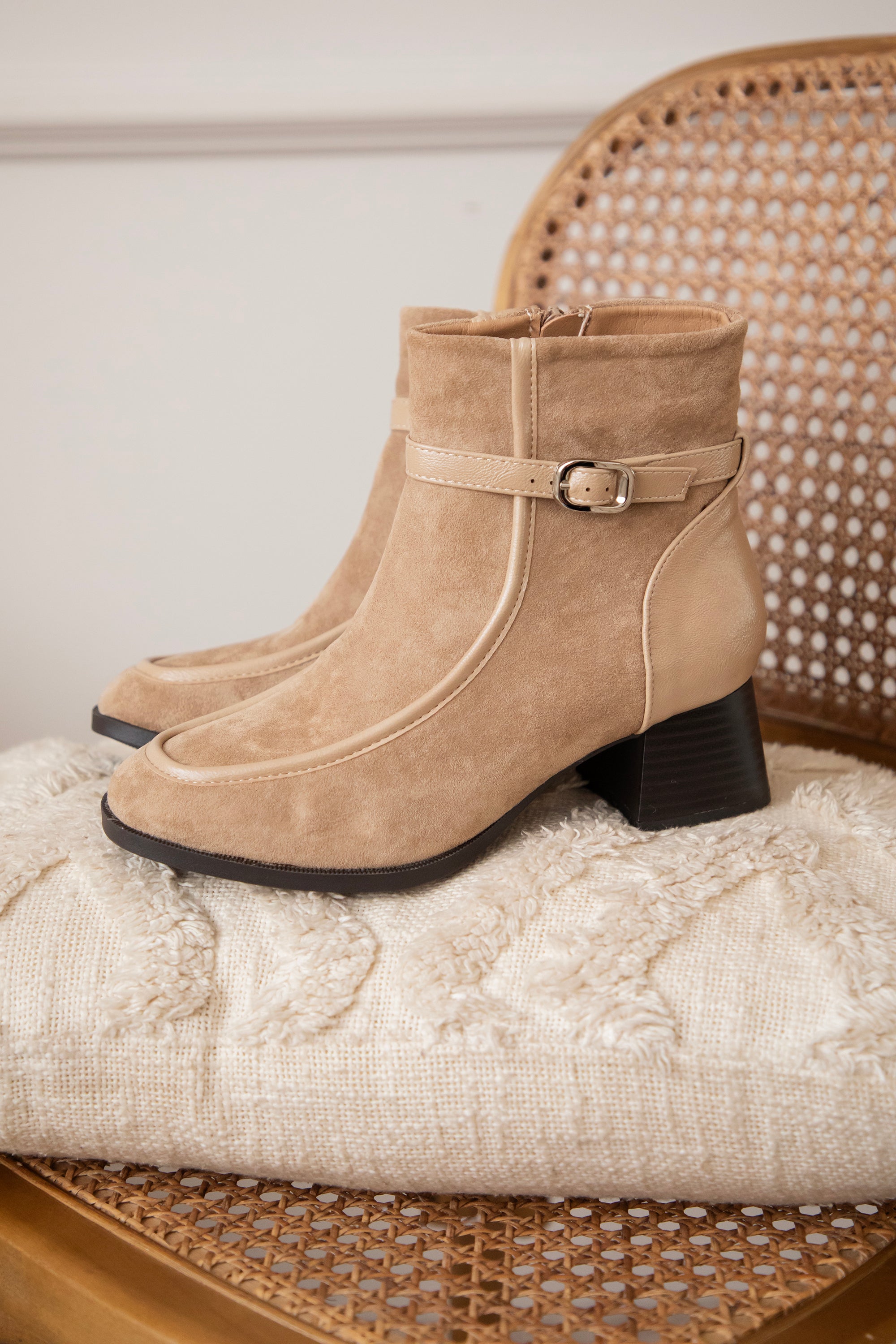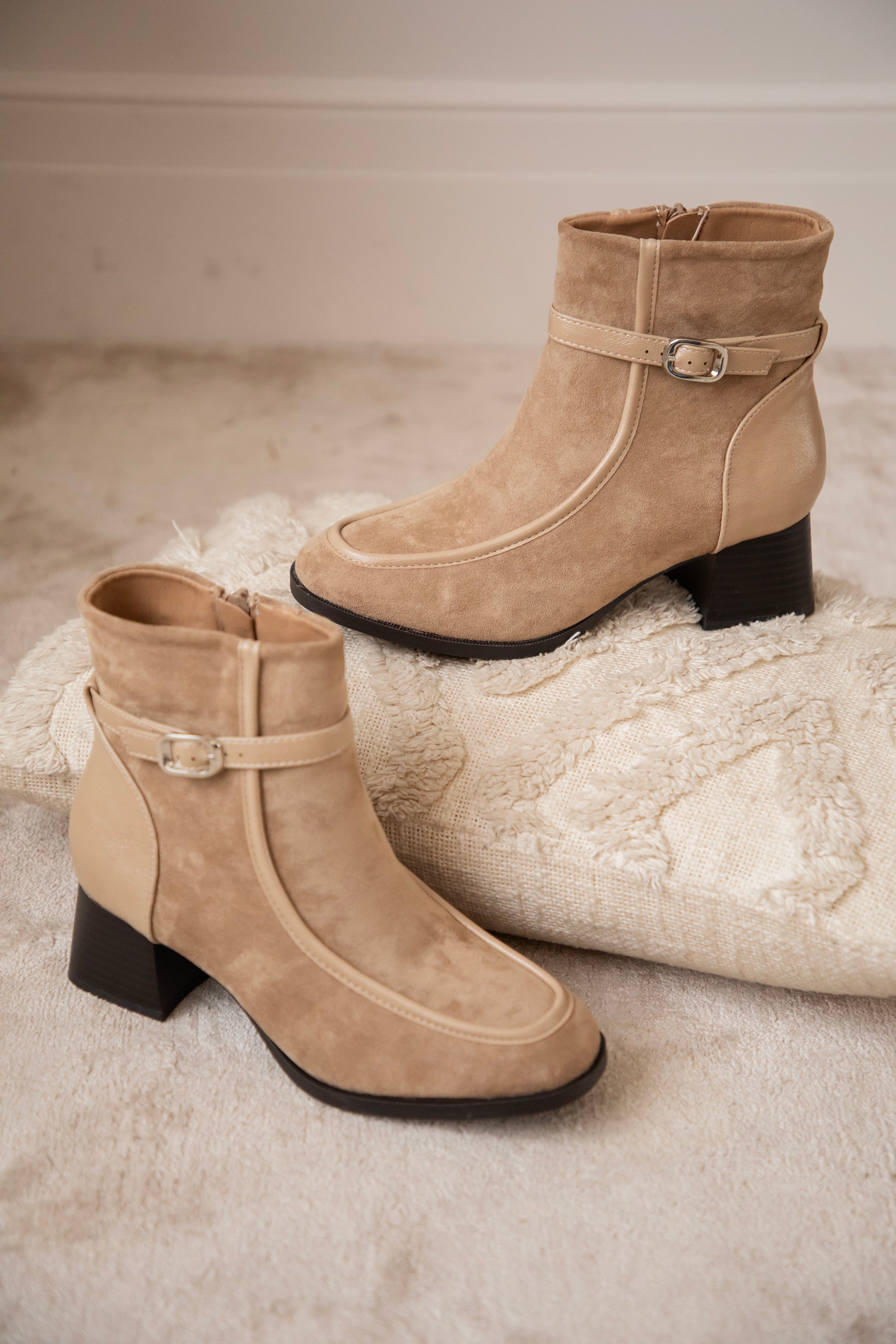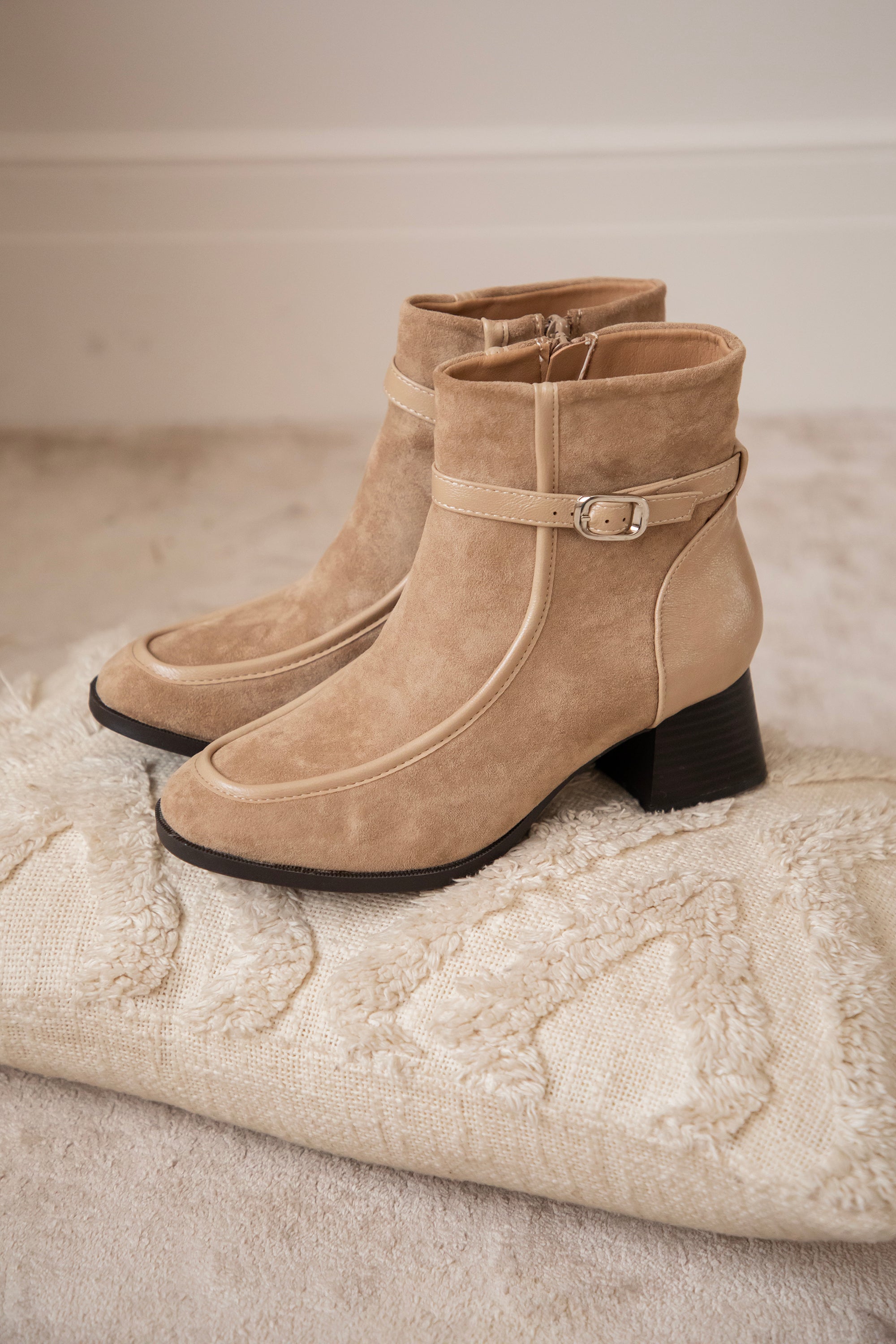 Carina combineert classy en stoer in één paar 🤎 Ze zijn volledig bekleed met een zachte suede stof en afgewerkt met prachtige lederen details. Denk aan een leather patch aan de hiel, een fijn lederen riempje rond de enkel én een strakke lederen streep over de wreef 😍 Zo’n leuke extra’s die meteen een edgy touch geven aan een tijdloos design. De zwarte zool en blokhak van 5 cm maken het geheel nog cooler en zo comfortabel om elke dag te dragen 👢