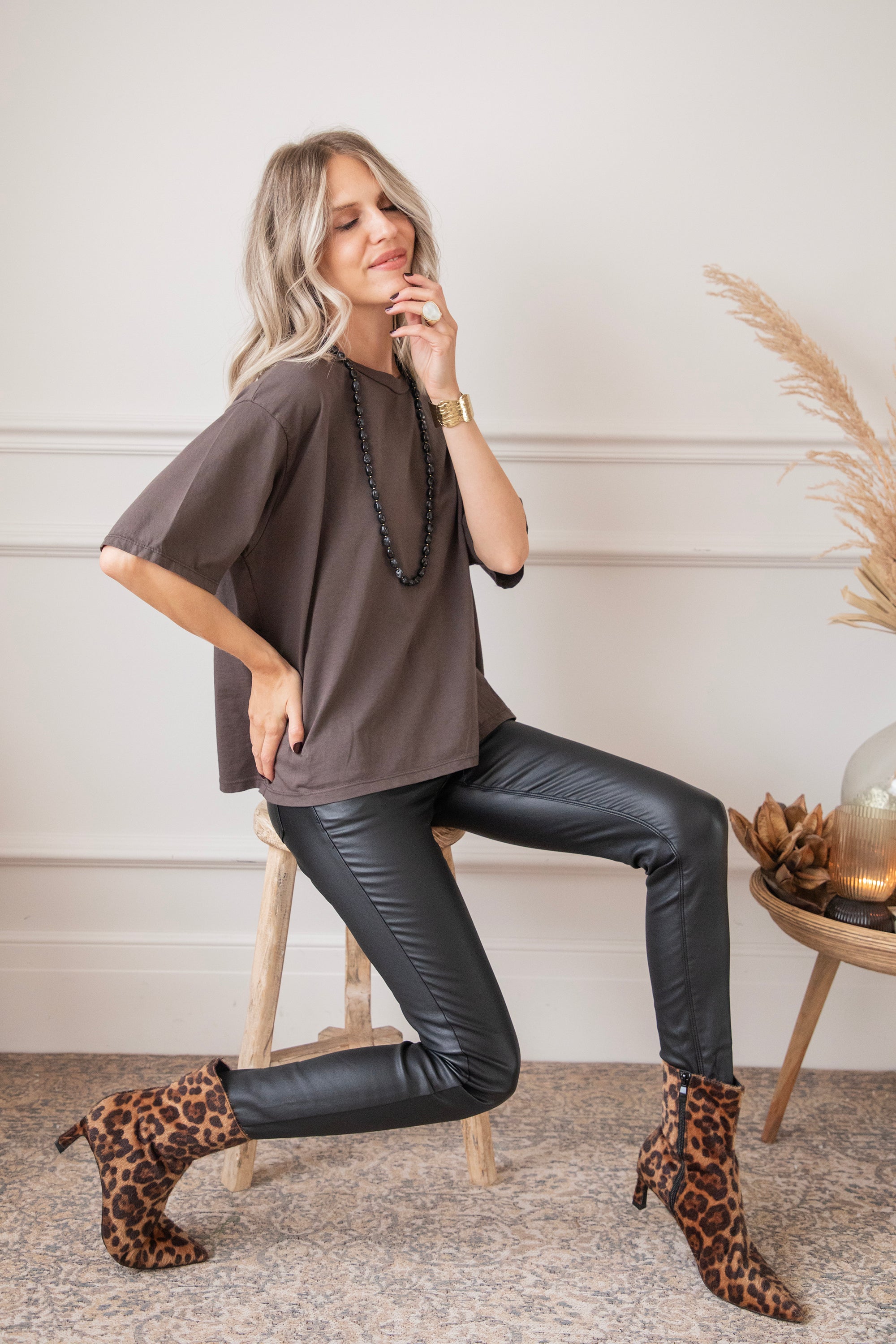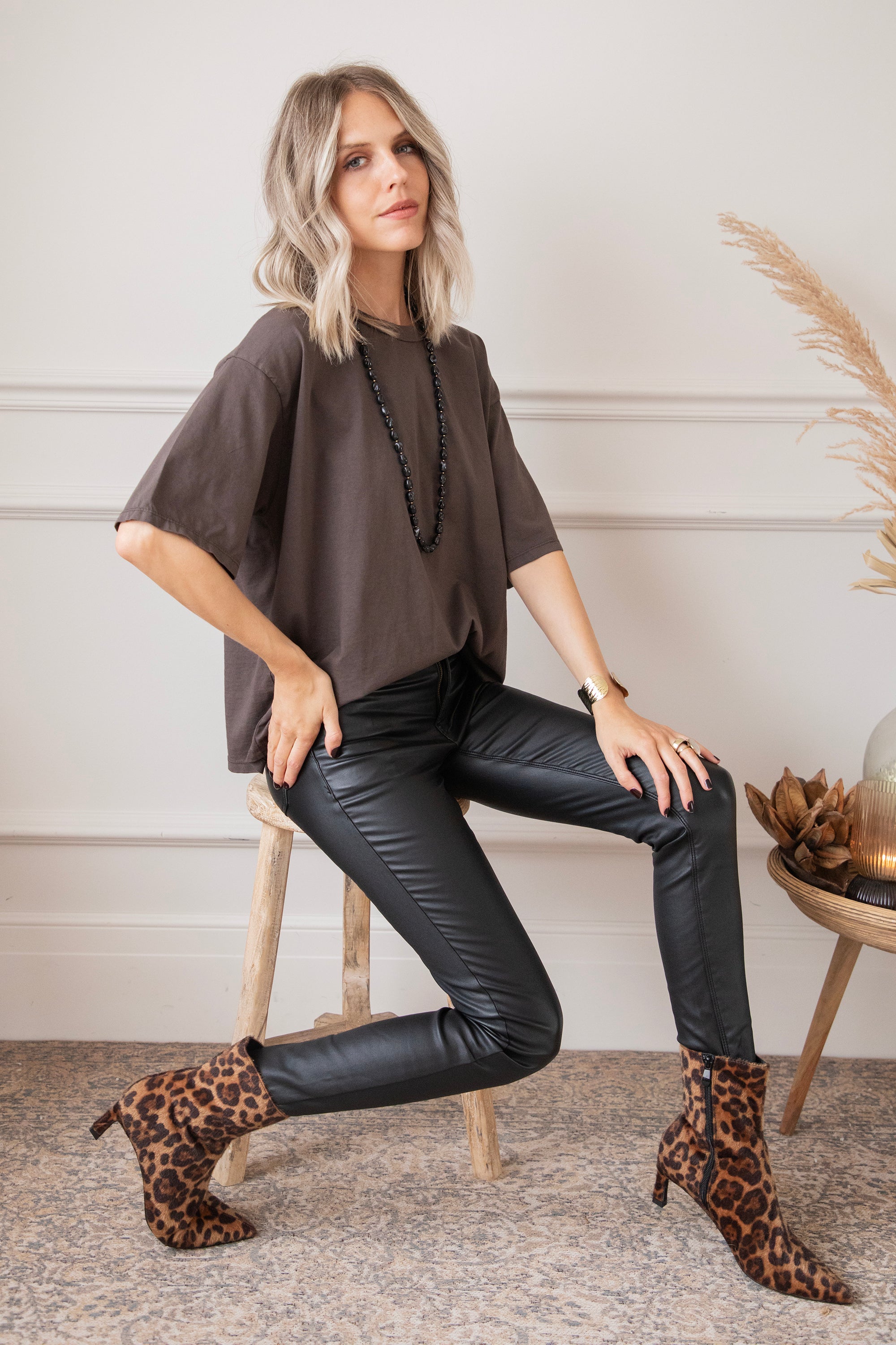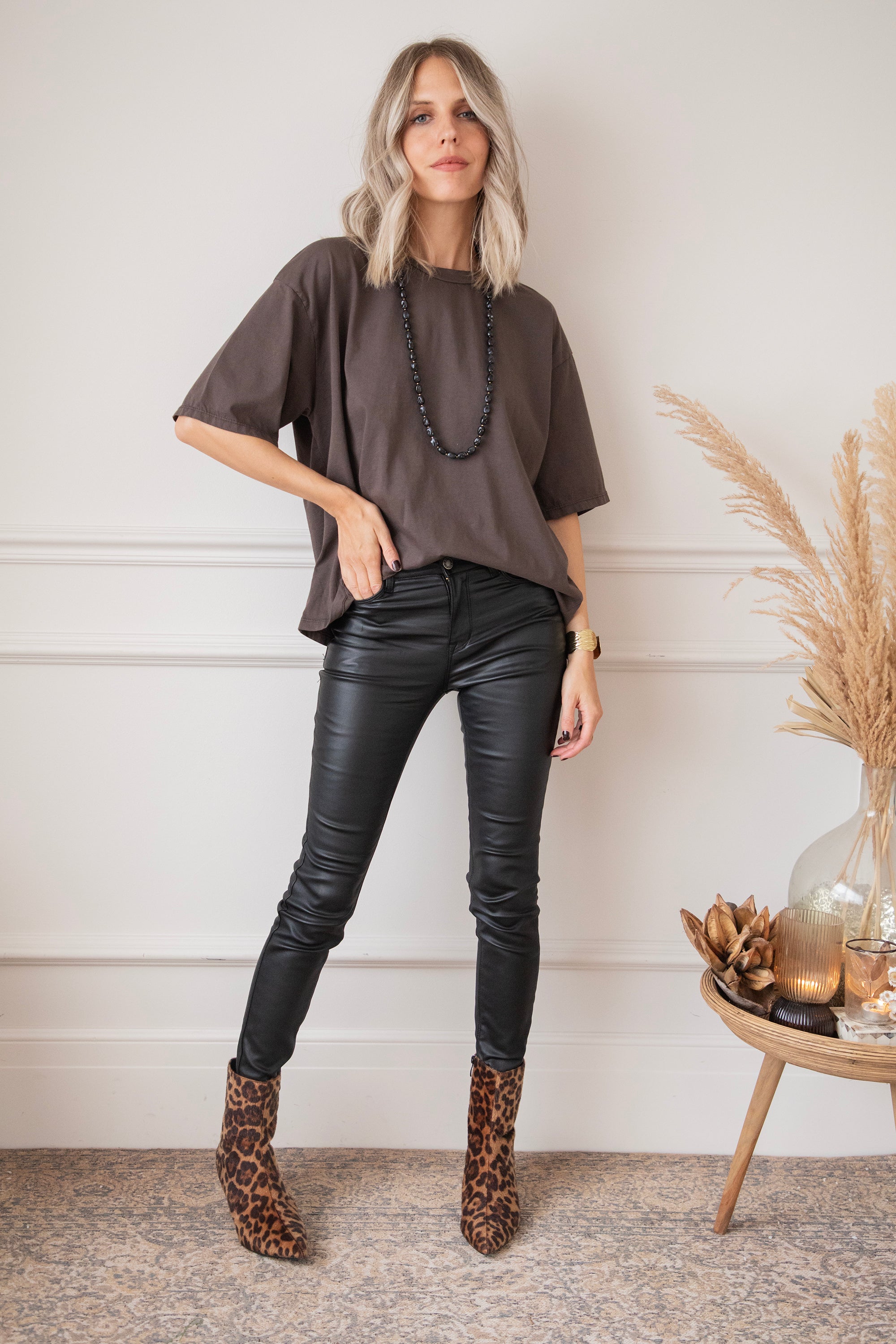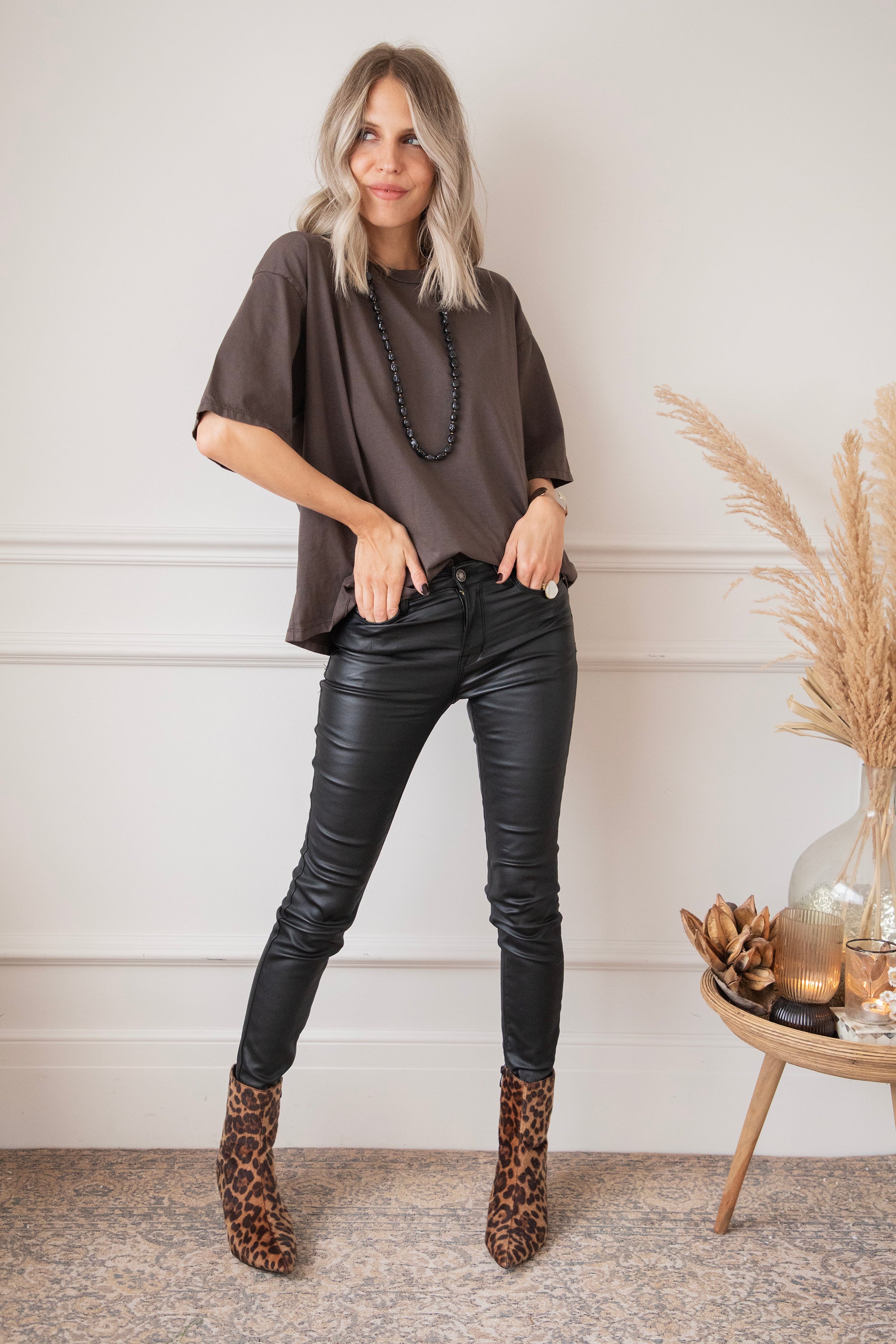 Girls… het is weer zover! Het seizoen van cozy knits, boots en coated broeken is begonnen 🍂 En honestly… een coated broek kan niet ontbreken in je fall & winter wardrobe! 🫶 Deze cutie is een echte musthave dankzij haar classy leather look, en comfy pasvorm! Perfect als alternatief voor je standaard blauwe jeans, net dat beetje extra stijl 😍