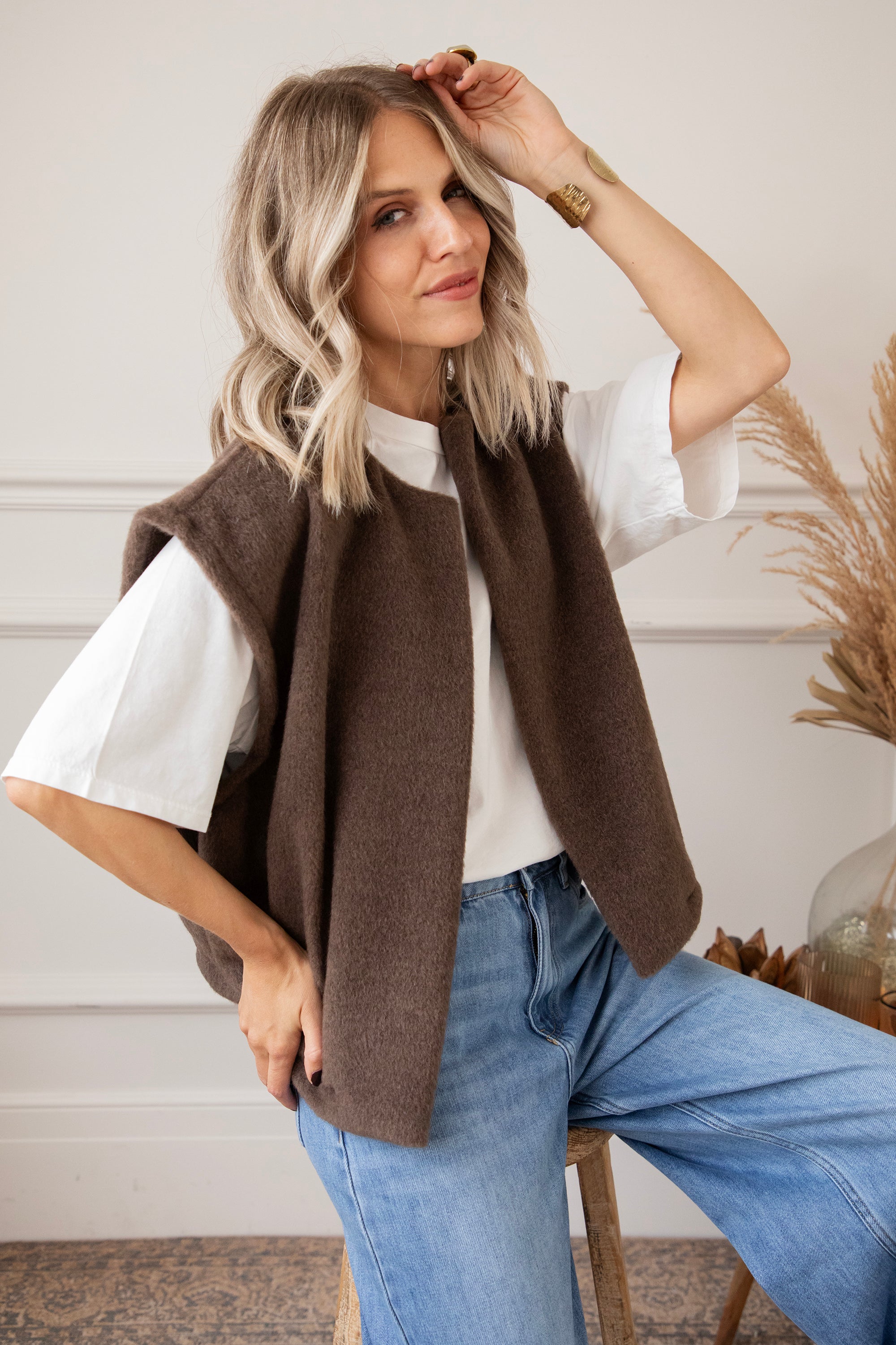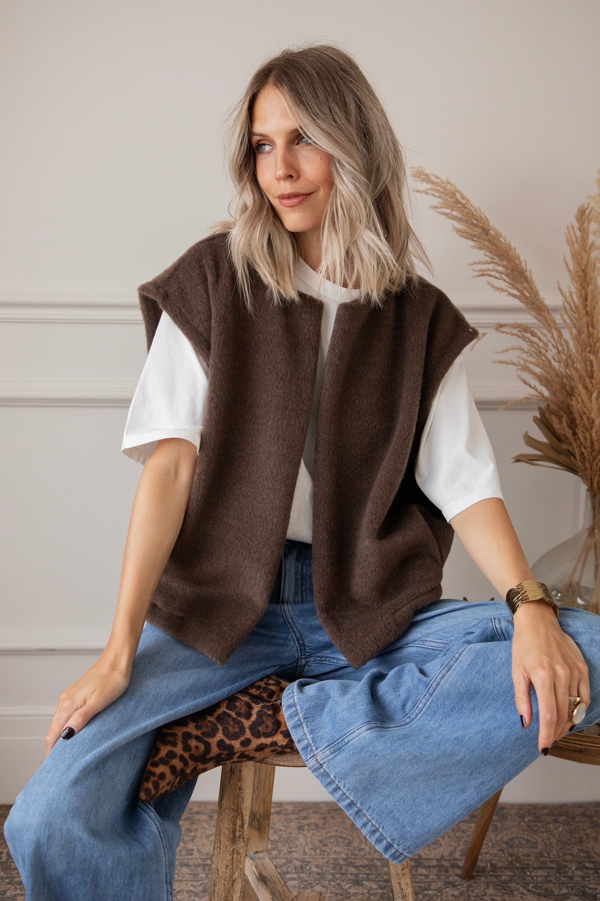 Het Hug Me Softly vestje oogt zó gezellig met haar zachte, fleecy breiwerk! 😍 Een heerlijk exemplaar dat je het liefst élke dag draagt. Layering is key tijdens koude dagen en zo’n effen vestje als dit is dan ook onmisbaar in je garderobe. Altijd fijn om bij de hand te hebben om je outfit net dat beetje extra warmte te geven 🤎