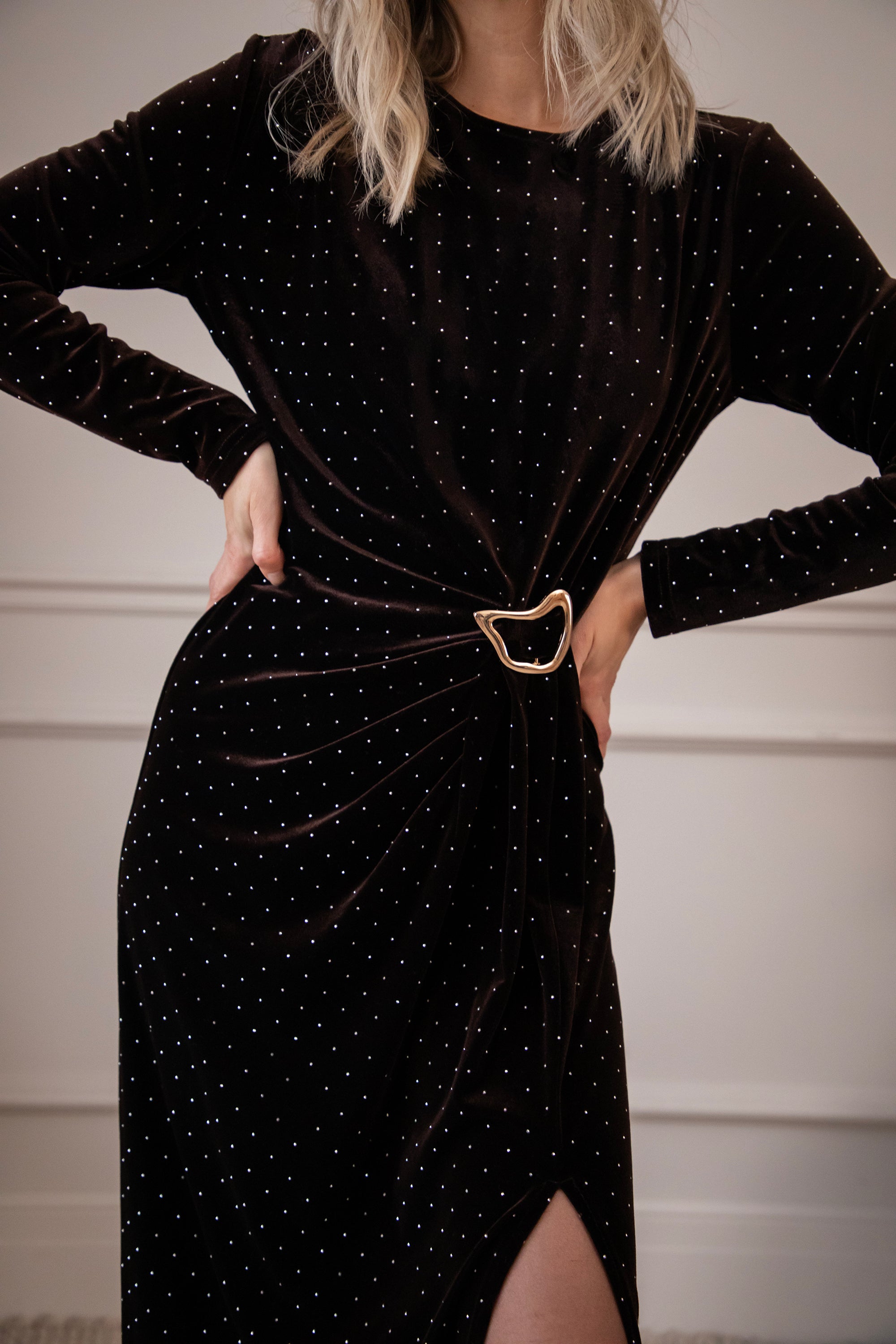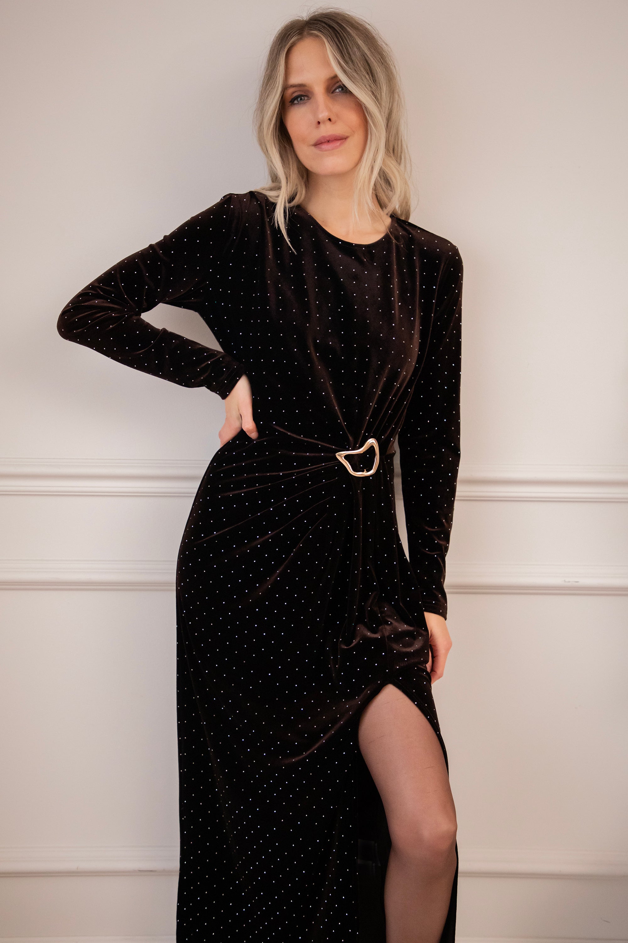 Meet Midnight Queen, een echte showstopper van een maxi jurk! Deze beauty is gemaakt uit een zachte, stretchy velvet stof die je figuur op zo’n elegante manier omhelst. De volledige jurk is besprenkeld met kleine strass steentjes voor een sparkled effect ✨