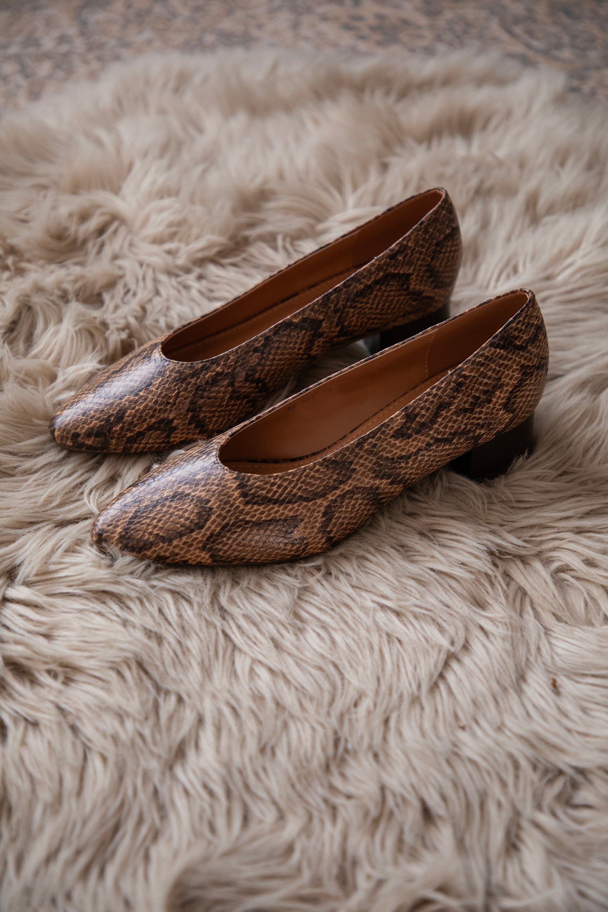 Hihi, hoe schattig zijn deze schoentjes?! Omg, ik ben helemaal verkocht! Ze hebben zo’n vleugje vintage chic, maar tegelijk ook die edgy coolness door het speelse snake printje. Een beetje retro, een beetje trendy… they’re a vibe! 🤎