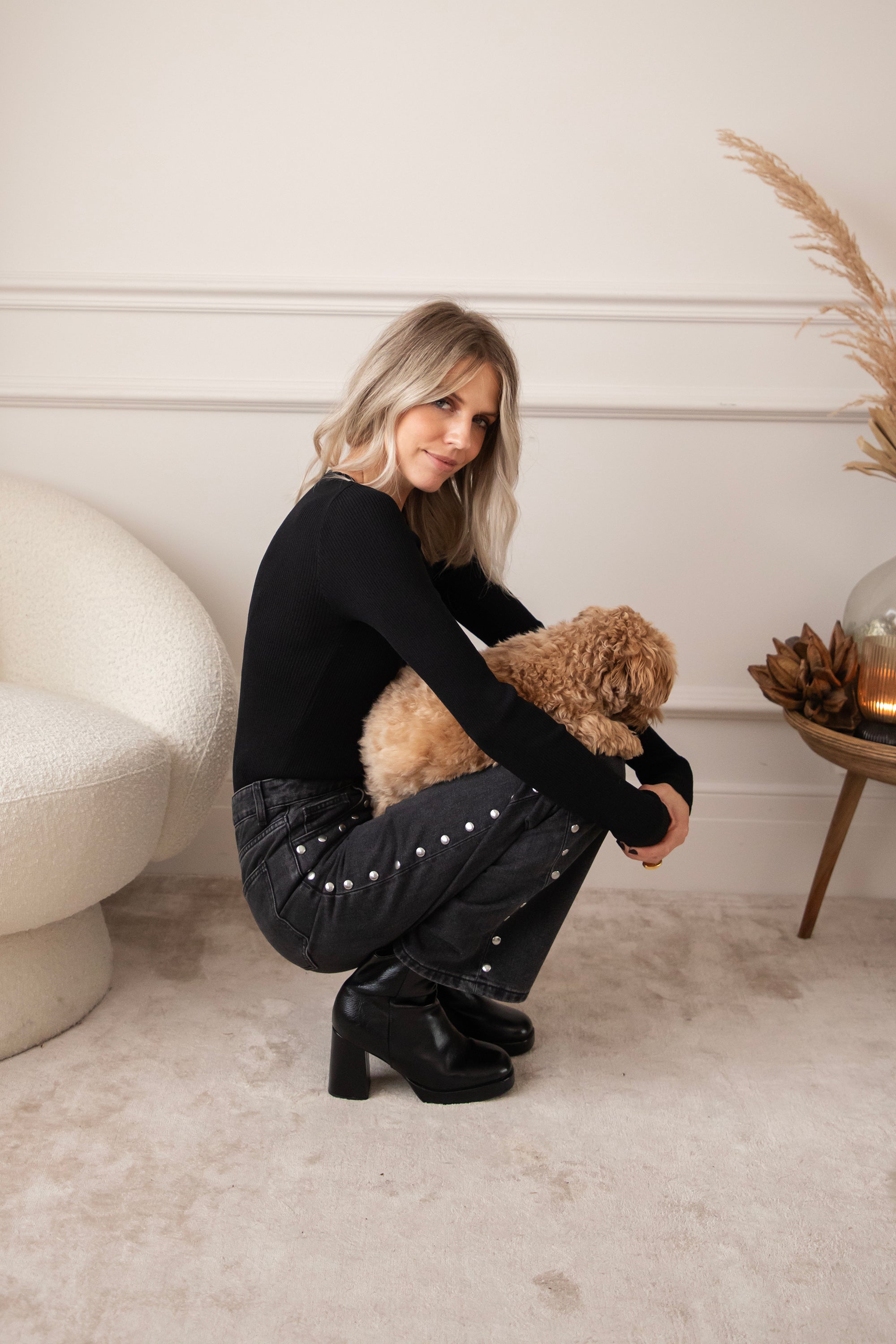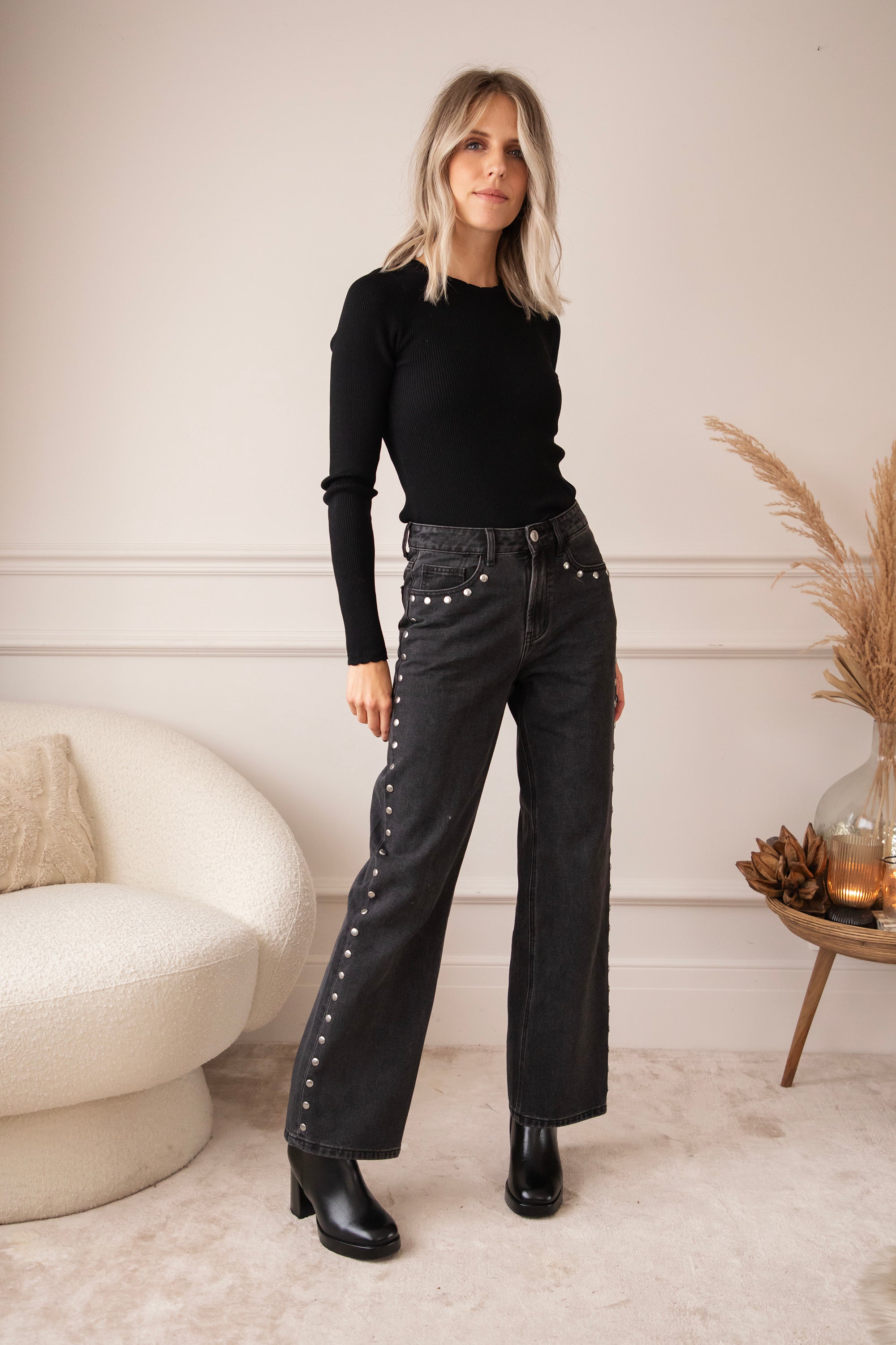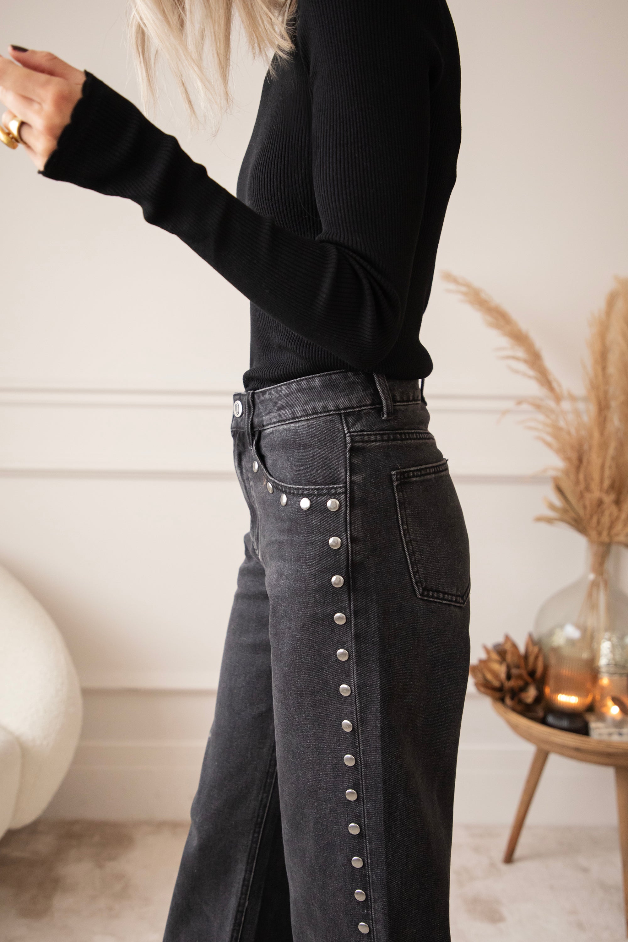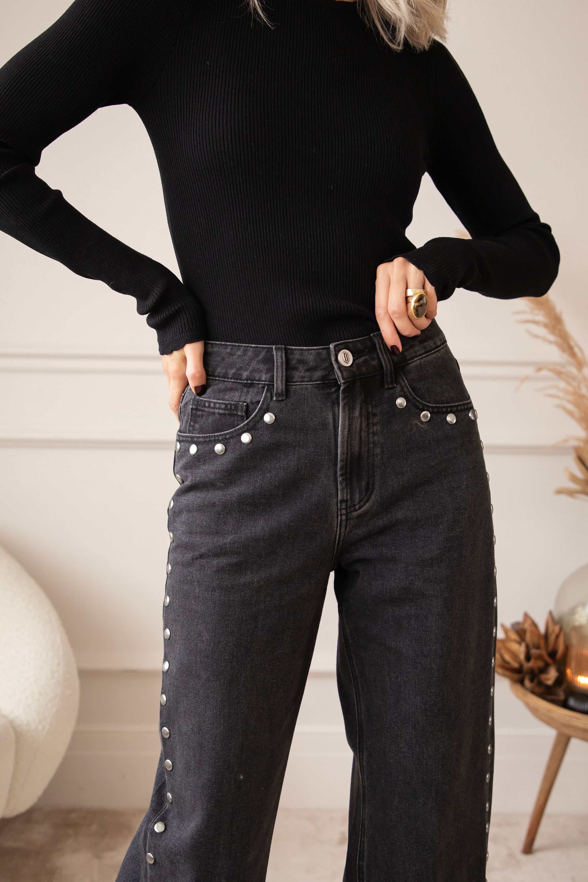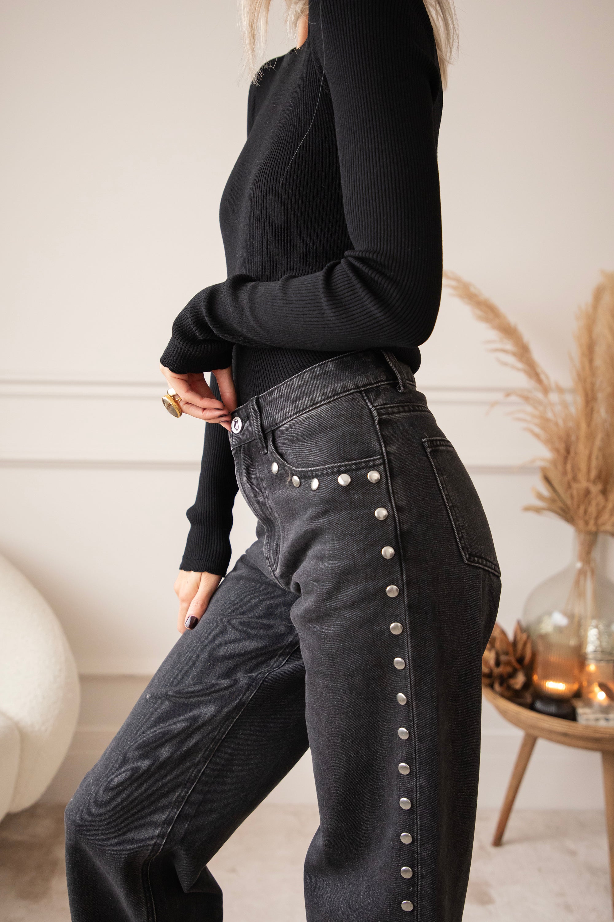 Oehhh girls, een jeans naar mijn hart! 🖤 Deze cutie heeft die perfecte easy fit die je zo gemakkelijk combineert met al je favoriete knitwear en tops. De donkergrijze effen kleur maakt ‘m een echte combi-topper, terwijl de subtiele zilveren studs aan de zijzakken en onderaan de pijpen zorgen voor a touch of bling ✨ Stoer, vrouwelijk en tegelijk heel stijlvol, precies zoals we het graag hebben, toch?! 🥰