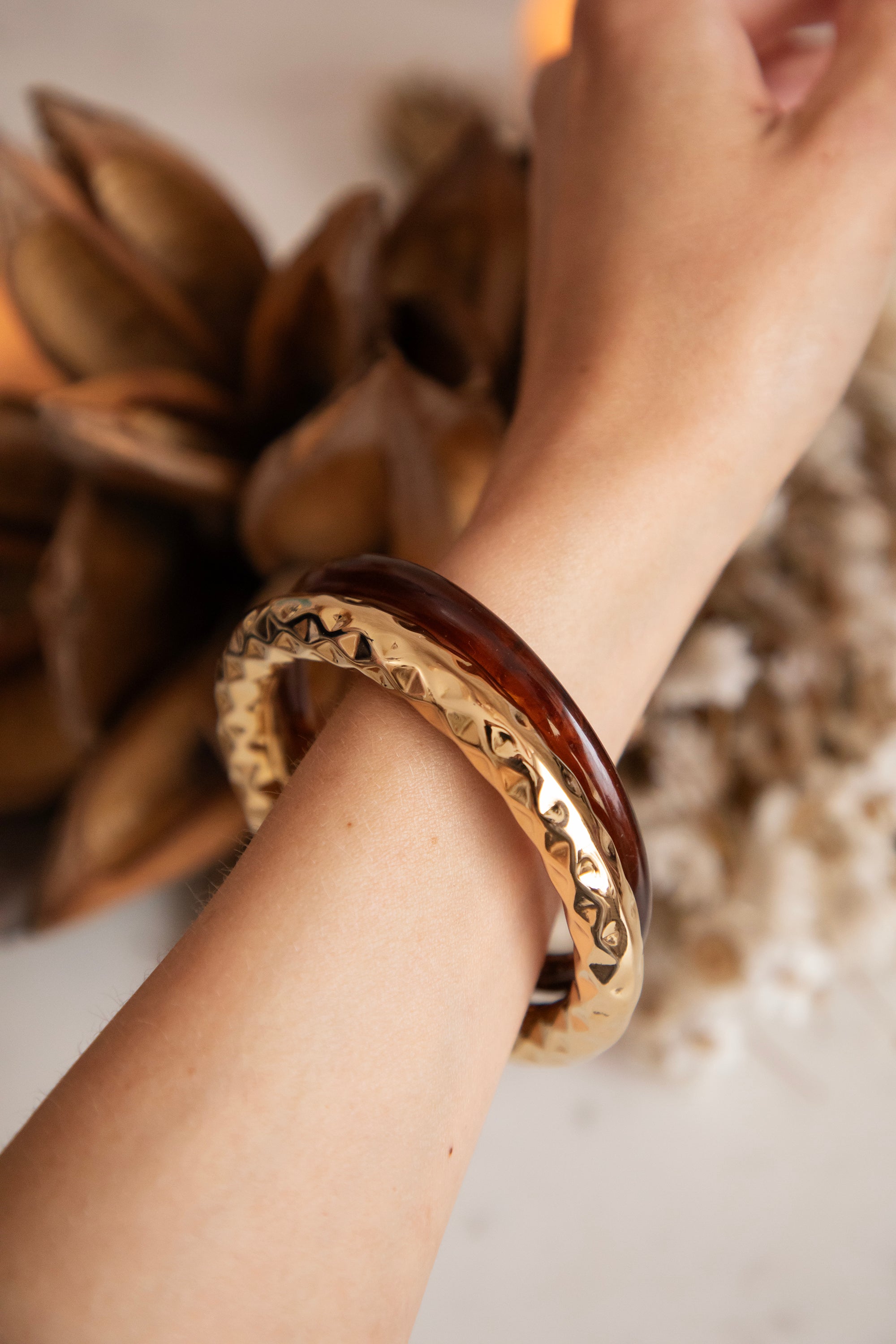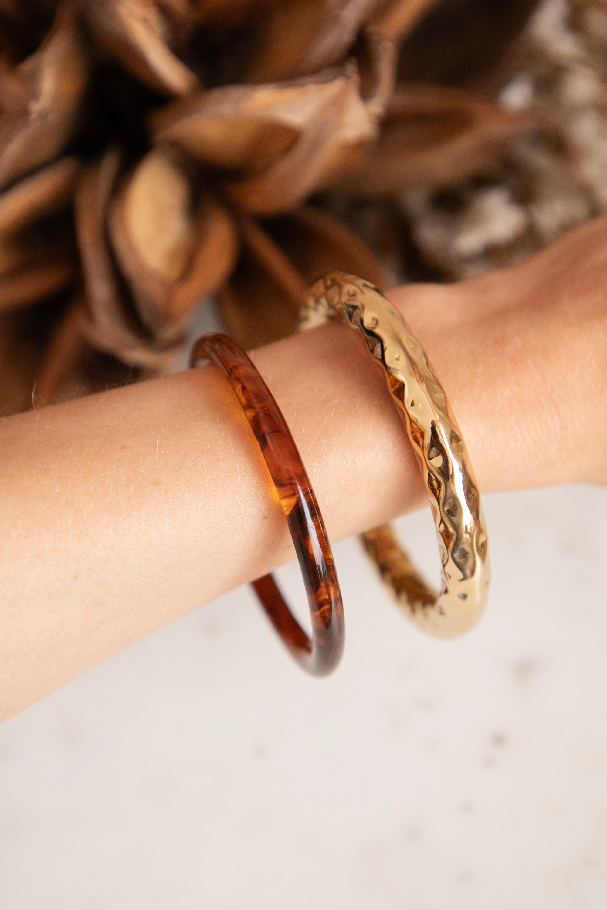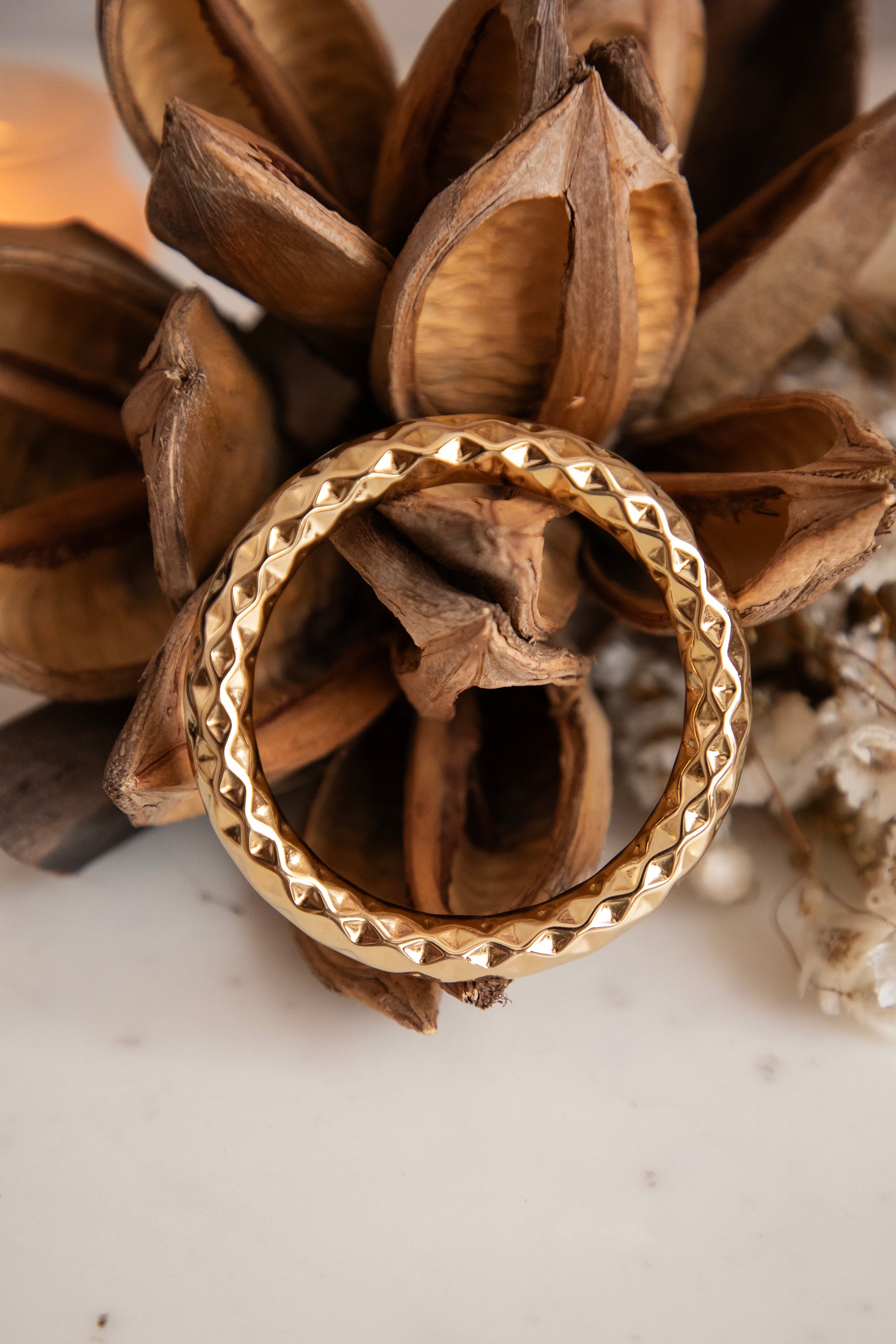 Deze gouden bangle is een echte essential! Het wavy reliëf design geeft een subtiele twist. Deze versie is iets dunner en fijner, waardoor ze super elegant aan je pols ligt. Deze kan je gewoon al-tijd dragen... bij élke outfit!
