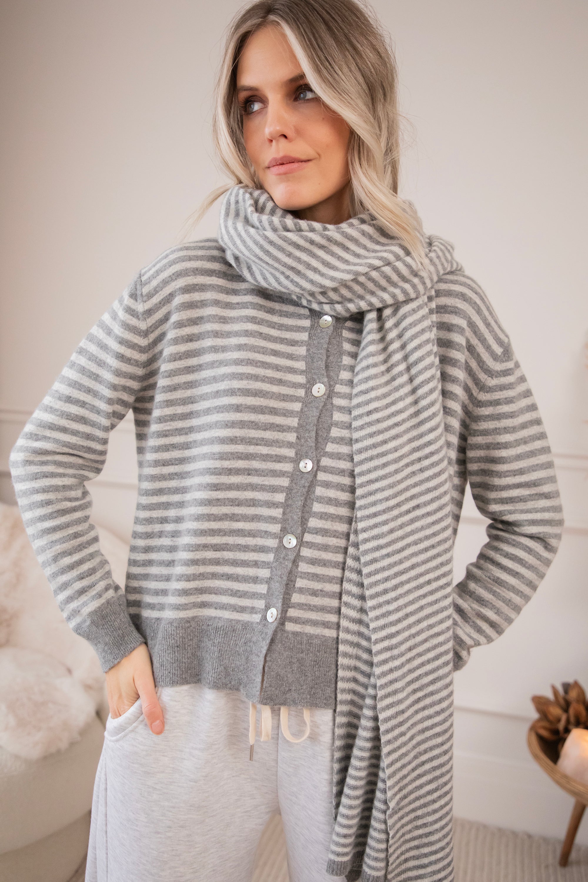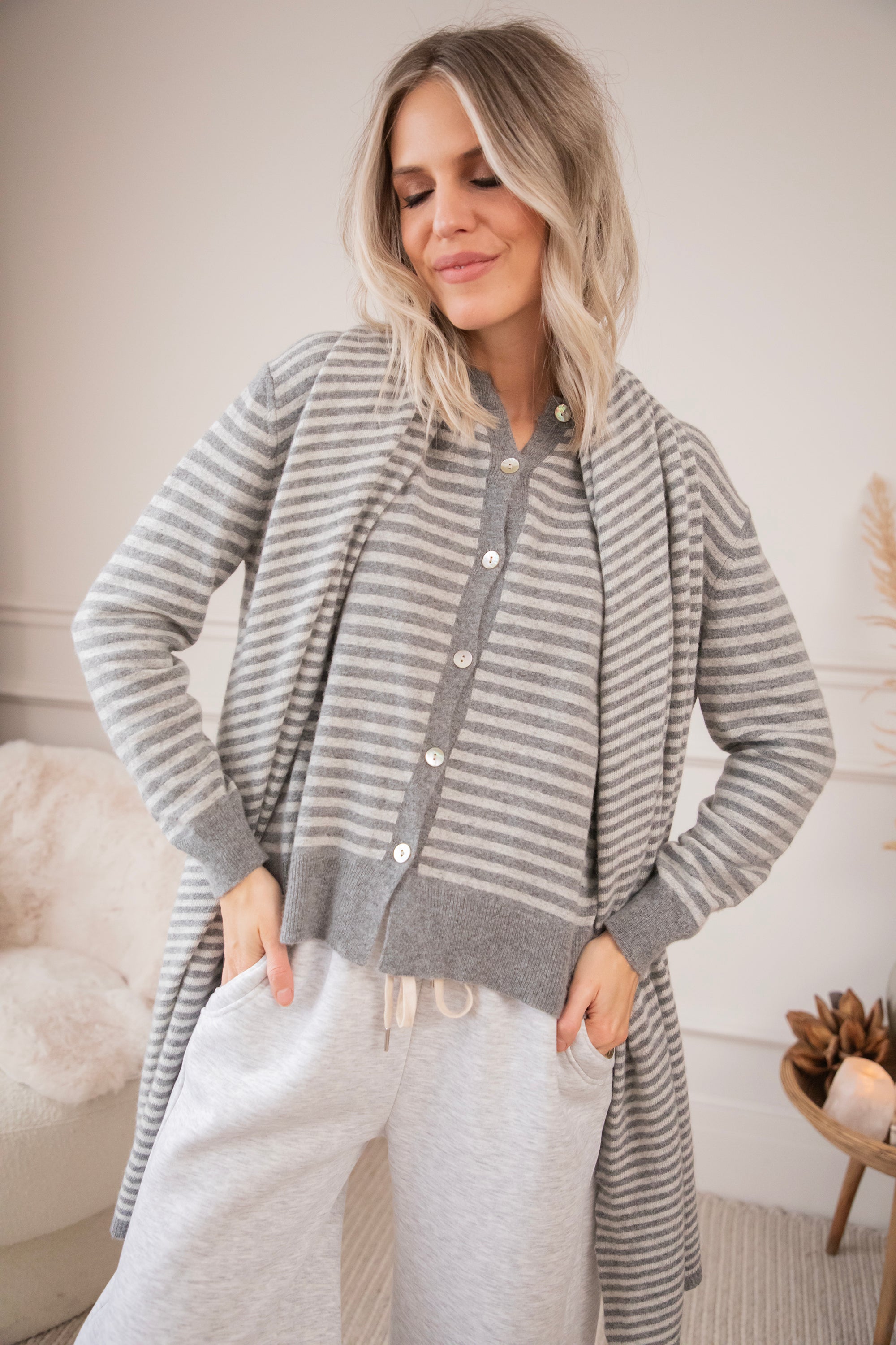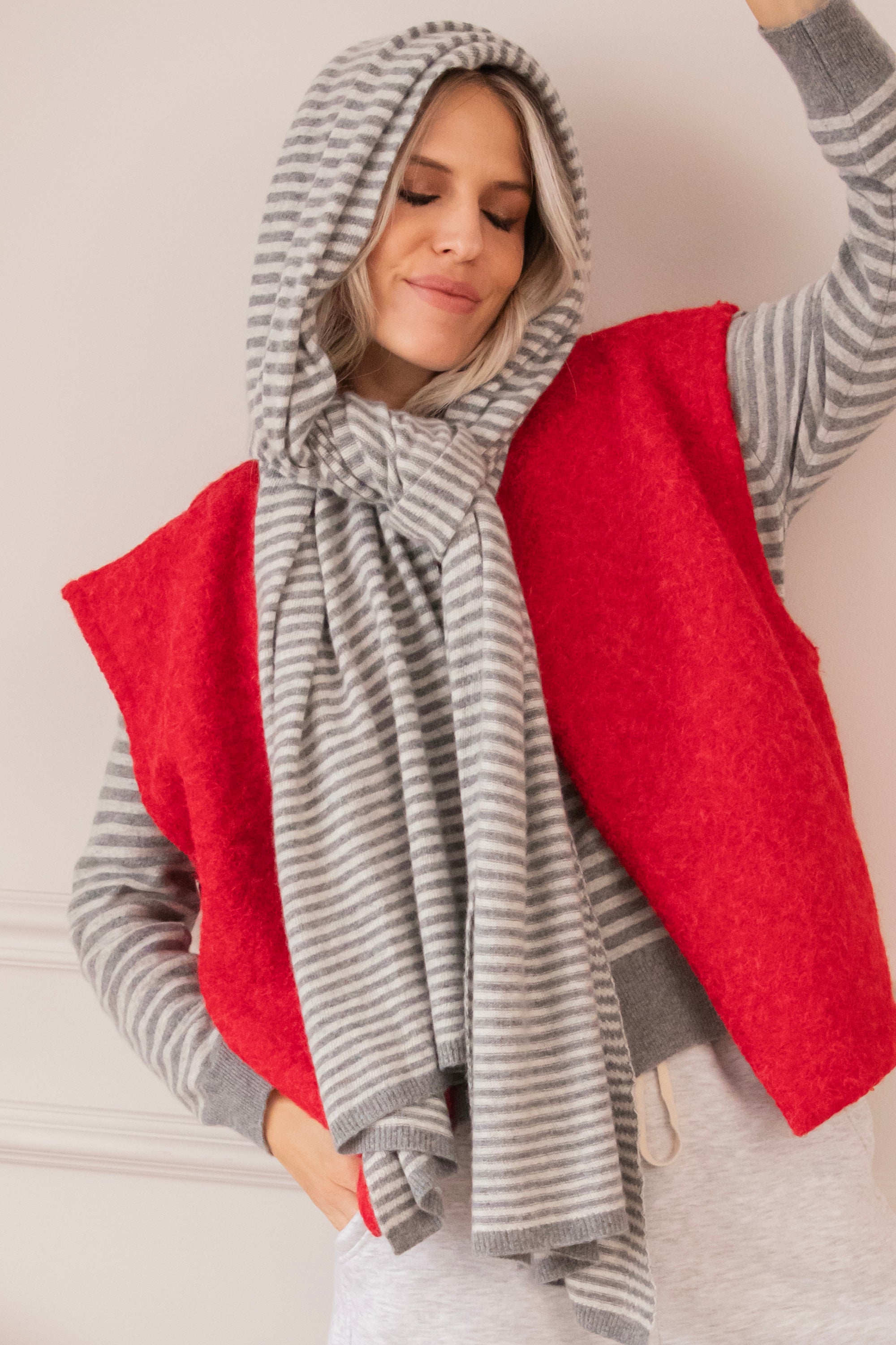 De Woolly Stripes sjaal is het perfecte maatje bij het vest met dezelfde heerlijke mix van 40% wol, 30% viscose en 10% cashmere… echt zalig zacht tegen je hals 🥹✨ De stof voelt luxueus, warm en toch licht, waardoor ze mooi soepel valt. En dankzij het fijne strepenpatroon krijgt ze meteen die typische Woolly Stripes look, helemaal matching met het truitje. Ga voor extra pit met het rode Your Best Layer vestje 🥰 Grey & red = always a good match!