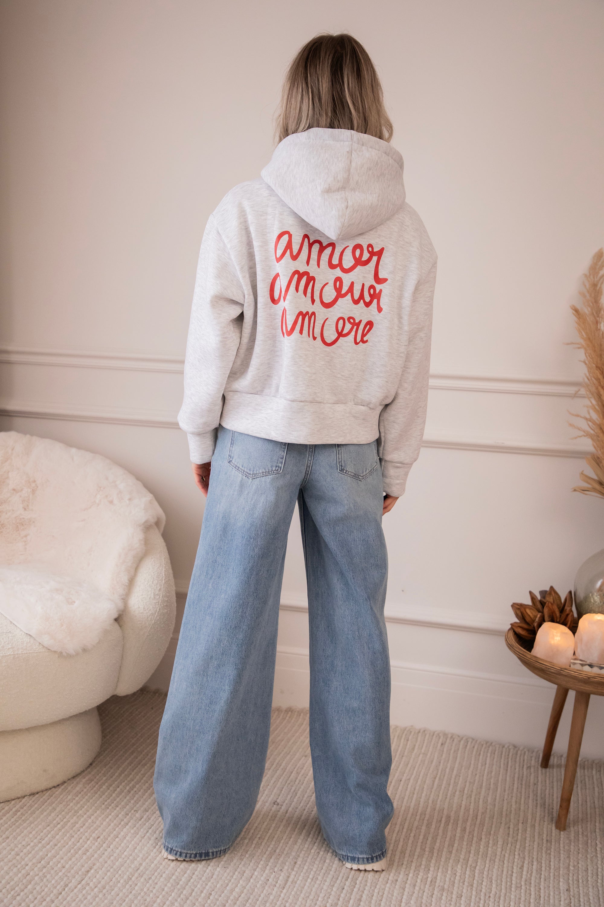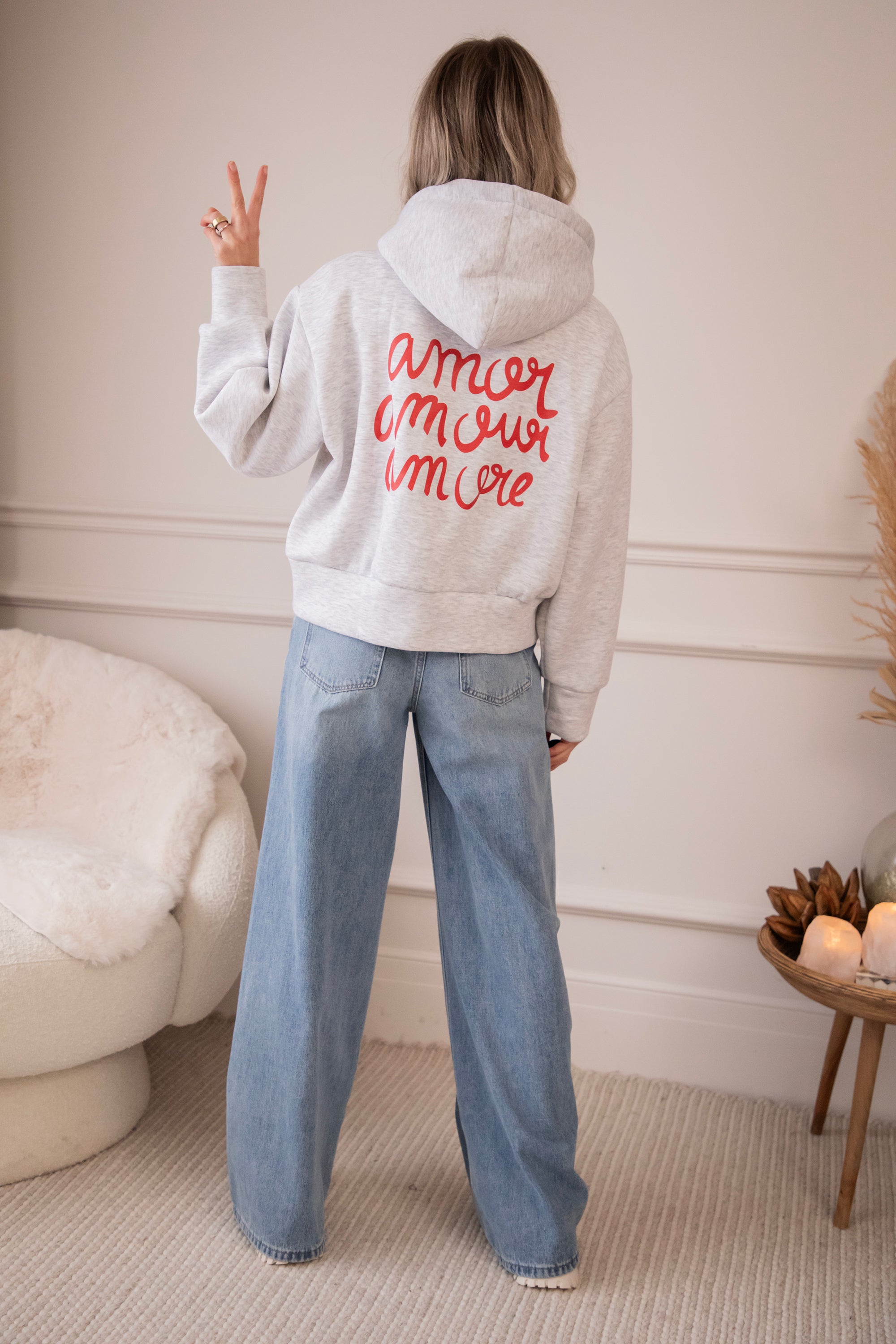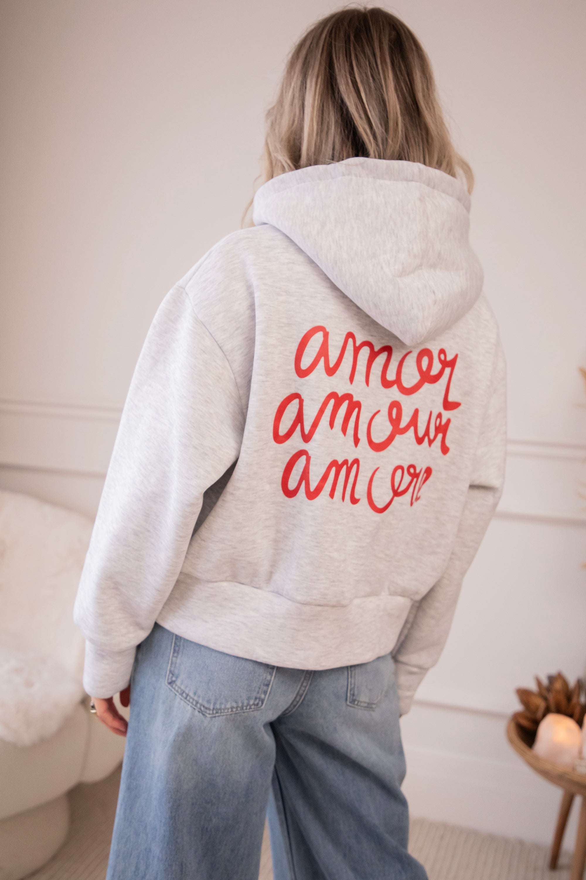 Een cozy kap, leopard koordjes enĀ amour in knalrode letters op de borst Ć©n op de rug⦠Super vet! Love & leopard in one piece = š„