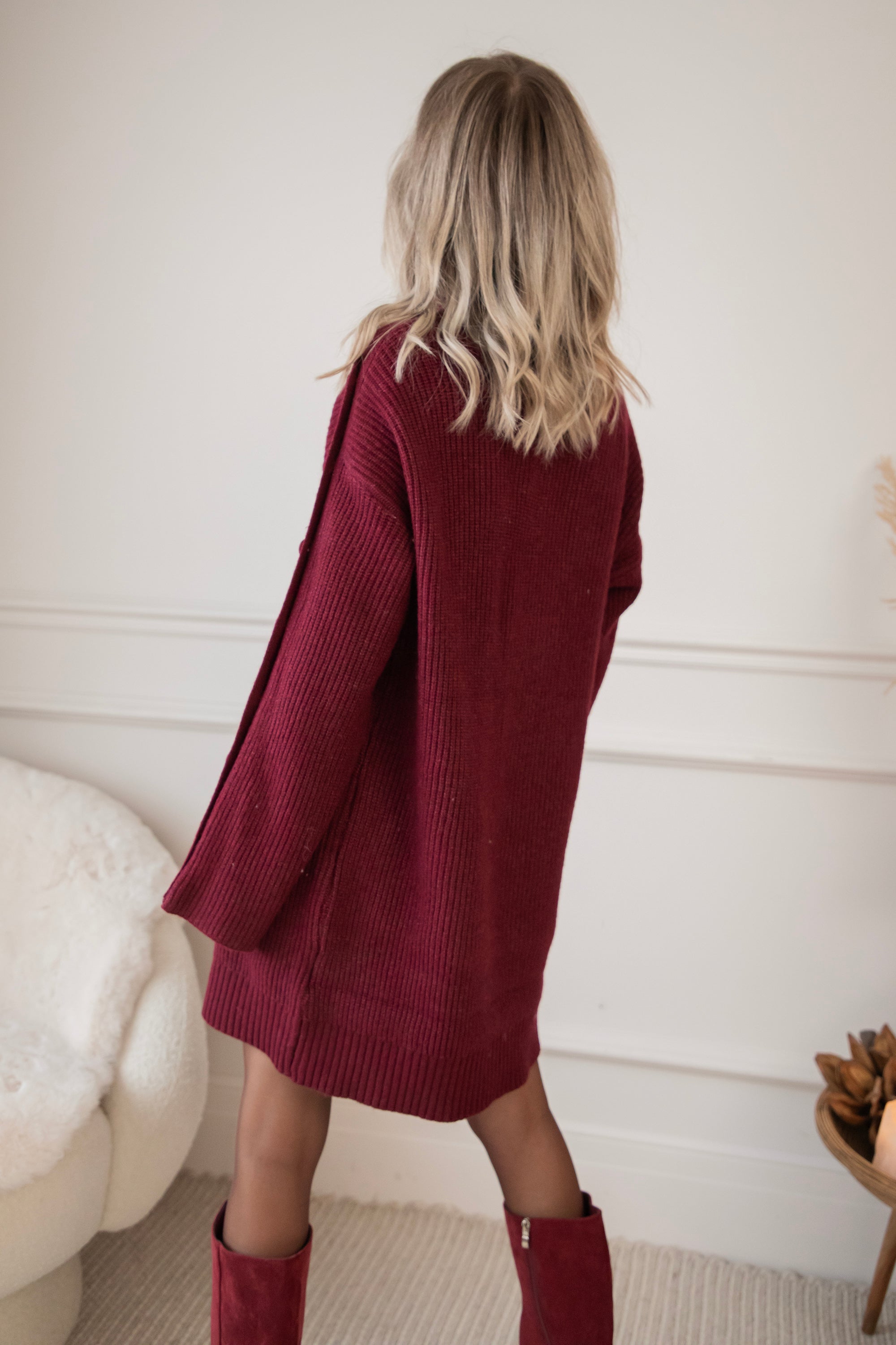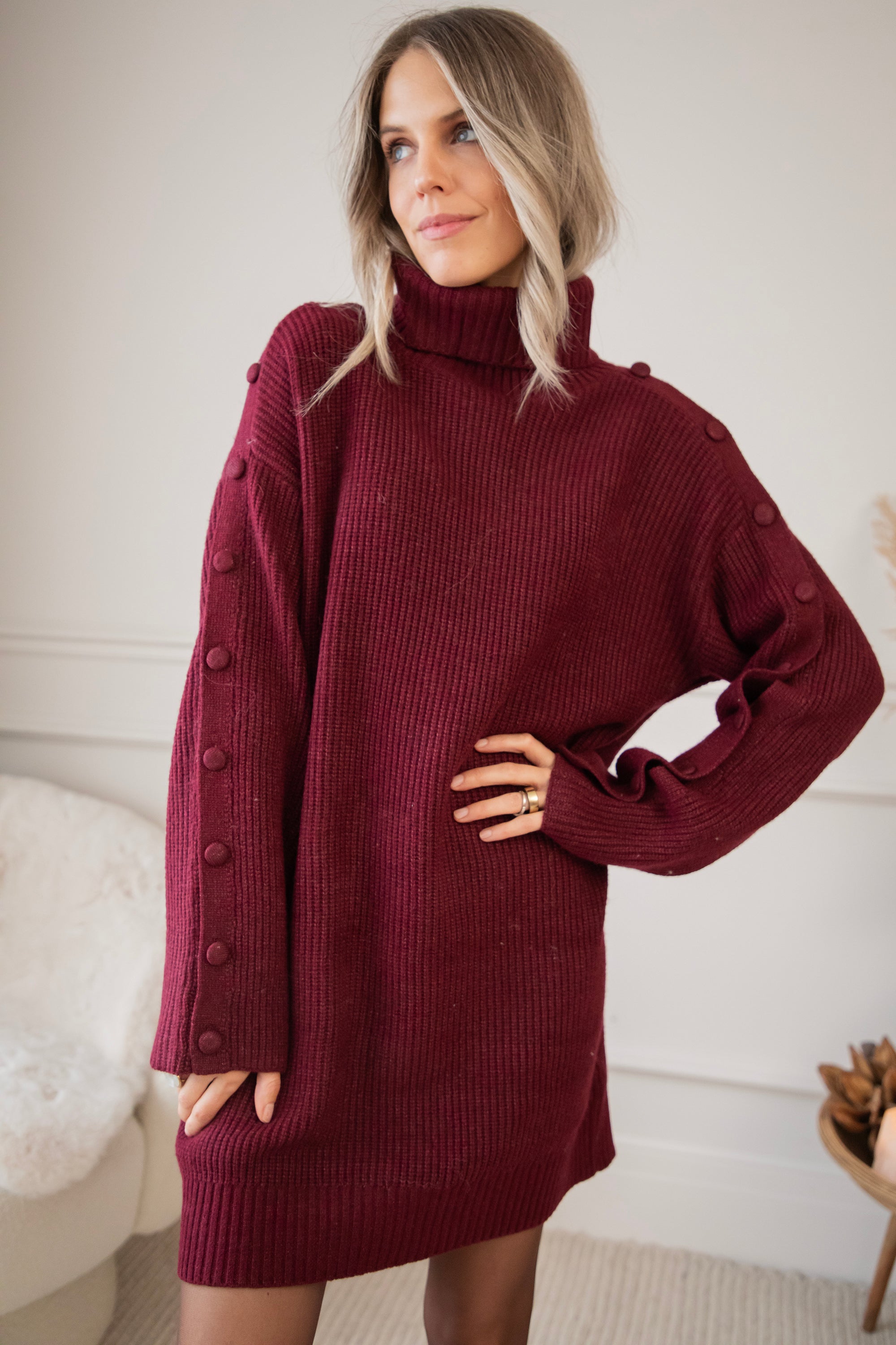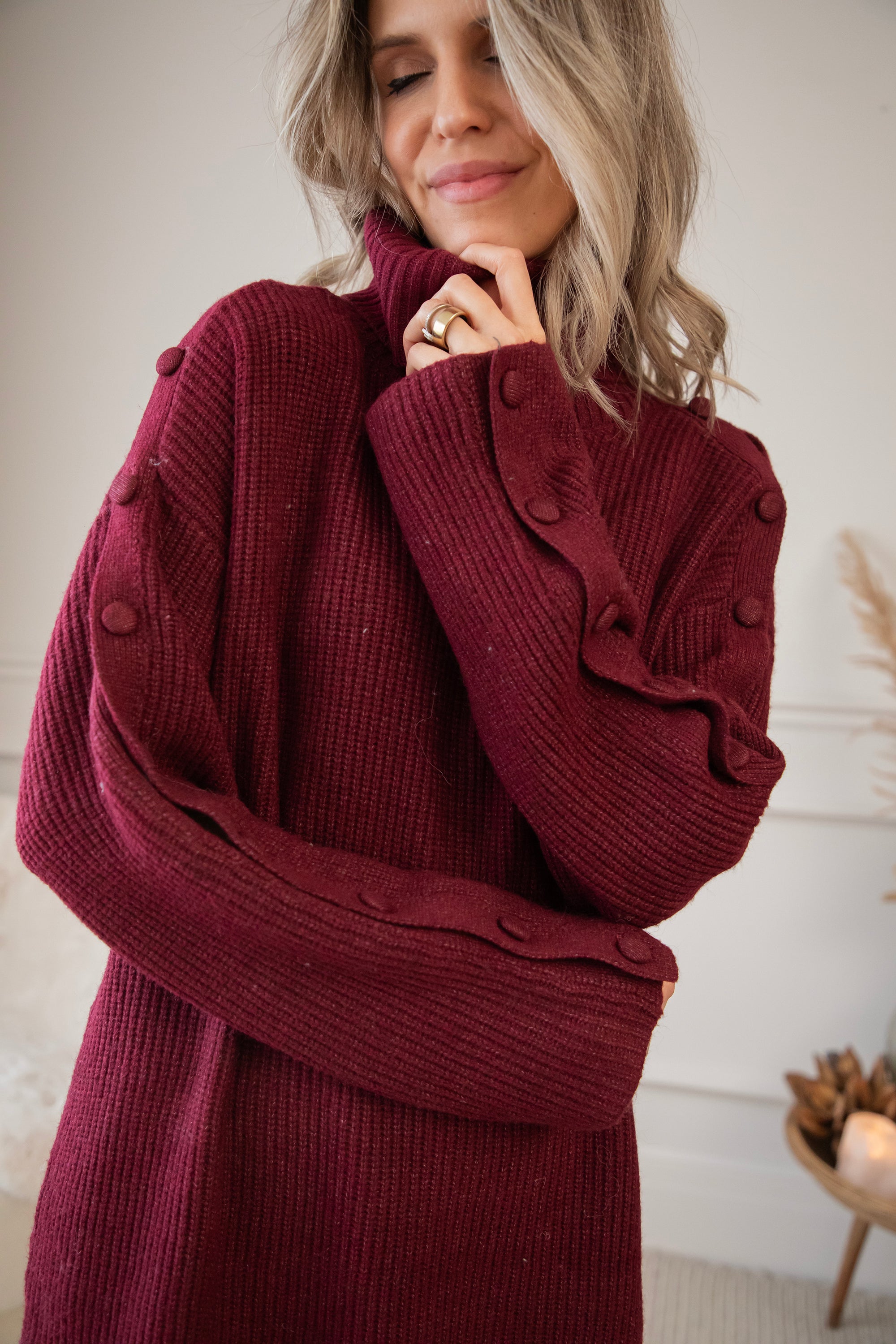 Sweater dress obsessionnn! 🔥 Een los, comfy modelletje waarbij dit keer de mouwen in de spotlight staan. Ze zijn zo prachtig afgewerkt met een rijtje gestoffeerde ronde knopen! 😍 Het breiwerk voelt heerlijk warm aan, rekt mooi mee en dan… die rolkraag! Ik vind dat zo’n pluspunt bij sweater dresses. Instant cozy vibes 🎀